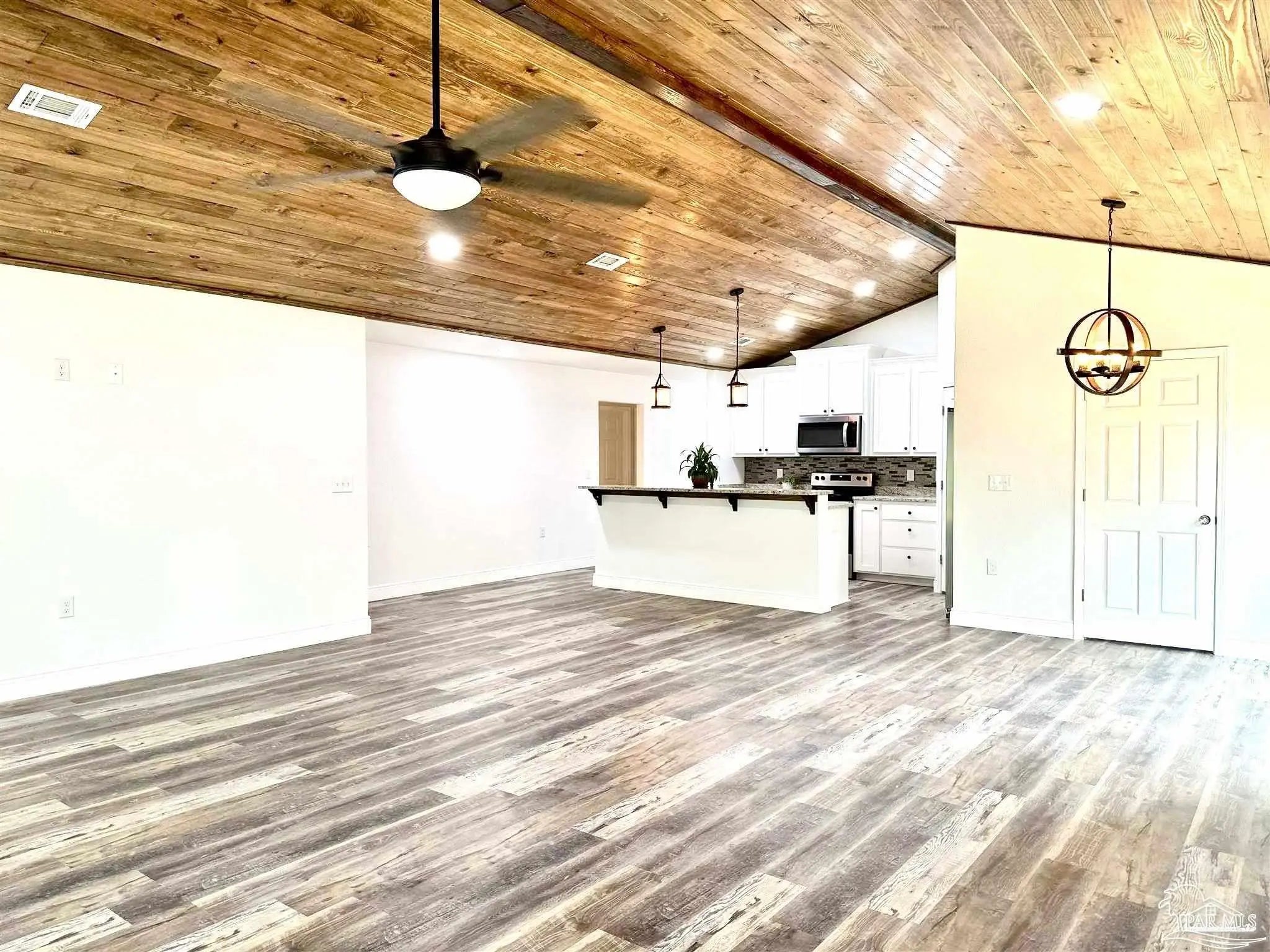 - Baseboards, Ceiling Fan(s), High Ceilings