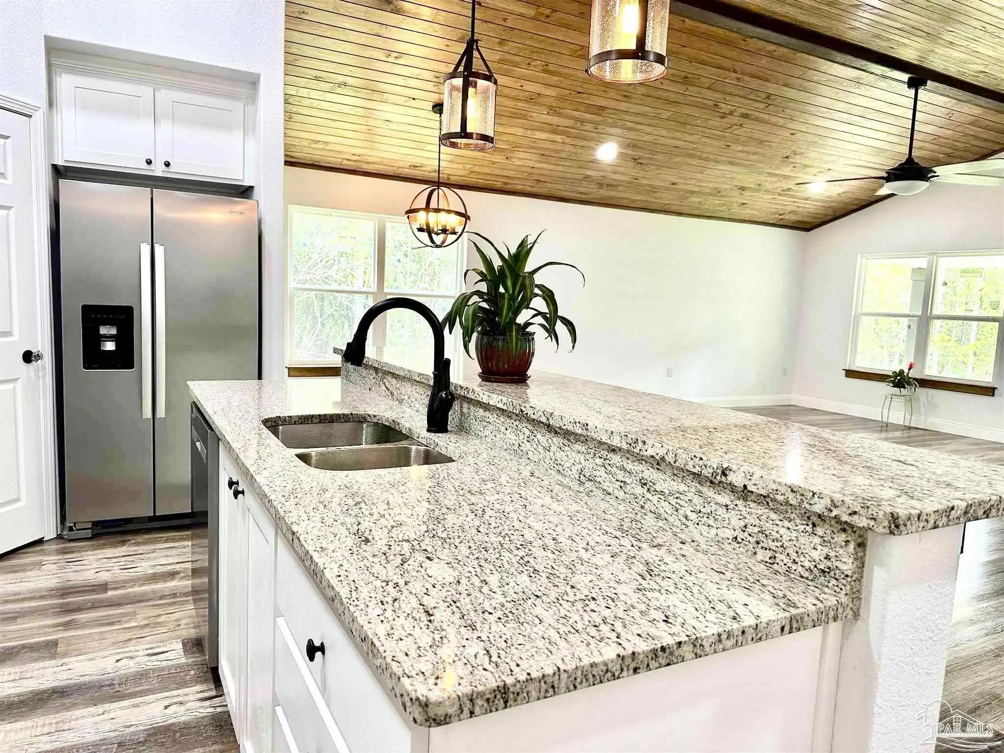 Welcome to this stunning home that blends elegance with modern comfort in a tranquil neighborhood. From the moment you step through the front door, you are greeted by an atmosphere of sophistication and style. The spacious open layout seamlessly connects the living areas, creating the perfect space for both everyday living and entertaining. Natural sunlight pours through large windows, beautifully highlighting the luxury vinyl plank (LVP) flooring that runs throughout the home with carpet in the bedrooms. At the heart of the property is the beautifully designed kitchen, a true dream for any culinary enthusiast. Featuring gleaming granite countertops, pristine white cabinetry, and modern appliances, this space offers the perfect combination of durability, functionality, and timeless style. Whether you’re preparing dinner for guests or enjoying a quiet morning coffee, this kitchen is designed to inspire. The primary suite offers a private retreat, providing a peaceful space to unwind. The master bathroom features elegant finishes and granite countertops, creating a spa-like atmosphere where you can relax and recharge. Thoughtful details can be found throughout the home, from stylish lighting fixtures to the carefully selected color palette that enhances the bright and welcoming ambiance. Step outside to your beautifully landscaped backyard oasis, complete with a screened patio—the perfect place to relax, entertain, or enjoy. Don’t miss your opportunity to make this exquisite home your own.