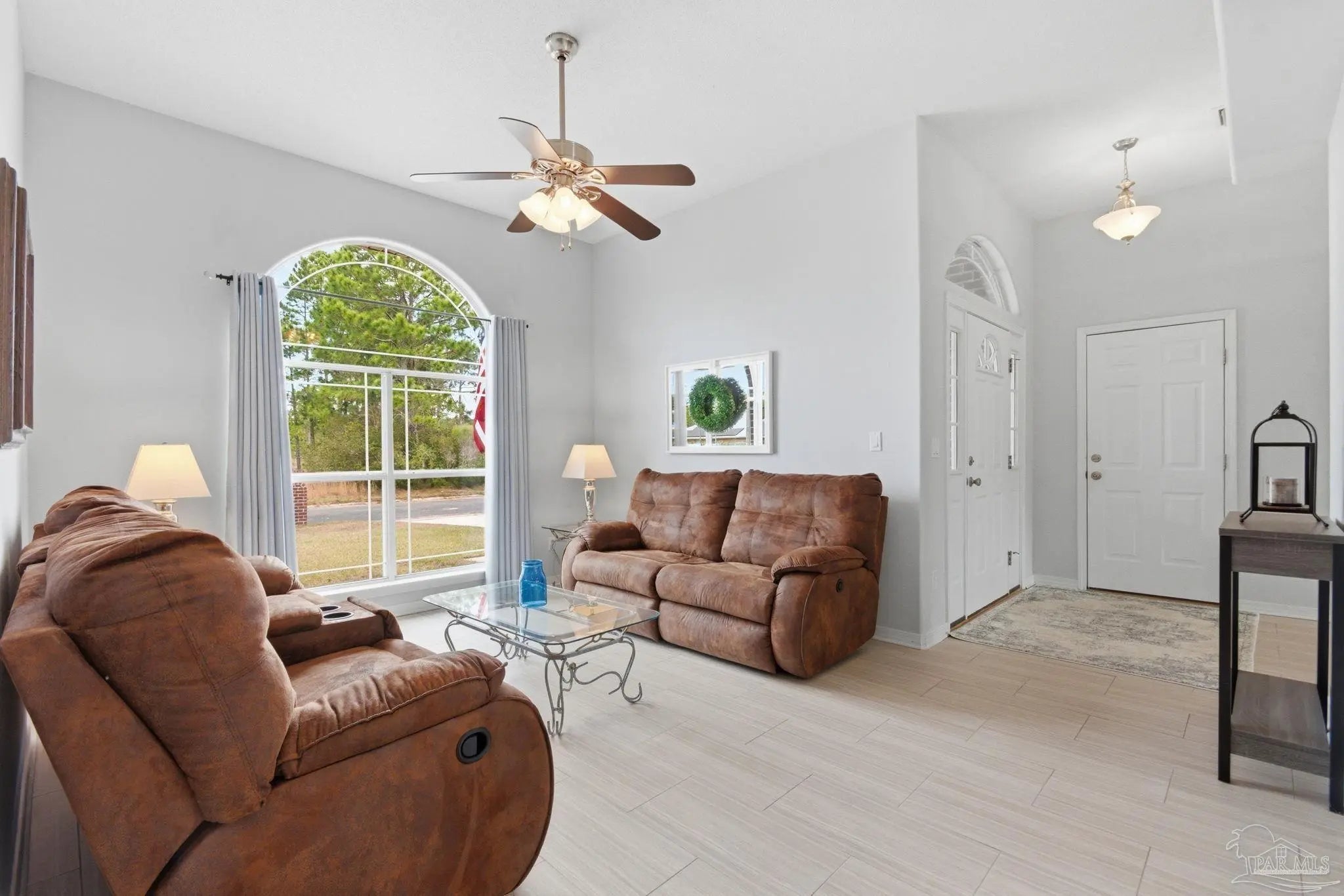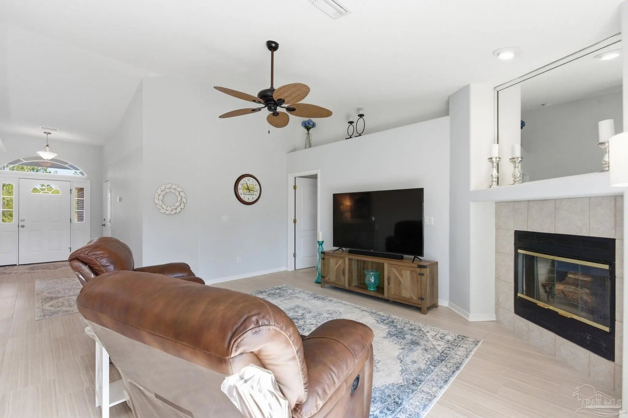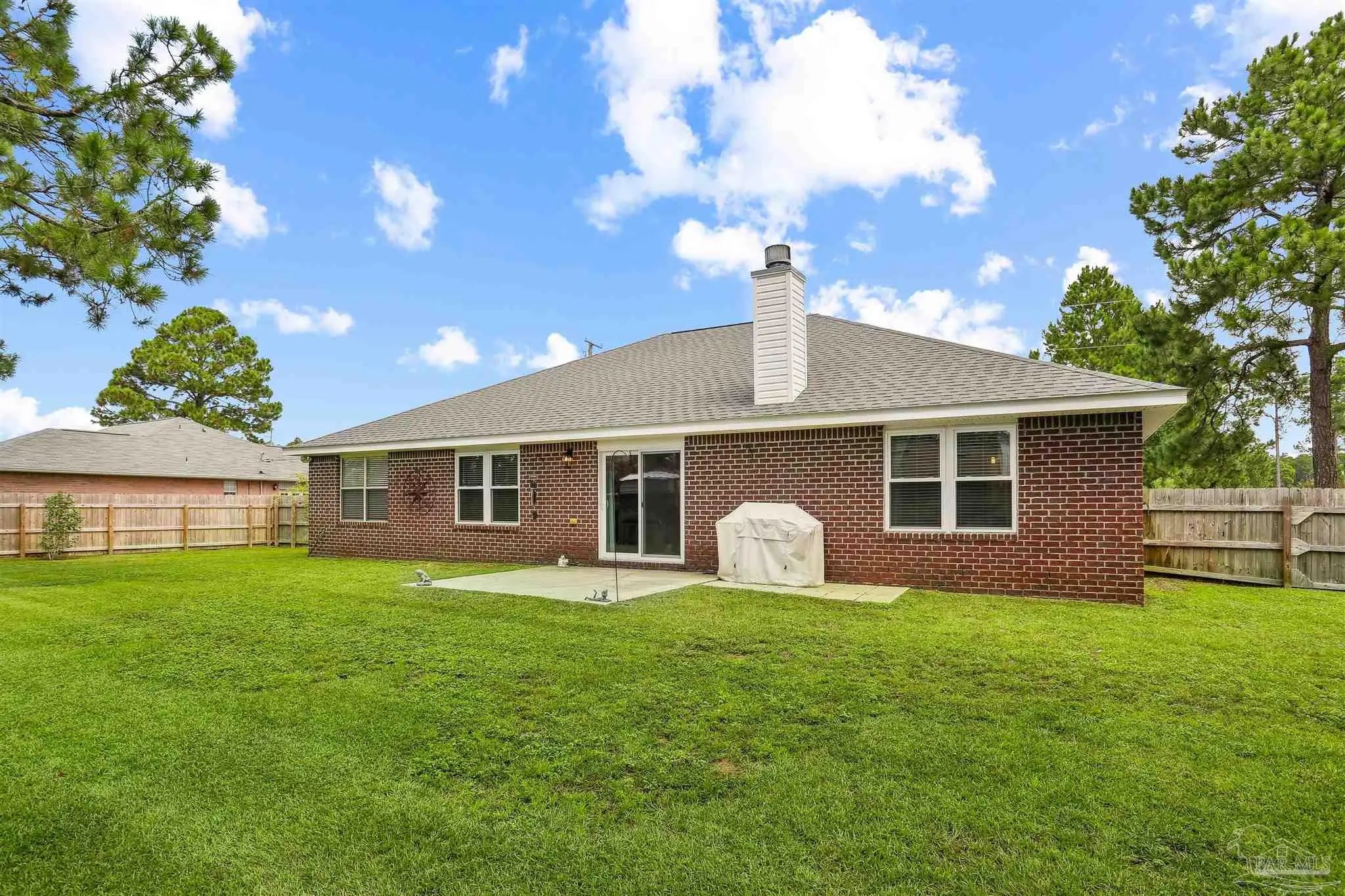 MOVE-IN READY BRICK BEAUTY - Upgraded Systems & Private Backyard serenity in the highly sought-after Adrian Woods subdivision, where peace and convenience meet! ROOF-2019, WATER HEATER-2023, HVAC-2024, and HURRICANE-IMPACT WINDOWS & SLIDING DOOR-2023. Major upgrades already complete for true move-in confidence. Inside, the open layout is filled with natural light and features vaulted ceilings, wood-look tile flooring, and a cozy fireplace. The chef’s kitchen is designed to impress with bright white cabinetry, stainless steel appliances, a newer convection range, breakfast bar, and pantry—perfect for both everyday living and entertaining. The split-bedroom design ensures privacy, with an expansive primary suite featuring a trey ceiling, oversized walk-in closet, and a spa-style bath, with a singlel-head rain shower, garden tub, double vanity, and private water closet in the master bath. Two additional bedrooms, a full bath, and a spacious laundry room complete the thoughtfully designed layout of this beautiful home. Step outside to your private backyard oasis with fruit trees and plenty of space for the pool you’ve been dreaming of. The sprinkler system on city water with a timer makes upkeep effortless. Adrian Woods offers stocked ponds, a picnic area, and scenic bay views, while the Garcon Point boat ramp and I-10 are just minutes away—making weekend adventures and commuting effortless. Pride of ownership shines throughout this immaculate home—this one truly has it all.