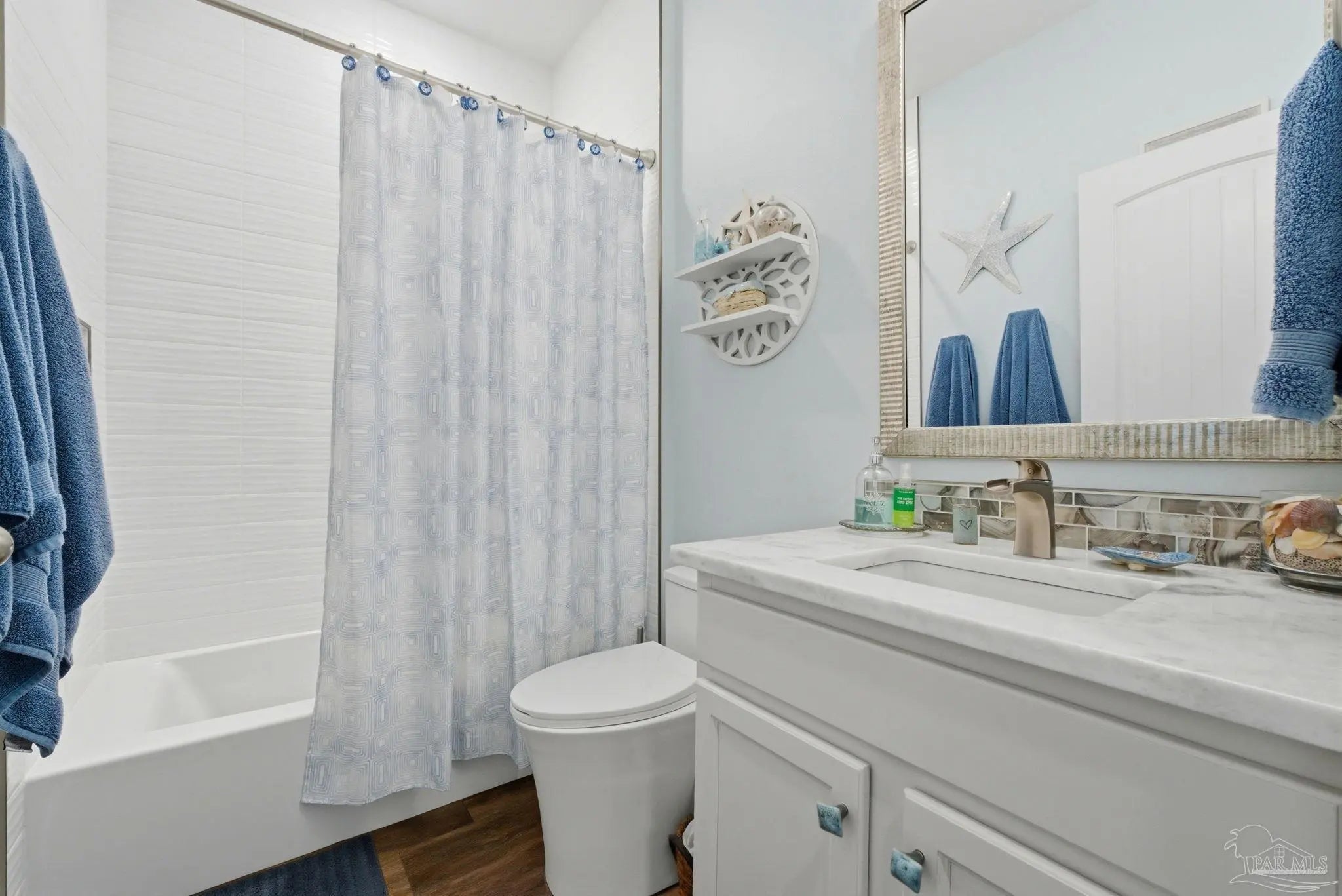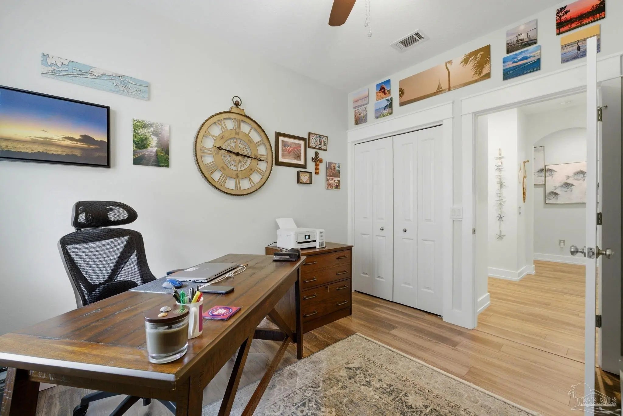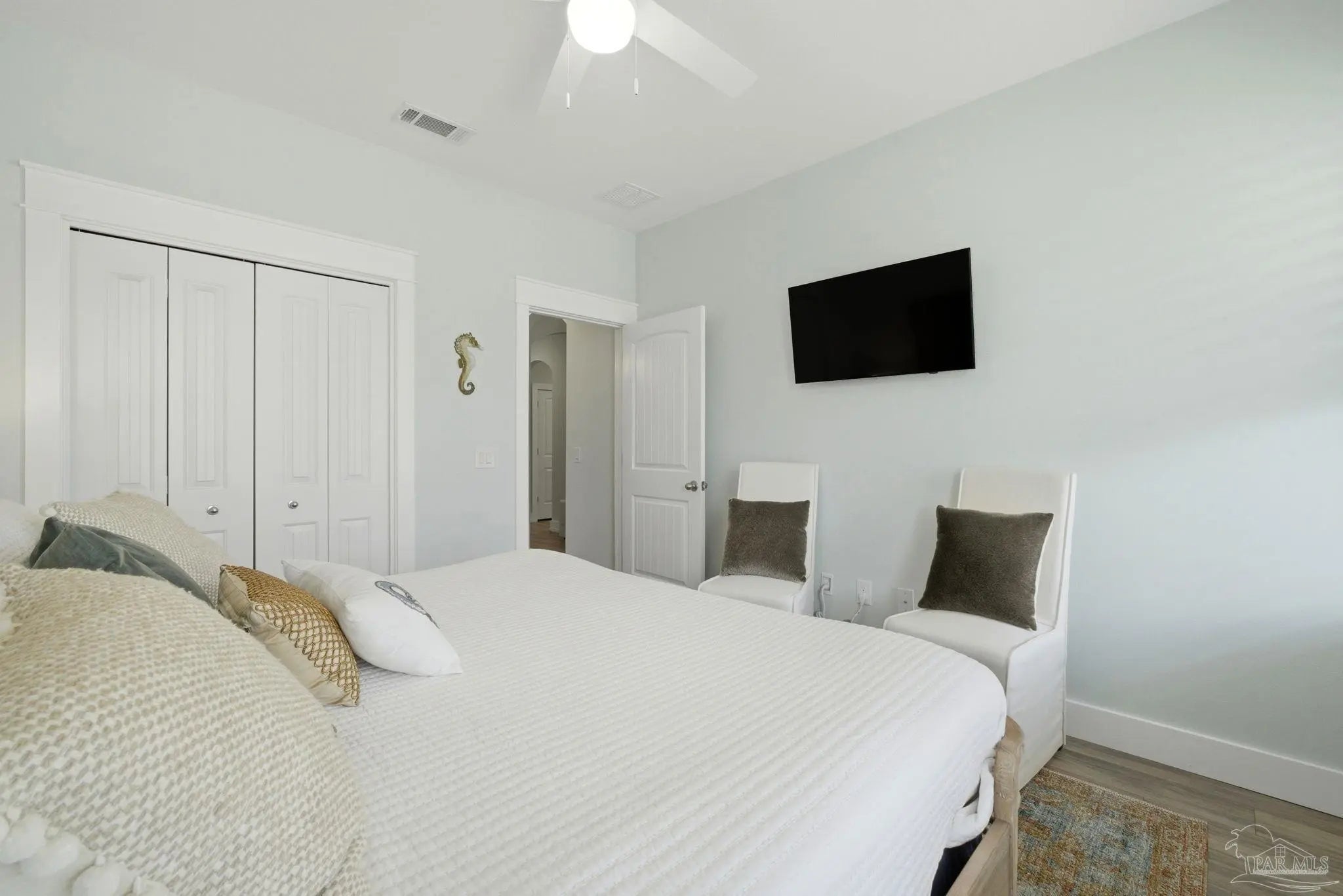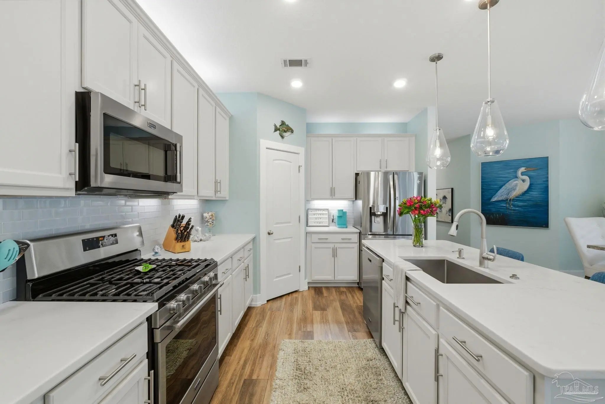 WELCOME TO YOUR TOTALLY REMODELED DREAM HOME IN THE GATED, SUNRISE COMMUNITY- WHERE MODERN LUXURY MEETS COASTAL COMFORT JUST MINUTES FROM PERDIDO KEY AND NAS PENSACOLA! This immaculate 4-bedroom, 2-bathroom residence has been meticulously upgraded, featuring craftsman-style baseboards and trim throughout (2022) and luxury vinyl plank flooring in every bedroom (2021). The heart of the home is a stunning kitchen remodeled in 2021-22, boasting quartz countertops, a shiplap bar front, a Moen touchless faucet, and a custom-remodeled pantry. Relax in the primary suite, which offers a 10-foot custom floor-to-ceiling bookcase and a spa-like bathroom remodeled in 2023 with dolomite countertops and a custom walk-in shower featuring 12×24 polished wall tile. Feel safe and secure as this high-tech home is equipped with a Generac home generator (2023), Ring security system, and an Ecobee smart thermostat. Enjoy the Florida breeze and stunning sunsets on your screened-in back porch—recently updated with "no-see-um" fabric (2026)—while overlooking the peaceful pond and colorful landscaping. Every detail of this home has been polished for its next owner - truly a must see home!