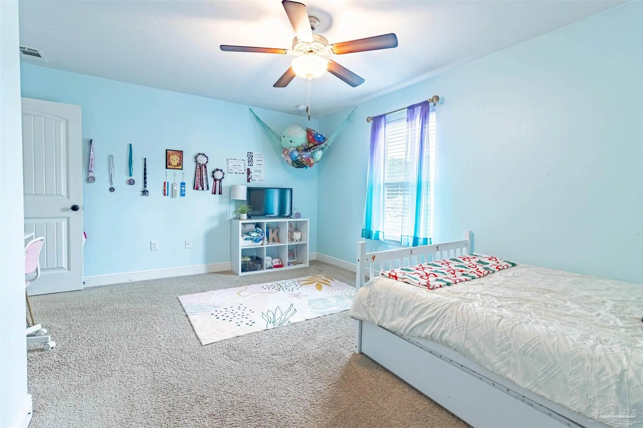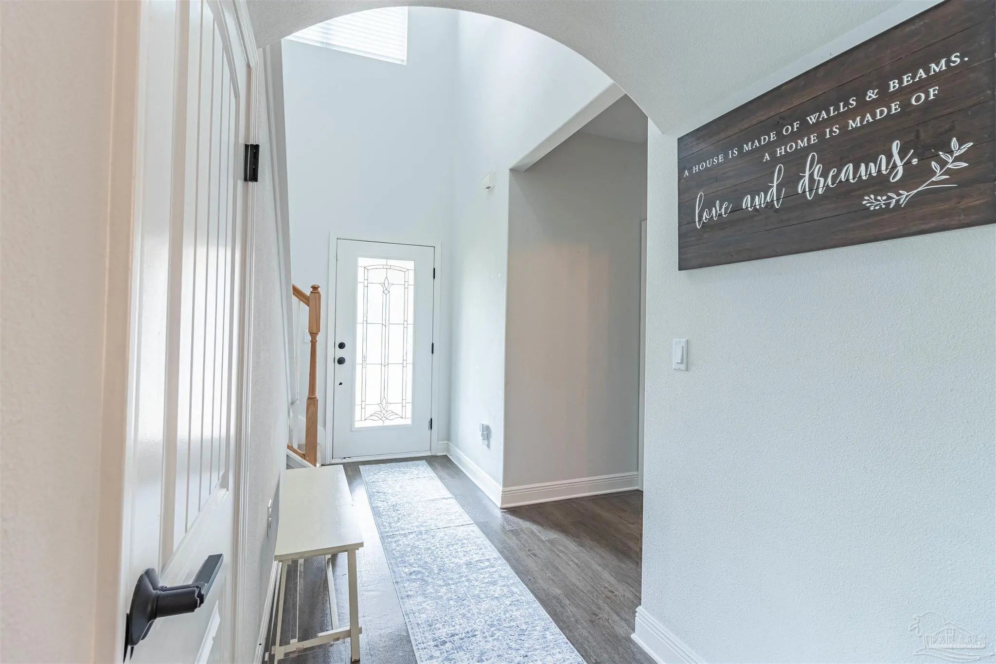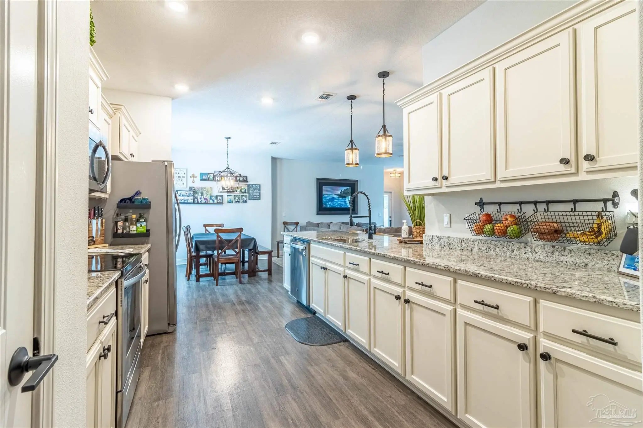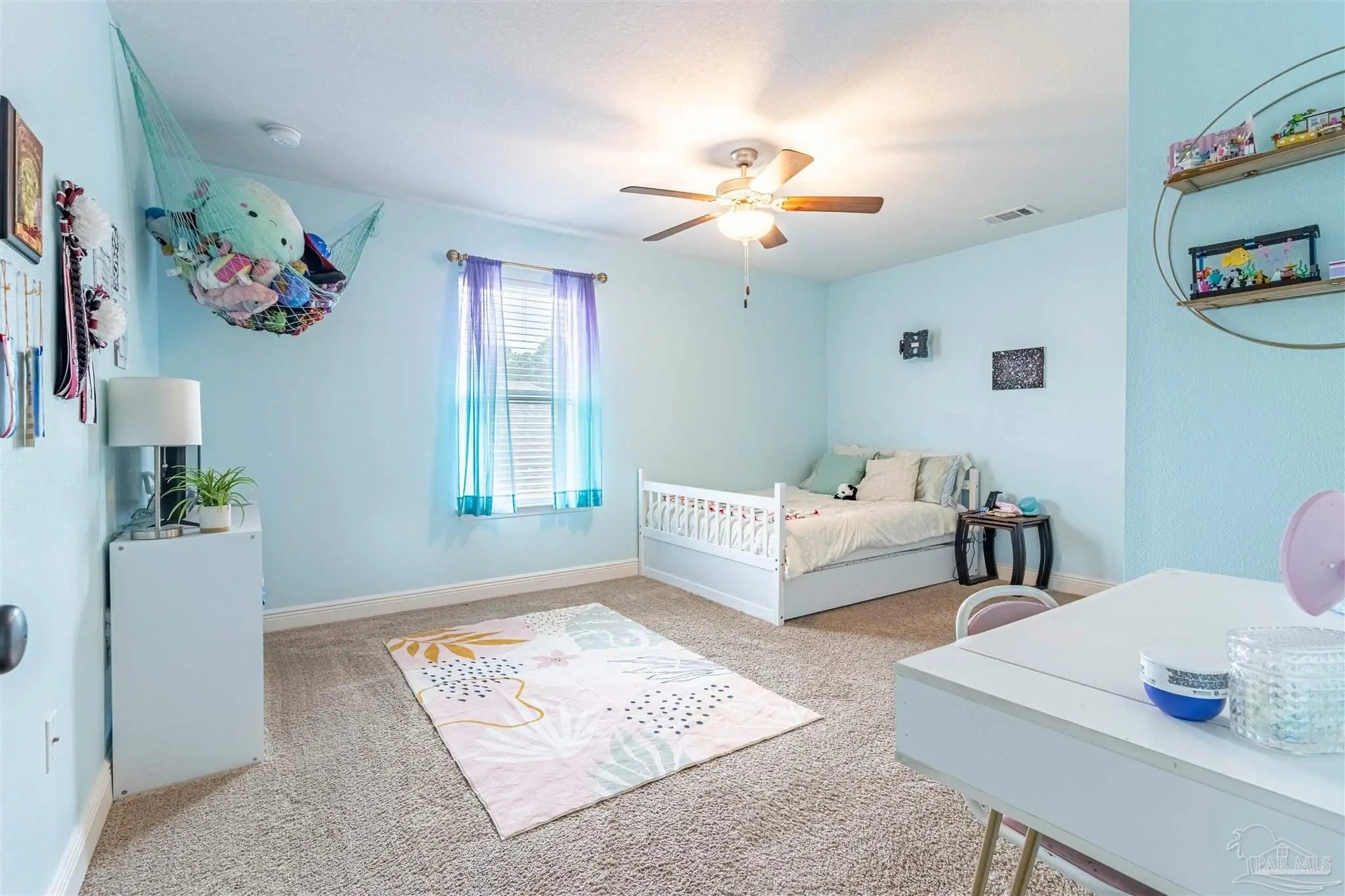 Beautiful 5 bedroom/3.5 bath two story home offering 2755 sf of living space, ideally located between Navarre Beach, Gulf Breeze and Pensacola Beach. This well maintained home has had only 1 owner and shows beautifully. The spacious master suite is conveniently located on the 1st floor, while the upstairs bedrooms are generously sized. 1 upstairs bedroom is large enough to be used as an additional master suite or guest suite. The Open Floor plan in the main living area features high ceilings, creating a bright and inviting space for entertaining. The kitchen includes granite countertops, stainless steel appliances and luxury vinyl plank flooring with Carpet in the bedrooms for comfort. Bathrooms feature 36 inch tall vanities. Laundry room is on the first floor for convenience.