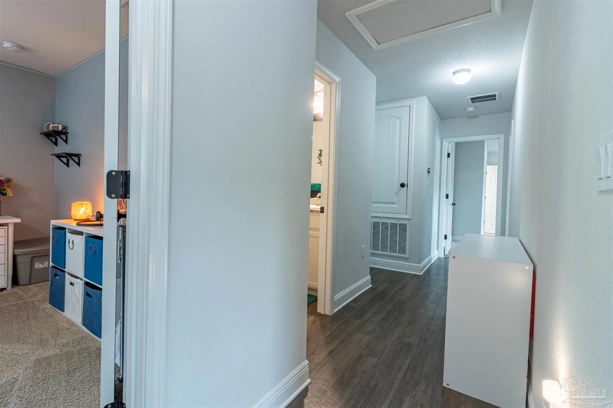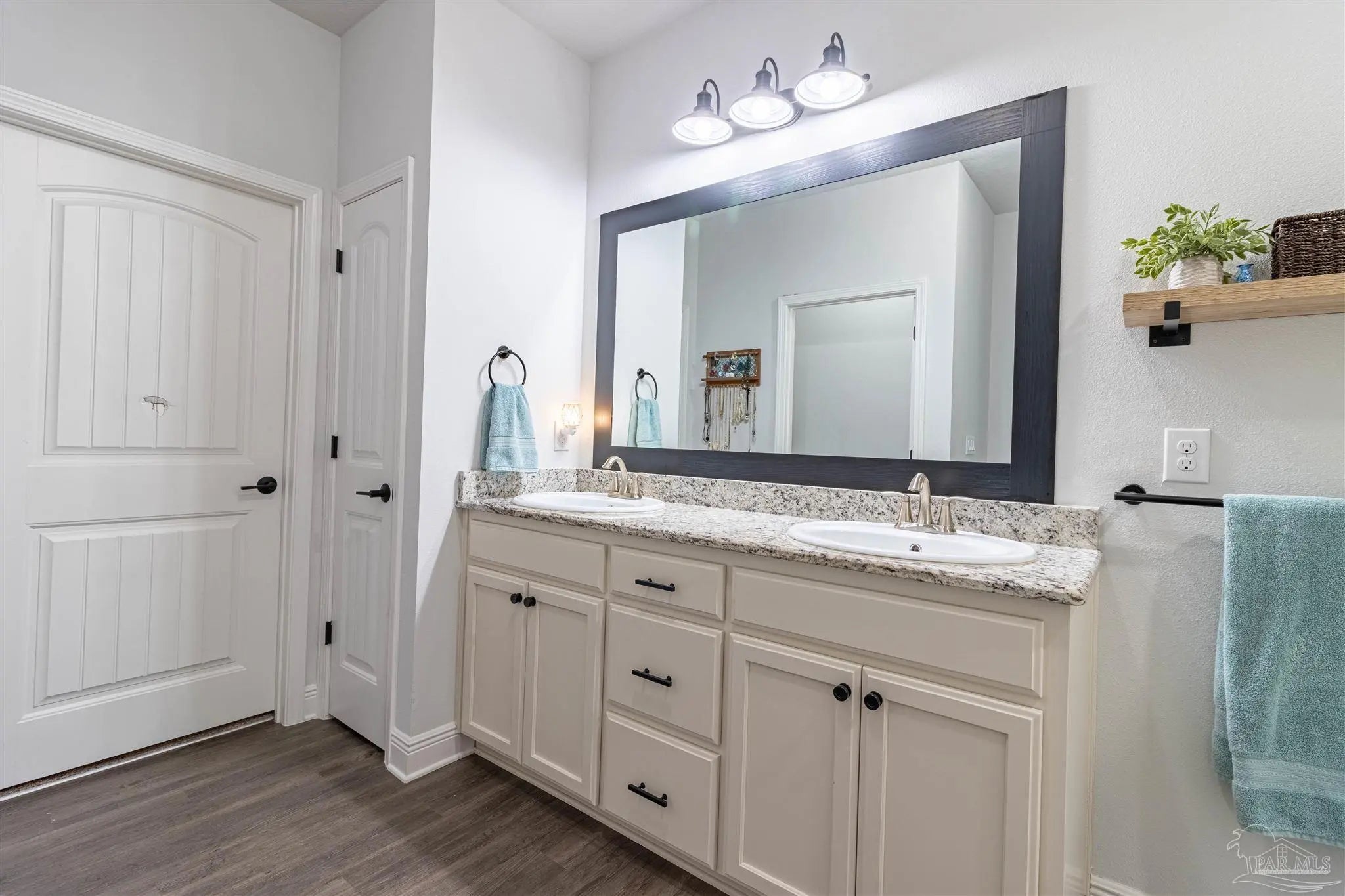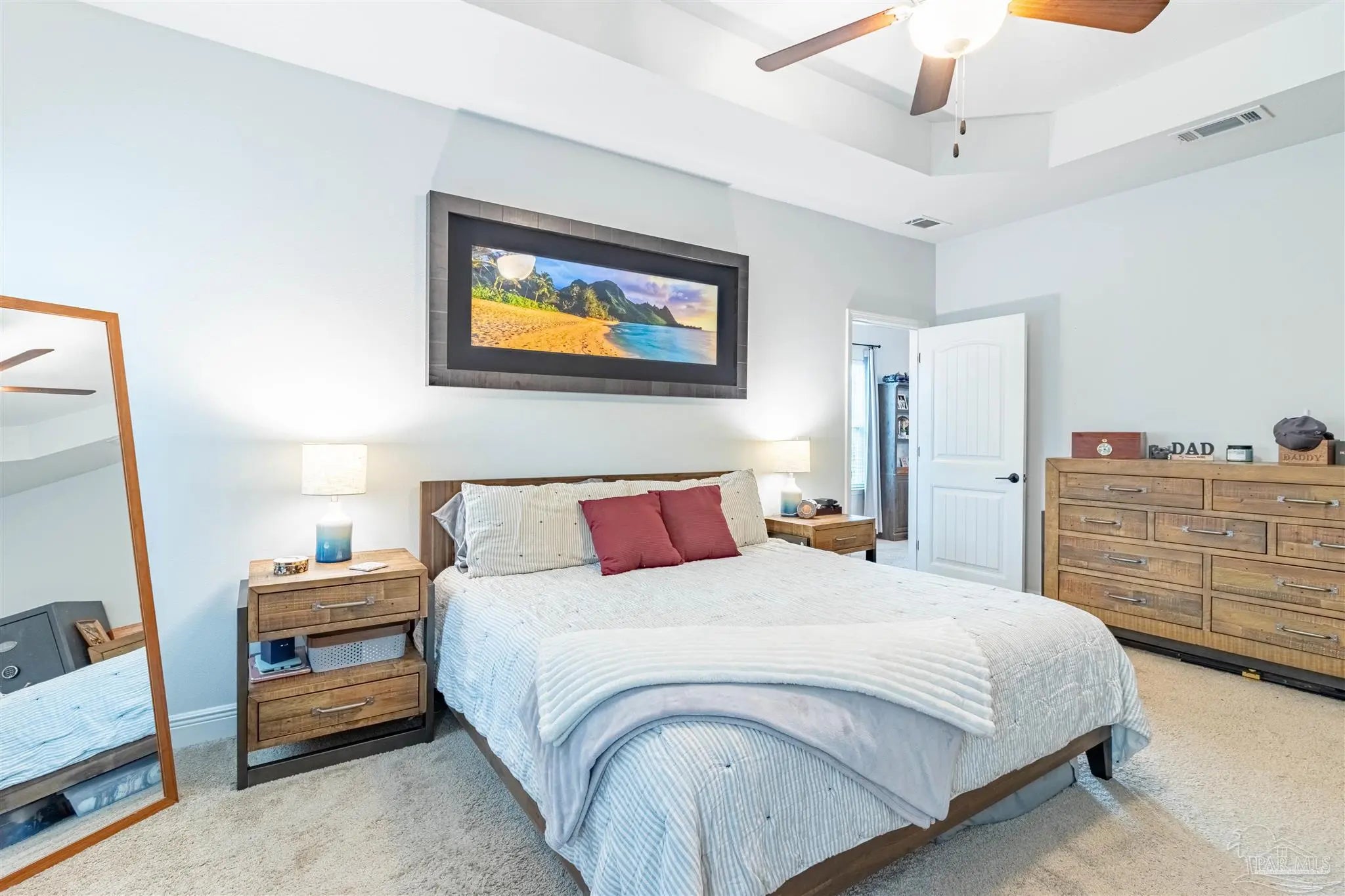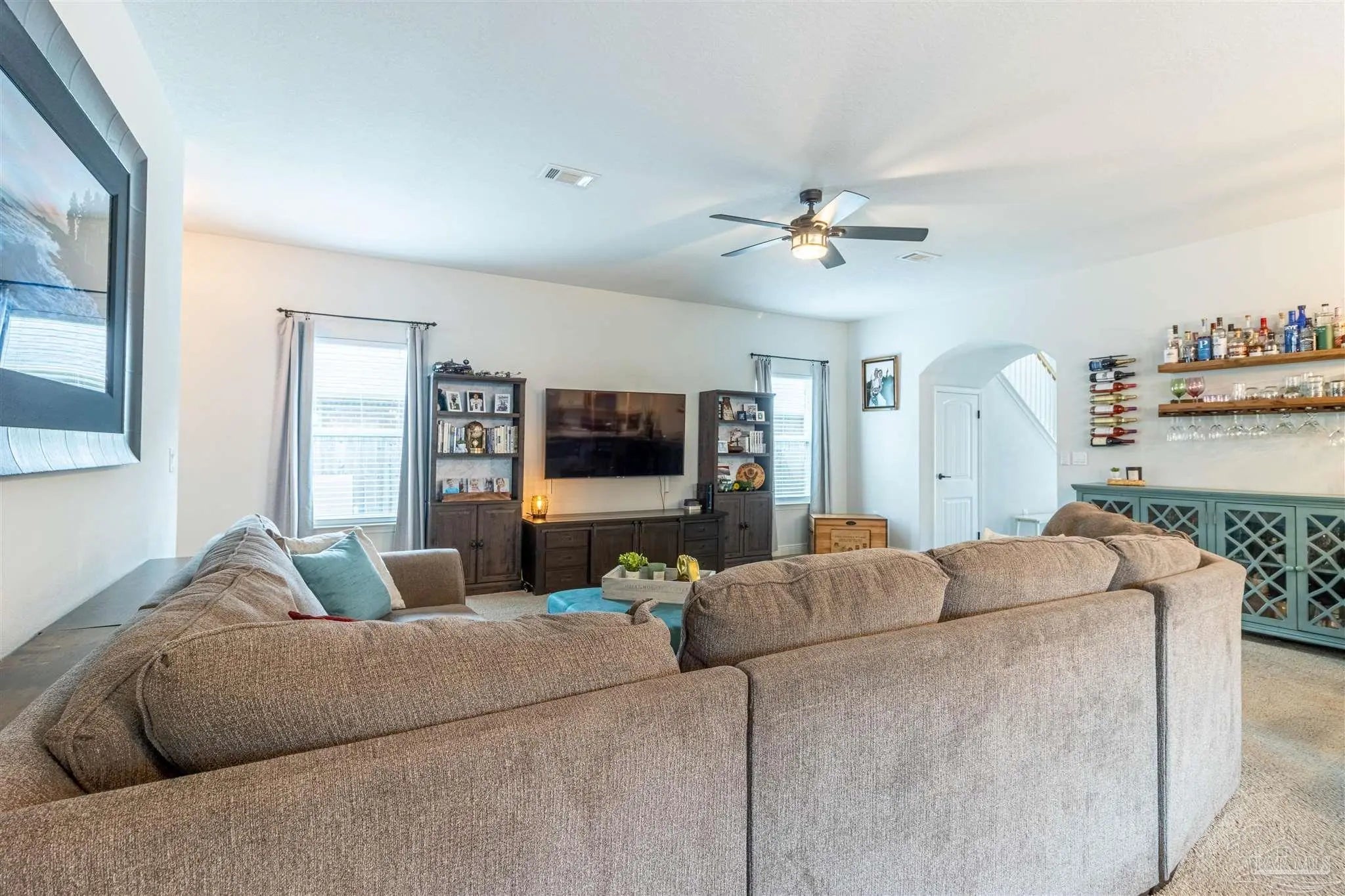 Beautiful 5 bedroom/3.5 bath two story home offering 2755 sf of living space, ideally located between Navarre Beach, Gulf Breeze and Pensacola Beach. This well maintained home has had only 1 owner and shows beautifully. The spacious master suite is conveniently located on the 1st floor, while the upstairs bedrooms are generously sized. 1 upstairs bedroom is large enough to be used as an additional master suite or guest suite. The Open Floor plan in the main living area features high ceilings, creating a bright and inviting space for entertaining. The kitchen includes granite countertops, stainless steel appliances and luxury vinyl plank flooring with Carpet in the bedrooms for comfort. Bathrooms feature 36 inch tall vanities. Laundry room is on the first floor for convenience.
