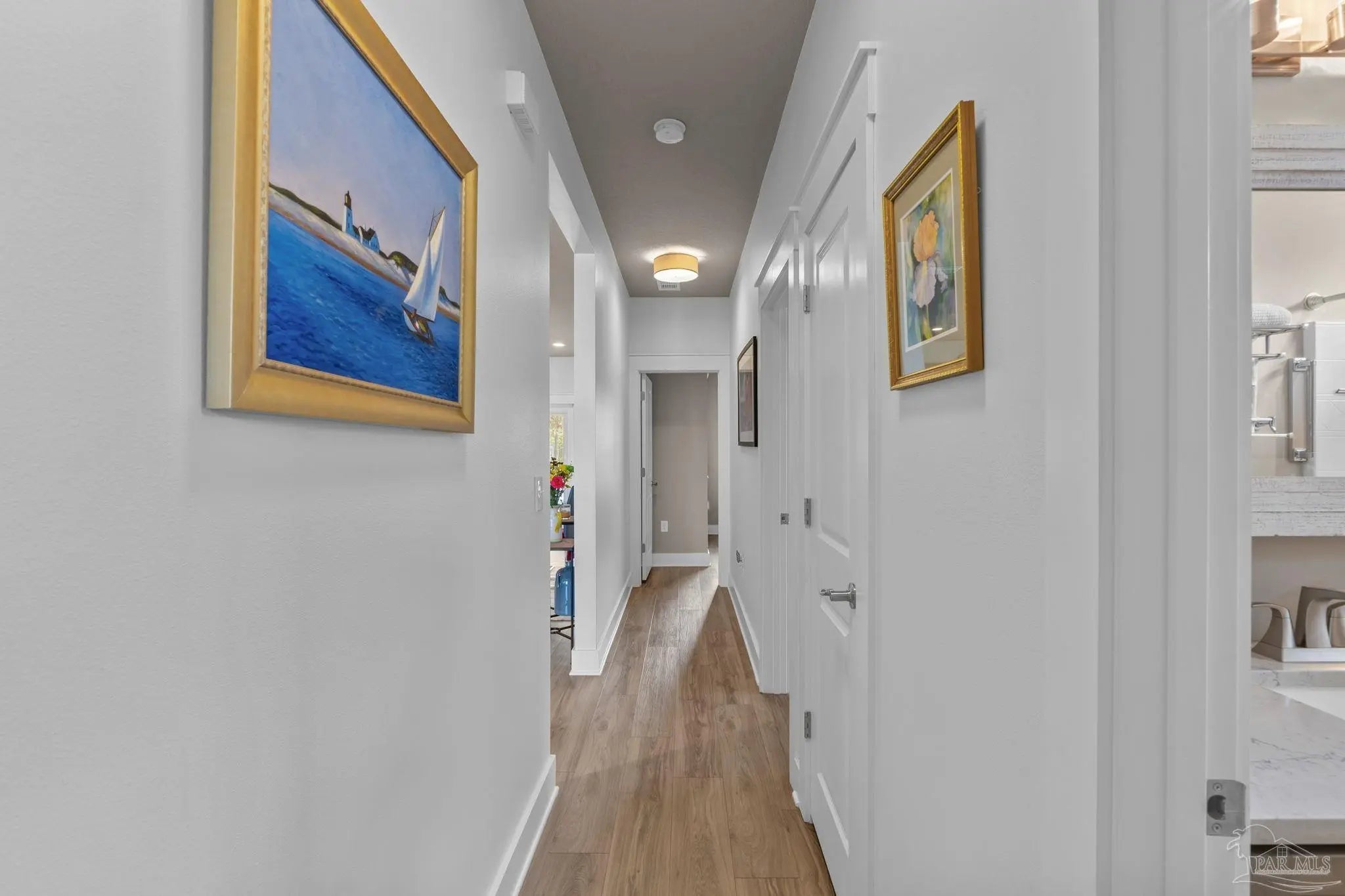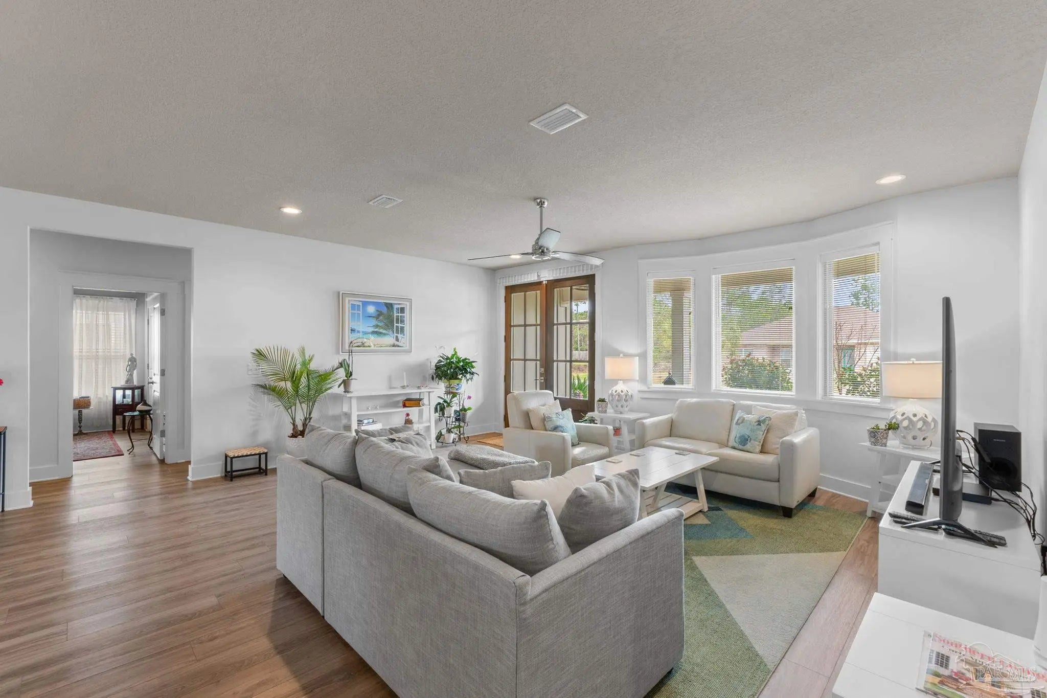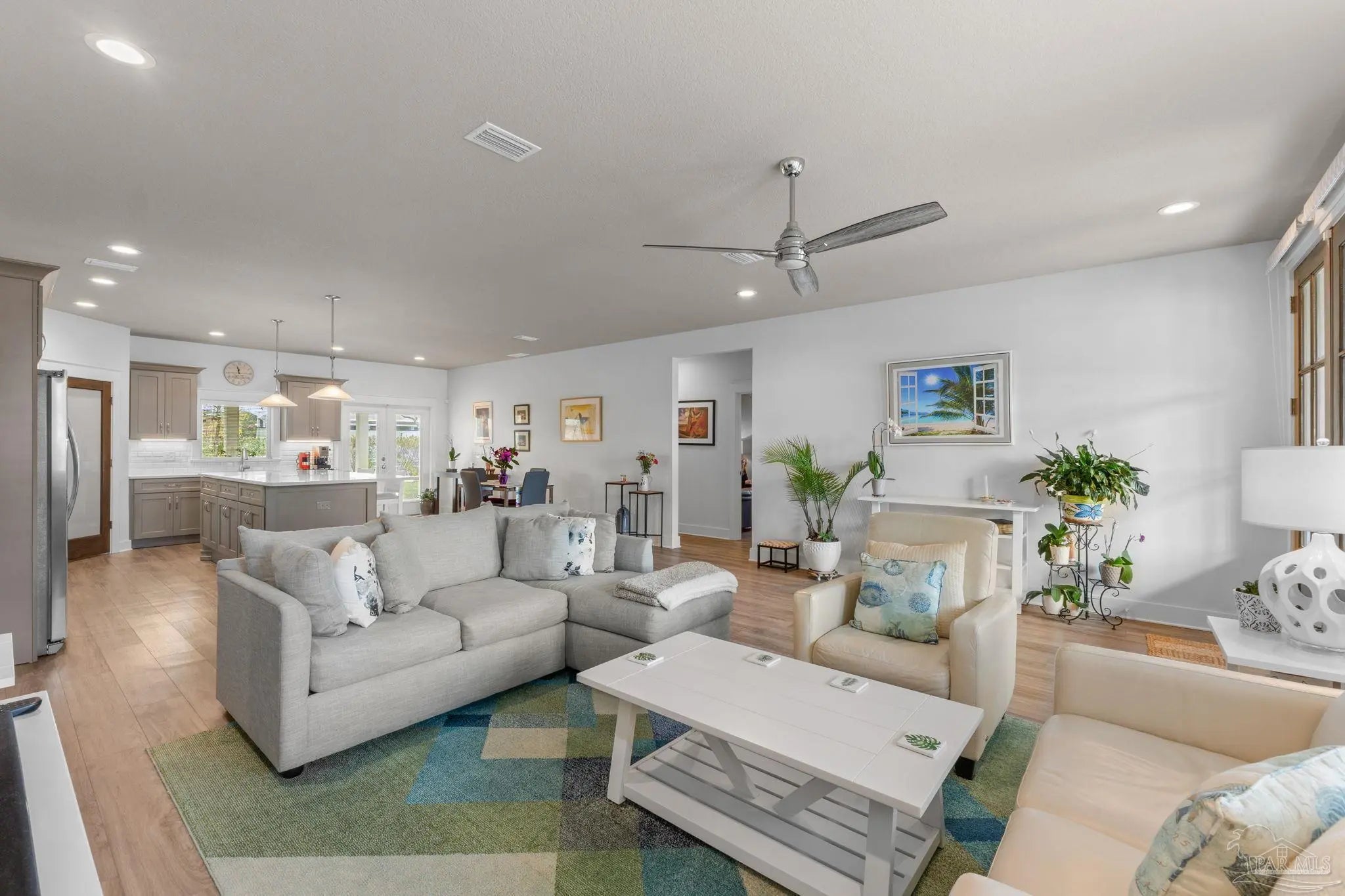 Stunning 4BD/2.5BA coastal home built in 2020 and well maintained featuring, double mahogany entry doors opening to a bright, open-concept living area with luxurious vinyl plank flooring throughout. The gourmet kitchen is a showstopper with custom cabinetry, quartz countertops, and under-cabinet lighting. Retreat to the private, split-plan master suite with a trey ceiling, custom walk-in shower, double vanities, and a massive closet. Relax on the large covered patio overlooking the private backyard. Includes an oversized 2-car garage. Located just minutes from a boat ramp, white sandy beaches, dining, and shopping!