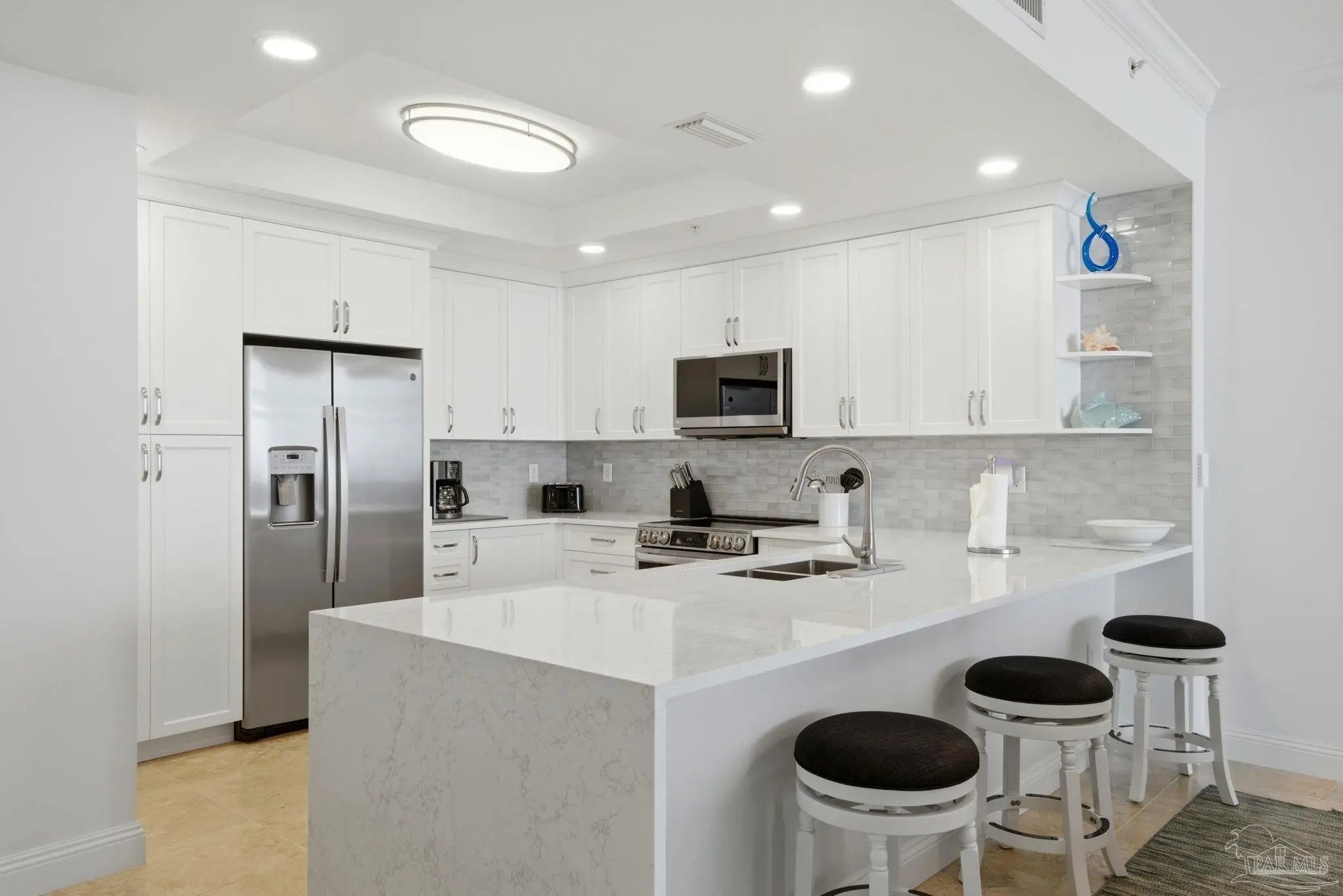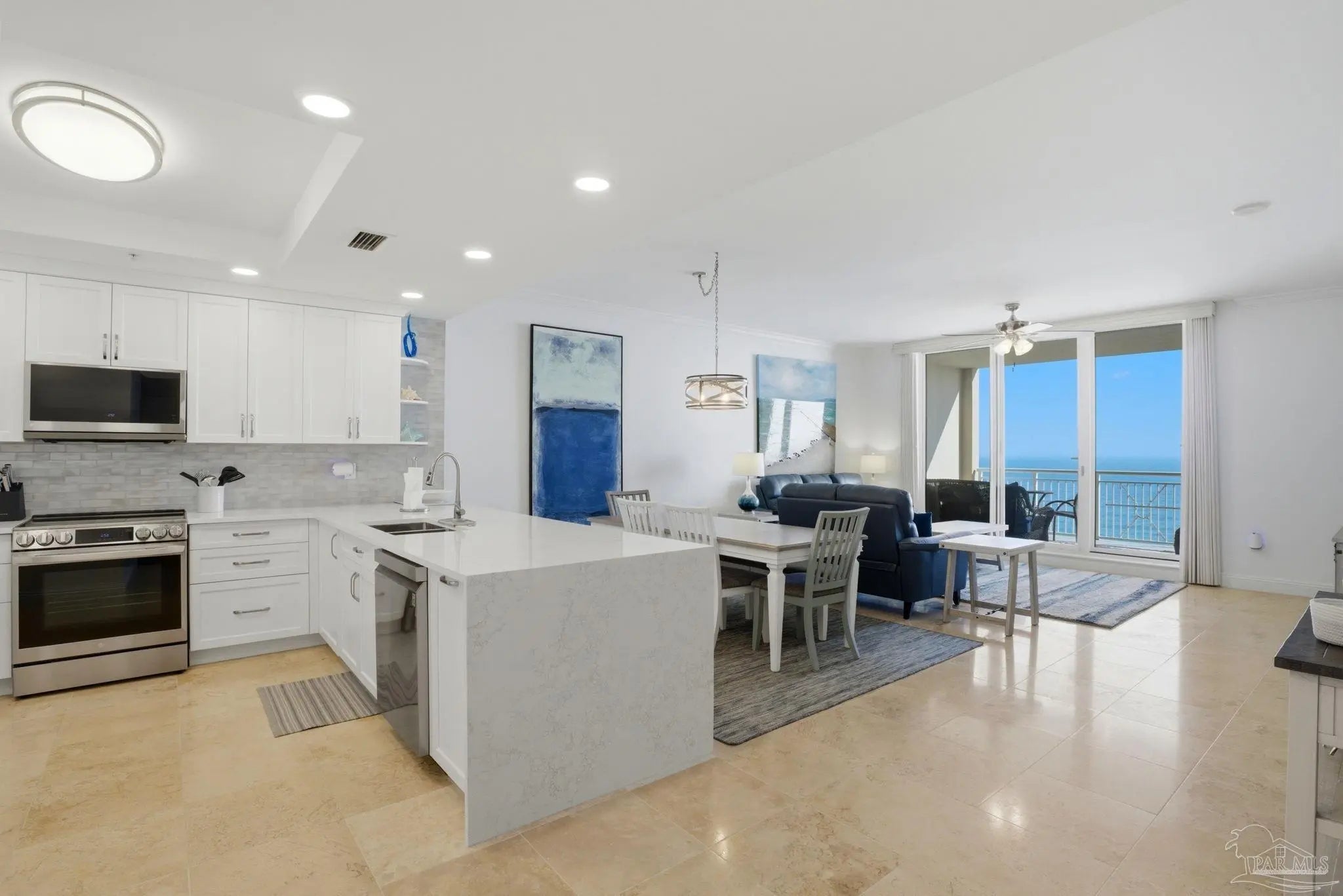 Discover your beachfront paradise at Indigo #803W, where coastal luxury meets breathtaking Gulf views on Perdido Key. The elevator will open at your 8th floor location where you will enter your private foyer before stepping into this beachfront oasis. Furnished with coastal décor & touched with true coastal elegance, this 3-bedroom, 3-bath condo is not a vacation rental, but holds the potential to be an income producer or remain a secondary residence. The open-concept layout invites you to soak in panoramic Gulf views through floor-to-ceiling windows. The fully updated kitchen shines with quartz countertops, stunning backsplash, stainless steel appliances, custom cabinetry with smooth glide pull-out shelving, & space for serving & entertaining guests. The spacious dining & living area showcases the Gulf where you have direct views overlooking the beautiful beaches. The primary suite, with direct views of the emerald waters, is an escape like none other. Step onto the beachfront balcony accessible from both the living area & primary suite, a place to enjoy a book, a beach view & the Gulf breeze. Two additional bedrooms, designed as secondary suites, provide their own slice of paradise, each opening onto a shared north-facing balcony with breathtaking views of the Intracoastal Waterway. You truly have the best views of both worlds. Designed for effortless coastal living, this residence offers both comfort & convenience with covered parking, a climate-controlled storage unit ideal for beach gear, & a recently replaced water heater (2021). Indigo, a gated 6-acre beachfront resort, features an impressive lineup of amenities including elegant lobbies, owner’s community rooms, a newly updated fitness center, a movie theater, tennis & pickleball courts, a zero-entry pool, & a relaxing hot tub. Located across from dining & shopping, this condo presents an exceptional opportunity for a personal retreat or an income-producing investment. Your place on the Gulf awaits!