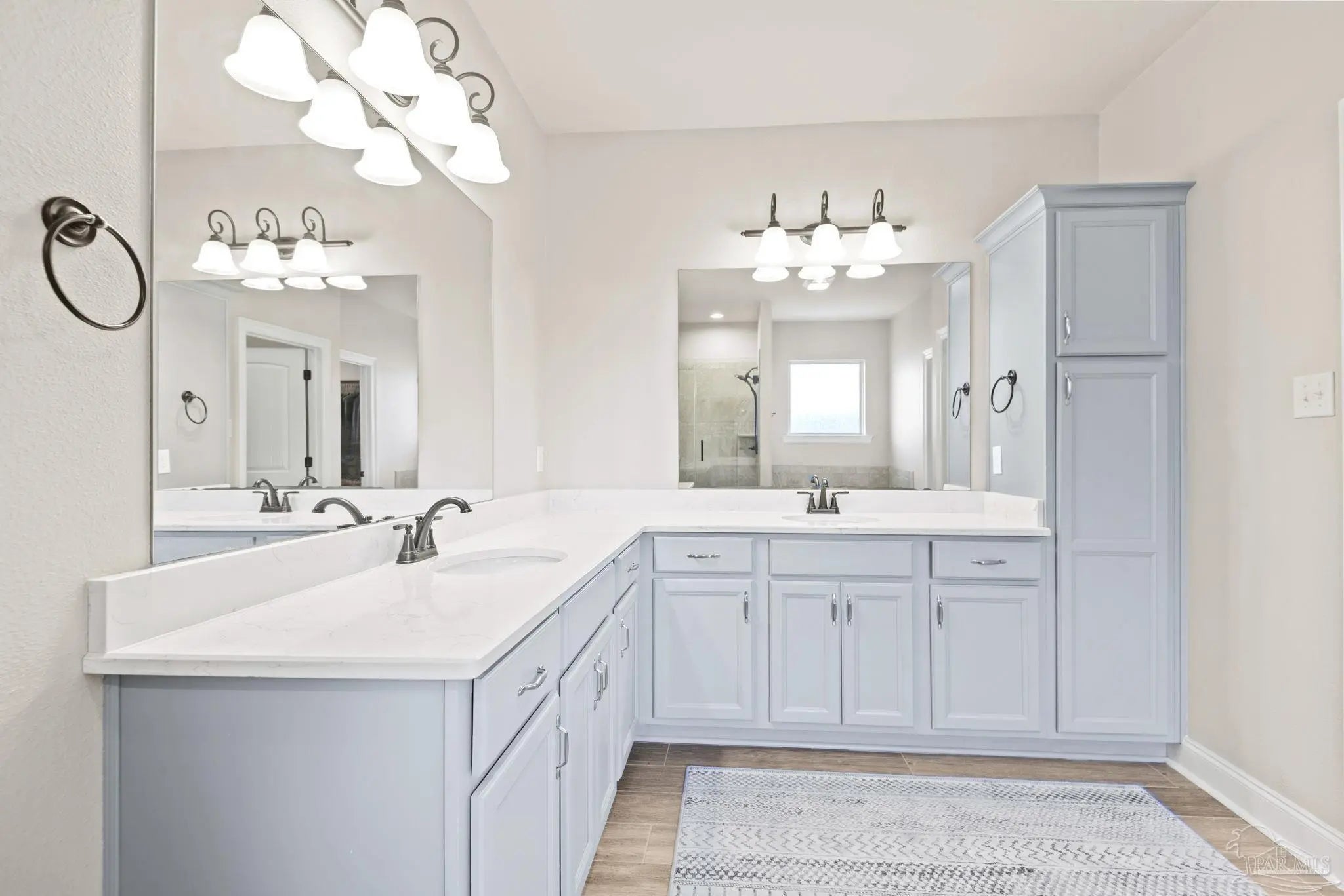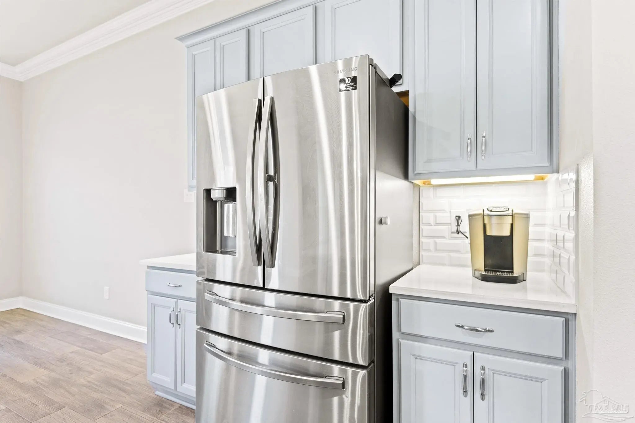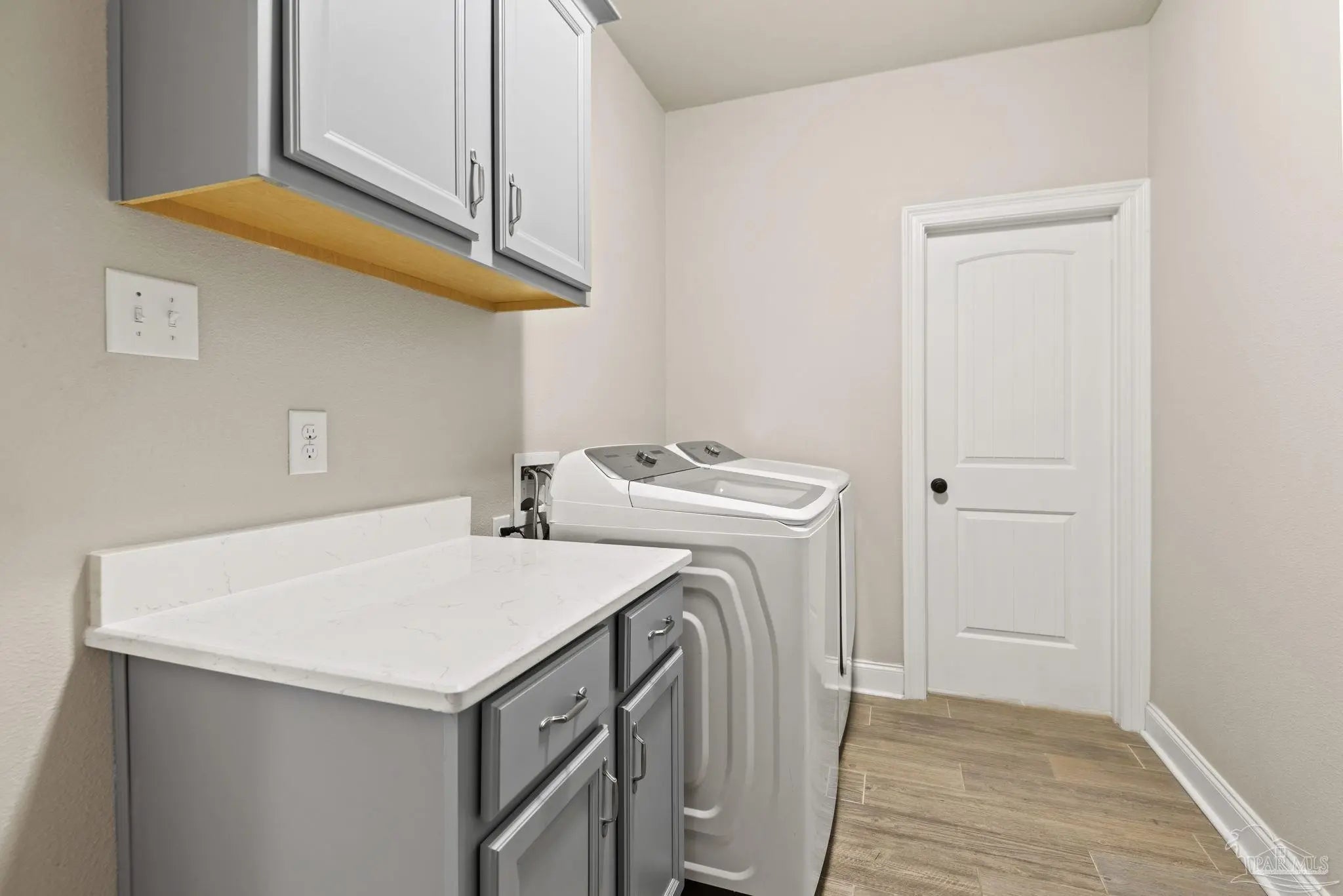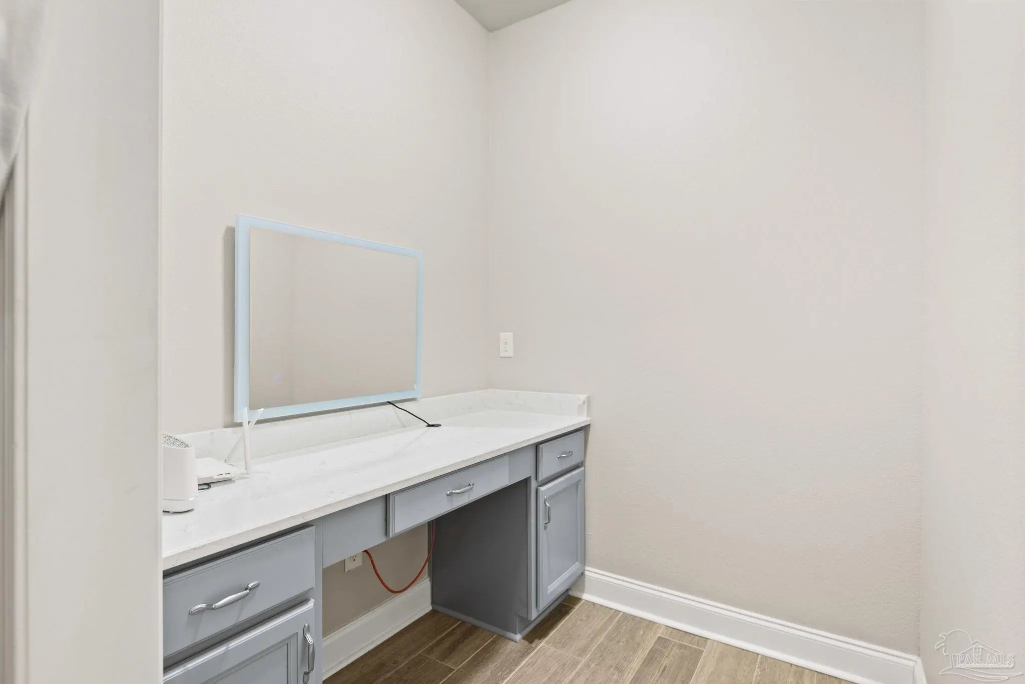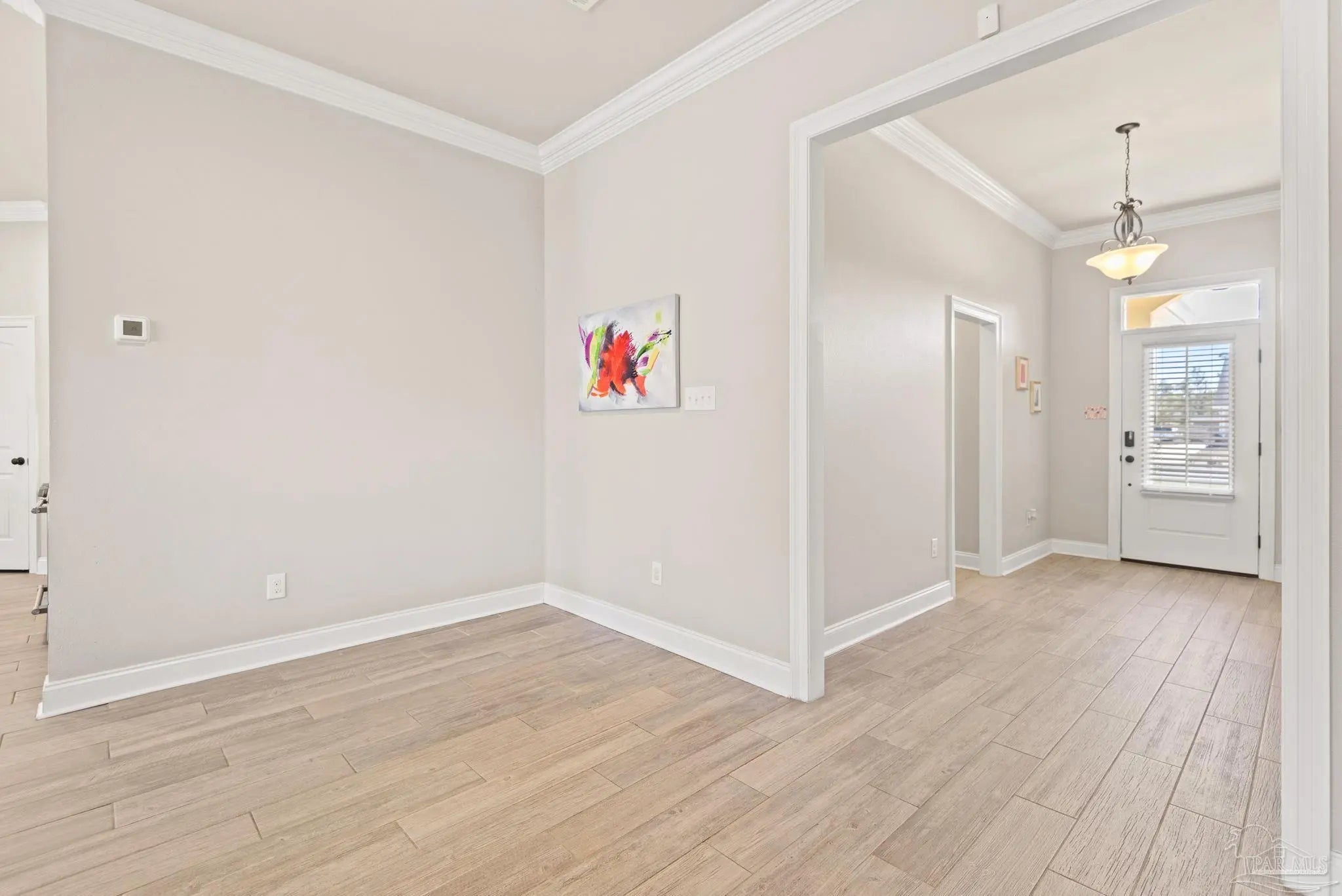 May I have the pleasure of presenting this very attractive and well-kept five-bedroom, three-bath gem tucked away in the welcoming Hawthorne Grove neighborhood of Beulah! This commanding residence is absolutely gorgeous and will check all your boxes. With over 3,000+ square feet of well-designed spaces, appealing color palettes, modern accents, and abundant natural light throughout, this home is perfect for comfort, style, and entertaining. As you step inside, high ceilings wrapped in crown molding greet you, with beautiful wood-look tile that flows into the massive grand room featuring a gas fireplace. The chef’s kitchen is a highlight, showcasing an oversized island, polished quartz countertops, stainless steel appliances, gas range, ceramic tile backsplash, and an abundance of wood cabinetry with under mount lighting. The private master suite serves as a perfect sanctuary, boasting a primary bath with wrap-around double corner vanity sinks, a walk-in tile shower, a garden soaking tub, and a walk-through closet that connects to the laundry room for convenience. The three secondary bedrooms, all generously sized with spacious closets, are located across the home. On the second level, an enormous bonus area offers flexibility as a home gym, office, man-cave, or playroom. The fifth bedroom upstairs, with a walk-in closet and full bath, is secluded and perfect for visiting guests. Step outside under the shaded, covered lanai to enjoy the wide-open backyard, ideal for outdoor dining, gardening, and family fun. Additional features include no rear neighbors, paid-for solar panels (average monthly electric bill $30), hurricane door & window protection, rain gutters, privacy fence, landscape irrigation, tankless gas water heater, and a transferable termite bond. Top-rated schools, parks, shopping, dining, stunning sugar-white beaches, and military installations are all easily accessible. Welcome Home!
