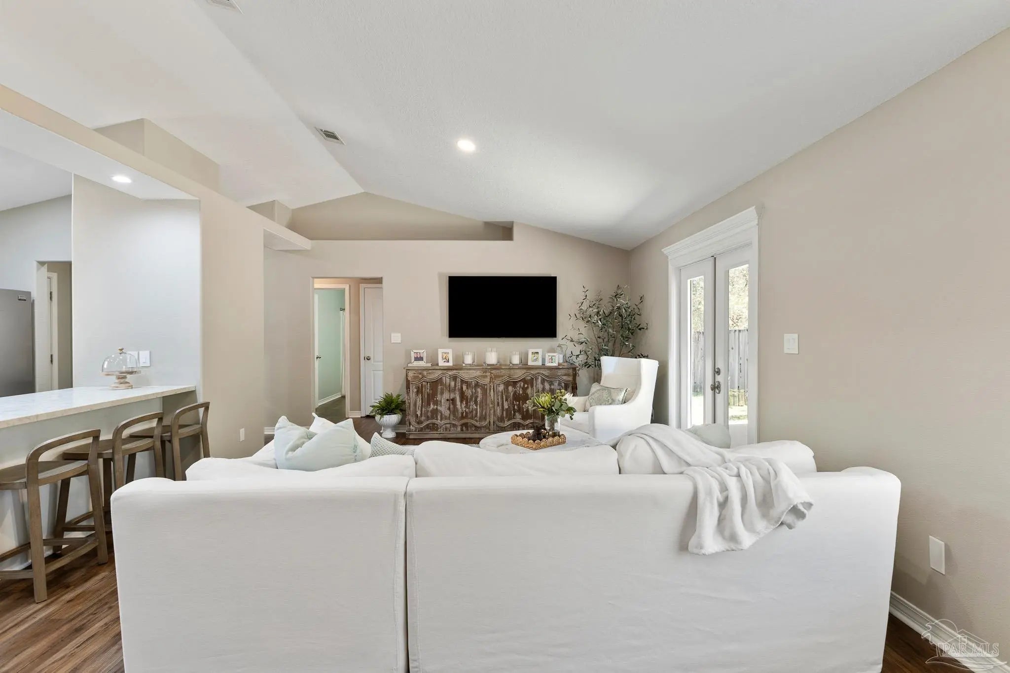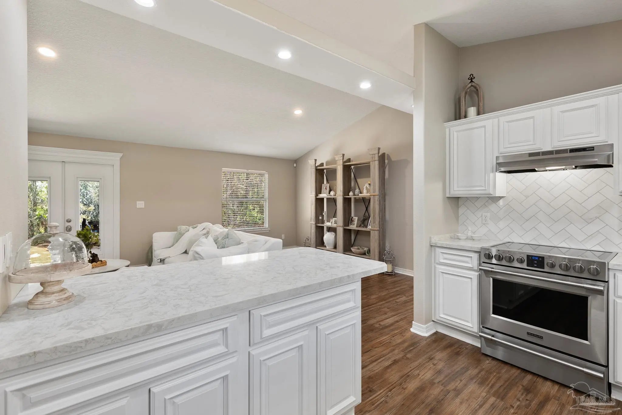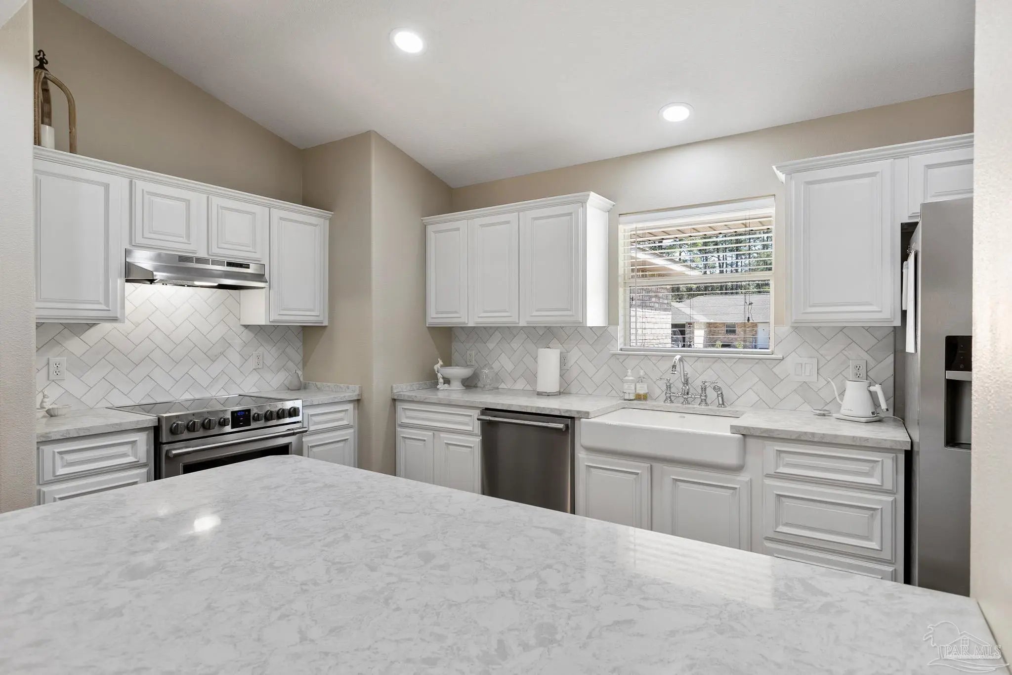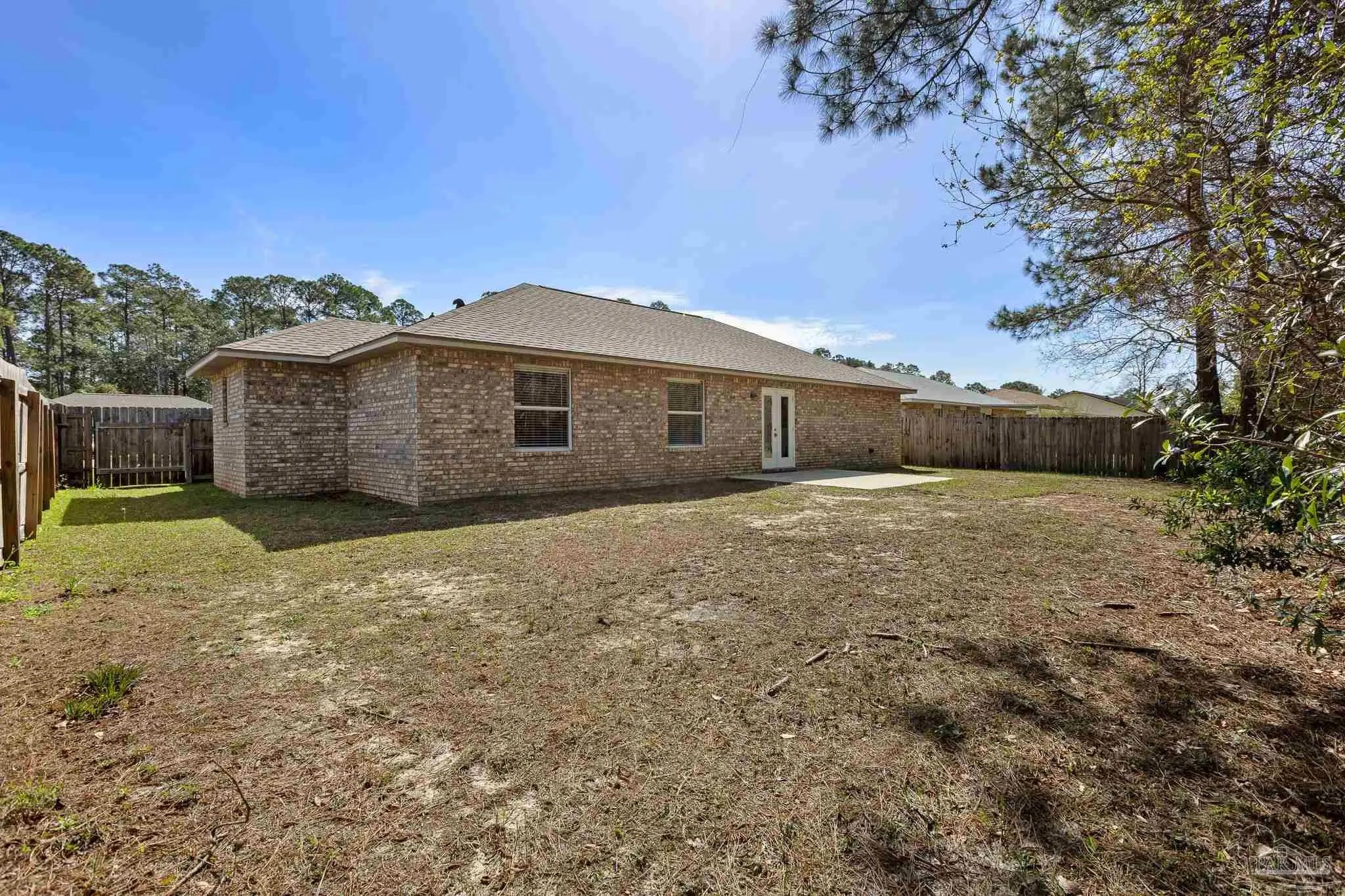 Embrace relaxed Florida living in this charming 3 bedroom, 2 bathroom home designed with comfort and light in mind. A landscaped front yard and covered entry create inviting curb appeal, while tall ceilings and abundant natural light. The updated kitchen is the heart of the home, featuring a modern tiled backsplash, stainless steel appliances, and the perfect space to enjoy morning coffee or casual meals. The primary suite offers a peaceful retreat with tray ceilings, a walk-in closet, and a private bath complete with a charming vanity and large tiled shower. A split floor plan with two additional bedrooms provide privacy. Step outside to a large fenced backyard with plenty of room to relax, entertain, garden, or let pets play. Completely move-in ready with a brand new roof, this home is an excellent opportunity for first-time buyers, a starter home, or investors, with no HOA and rental potential. Ideally located just 10 minutes from NAS Pensacola and close to shopping, dining, and new retail developments, including a Publix, while still only a short drive to the sugar-white beaches and emerald waters of the Gulf Coast, this home offers the perfect blend of comfort, convenience, and coastal lifestyle.