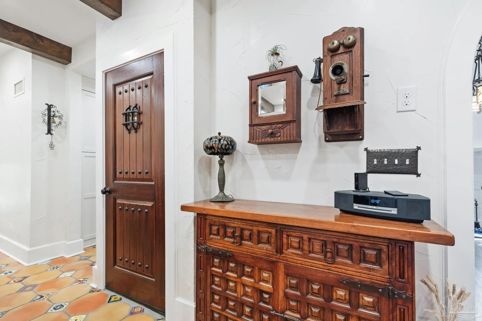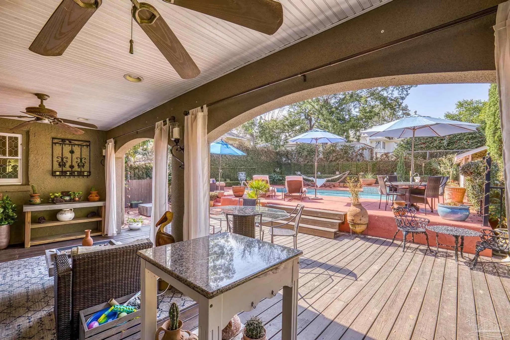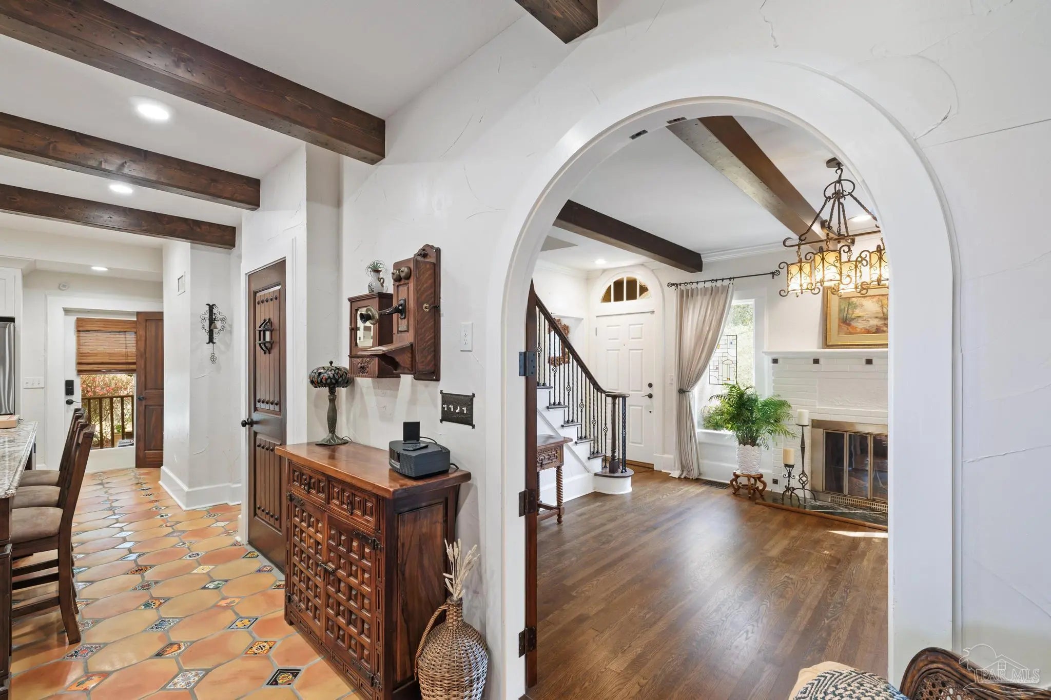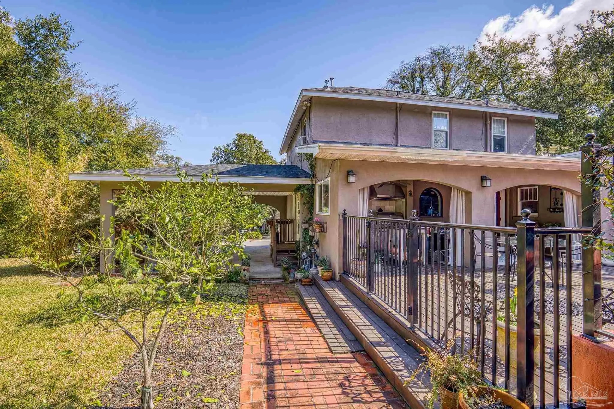 Be part of History by moving to this welcoming neighborhood in the heart of East Hill close to Bayview Park, shopping & Downtown Pensacola! To walk inside this home you’re walking into a piece of history & you just can’t beat this location. Completely updated & renovated yet maintaining its allure & Spanish Colonial charm-this is truly the “Belle of the Ball”. Its style is apparent from the moment you arrive. Then when you walk inside-you will feel like you stepped back in time. This meticulously preserved gem seamlessly blends timeless elegance with modern comforts, offering a unique opportunity to own a piece of the city's rich heritage. Original-refinished hardwood floors, soaring ceilings adorned with rustic beams, custom solid arched doors, intricate plasterwork & graceful arches exude grace & charm. Spacious & Airy-Abundant natural light floods the interior, creating an inviting atmosphere. Gourmet kitchen with top-of-the-line appliances, updated bathrooms, updated electrical & plumbing ensure modern conveniences. The kitchen overlooks the backyard with large kitchen island, gas range with pot-filler, granite, lots of cabinets & custom pantry between the dining room & kitchen. There is a formal living room with fireplace & traditional side parlor, formal dining room, custom staircase leading to the 2nd floor & large basement which is great for storage. Then-Your Private Oasis-the covered patio & outdoor kitchen overlook the large patio, fire pit, in-ground gunite pool & heated spillover hot-tub. The Lushly landscaped courtyard provides a tranquil retreat, perfect for al fresco dining or simply enjoying the Florida sunshine. There is a screened potting shed-great location for a whole house generator, fruit trees & plenty of room for a garden in the open lawn adjacent to historic trees & large covered carport. This is more than just a house-it’s a timeless treasure that whispers stories of the past while offering a luxurious lifestyle of the present.