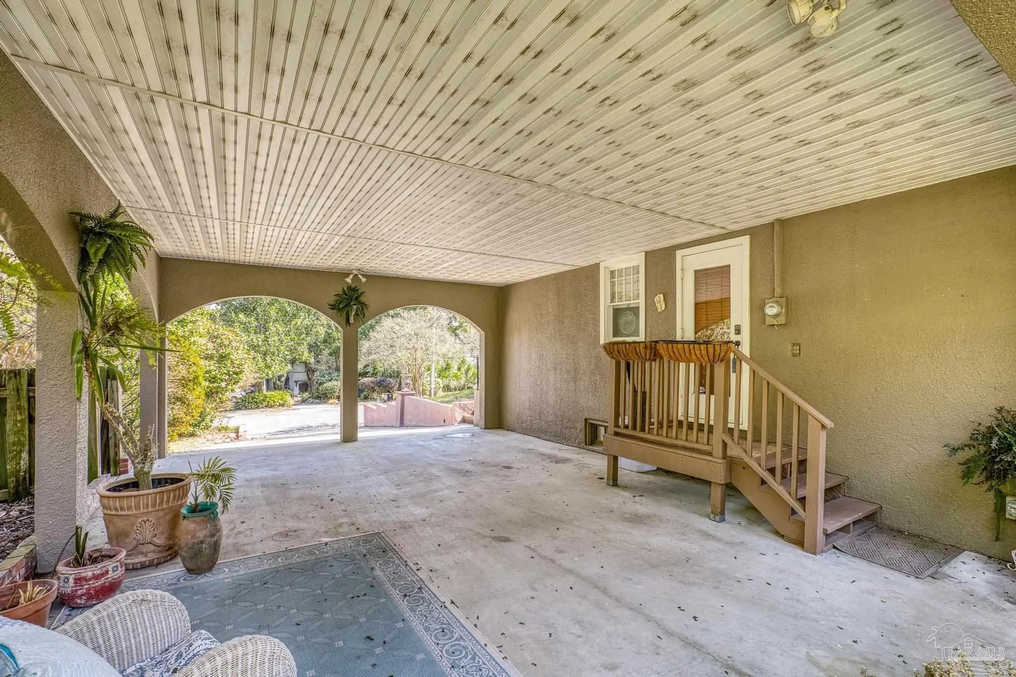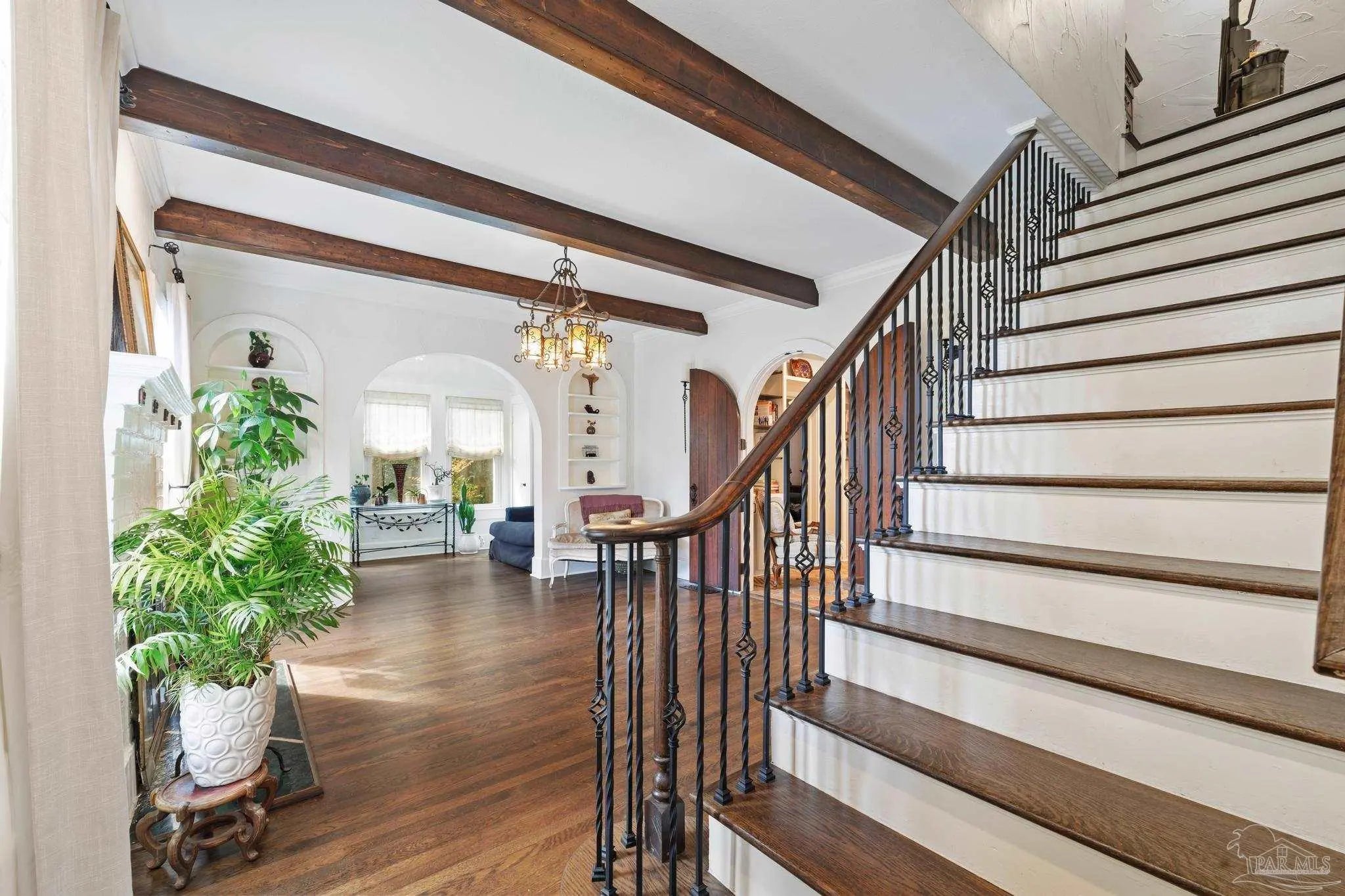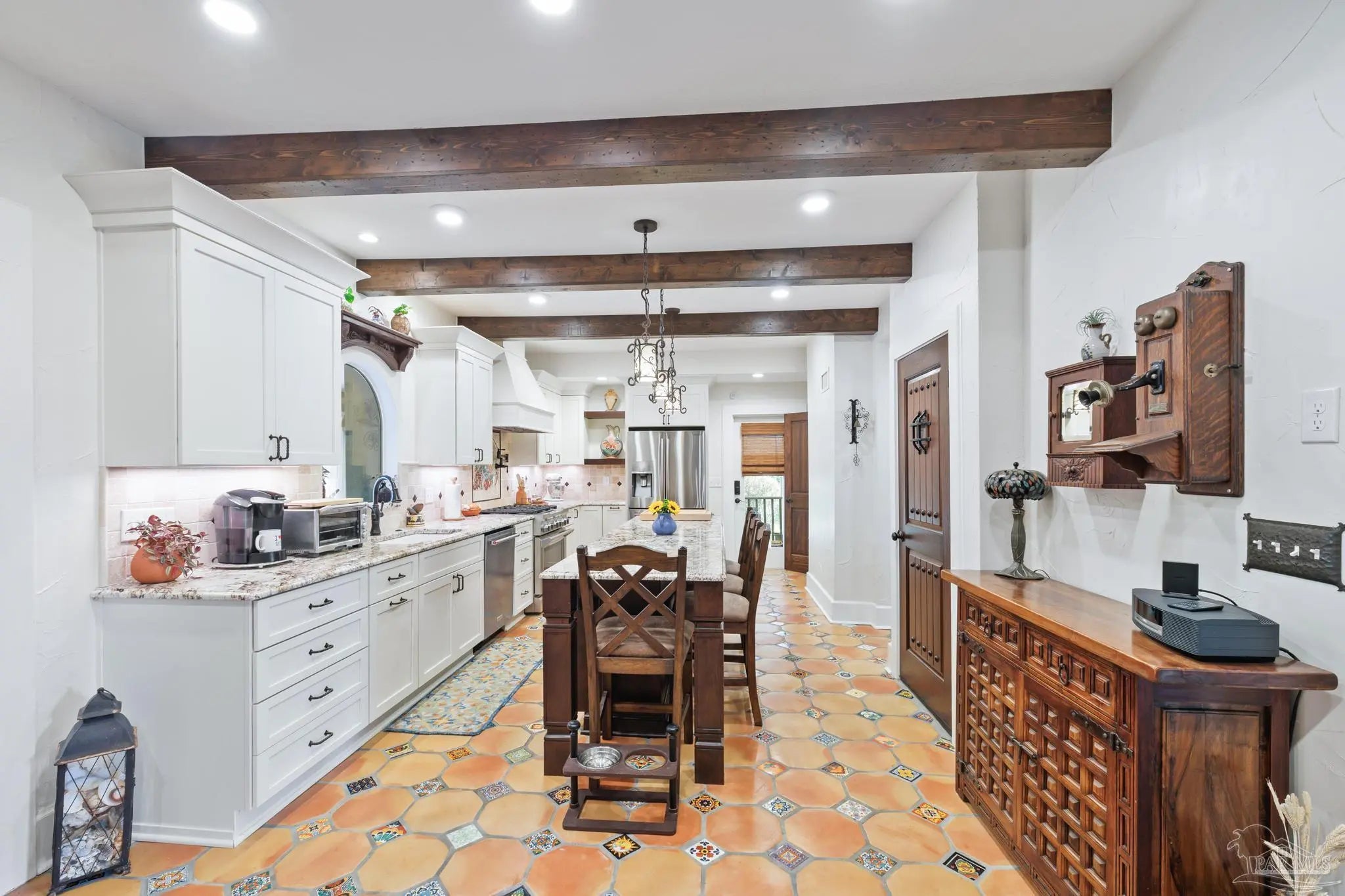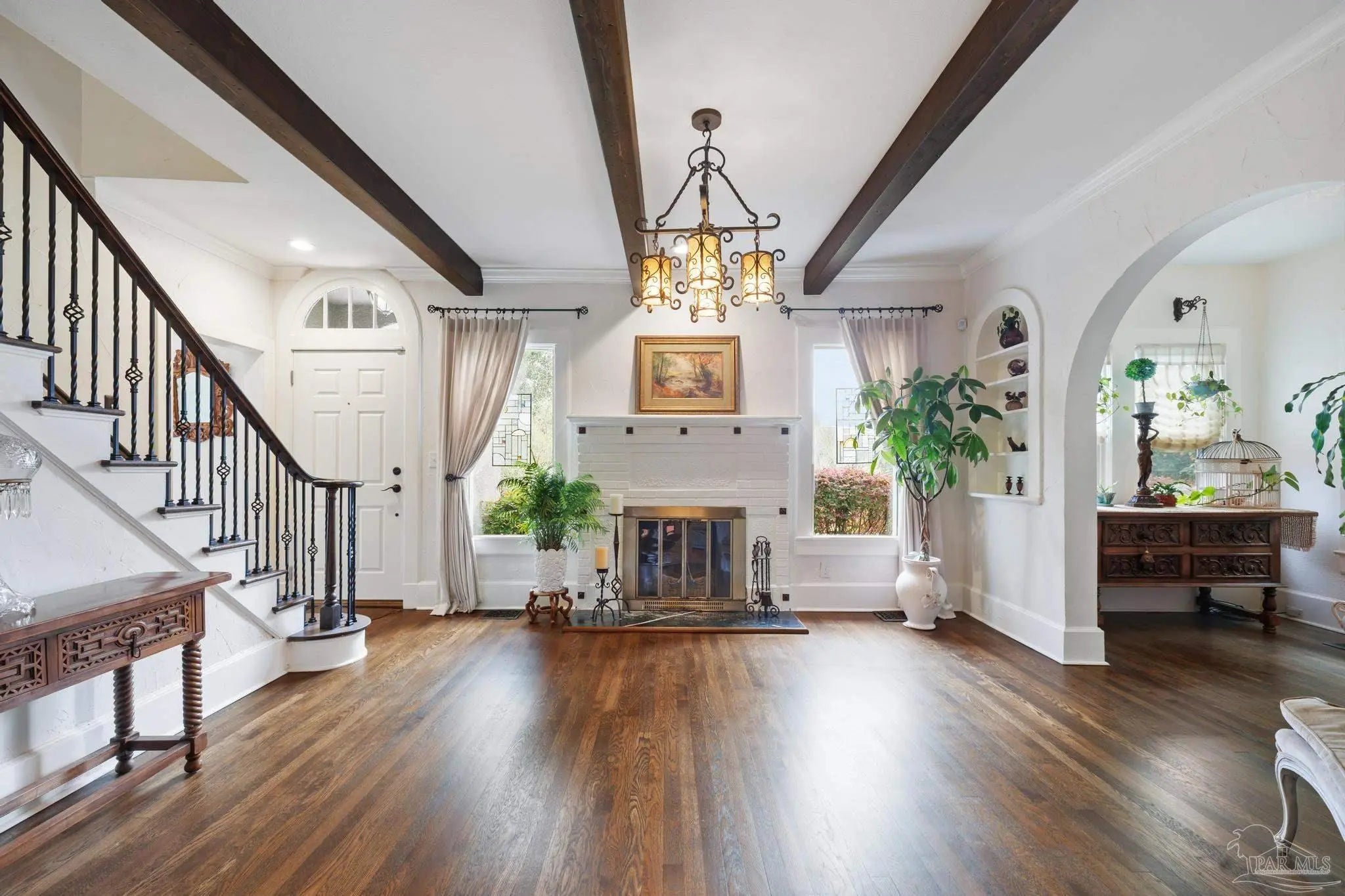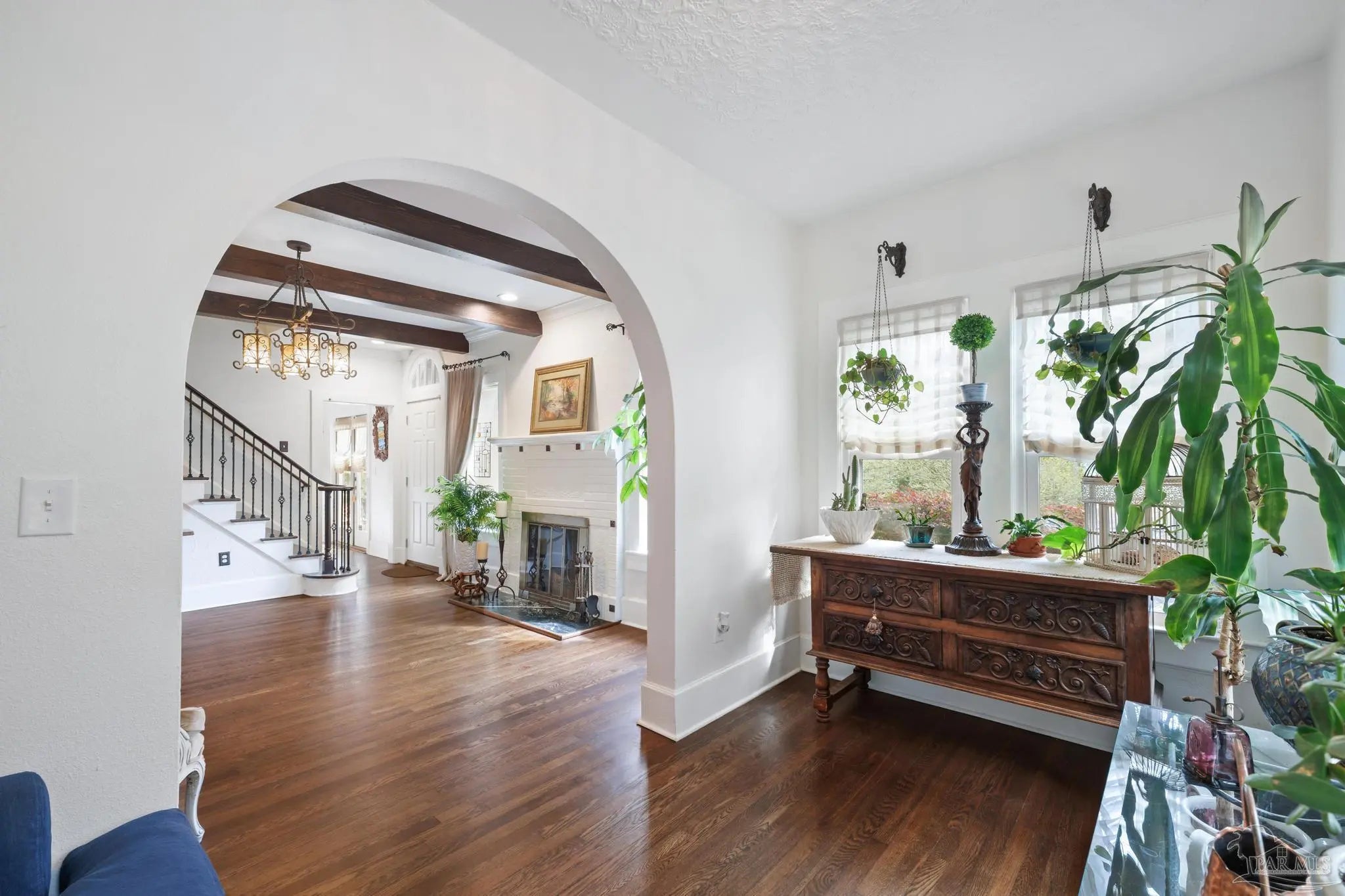 Be part of History by moving to this welcoming neighborhood in the heart of East Hill close to Bayview Park, shopping & Downtown Pensacola! To walk inside this home you’re walking into a piece of history & you just can’t beat this location. Completely updated & renovated yet maintaining its allure & Spanish Colonial charm-this is truly the “Belle of the Ball”. Its style is apparent from the moment you arrive. Then when you walk inside-you will feel like you stepped back in time. This meticulously preserved gem seamlessly blends timeless elegance with modern comforts, offering a unique opportunity to own a piece of the city's rich heritage. Original-refinished hardwood floors, soaring ceilings adorned with rustic beams, custom solid arched doors, intricate plasterwork & graceful arches exude grace & charm. Spacious & Airy-Abundant natural light floods the interior, creating an inviting atmosphere. Gourmet kitchen with top-of-the-line appliances, updated bathrooms, updated electrical & plumbing ensure modern conveniences. The kitchen overlooks the backyard with large kitchen island, gas range with pot-filler, granite, lots of cabinets & custom pantry between the dining room & kitchen. There is a formal living room with fireplace & traditional side parlor, formal dining room, custom staircase leading to the 2nd floor & large basement which is great for storage. Then-Your Private Oasis-the covered patio & outdoor kitchen overlook the large patio, fire pit, in-ground gunite pool & heated spillover hot-tub. The Lushly landscaped courtyard provides a tranquil retreat, perfect for al fresco dining or simply enjoying the Florida sunshine. There is a screened potting shed-great location for a whole house generator, fruit trees & plenty of room for a garden in the open lawn adjacent to historic trees & large covered carport. This is more than just a house-it’s a timeless treasure that whispers stories of the past while offering a luxurious lifestyle of the present.