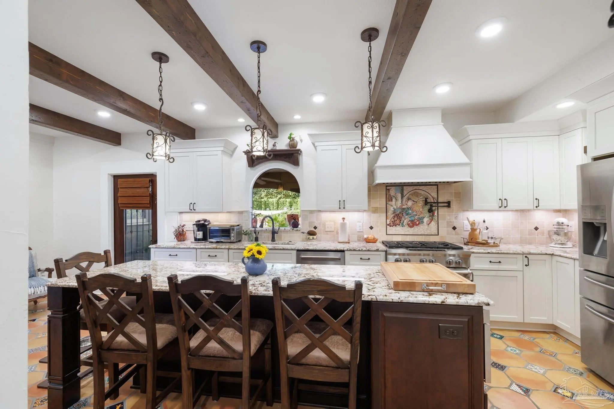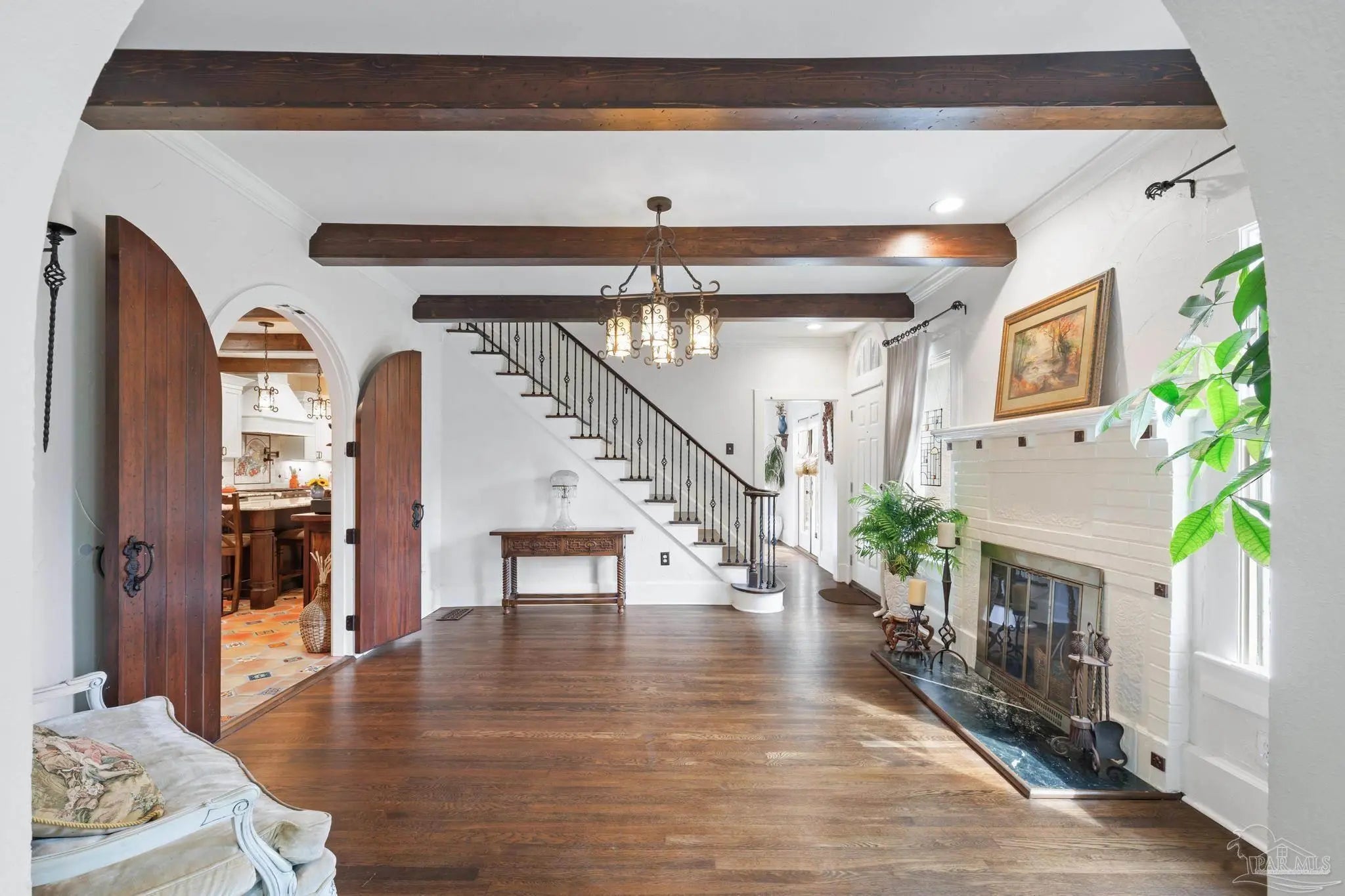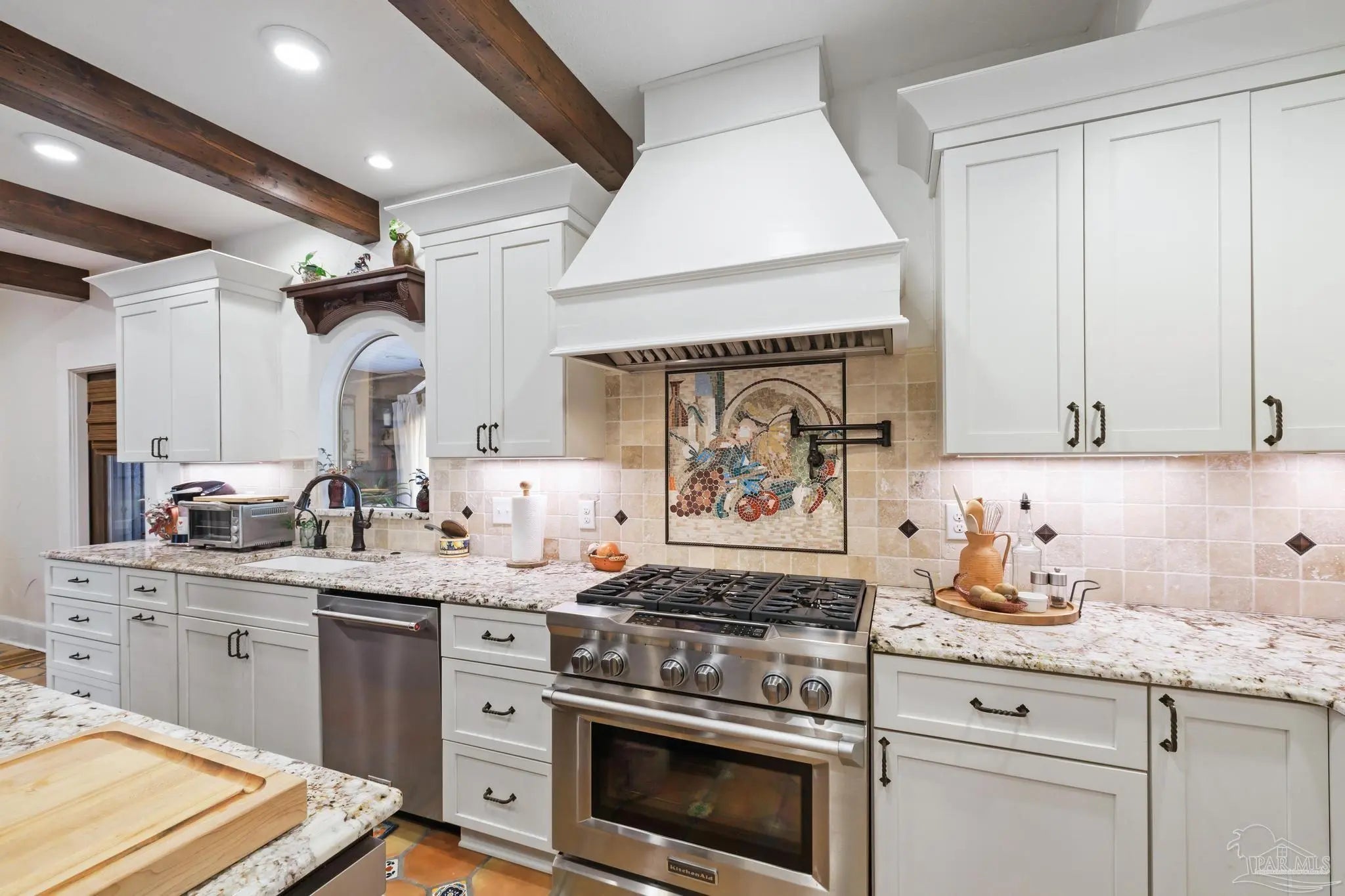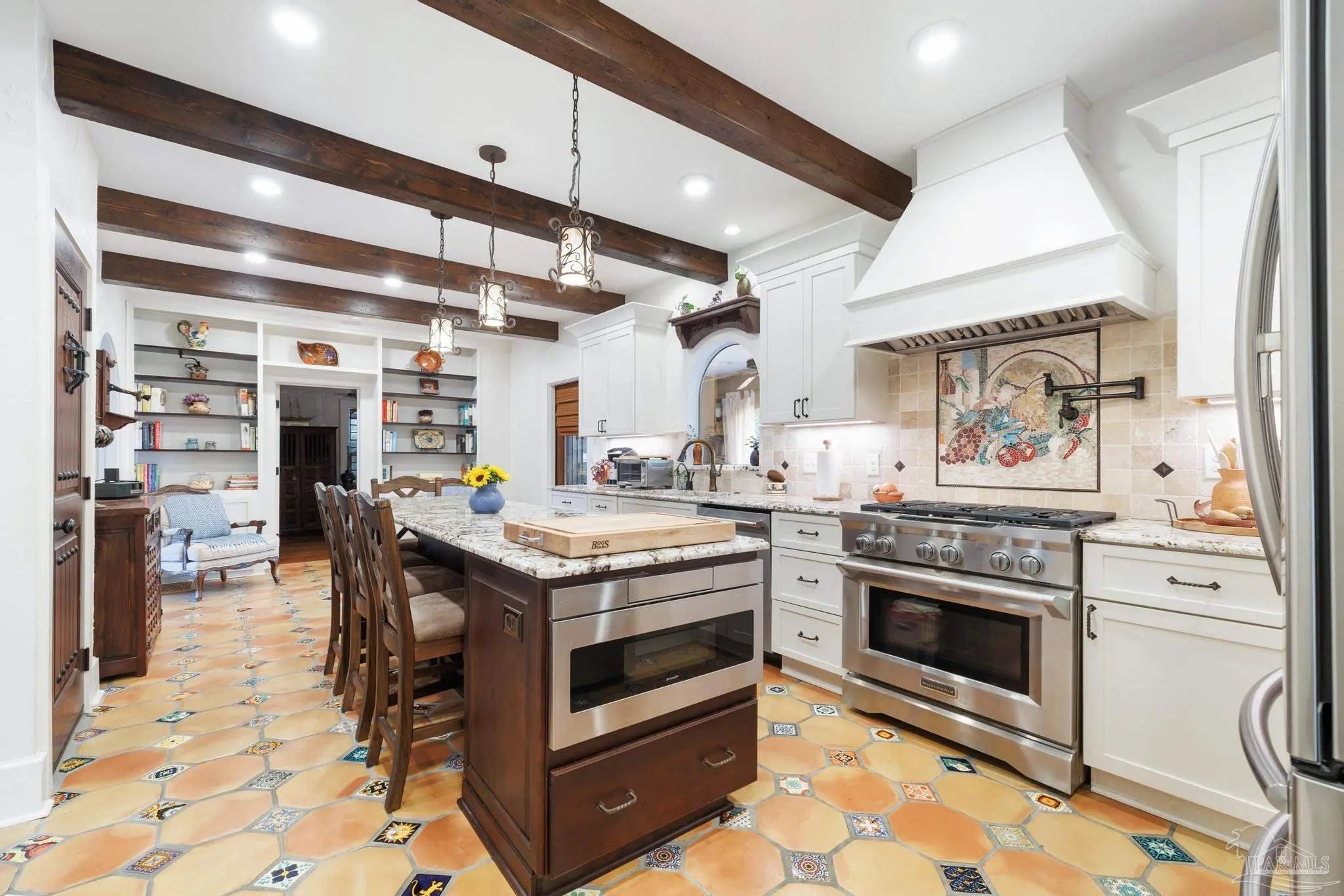 Be part of History by moving to this welcoming neighborhood in the heart of East Hill close to Bayview Park, shopping & Downtown Pensacola! To walk inside this home you’re walking into a piece of history & you just can’t beat this location. Completely updated & renovated yet maintaining its allure & Spanish Colonial charm-this is truly the “Belle of the Ball”. Its style is apparent from the moment you arrive. Then when you walk inside-you will feel like you stepped back in time. This meticulously preserved gem seamlessly blends timeless elegance with modern comforts, offering a unique opportunity to own a piece of the city's rich heritage. Original-refinished hardwood floors, soaring ceilings adorned with rustic beams, custom solid arched doors, intricate plasterwork & graceful arches exude grace & charm. Spacious & Airy-Abundant natural light floods the interior, creating an inviting atmosphere. Gourmet kitchen with top-of-the-line appliances, updated bathrooms, updated electrical & plumbing ensure modern conveniences. The kitchen overlooks the backyard with large kitchen island, gas range with pot-filler, granite, lots of cabinets & custom pantry between the dining room & kitchen. There is a formal living room with fireplace & traditional side parlor, formal dining room, custom staircase leading to the 2nd floor & large basement which is great for storage. Then-Your Private Oasis-the covered patio & outdoor kitchen overlook the large patio, fire pit, in-ground gunite pool & heated spillover hot-tub. The Lushly landscaped courtyard provides a tranquil retreat, perfect for al fresco dining or simply enjoying the Florida sunshine. There is a screened potting shed-great location for a whole house generator, fruit trees & plenty of room for a garden in the open lawn adjacent to historic trees & large covered carport. This is more than just a house-it’s a timeless treasure that whispers stories of the past while offering a luxurious lifestyle of the present.