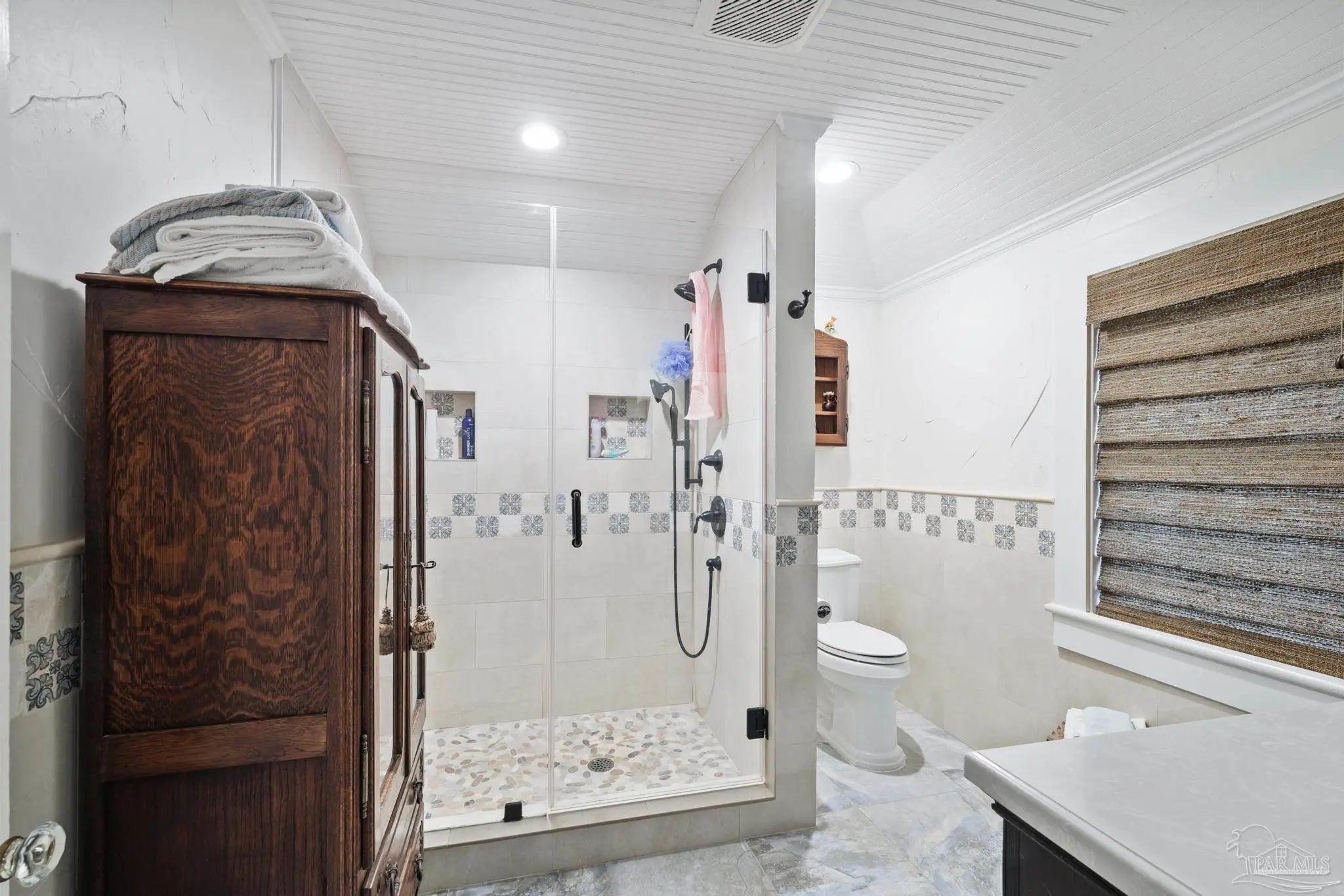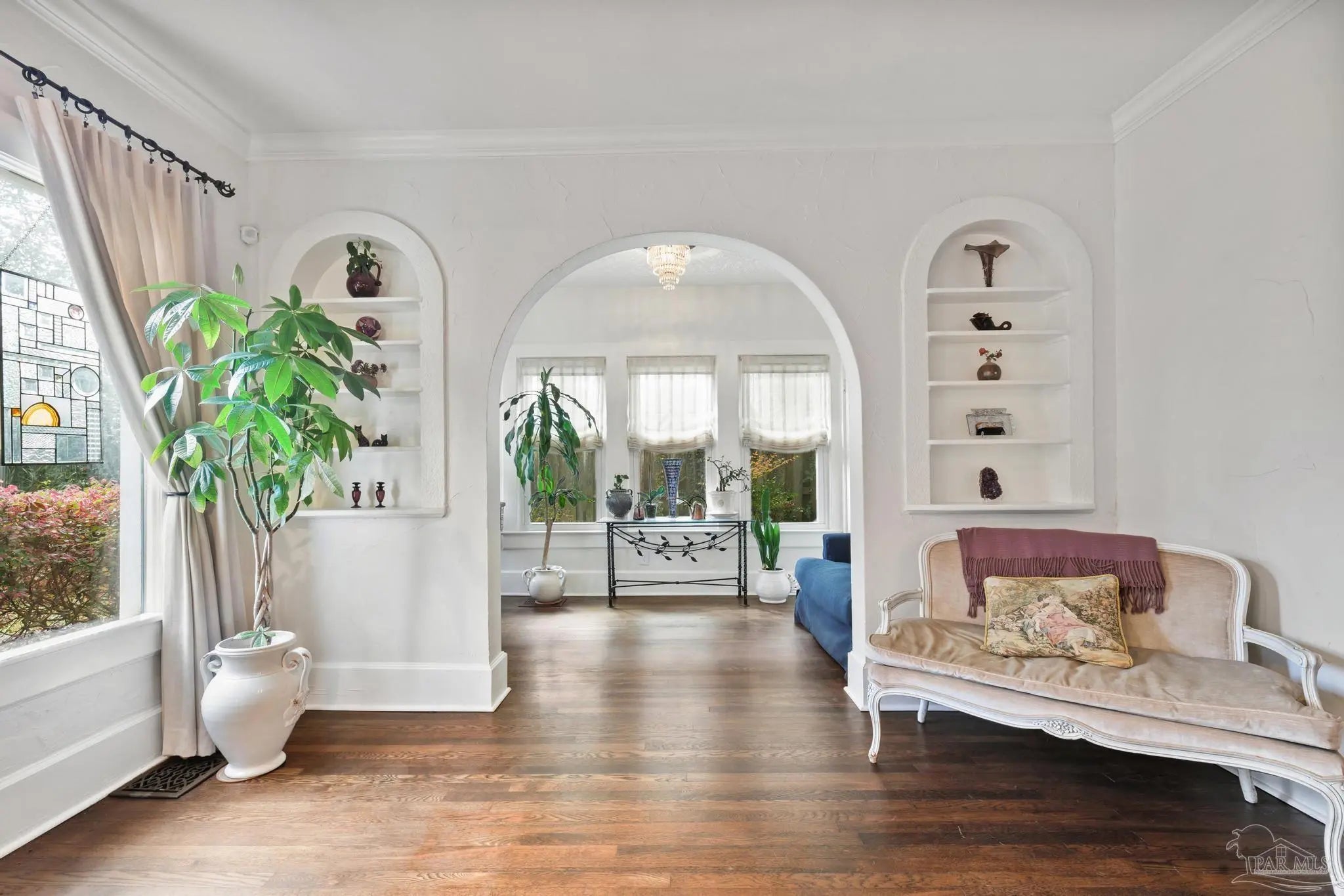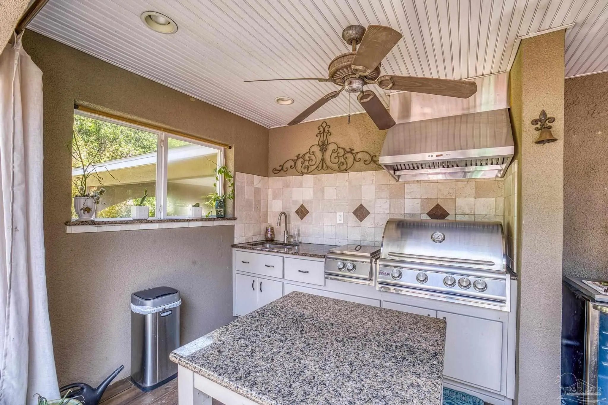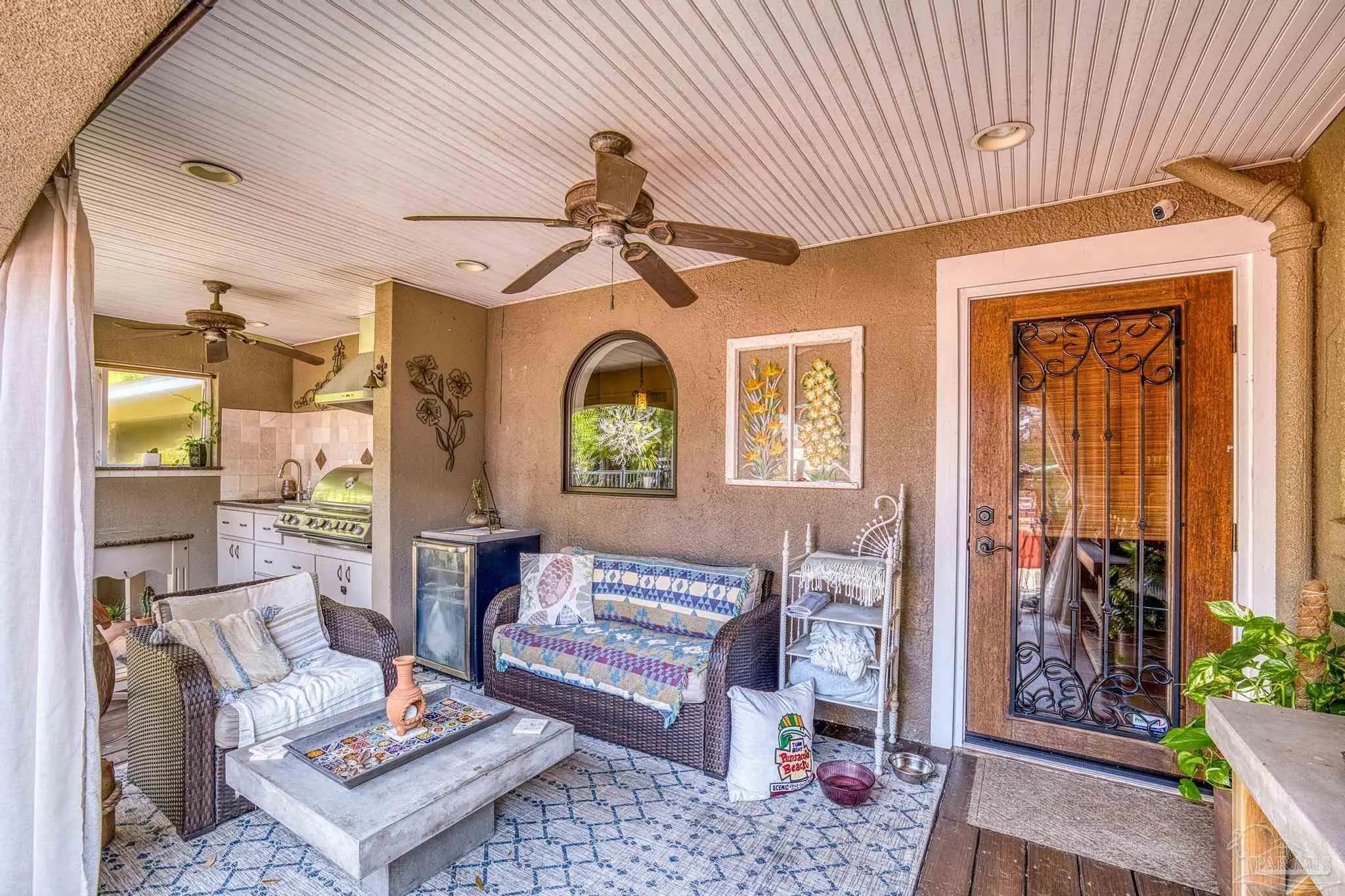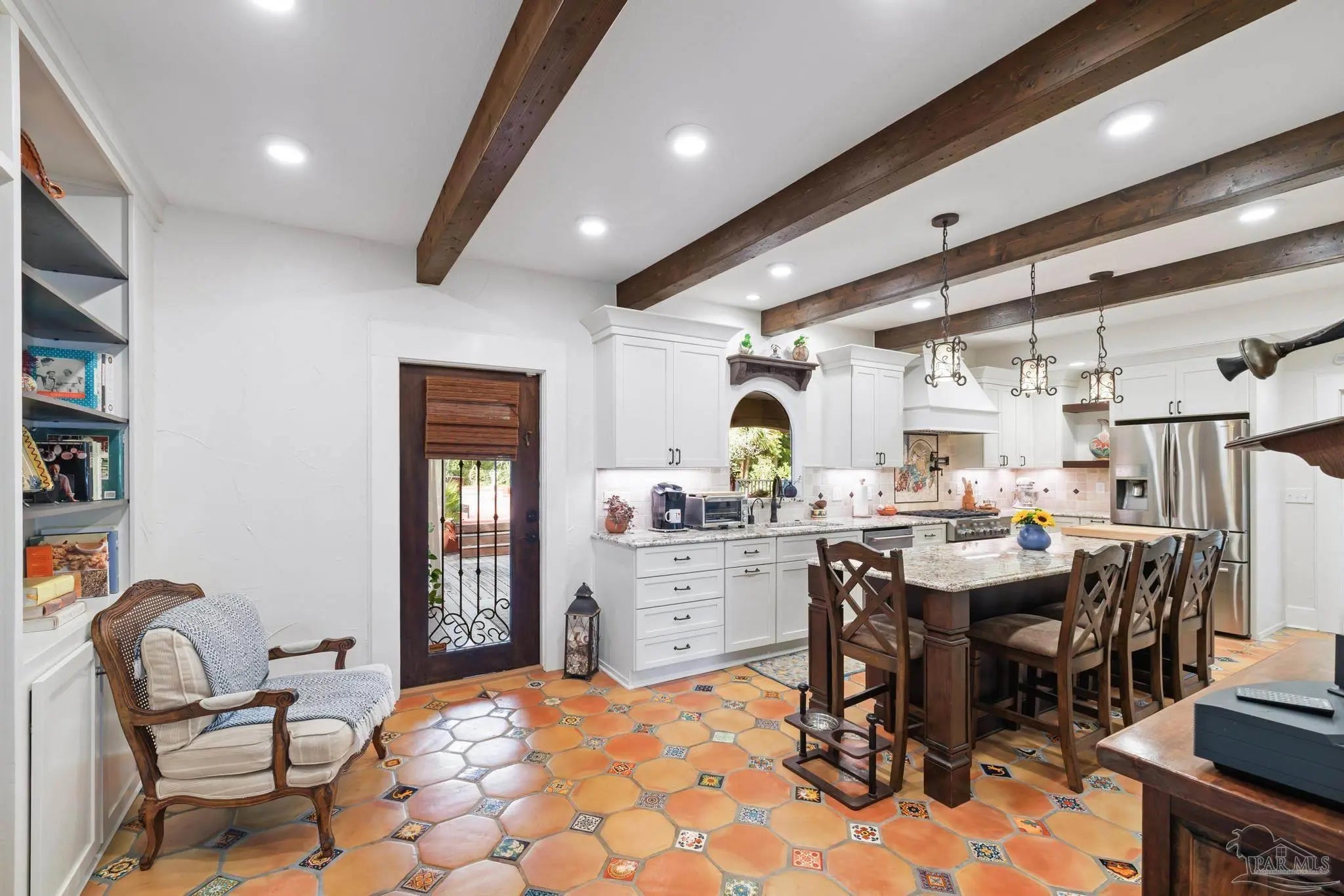 Be part of History by moving to this welcoming neighborhood in the heart of East Hill close to Bayview Park, shopping & Downtown Pensacola! To walk inside this home you’re walking into a piece of history & you just can’t beat this location. Completely updated & renovated yet maintaining its allure & Spanish Colonial charm-this is truly the “Belle of the Ball”. Its style is apparent from the moment you arrive. Then when you walk inside-you will feel like you stepped back in time. This meticulously preserved gem seamlessly blends timeless elegance with modern comforts, offering a unique opportunity to own a piece of the city's rich heritage. Original-refinished hardwood floors, soaring ceilings adorned with rustic beams, custom solid arched doors, intricate plasterwork & graceful arches exude grace & charm. Spacious & Airy-Abundant natural light floods the interior, creating an inviting atmosphere. Gourmet kitchen with top-of-the-line appliances, updated bathrooms, updated electrical & plumbing ensure modern conveniences. The kitchen overlooks the backyard with large kitchen island, gas range with pot-filler, granite, lots of cabinets & custom pantry between the dining room & kitchen. There is a formal living room with fireplace & traditional side parlor, formal dining room, custom staircase leading to the 2nd floor & large basement which is great for storage. Then-Your Private Oasis-the covered patio & outdoor kitchen overlook the large patio, fire pit, in-ground gunite pool & heated spillover hot-tub. The Lushly landscaped courtyard provides a tranquil retreat, perfect for al fresco dining or simply enjoying the Florida sunshine. There is a screened potting shed-great location for a whole house generator, fruit trees & plenty of room for a garden in the open lawn adjacent to historic trees & large covered carport. This is more than just a house-it’s a timeless treasure that whispers stories of the past while offering a luxurious lifestyle of the present.