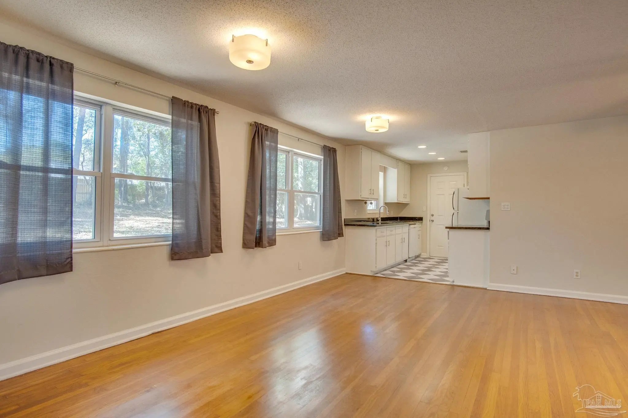 Freshly remodeled 3-bedroom, 2-bath charmer situated on a spacious 0.37-acre lot! Step inside to find beautiful original hardwood floors and a welcoming, oversized living room perfect for relaxing or entertaining. Just off the living room is a bright and airy dining area that flows nicely into the updated kitchen. The remodeled galley kitchen features new vinyl flooring, black granite countertops, freshly painted cabinetry, and modern brushed nickel hardware. A secondary exterior door off the kitchen provides convenient access to the carport and expansive backyard, offering plenty of space for outdoor activities, gardening, or future additions. The left side of the home includes three comfortable bedrooms and a hall guest bathroom with a new vanity. The primary bedroom suite is located at the rear of the home and includes a private full bathroom with a tiled shower and updated vanity. Additional highlights include energy-efficient double-pane vinyl windows throughout and a HVAC system less than 3 years old for added comfort and peace of mind. With its recent updates, generous lot size, and affordable price point, this home offers exceptional value and is ready for its new owners.
