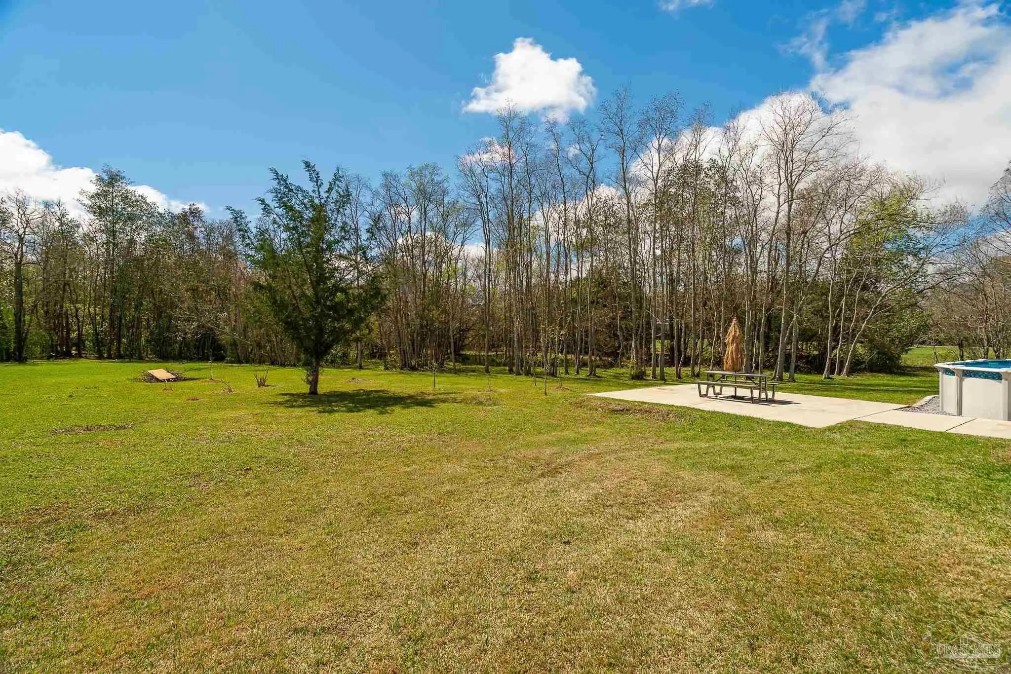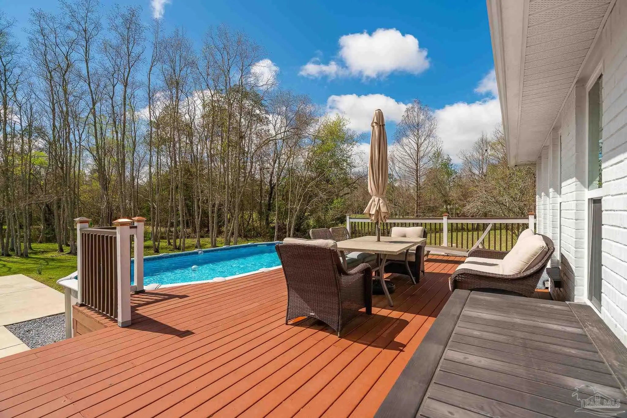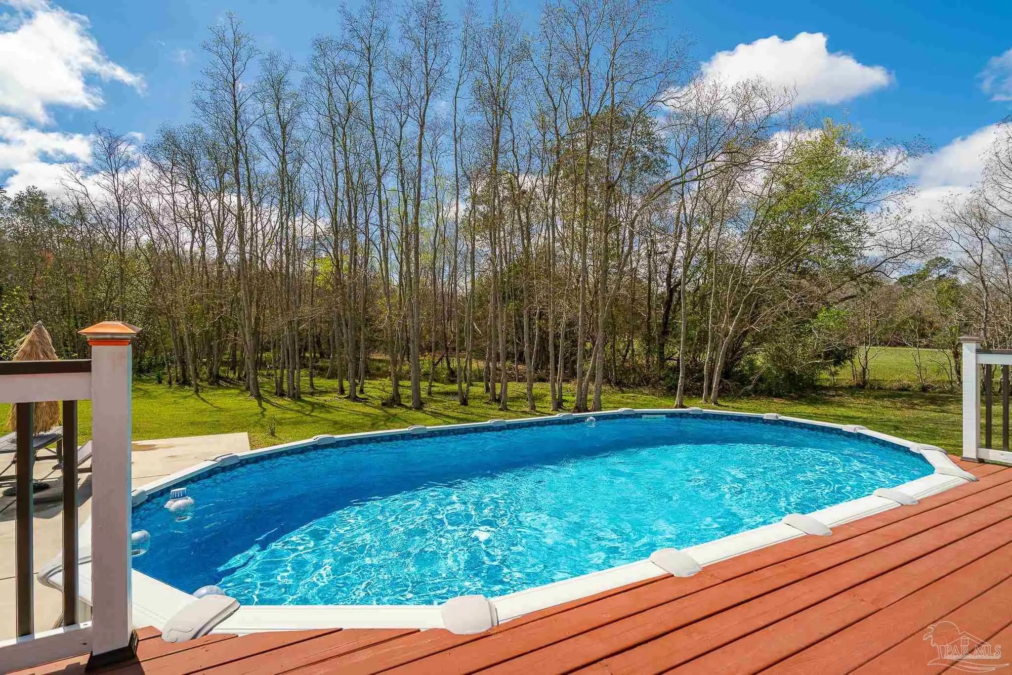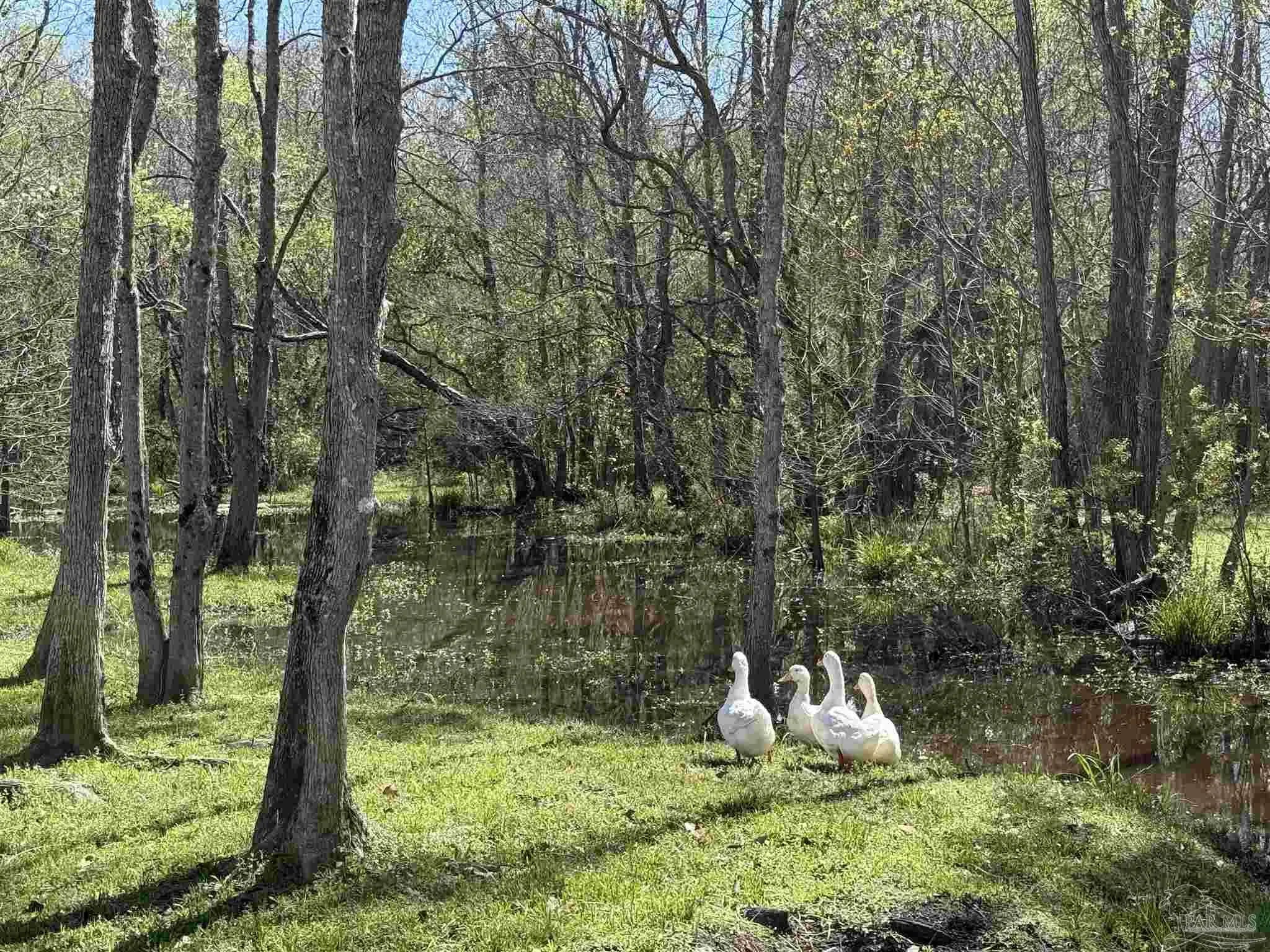 Welcome to this stunning, remodeled home on 2.09 acres in the desirable Meander Farms subdivision, offering privacy and a peaceful setting with convenient access to Navy Federal, I-10, shopping, and dining. This 4-bedroom, 2.5-bathroom home features designer paint colors, architectural details such as arched windows, and a thoughtfully designed split floor plan. Natural light fills the main living areas, where luxury vinyl plank flooring, vaulted ceilings, and recessed lighting create a bright and inviting atmosphere. The living and dining spaces flow seamlessly into the kitchen, providing an ideal layout for both everyday living and entertaining. The kitchen blends style and functionality with granite countertops, Espresso shaker-style cabinetry, stainless steel appliances, contemporary hardware, and a center island with breakfast bar seating. The primary suite offers a comfortable retreat with double vanities featuring granite countertops, a spacious tiled shower, and a walk-in closet. Additional bedrooms are positioned on the opposite side of the home and share a full bathroom, offering flexibility for guests, a home office, or additional living needs. Step outside to the covered patio overlooking the backyard, where an above-ground pool with decking and surrounding landscaping creates a relaxing outdoor setting. With more than two acres, the property provides plenty of room to unwind, host gatherings, or simply enjoy the quiet of country living while enjoying the backyard creek with swans, turtles, and geese, and still remaining close to town. Additional highlights include an oversized three-car garage with space for the outdoor enthusiast's gear and a roof replaced in 2021 for added peace of mind.