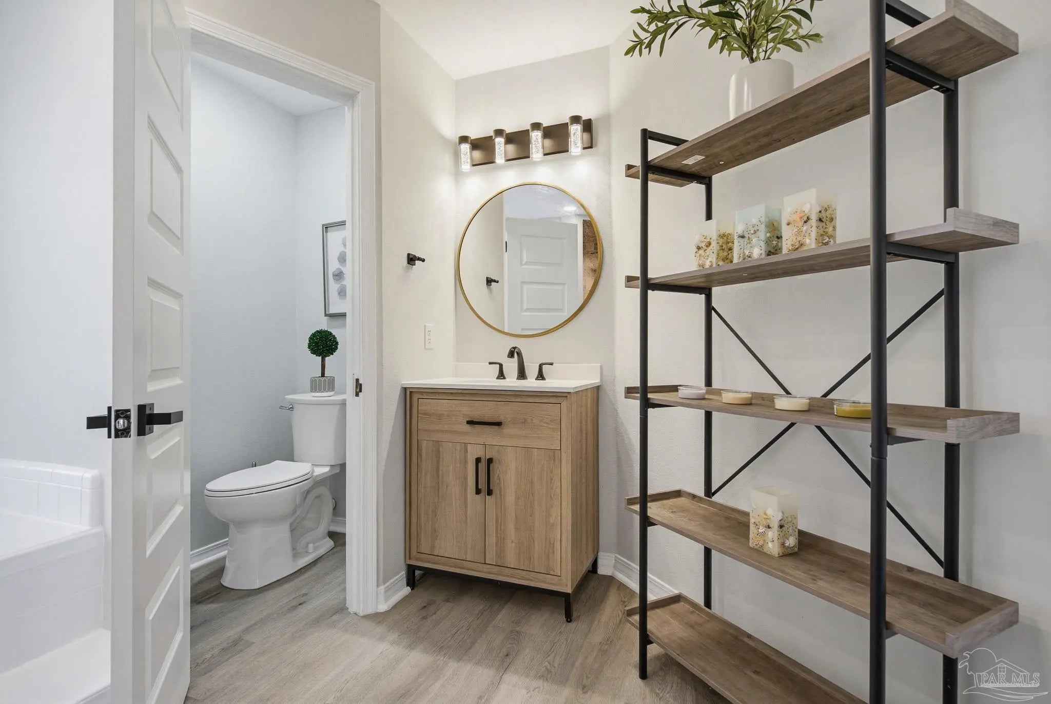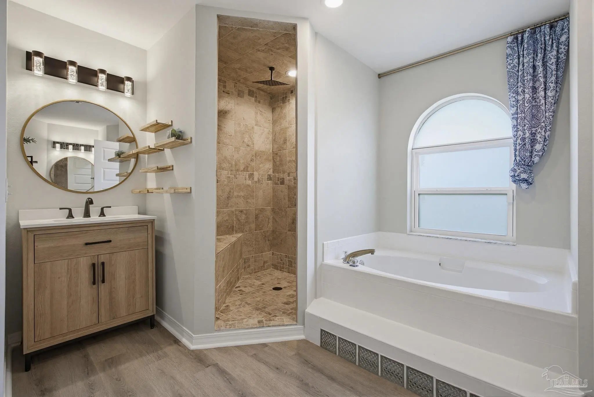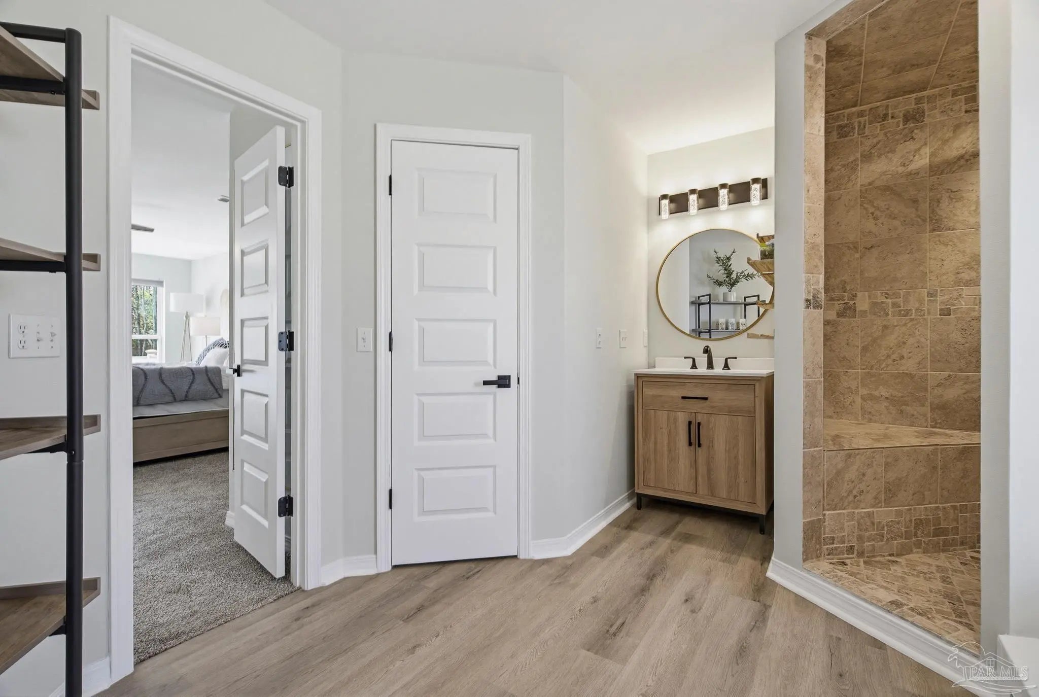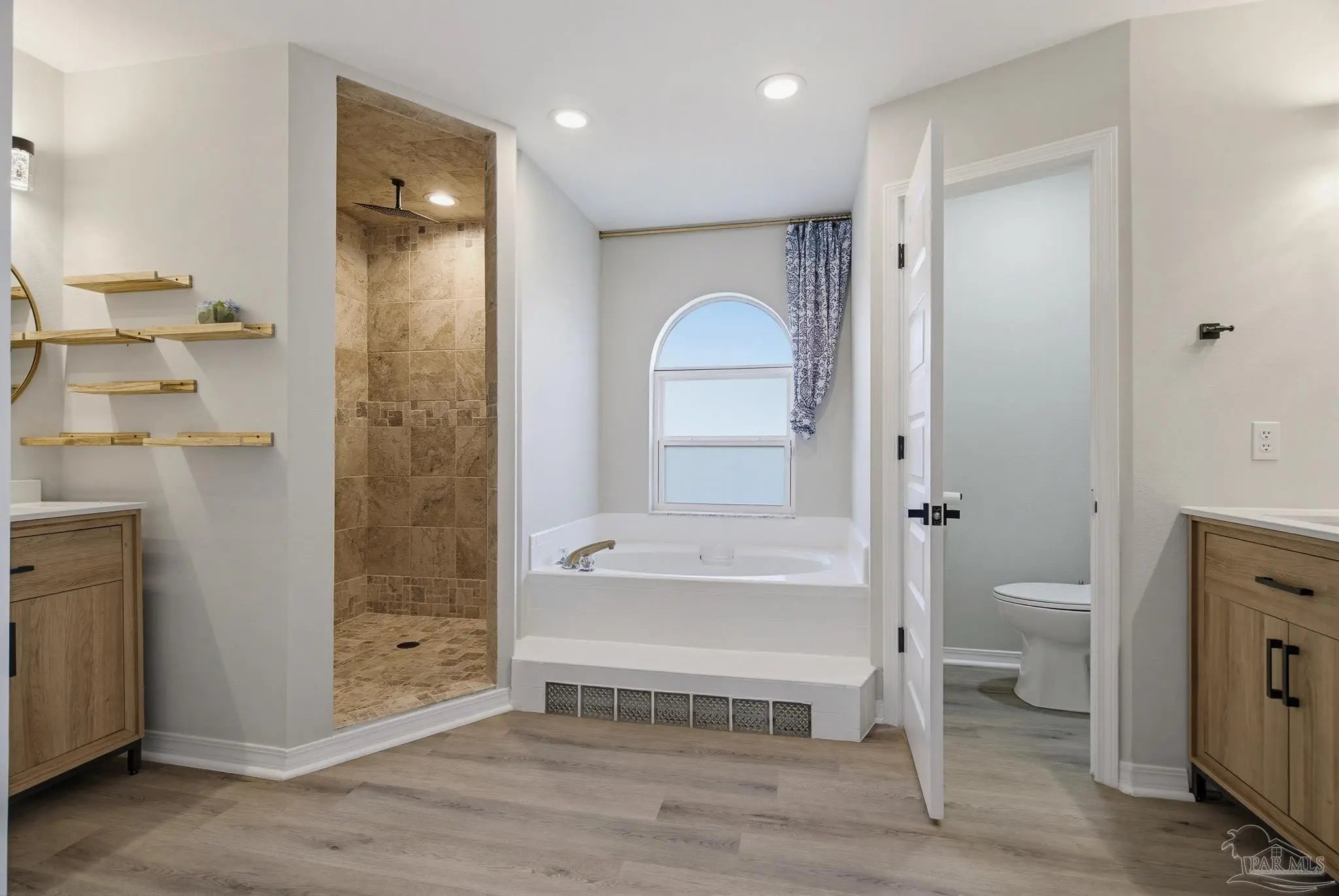 Welcome to this stunning, remodeled home on 2.09 acres in the desirable Meander Farms subdivision, offering privacy and a peaceful setting with convenient access to Navy Federal, I-10, shopping, and dining. This 4-bedroom, 2.5-bathroom home features designer paint colors, architectural details such as arched windows, and a thoughtfully designed split floor plan. Natural light fills the main living areas, where luxury vinyl plank flooring, vaulted ceilings, and recessed lighting create a bright and inviting atmosphere. The living and dining spaces flow seamlessly into the kitchen, providing an ideal layout for both everyday living and entertaining. The kitchen blends style and functionality with granite countertops, Espresso shaker-style cabinetry, stainless steel appliances, contemporary hardware, and a center island with breakfast bar seating. The primary suite offers a comfortable retreat with double vanities featuring granite countertops, a spacious tiled shower, and a walk-in closet. Additional bedrooms are positioned on the opposite side of the home and share a full bathroom, offering flexibility for guests, a home office, or additional living needs. Step outside to the covered patio overlooking the backyard, where an above-ground pool with decking and surrounding landscaping creates a relaxing outdoor setting. With more than two acres, the property provides plenty of room to unwind, host gatherings, or simply enjoy the quiet of country living while enjoying the backyard creek with swans, turtles, and geese, and still remaining close to town. Additional highlights include an oversized three-car garage with space for the outdoor enthusiast's gear and a roof replaced in 2021 for added peace of mind.