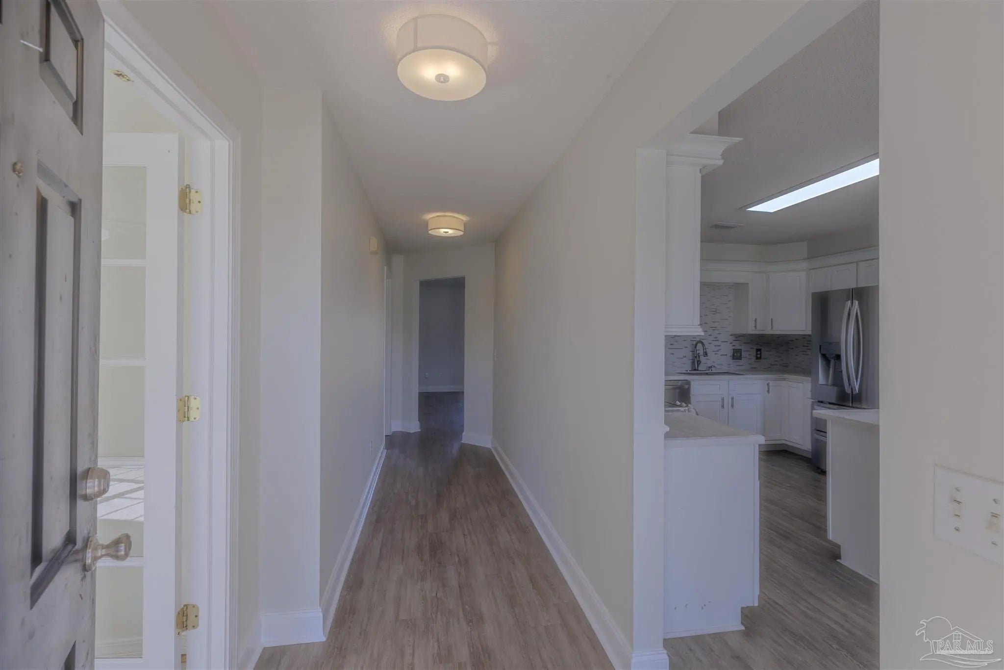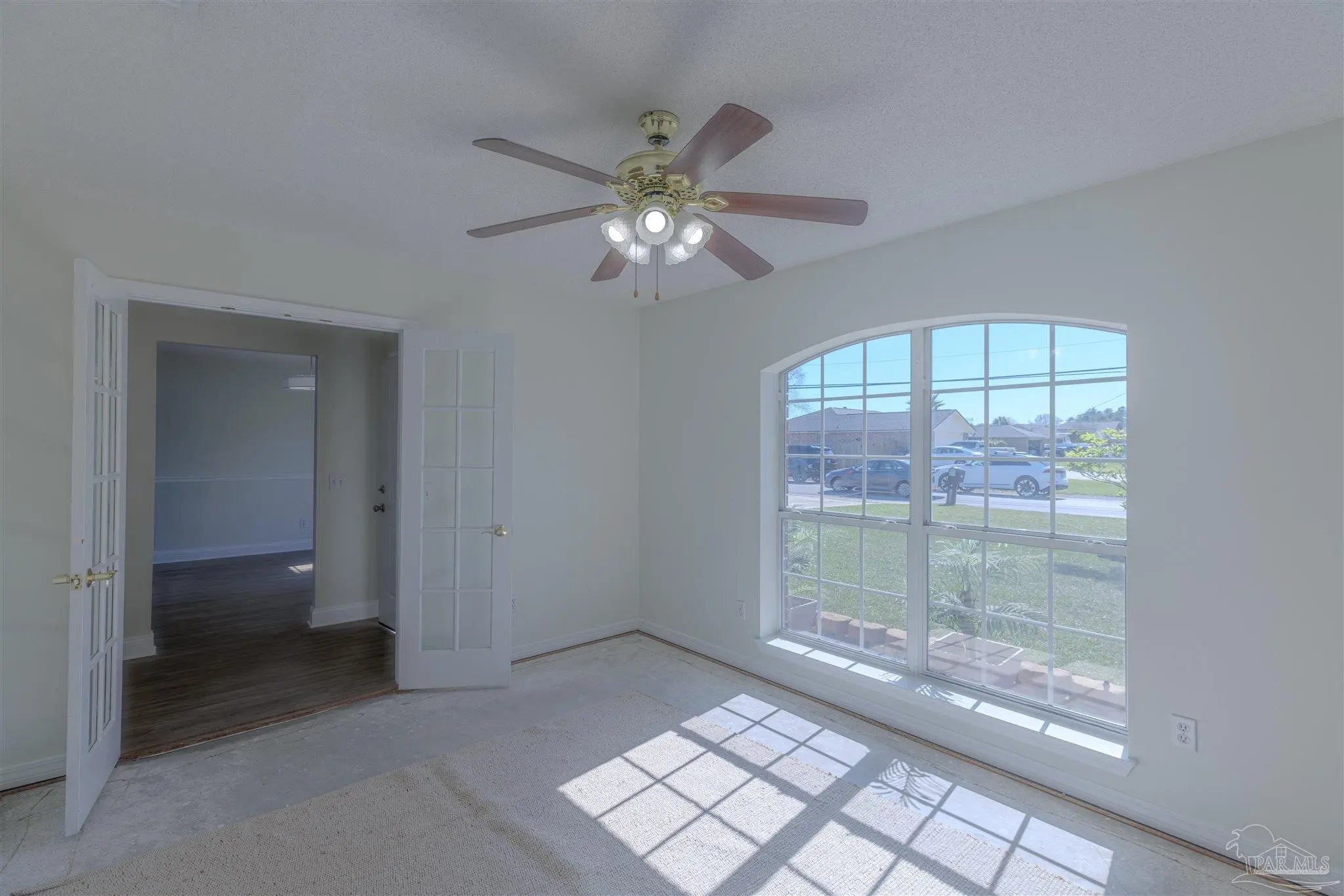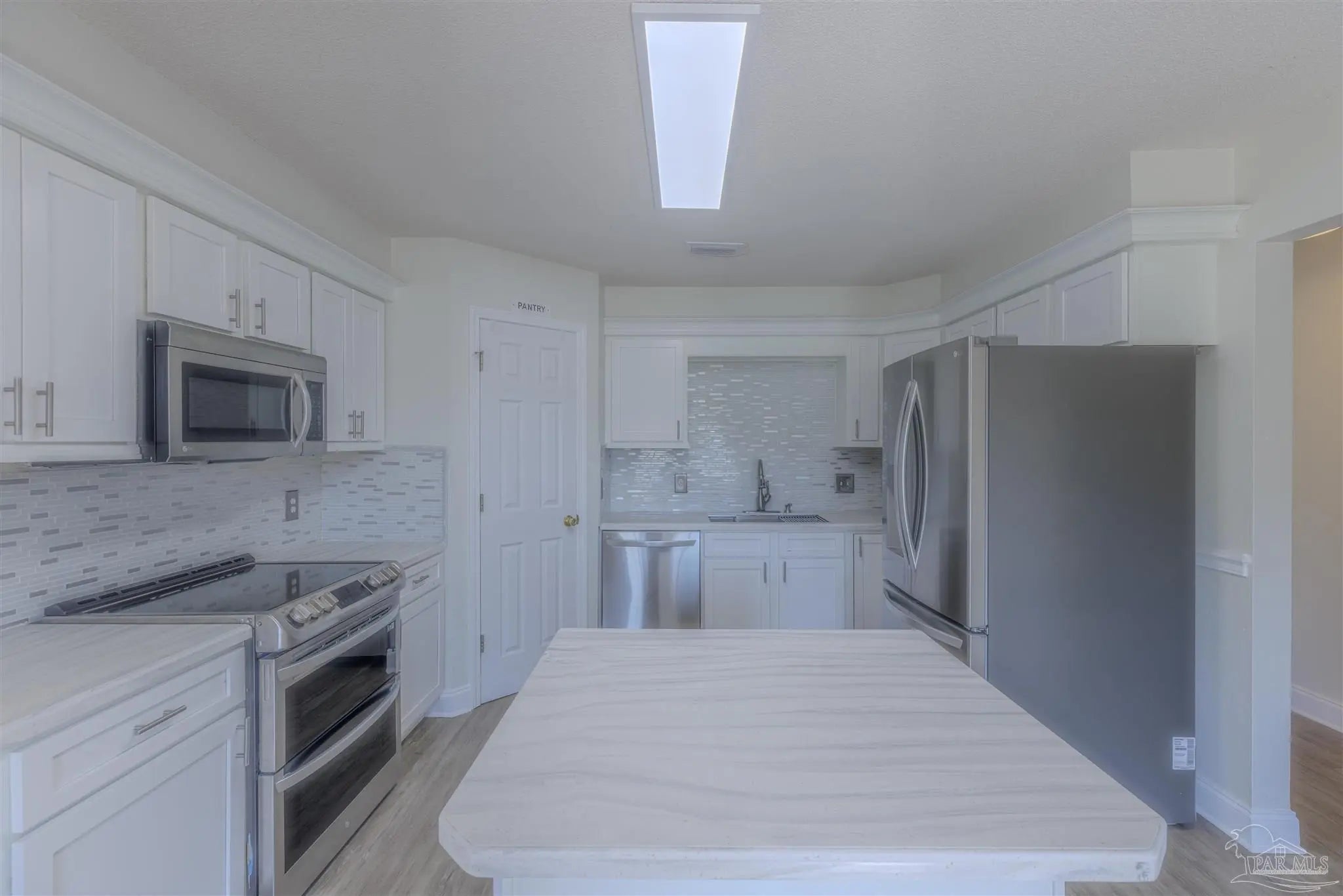 Experience the ideal blend of comfort, style, and convenience in this spacious brick home, perfectly situated in a welcoming neighborhood close to NAS Pensacola, shopping, and the beach. Thoughtfully remodeled, this ranch-style property offers three bedrooms plus a generous dedicated office that can easily serve as a fourth bedroom. The updated kitchen, completed in 2021, features solid-surface countertops, a deep stainless steel sink with custom drying racks, a striking tile backsplash, and matching stainless steel appliances. Light luxury vinyl flooring flows throughout the main living areas, and new carpet has been ordered for the study. A split floor plan provides added privacy, with the primary suite set apart from the secondary bedrooms, which share a full guest-accessible bath. The spacious family room stands out with its shiplap accent wall and cozy wood-burning fireplace—an inviting gathering space for everyday living or entertaining. Sitting on a large corner lot, the fully fenced backyard includes a convenient side entrance designed for boat or RV parking. Energy efficiency is already built in: the home is equipped with fully paid-off solar panels that keep average monthly power bills to just $26. Move-in ready and packed with upgrades, this home offers exceptional value in a sought-after location. Schedule your private showing today before this opportunity is gone.