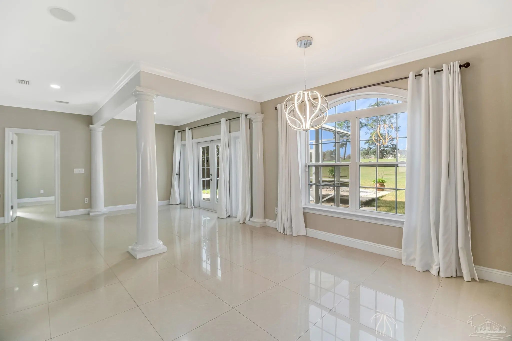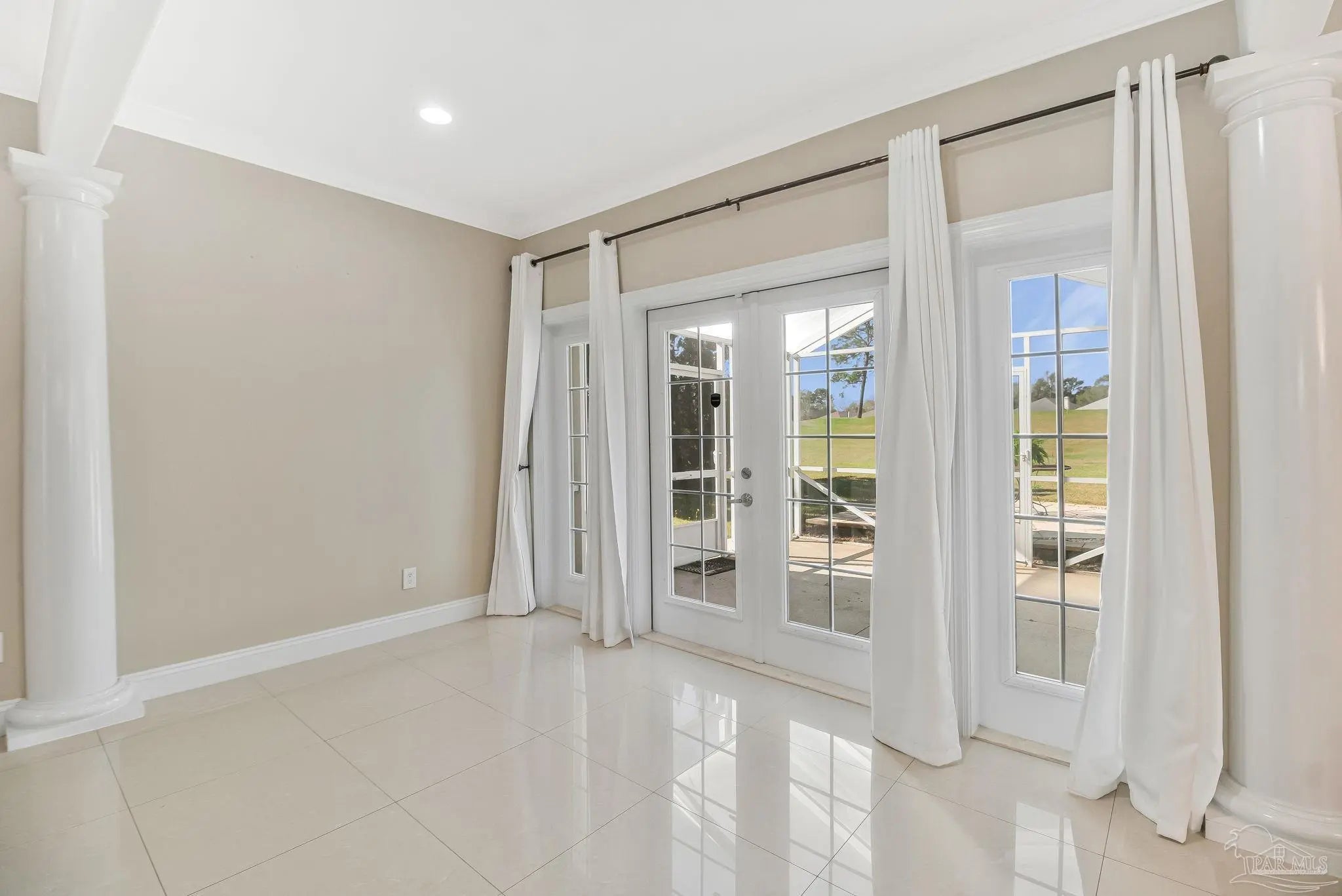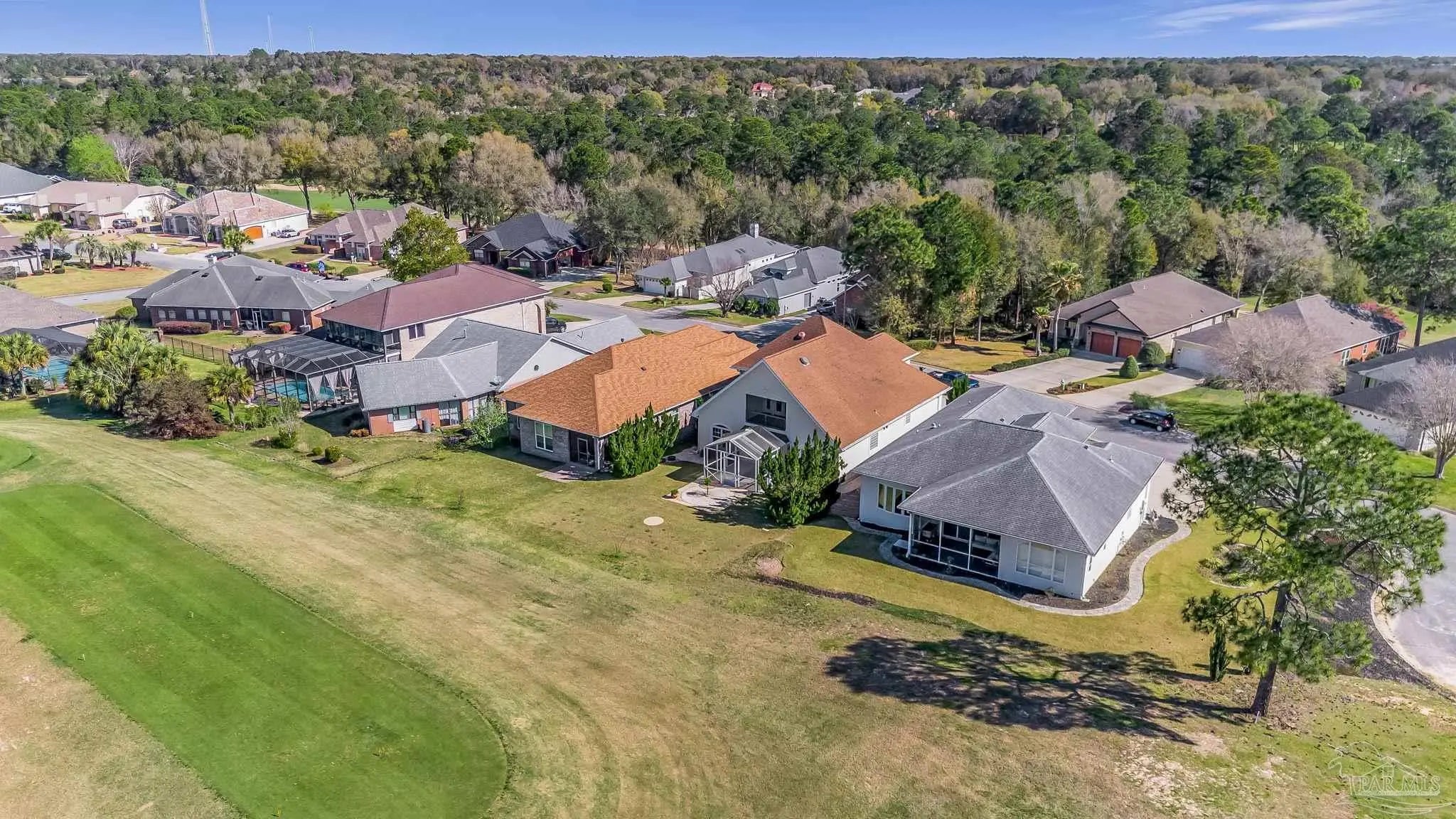 Welcome to Marcus Pointe — one of Pensacola’s most sought-after golf course communities. Known for its friendly atmosphere, manicured lawns, and active lifestyle, this neighborhood offers the charm of neighbors waving as you drive by, morning walkers, and golfers enjoying the beautifully maintained course. This custom-built two-story home sits directly on the Marcus Pointe Golf Course and offers exceptional comfort, efficiency, and entertaining space. As you step into the foyer, the word WOW truly comes to mind. The home features an open floor plan with elegant details, including rectified tile flooring throughout the main floor, colonial columns in the living area, recessed LED lighting, and a whole-home surround sound system. The main-level primary suite provides convenience and privacy, while the living area opens through French doors to a screened and covered lanai, creating the perfect space to relax or entertain while enjoying peaceful golf course views right from your backyard. Energy efficiency is a standout feature with the home’s Geothermal HVAC system, designed for optimal comfort and long-term savings. Upstairs offers two additional bedrooms and two full bathrooms, including one private en-suite bedroom. The second level also includes a spacious living area with a built-in office suite, ideal for working from home or additional gathering space. Step outside onto the fully screened balcony overlooking the golf course green, a perfect place to enjoy the view and unwind. Homes in Marcus Pointe with golf course views and custom features like this are rare. Schedule your showing today and move this one to the top of your list — it won’t last long.