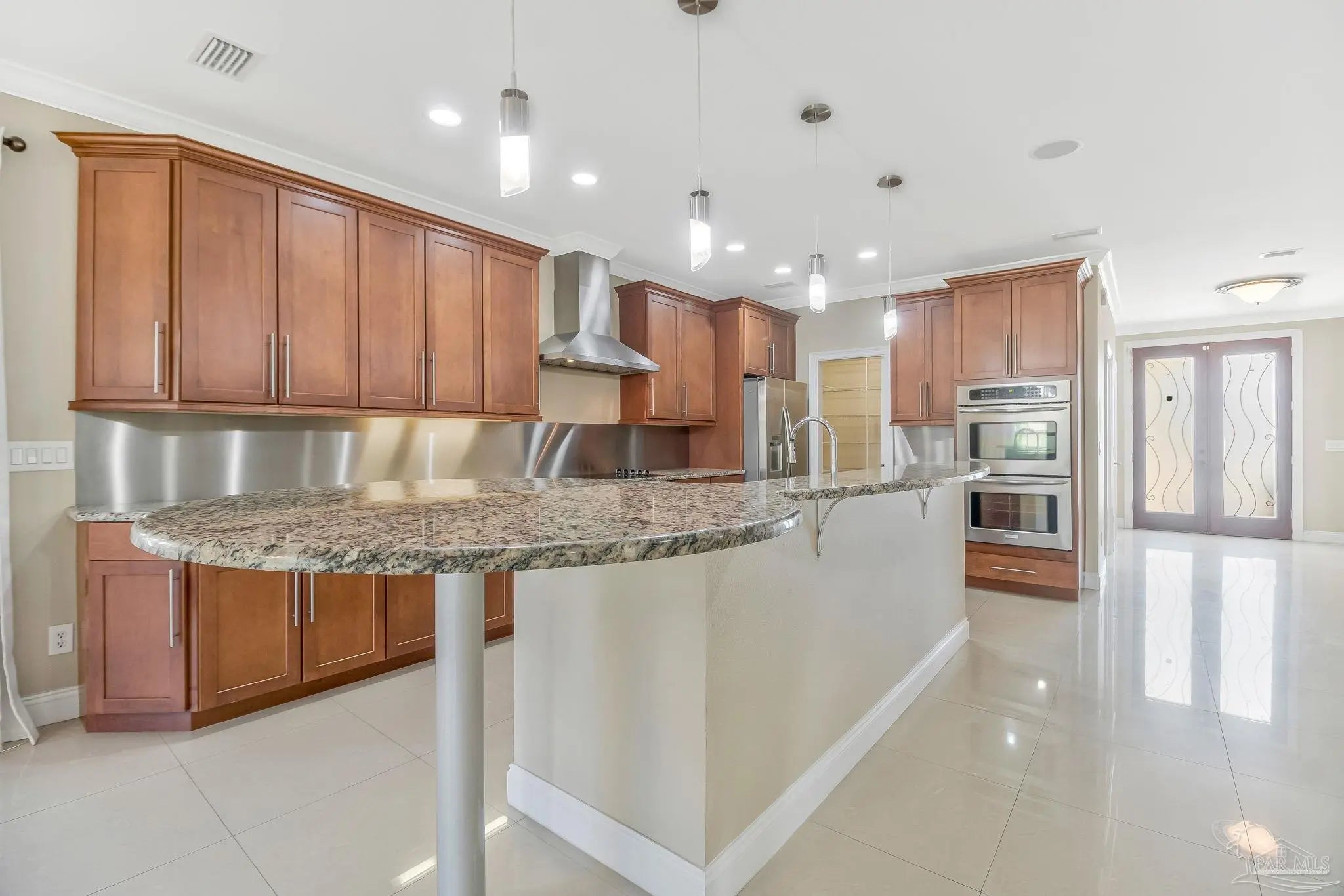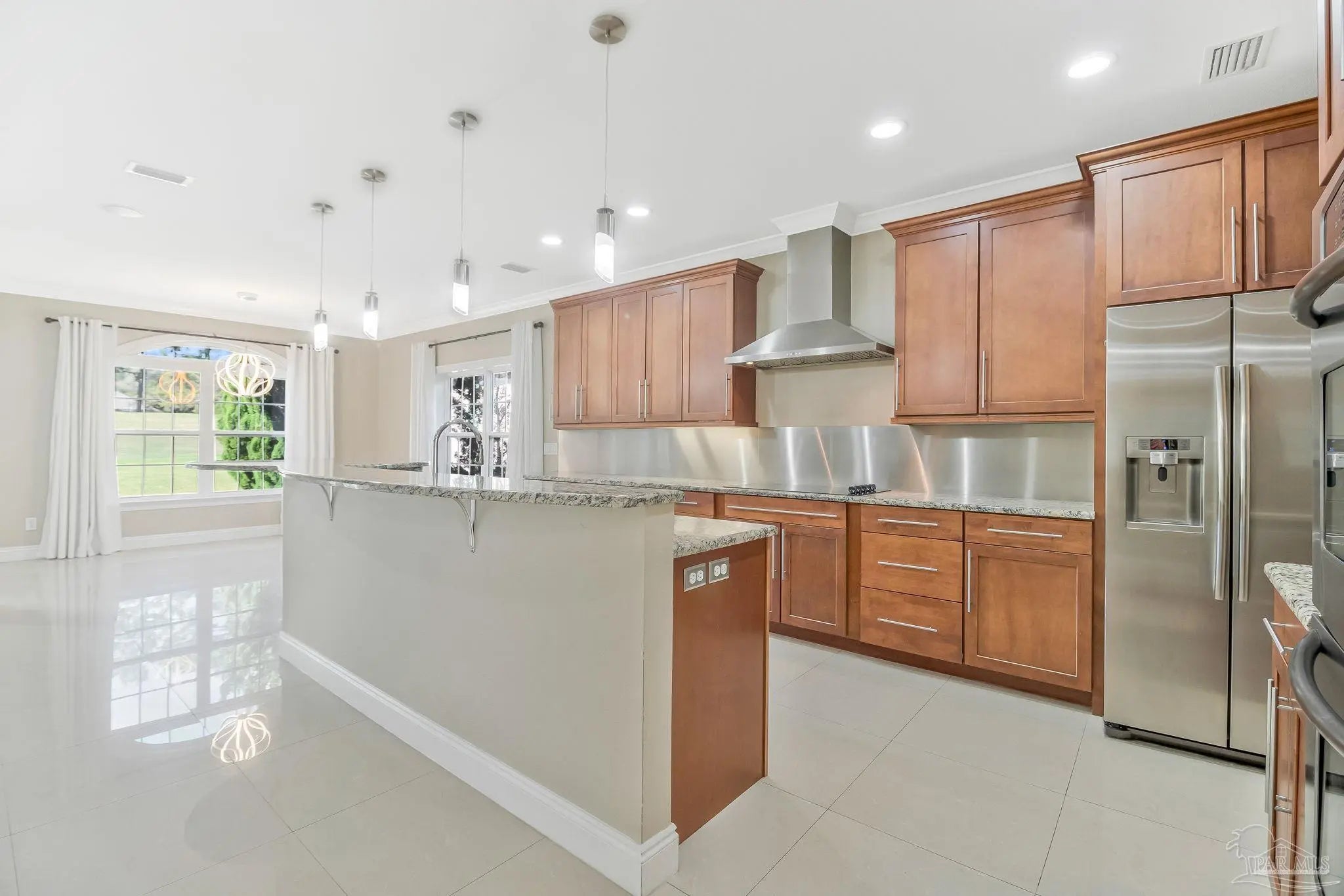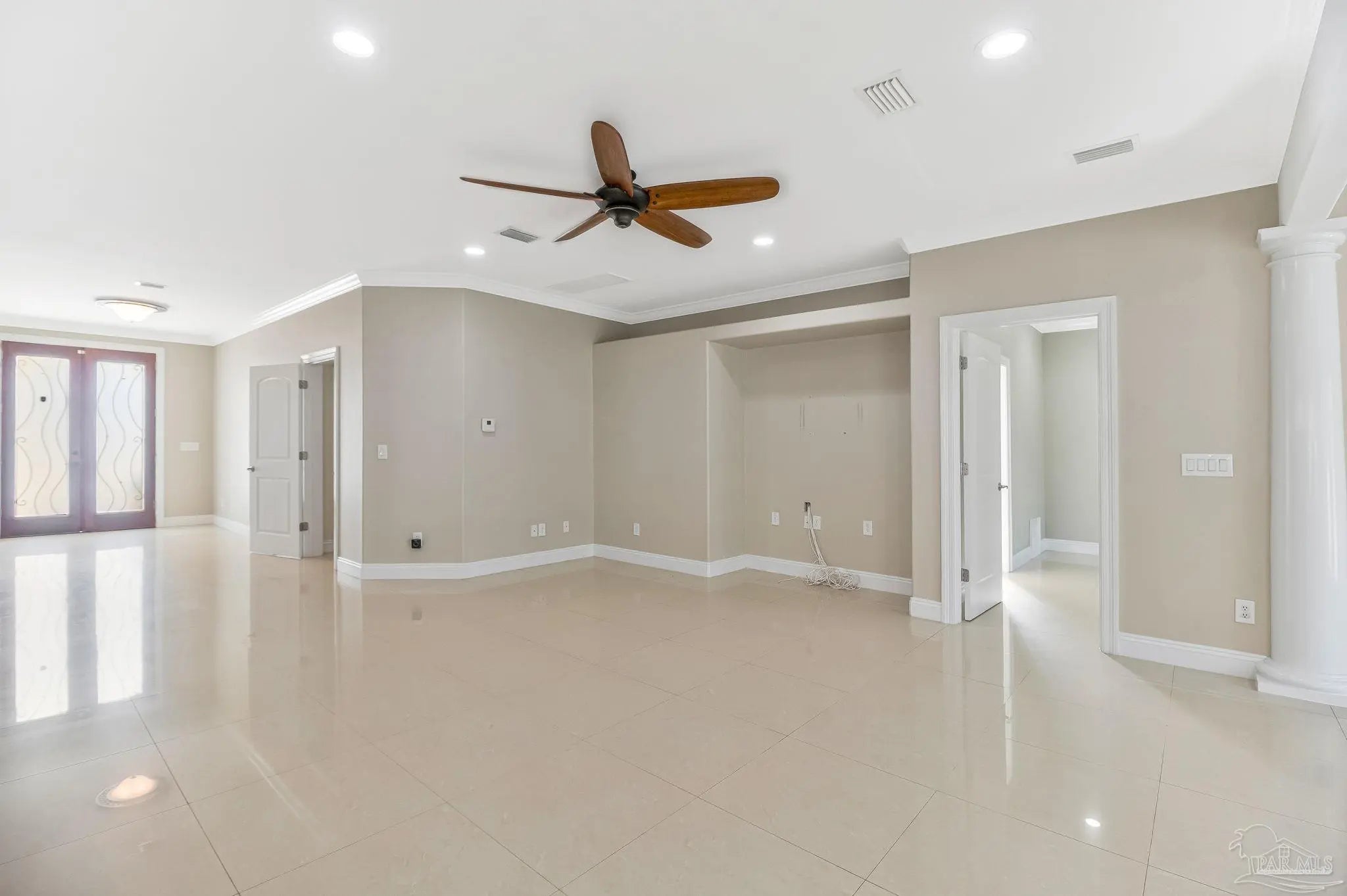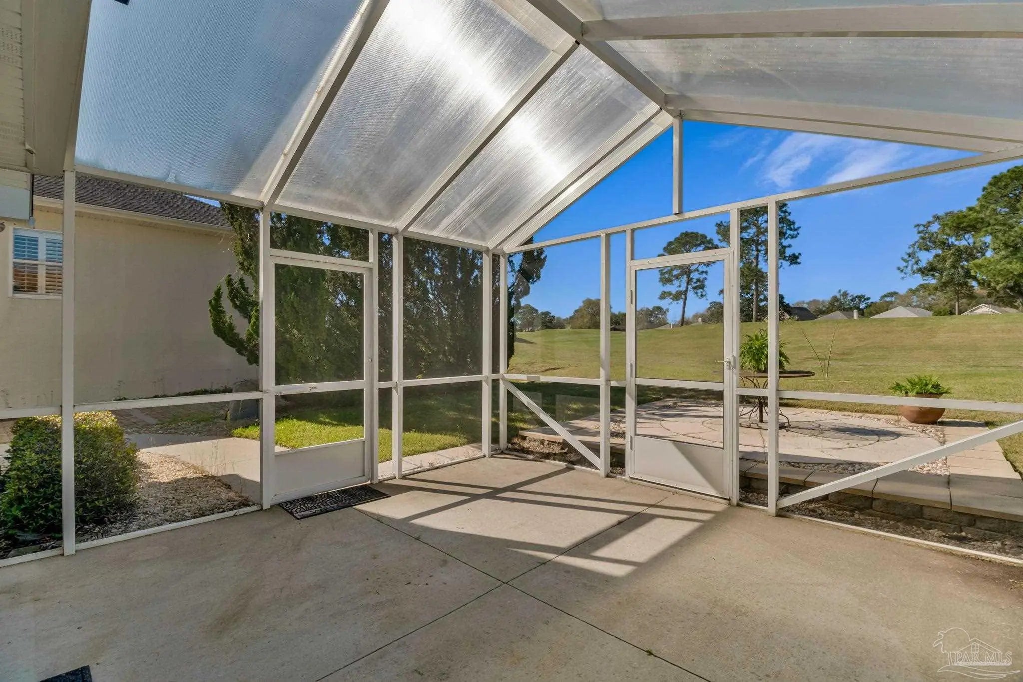 Welcome to Marcus Pointe — one of Pensacola’s most sought-after golf course communities. Known for its friendly atmosphere, manicured lawns, and active lifestyle, this neighborhood offers the charm of neighbors waving as you drive by, morning walkers, and golfers enjoying the beautifully maintained course. This custom-built two-story home sits directly on the Marcus Pointe Golf Course and offers exceptional comfort, efficiency, and entertaining space. As you step into the foyer, the word WOW truly comes to mind. The home features an open floor plan with elegant details, including rectified tile flooring throughout the main floor, colonial columns in the living area, recessed LED lighting, and a whole-home surround sound system. The main-level primary suite provides convenience and privacy, while the living area opens through French doors to a screened and covered lanai, creating the perfect space to relax or entertain while enjoying peaceful golf course views right from your backyard. Energy efficiency is a standout feature with the home’s Geothermal HVAC system, designed for optimal comfort and long-term savings. Upstairs offers two additional bedrooms and two full bathrooms, including one private en-suite bedroom. The second level also includes a spacious living area with a built-in office suite, ideal for working from home or additional gathering space. Step outside onto the fully screened balcony overlooking the golf course green, a perfect place to enjoy the view and unwind. Homes in Marcus Pointe with golf course views and custom features like this are rare. Schedule your showing today and move this one to the top of your list — it won’t last long.