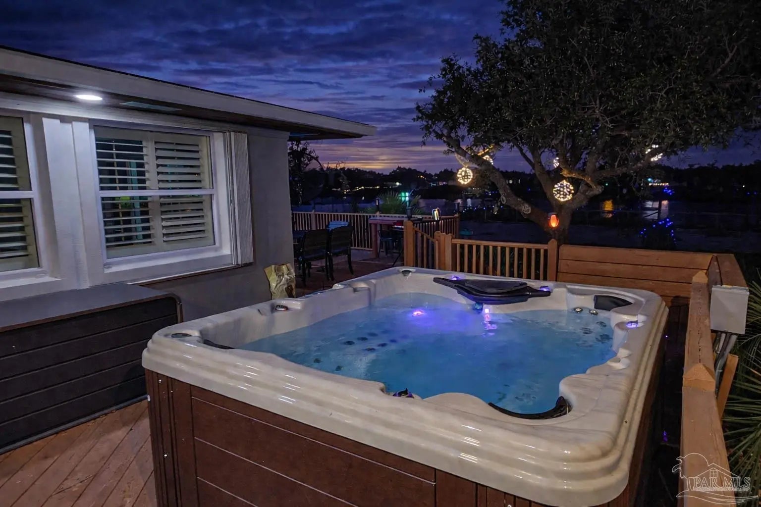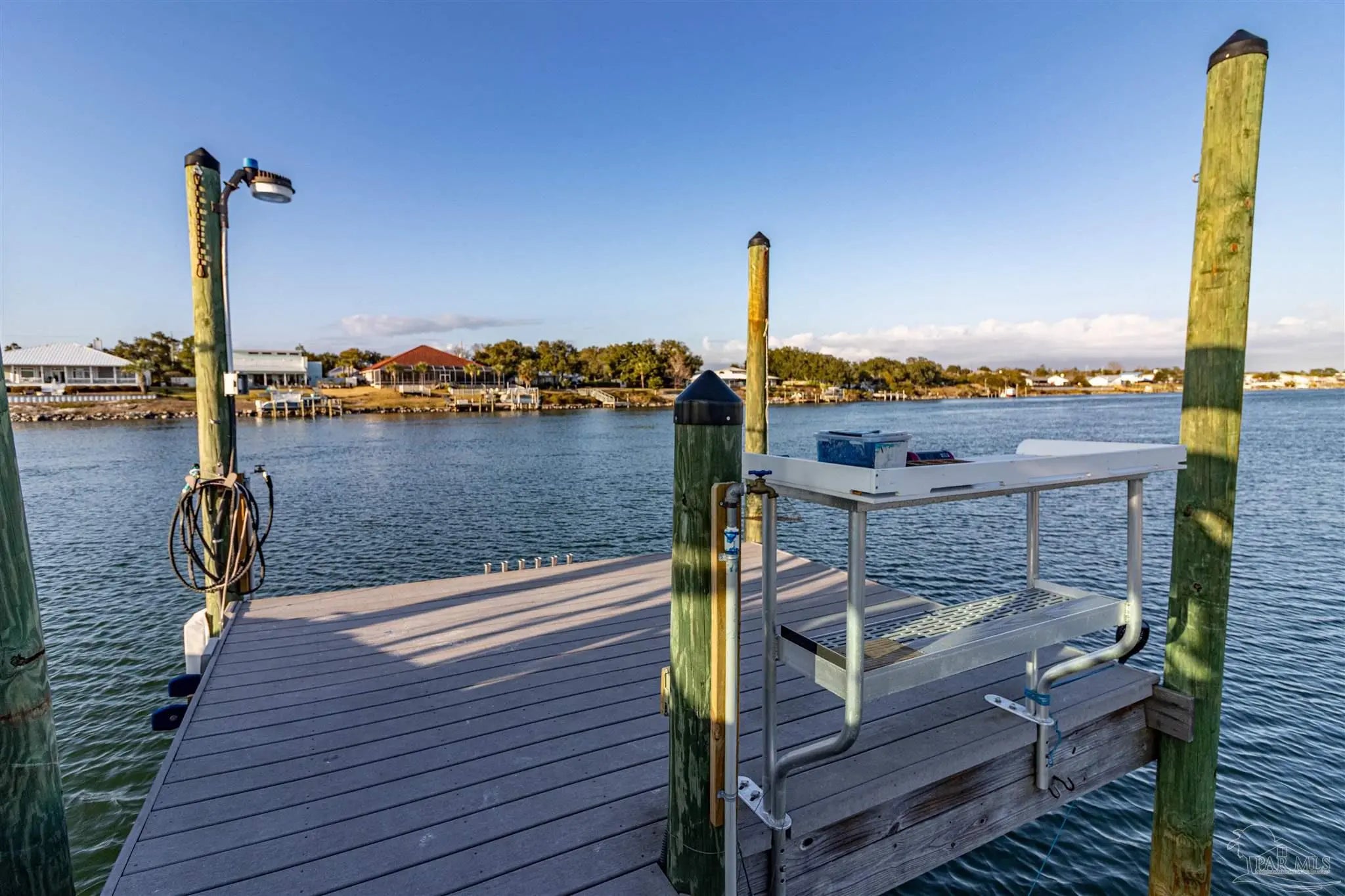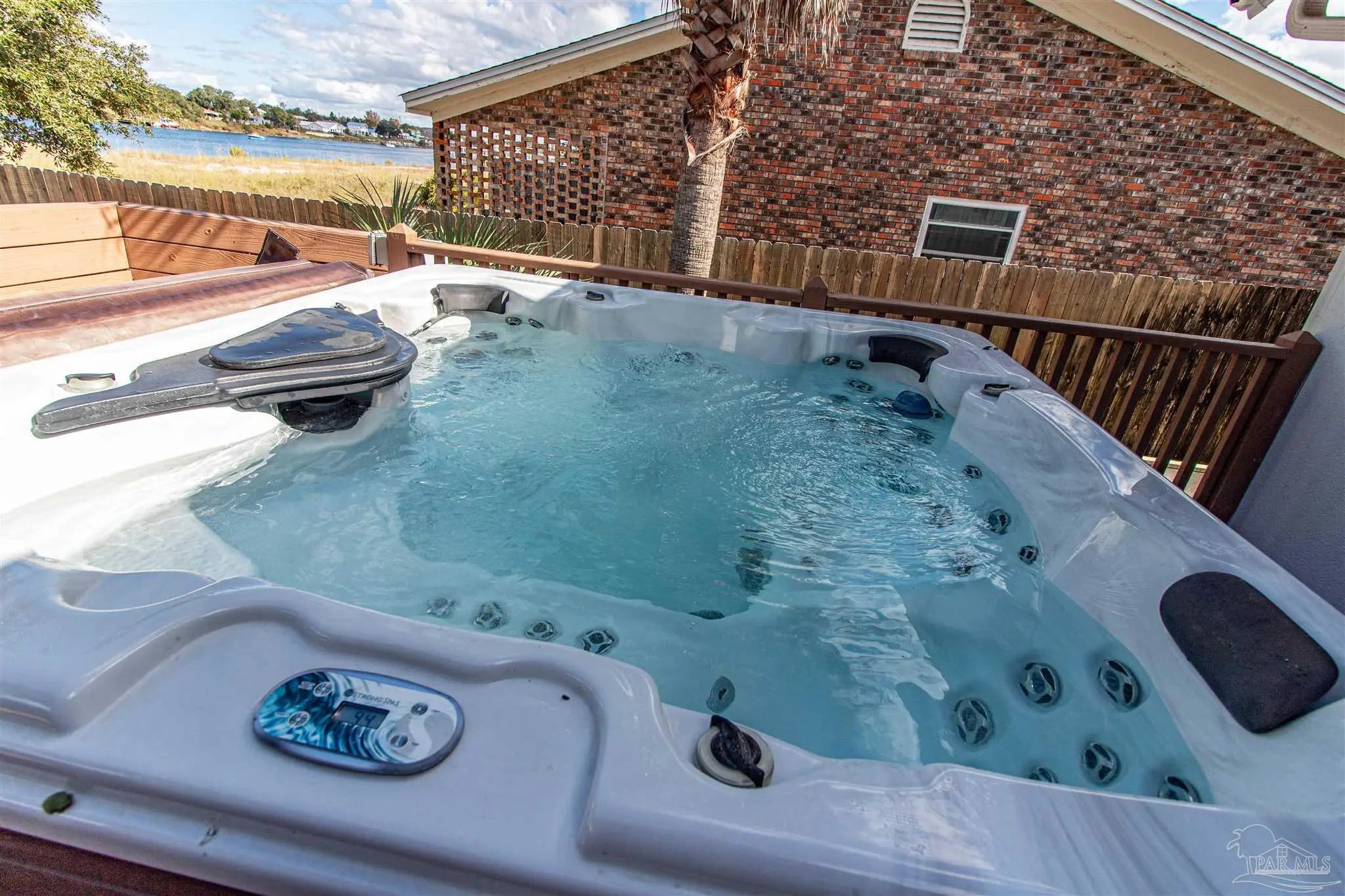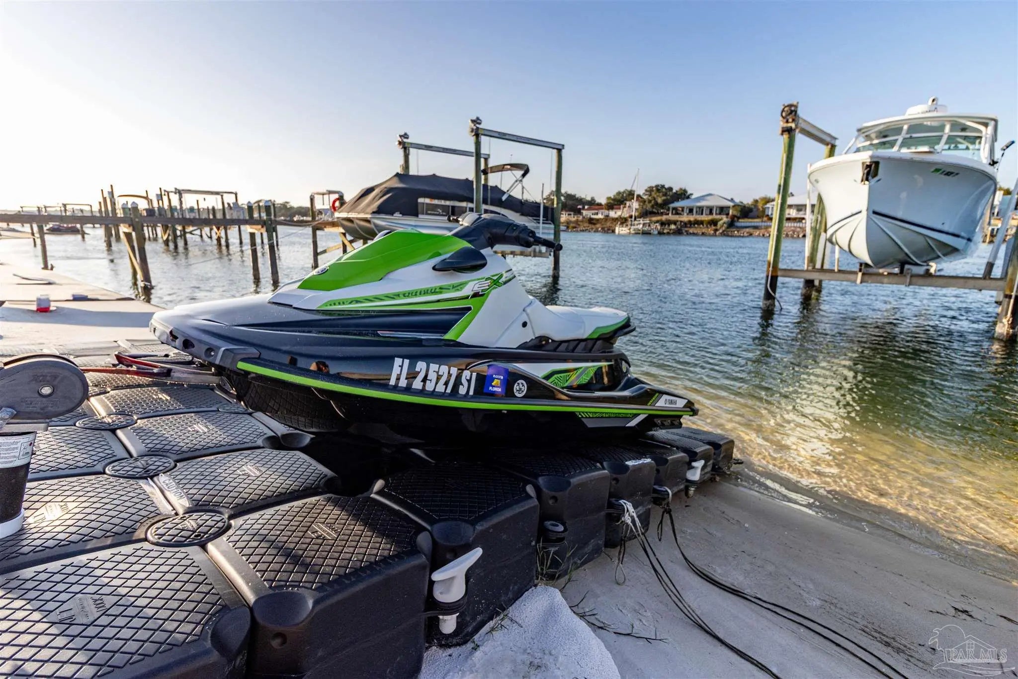 Enjoy incredible waterfront living on the Intracoastal Waterway in this beautifully updated 4-bedroom, 3-bath home offering stunning water views and exceptional indoor and outdoor living. This property is fully furnished and turnkey, ready for Airbnb or short-term rentals with established rental history, making it an excellent investment, vacation home, or full-time residence. The open living and kitchen areas showcase gorgeous water views, creating a bright and inviting space perfect for relaxing or entertaining. Large sliding doors fill the home with natural light and lead to the outdoor living areas. The home also features plantation shutters throughout. The primary suite includes French doors and a spacious bath with double vanity, soaking tub, and dual shower heads. The home has been thoughtfully updated with high-end finishes, including luxury vinyl plank flooring throughout and quartz countertops in the kitchen and bathrooms. Three additional bedrooms and two additional bathrooms provide plenty of space for guests and family. Outdoor amenities include direct Intracoastal access with a private dock, 10,000-lb boat lift, power, water, fish cleaning station, and two jet ski pads. A 2019 Yamaha 3-seater jet ski and private hot tub are included. The large fenced backyard features a sand play area and two sheds, including a brand-new high-end shed on a concrete pad. Additional updates include metal roof (2014), HVAC system updated in 2024, tankless water heater (2024), irrigation, and Ring security cameras.