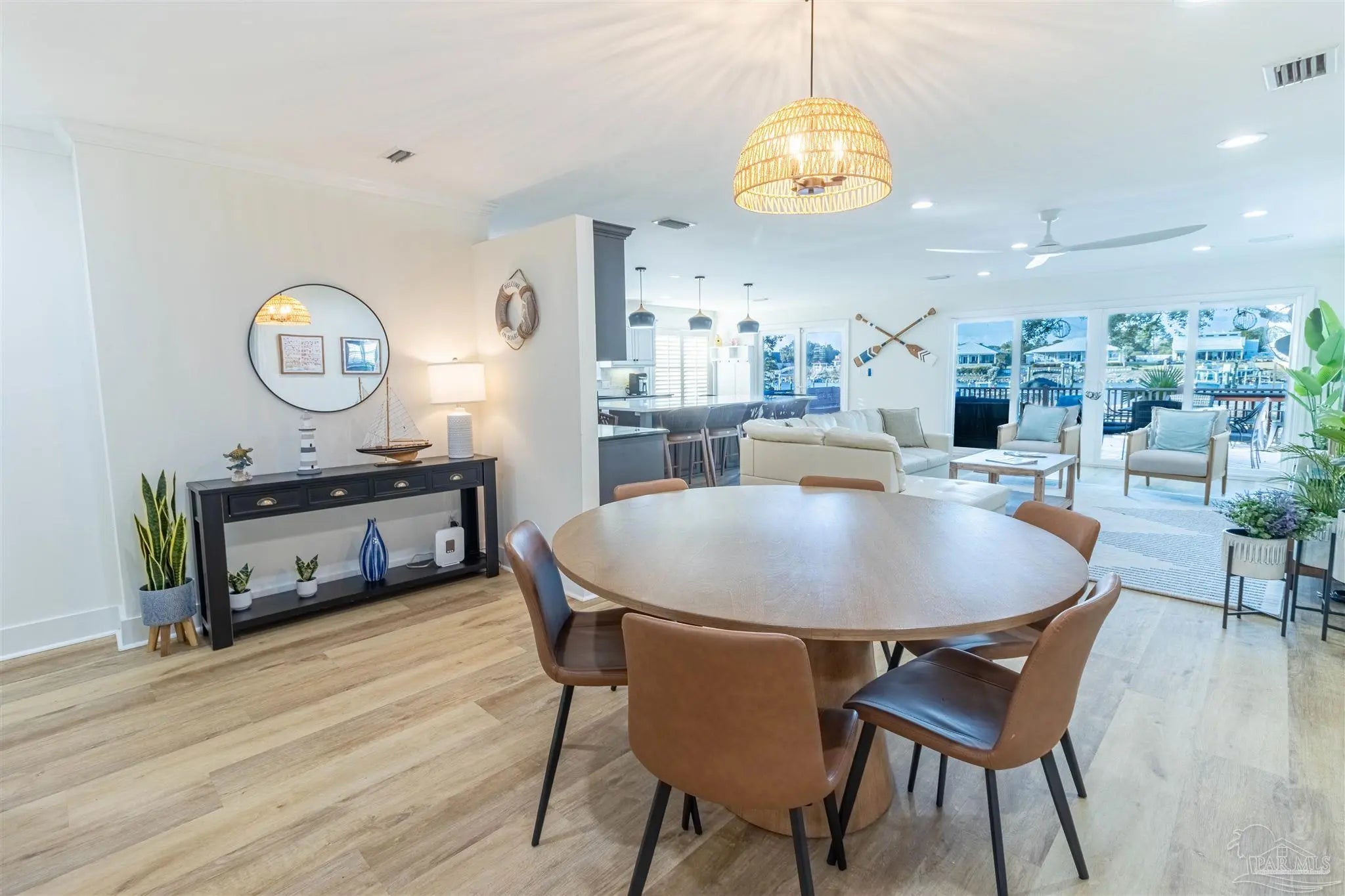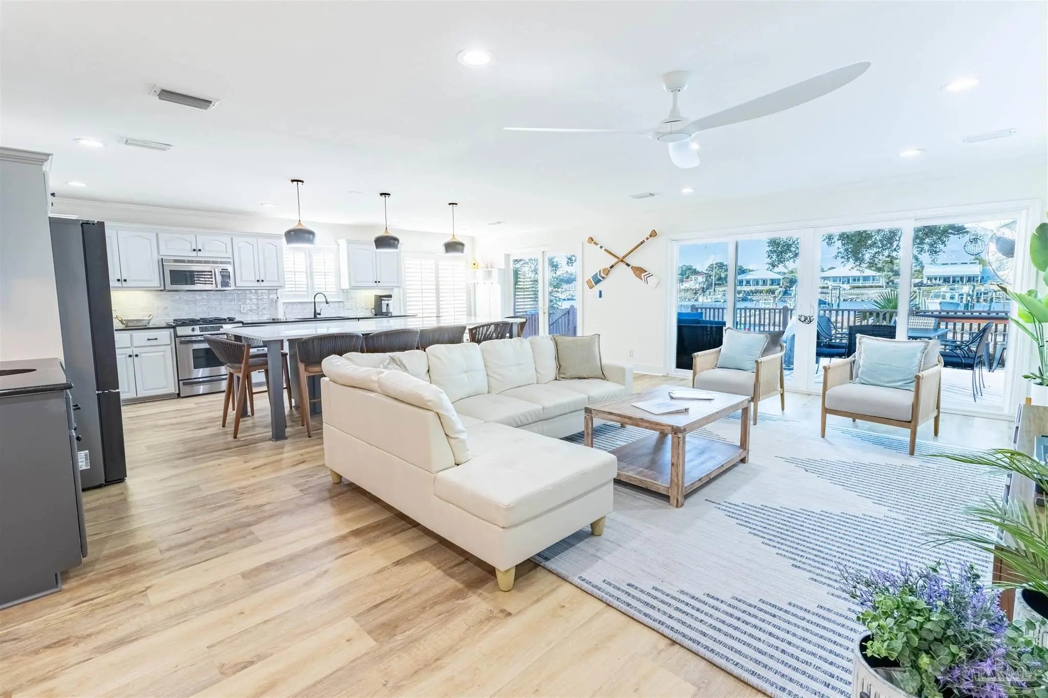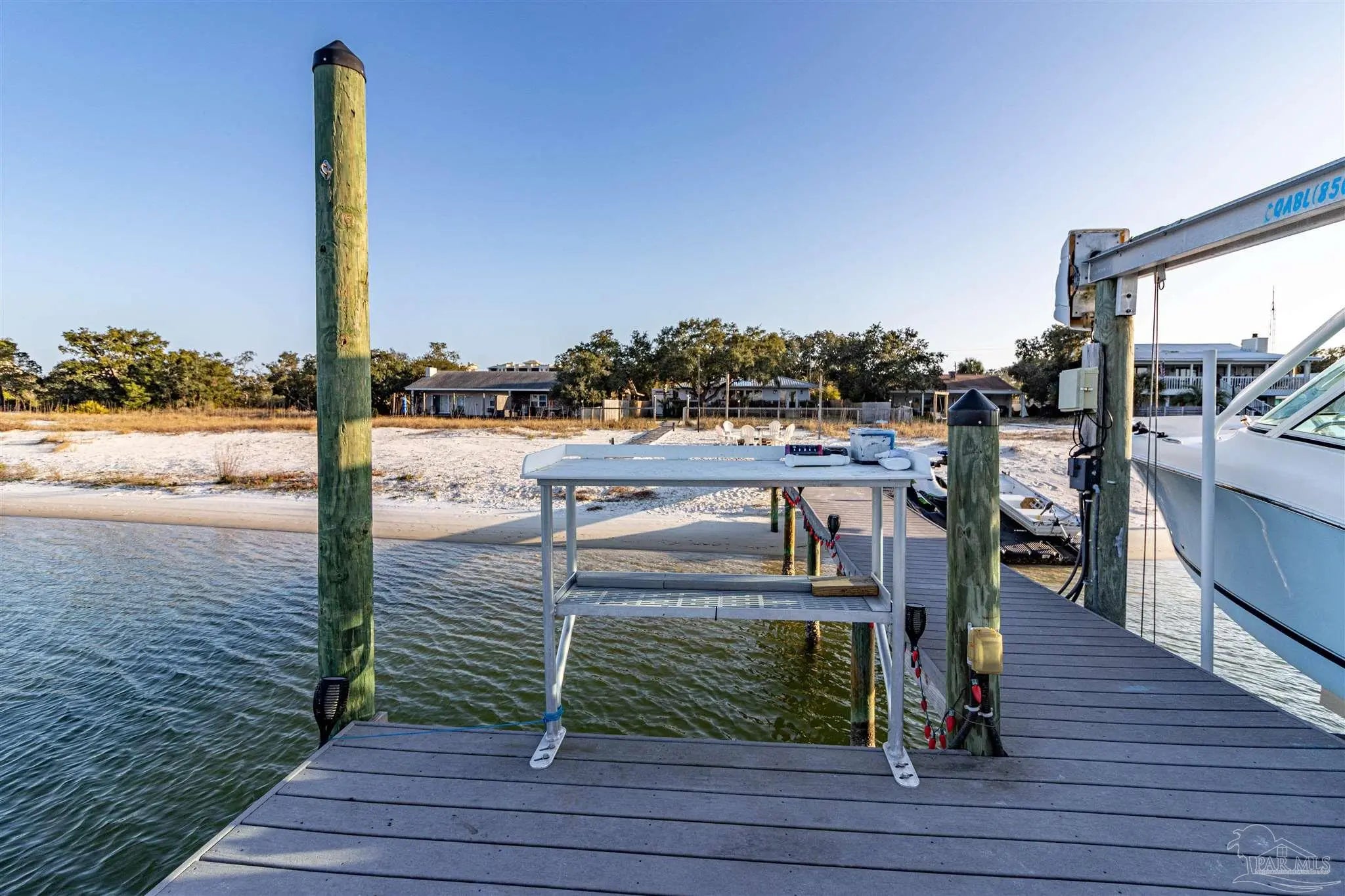Enjoy incredible waterfront living on the Intracoastal Waterway in this beautifully updated 4-bedroom, 3-bath home offering stunning water views and exceptional indoor and outdoor living. This property is fully furnished and turnkey, ready for Airbnb or short-term rentals with established rental history, making it an excellent investment, vacation home, or full-time residence. The open living and kitchen areas showcase gorgeous water views, creating a bright and inviting space perfect for relaxing or entertaining. Large sliding doors fill the home with natural light and lead to the outdoor living areas. The home also features plantation shutters throughout. The primary suite includes French doors and a spacious bath with double vanity, soaking tub, and dual shower heads. The home has been thoughtfully updated with high-end finishes, including luxury vinyl plank flooring throughout and quartz countertops in the kitchen and bathrooms. Three additional bedrooms and two additional bathrooms provide plenty of space for guests and family. Outdoor amenities include direct Intracoastal access with a private dock, 10,000-lb boat lift, power, water, fish cleaning station, and two jet ski pads. A 2019 Yamaha 3-seater jet ski and private hot tub are included. The large fenced backyard features a sand play area and two sheds, including a brand-new high-end shed on a concrete pad. Additional updates include metal roof (2014), HVAC system updated in 2024, tankless water heater (2024), irrigation, and Ring security cameras.