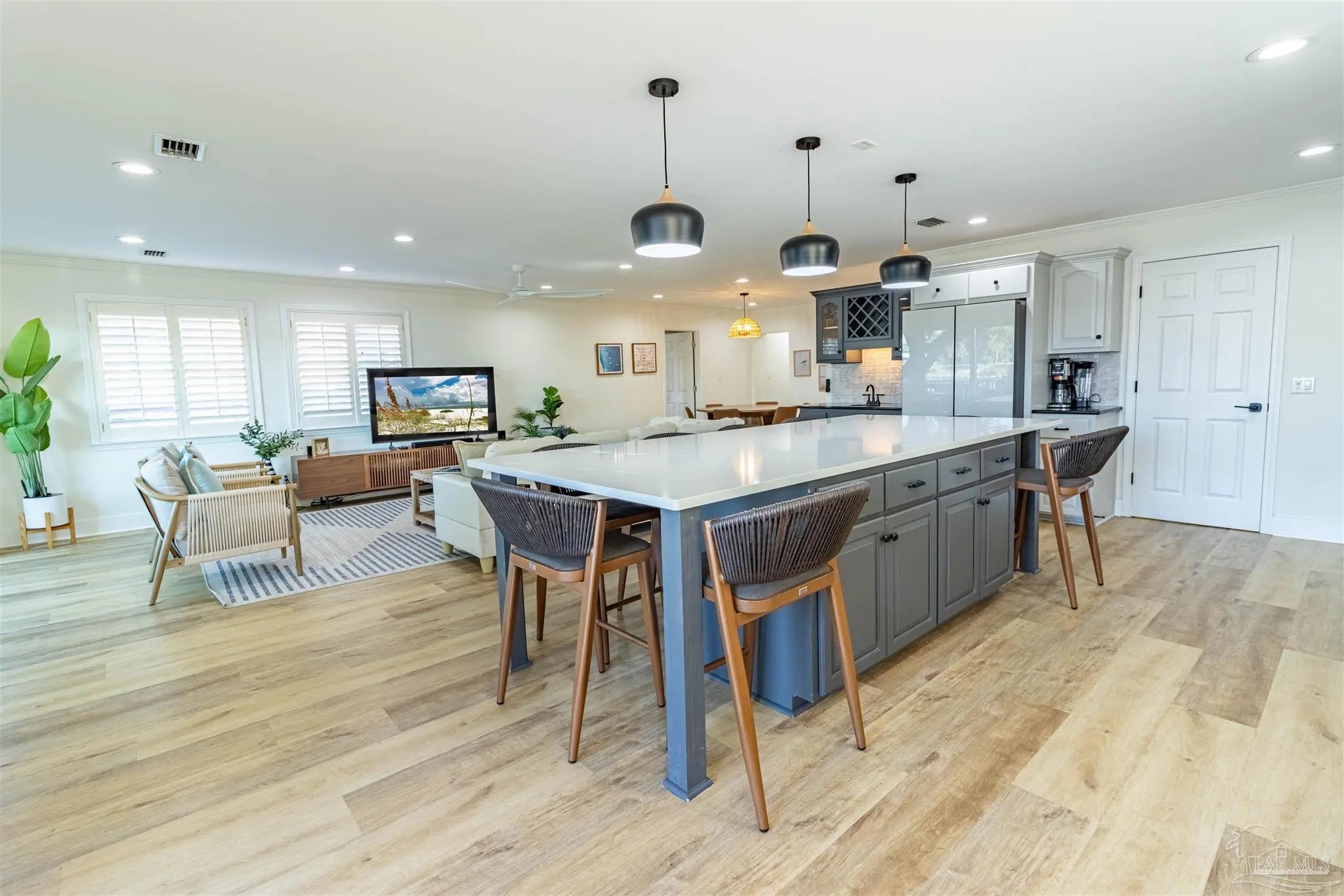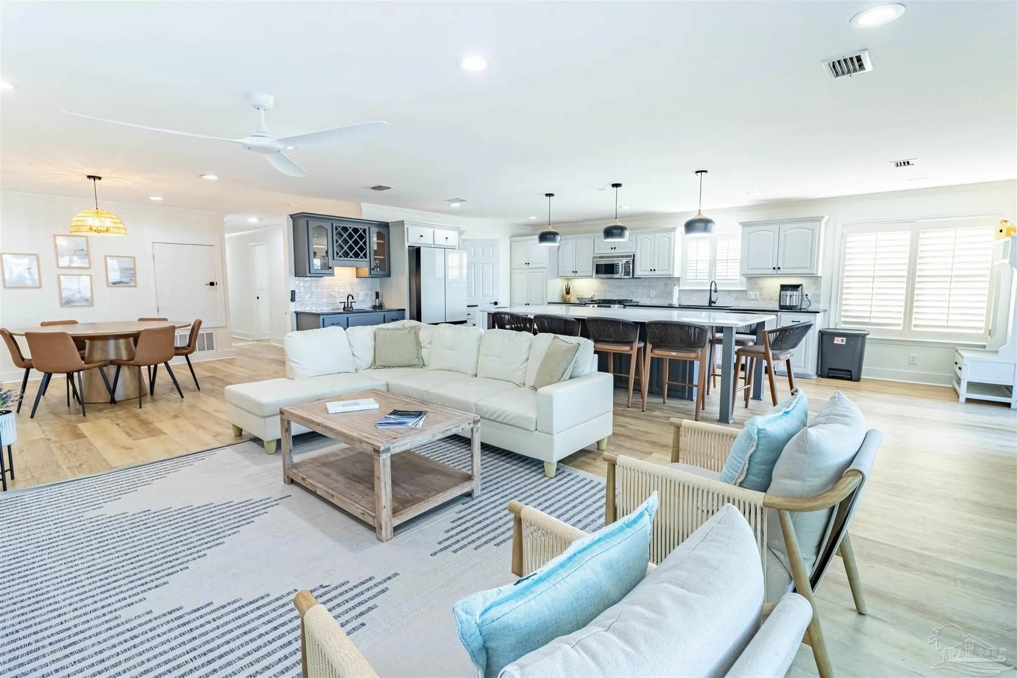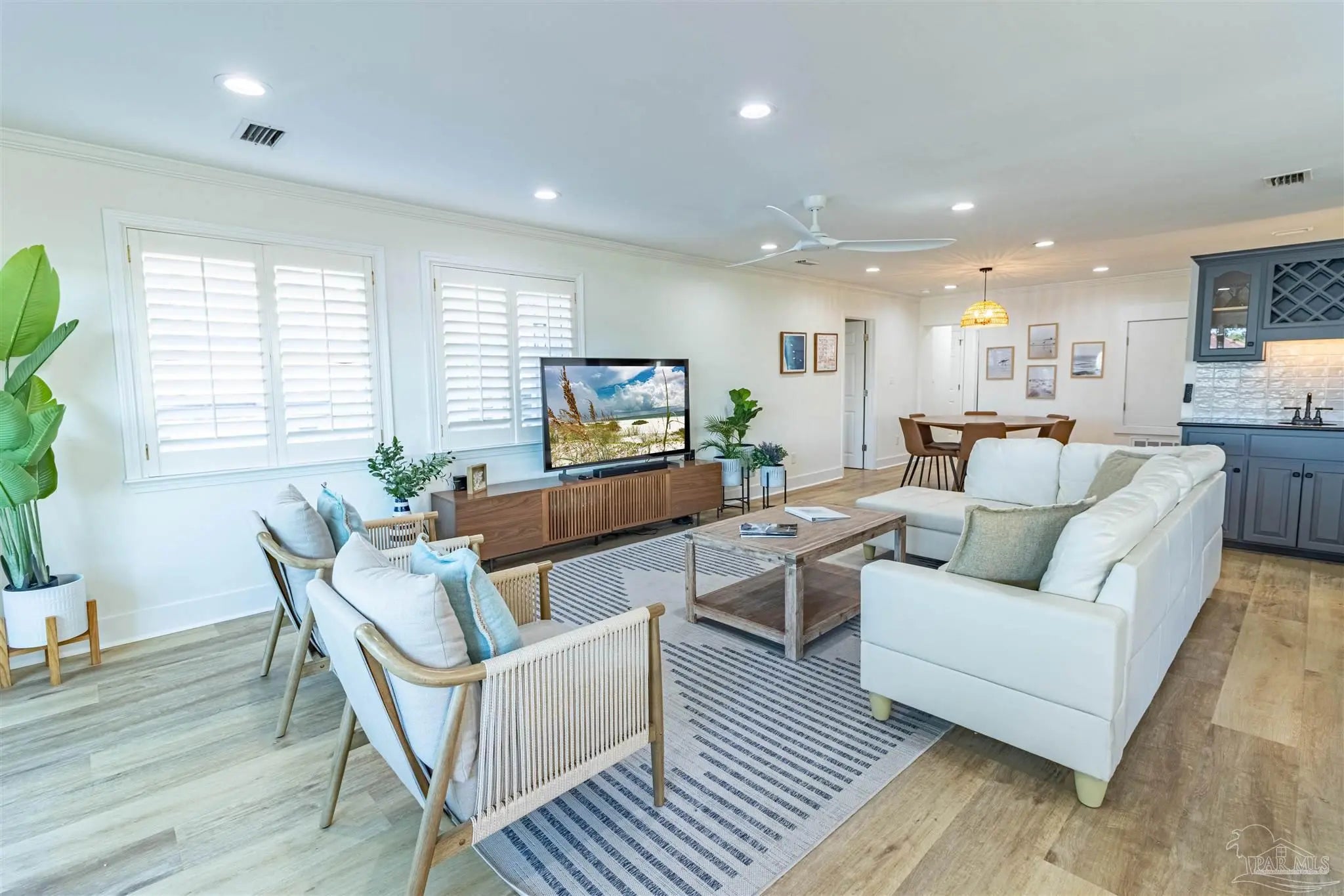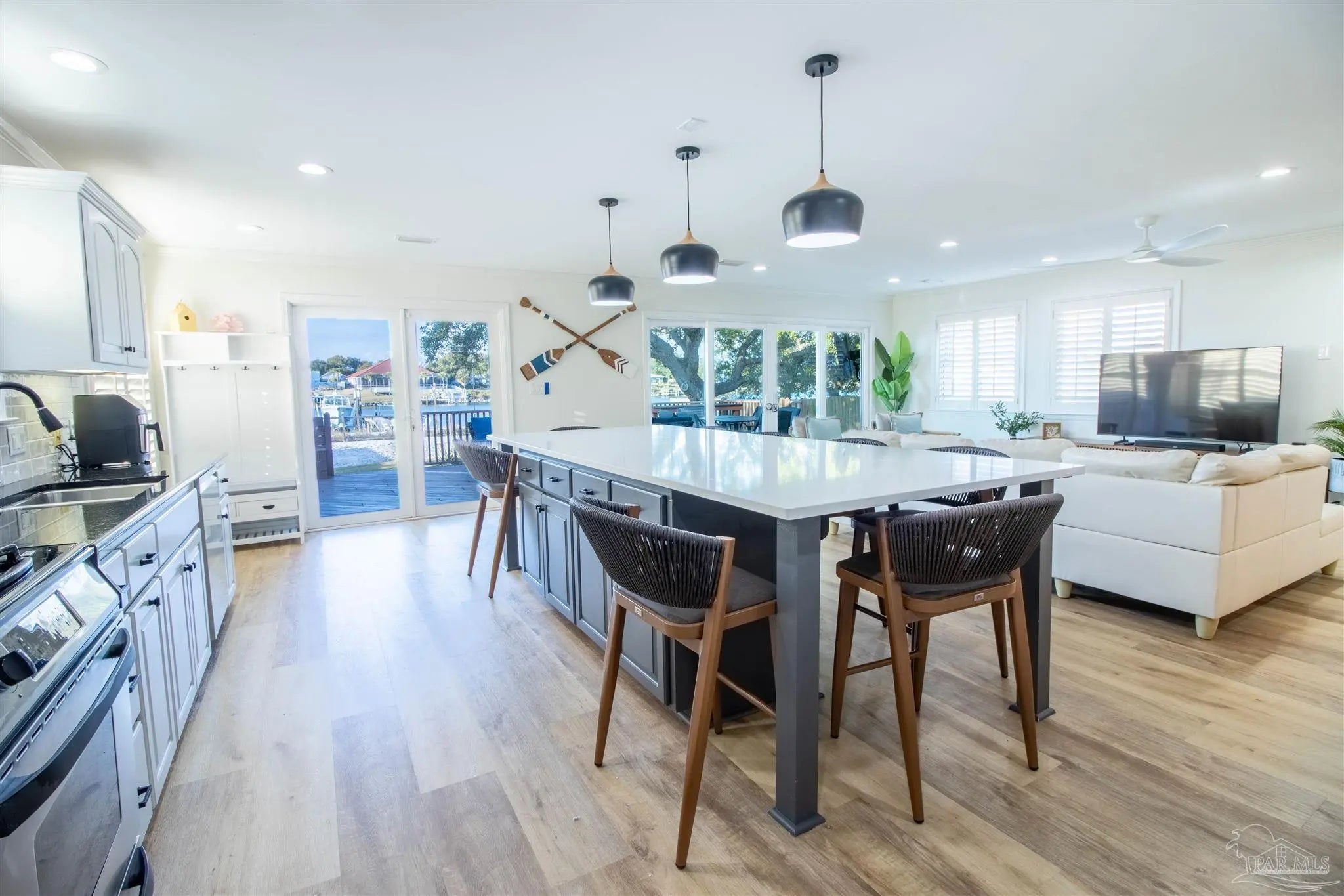 Enjoy incredible waterfront living on the Intracoastal Waterway in this beautifully updated 4-bedroom, 3-bath home offering stunning water views and exceptional indoor and outdoor living. This property is fully furnished and turnkey, ready for Airbnb or short-term rentals with established rental history, making it an excellent investment, vacation home, or full-time residence. The open living and kitchen areas showcase gorgeous water views, creating a bright and inviting space perfect for relaxing or entertaining. Large sliding doors fill the home with natural light and lead to the outdoor living areas. The home also features plantation shutters throughout. The primary suite includes French doors and a spacious bath with double vanity, soaking tub, and dual shower heads. The home has been thoughtfully updated with high-end finishes, including luxury vinyl plank flooring throughout and quartz countertops in the kitchen and bathrooms. Three additional bedrooms and two additional bathrooms provide plenty of space for guests and family. Outdoor amenities include direct Intracoastal access with a private dock, 10,000-lb boat lift, power, water, fish cleaning station, and two jet ski pads. A 2019 Yamaha 3-seater jet ski and private hot tub are included. The large fenced backyard features a sand play area and two sheds, including a brand-new high-end shed on a concrete pad. Additional updates include metal roof (2014), HVAC system updated in 2024, tankless water heater (2024), irrigation, and Ring security cameras.