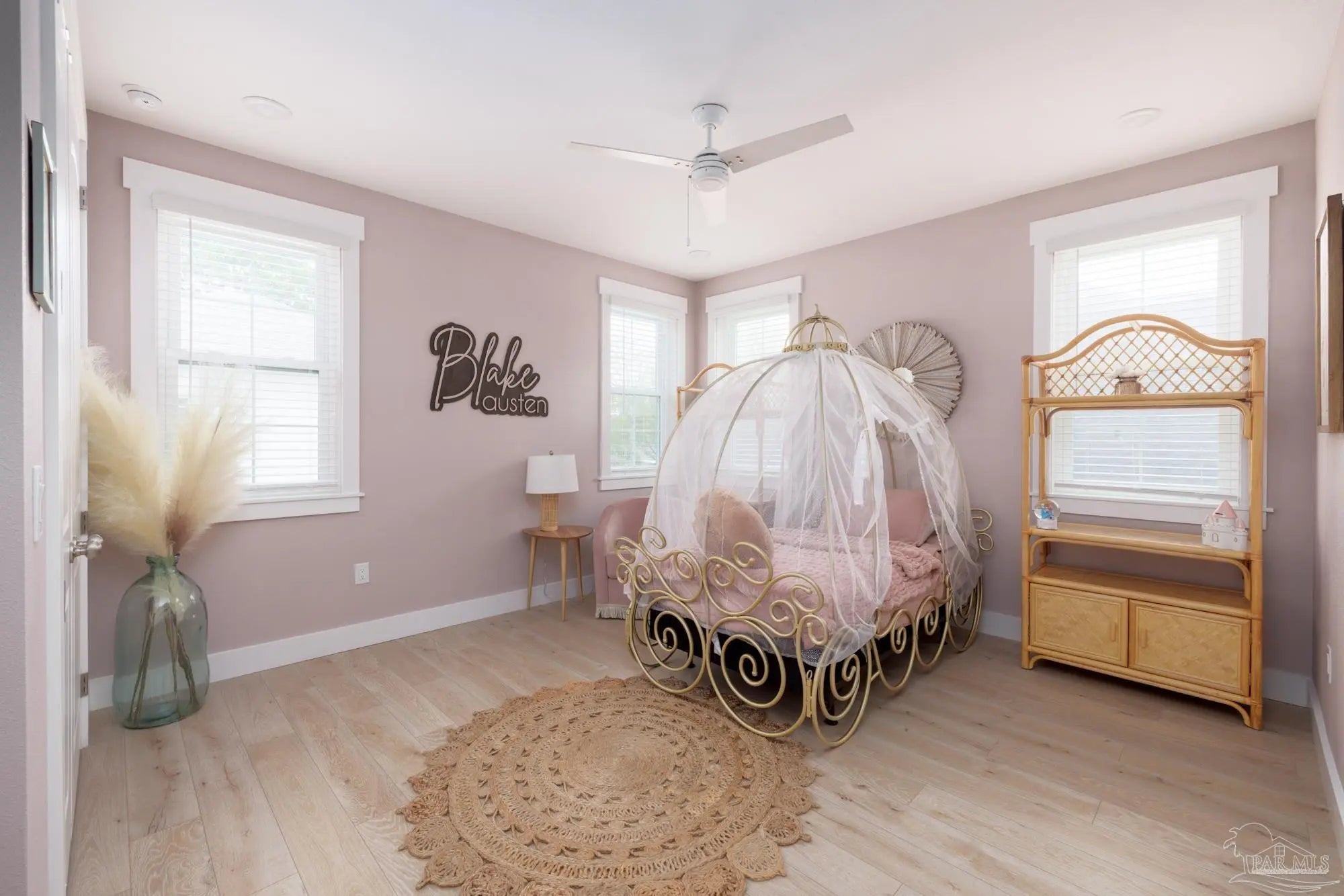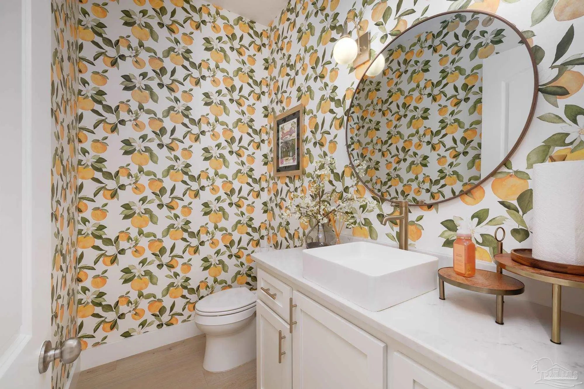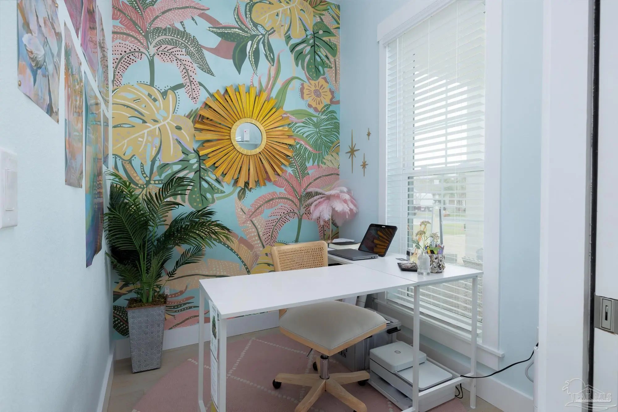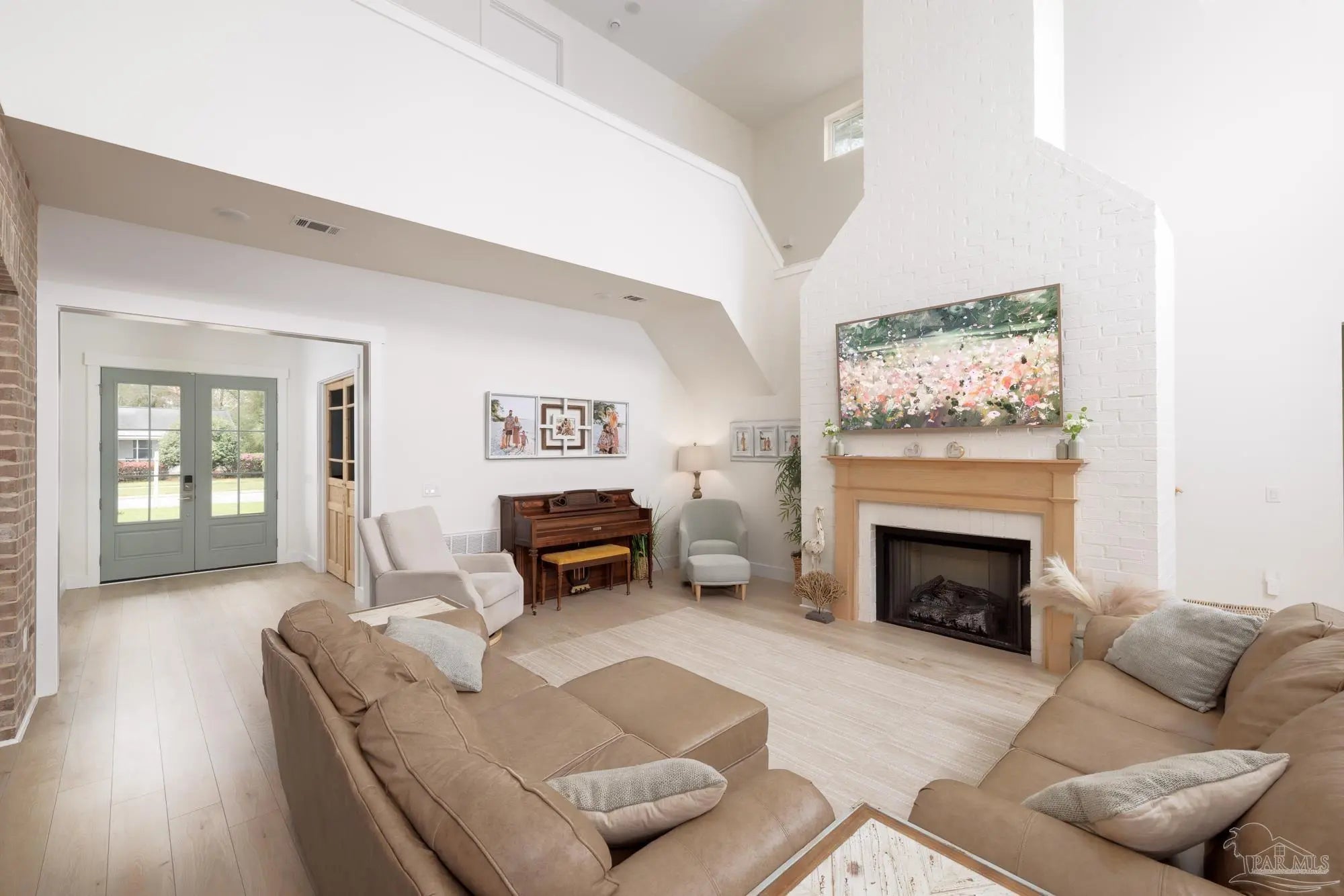 Set back from the road on a circular drive, this extraordinary home announces itself with a commanding presence and stunning curb appeal before you ever step inside. The broad foyer opens into a beautiful great room in front, with a home office and a kids play room to your right and left. The soaring great room welcomes you with two-story ceilings, wide-plank LVP floors, a white-brick fireplace, and walls of French doors that flood the space with natural light and open to the pool beyond. A stunning exposed brick arch frames the passage into the kitchen and dining area, where sage-green custom cabinetry, a six-burner gas range, double wall ovens, Cafe custom built in refrigerator, quartz countertops, pot filler, and a generous island create a chef's space of remarkable beauty. The adjacent scullery pantry with its own farmhouse sink and quartz counters ensures every inch of storage you could want. The first-floor master suite is a sanctuary, offering a spa bath with freestanding soaking tub, glass-enclosed shower with pebble tile floor, dual vanities, brass hardware, and his-and-hers walk-in closets. A powder bath, home office, playroom, mudroom, and laundry room complete the first floor with purpose and personality. Upstairs, three imaginative bedrooms are served by a Jack-and-Jill bath and a private ensuite. A fully self-contained guest suite with kitchenette and living area is available above the detached garage…perfect for extended family. Outside, the covered back porch with outdoor fireplace, mounted television, and beadboard ceiling opens to a sparkling pool embraced by bamboo and palms. All of this awaits in East Hill, minutes from top schools, hospitals, the interstate, and the shops and restaurants of Downtown Pensacola. This home is a dream come true!