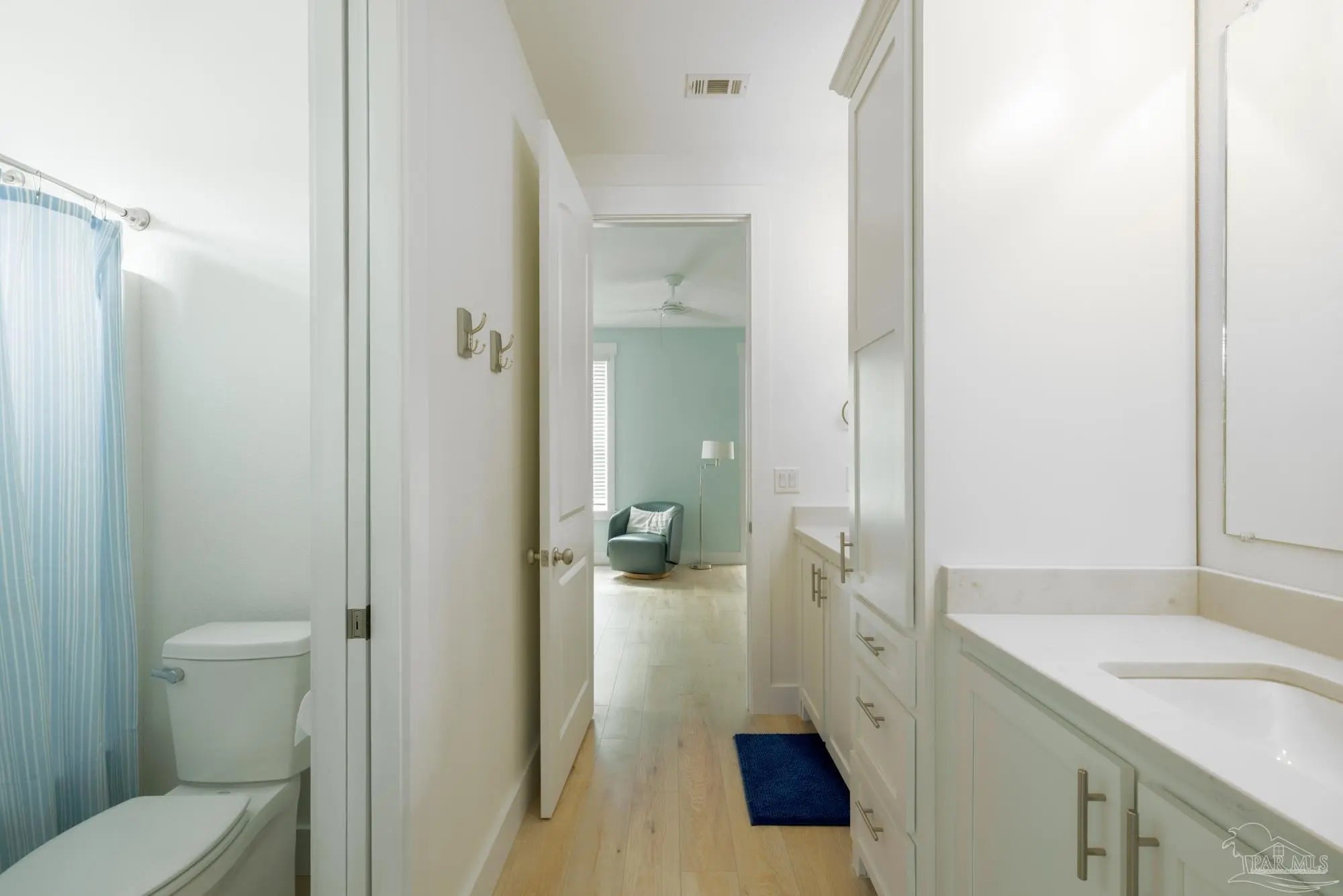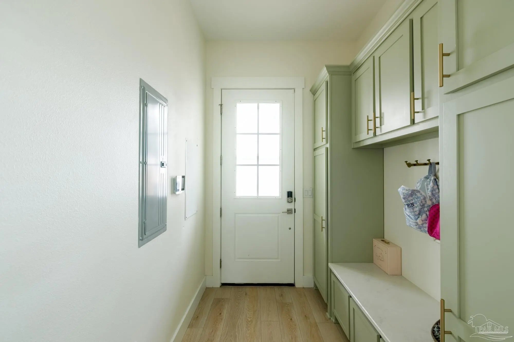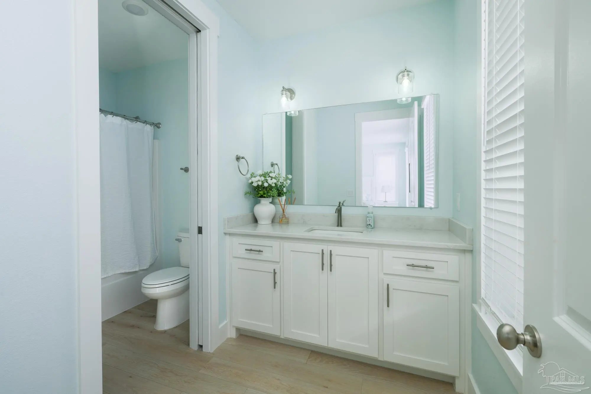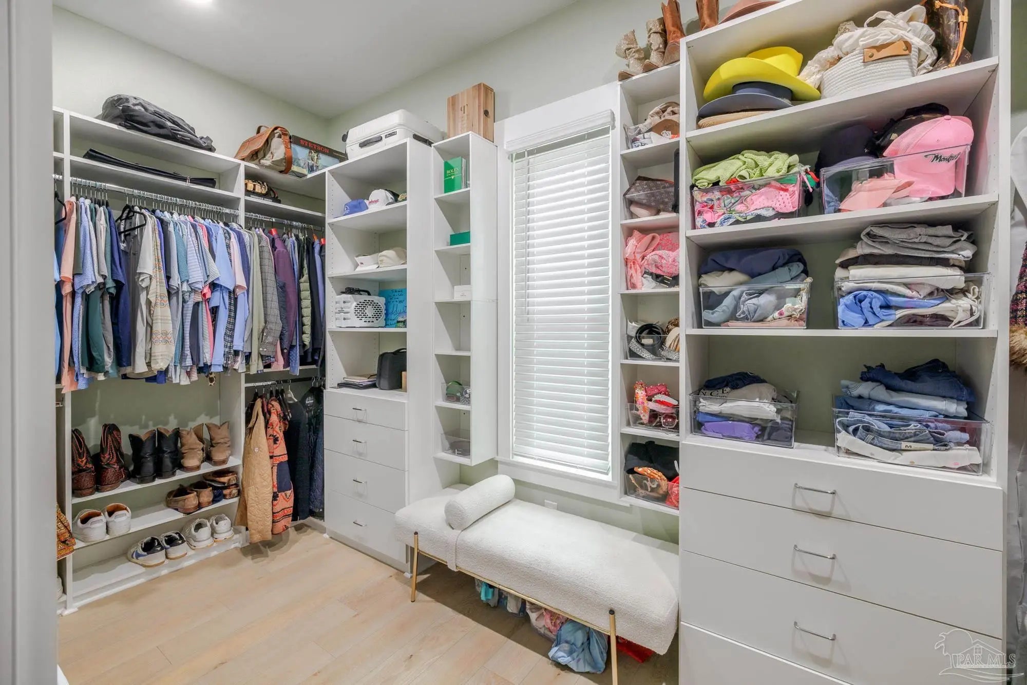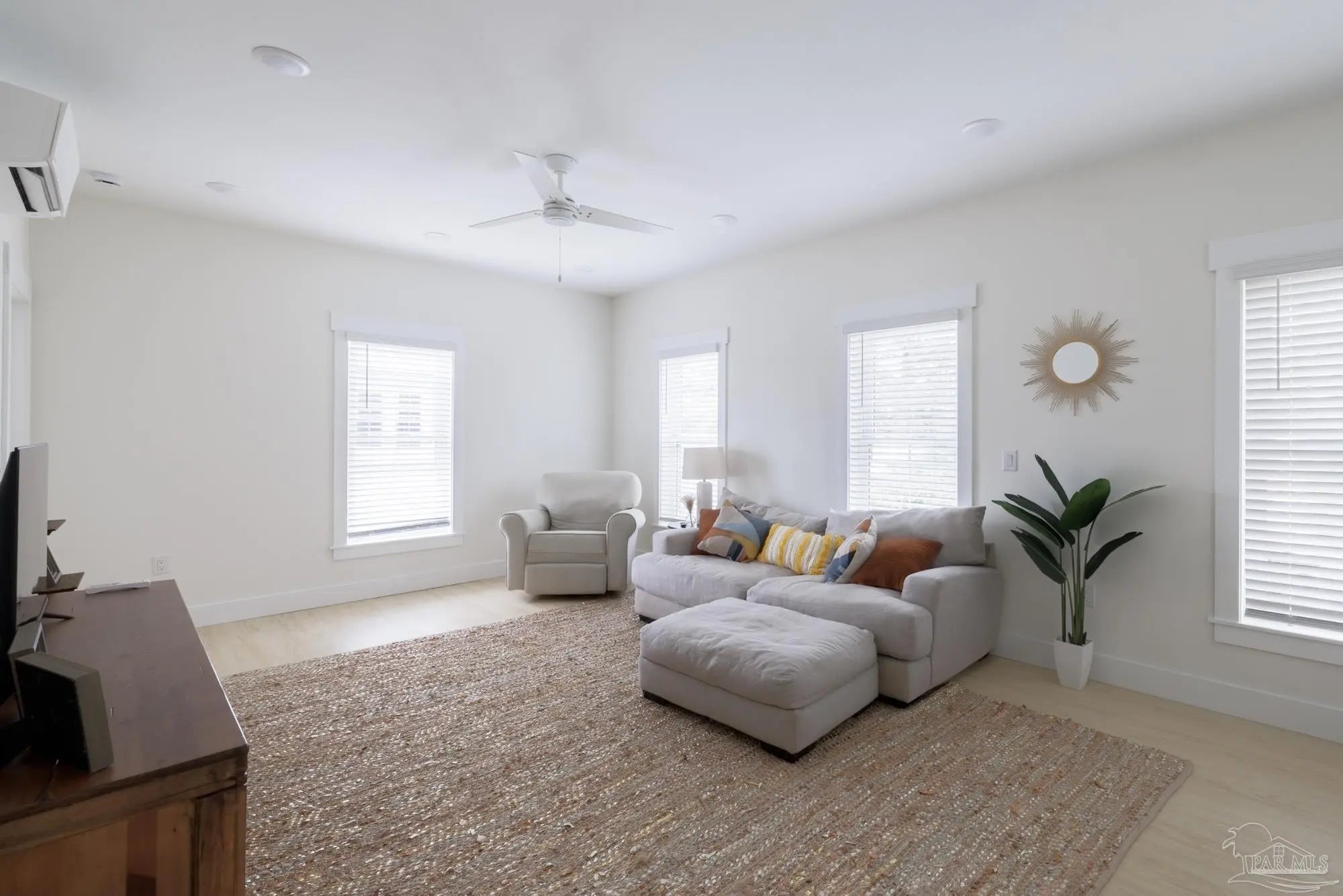Set back from the road on a circular drive, this extraordinary home announces itself with a commanding presence and stunning curb appeal before you ever step inside. The broad foyer opens into a beautiful great room in front, with a home office and a kids play room to your right and left. The soaring great room welcomes you with two-story ceilings, wide-plank LVP floors, a white-brick fireplace, and walls of French doors that flood the space with natural light and open to the pool beyond. A stunning exposed brick arch frames the passage into the kitchen and dining area, where sage-green custom cabinetry, a six-burner gas range, double wall ovens, Cafe custom built in refrigerator, quartz countertops, pot filler, and a generous island create a chef's space of remarkable beauty. The adjacent scullery pantry with its own farmhouse sink and quartz counters ensures every inch of storage you could want. The first-floor master suite is a sanctuary, offering a spa bath with freestanding soaking tub, glass-enclosed shower with pebble tile floor, dual vanities, brass hardware, and his-and-hers walk-in closets. A powder bath, home office, playroom, mudroom, and laundry room complete the first floor with purpose and personality. Upstairs, three imaginative bedrooms are served by a Jack-and-Jill bath and a private ensuite. A fully self-contained guest suite with kitchenette and living area is available above the detached garage…perfect for extended family. Outside, the covered back porch with outdoor fireplace, mounted television, and beadboard ceiling opens to a sparkling pool embraced by bamboo and palms. All of this awaits in East Hill, minutes from top schools, hospitals, the interstate, and the shops and restaurants of Downtown Pensacola. This home is a dream come true!