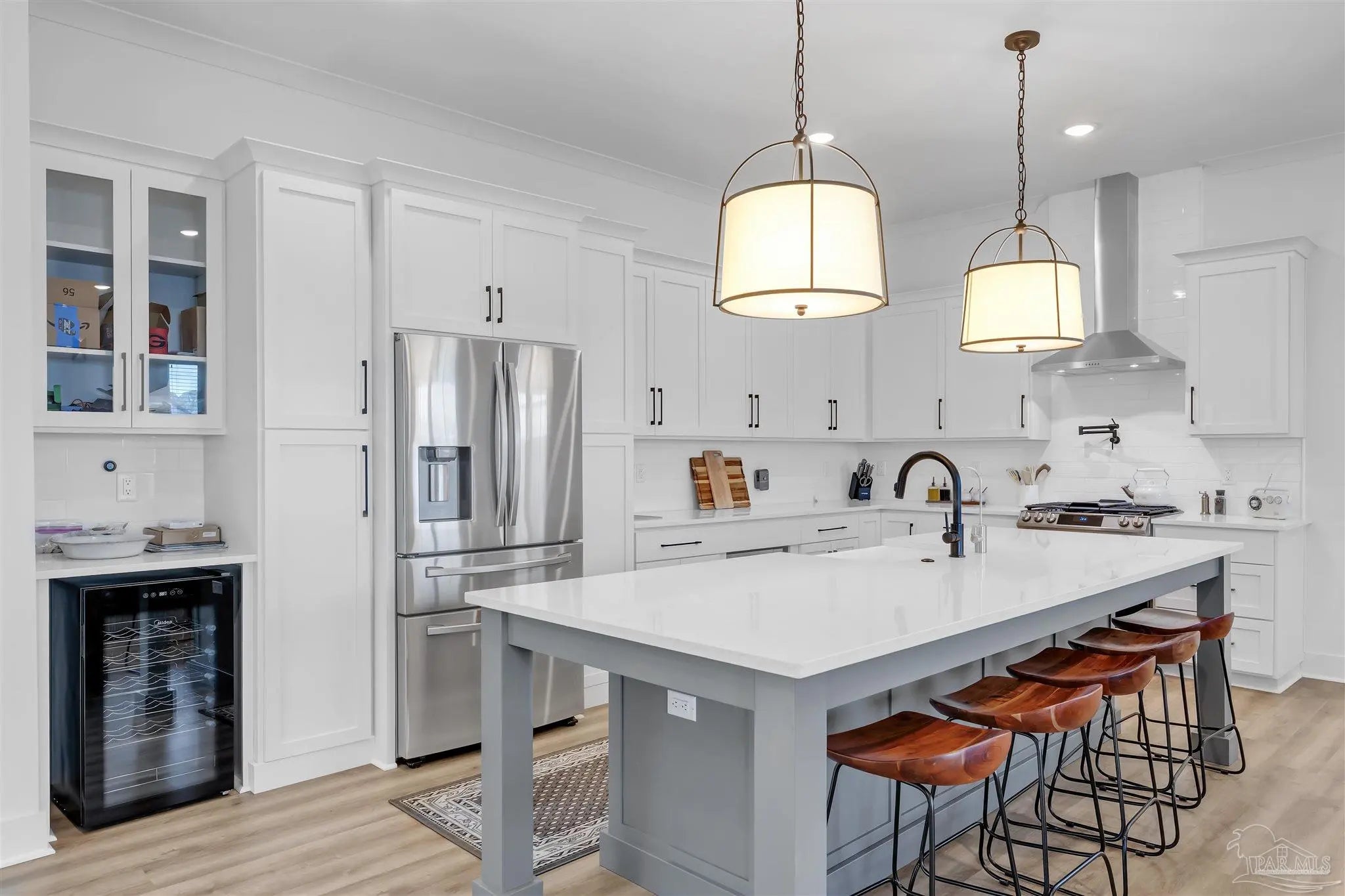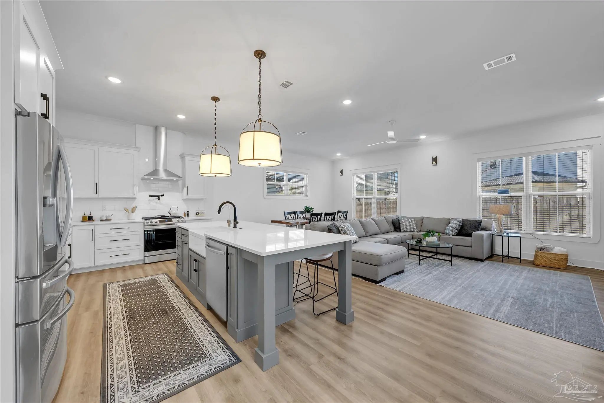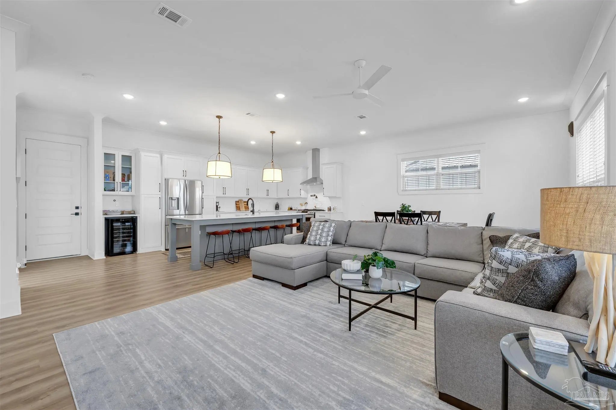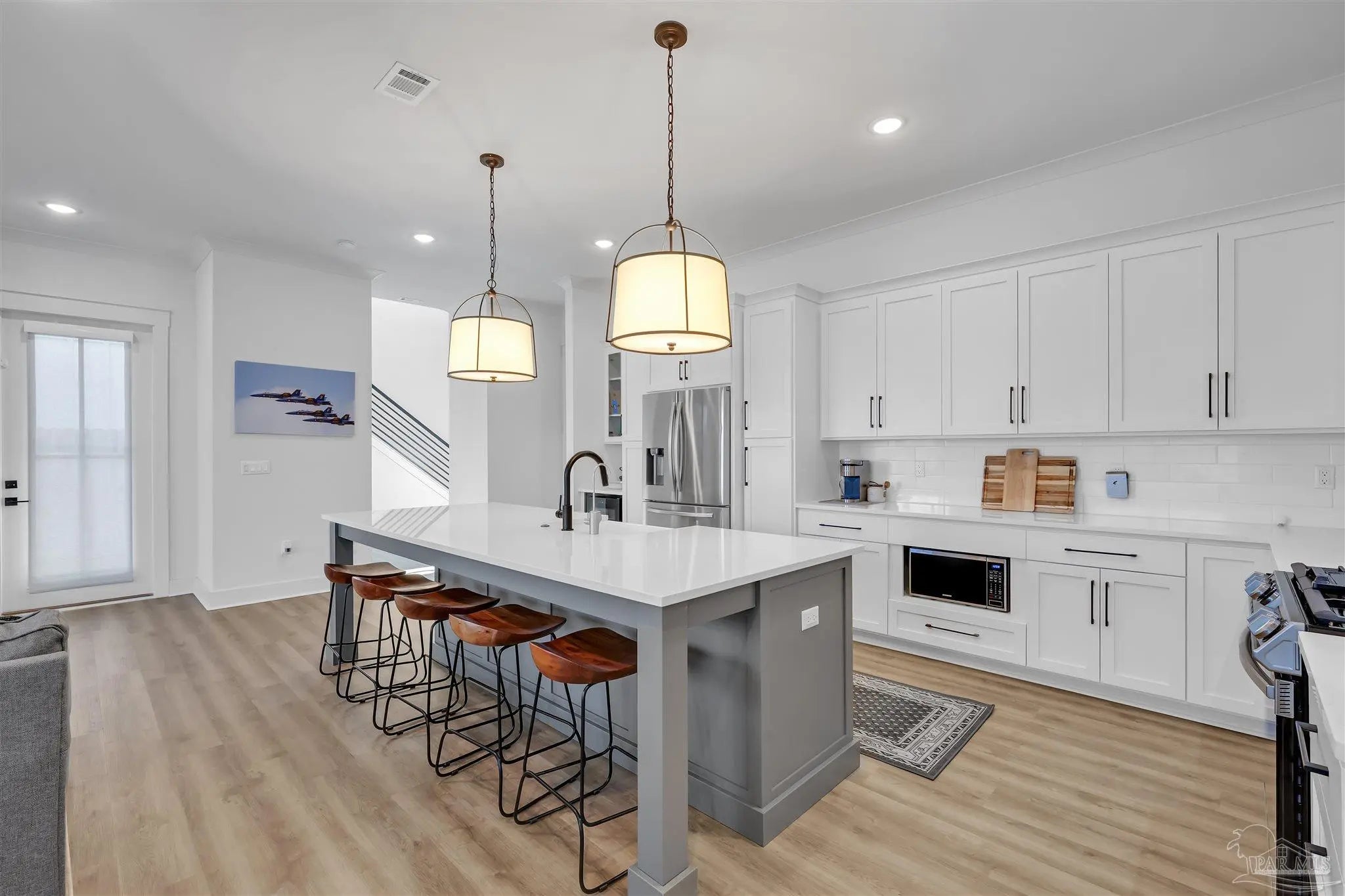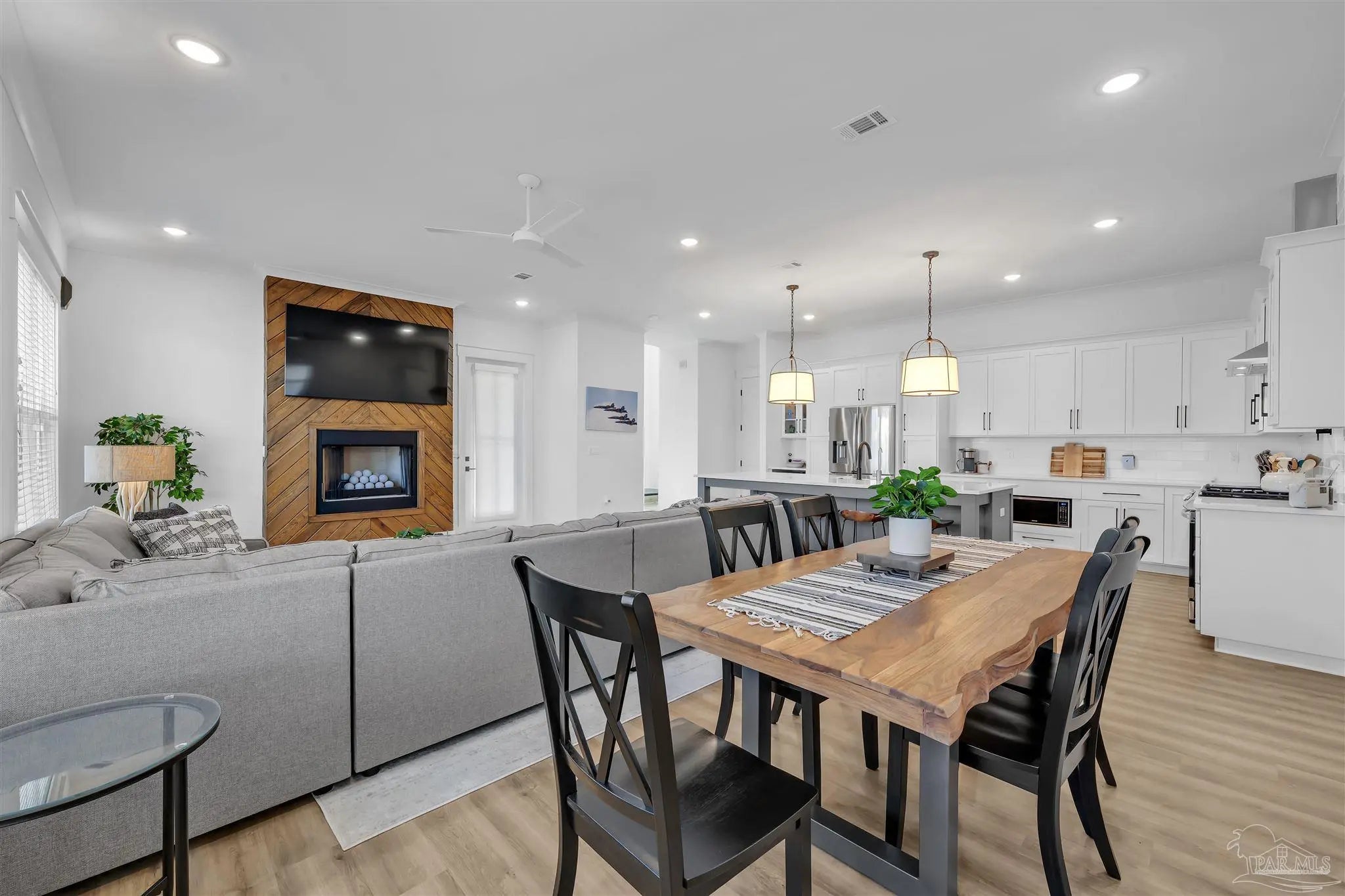 Welcome to this immaculate two-story coastal retreat in the sought-after community of Redfish Harbor. Built in 2022, this home offers 3 spacious bedrooms, 2.5 baths, and a design that perfectly balances modern sophistication with coastal charm. Step inside and be greeted by a beautiful staircase and open-concept living spaces featuring luxury vinyl plank flooring throughout. The gourmet kitchen is a showstopper with white quartz countertops, crisp white cabinets, a bold accent island, stainless steel appliances, gas cooktop with a pot filler, and an abundance of storage. The dining and living areas flow seamlessly together, with the gas fireplace framed in eye-catching wood adding a warm focal point. Upstairs, the primary suite impresses with wood-inlay ceilings, a magnificent ensuite bath boasting dual vanities, tub, separate walk-in shower, and a private water closet. The walk-in closet features recently installed custom cabinetry and connects conveniently to the laundry room. Two additional guest bedrooms share a stylish Jack and Jill bathroom, each with wonderful natural light. This home has been meticulously maintained and is 'like-new'. Never a primary residence, only a scarcely used second home, it is in pristine condition and features a whole home dehumidifier. Sold furnished. Redfish Harbor offers an unmatched coastal lifestyle, featuring a 45' x 25' community pool, pickleball courts, a fitness park, community dock, outdoor fireplace and lounge area, and bathhouse facilities. Boat enthusiasts will appreciate available wet slips accommodating vessels up to 40 feet. The neighborhood’s natural beauty creates a serene environment just minutes from Perdido Key’s sugar-white beaches, Orange Beach, local shops, and favorite dining spots. Whether you’re seeking a full-time residence, a coastal getaway, or a vacation rental opportunity, this home delivers the perfect blend of relaxation, recreation, and refined living along the Gulf Coast.