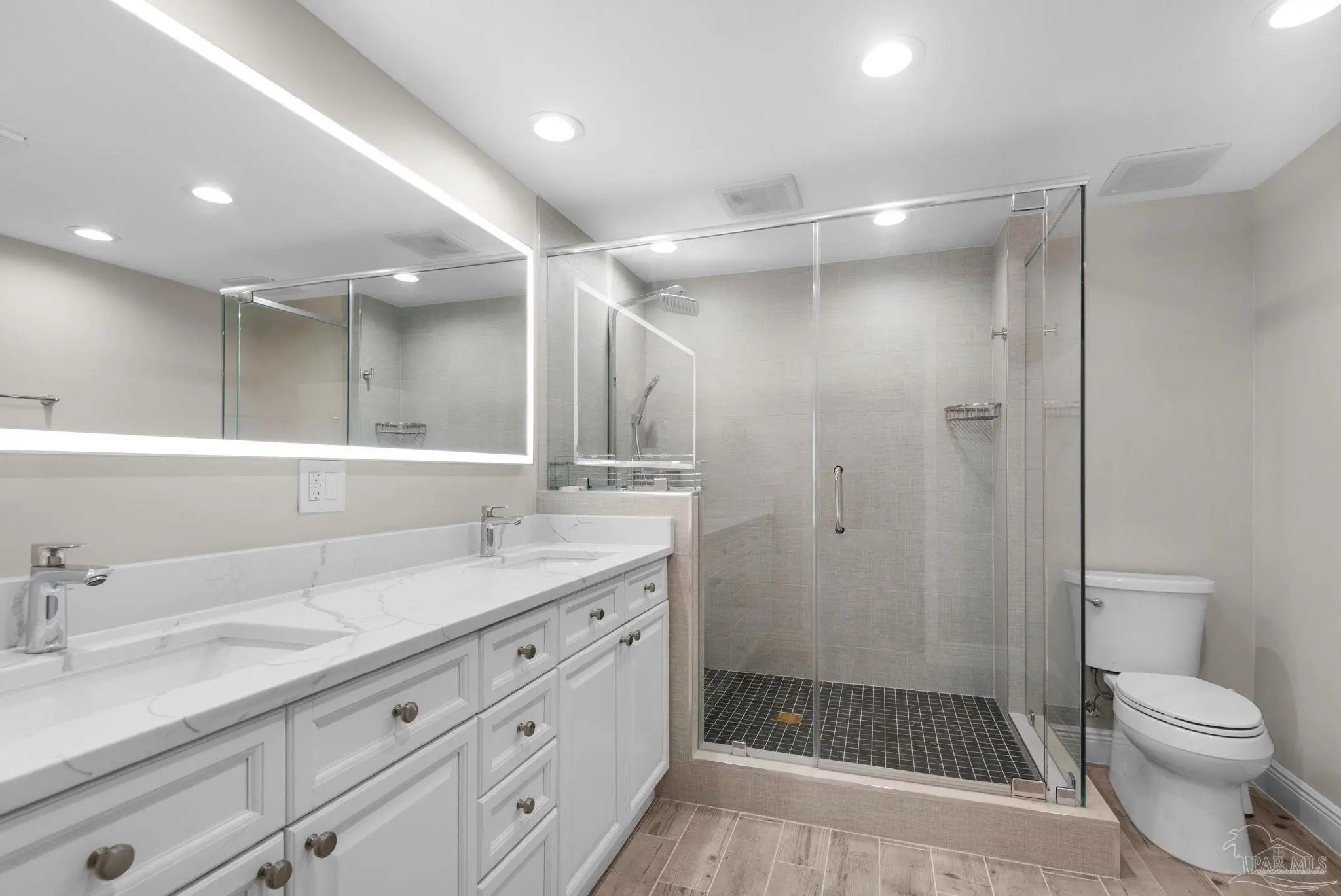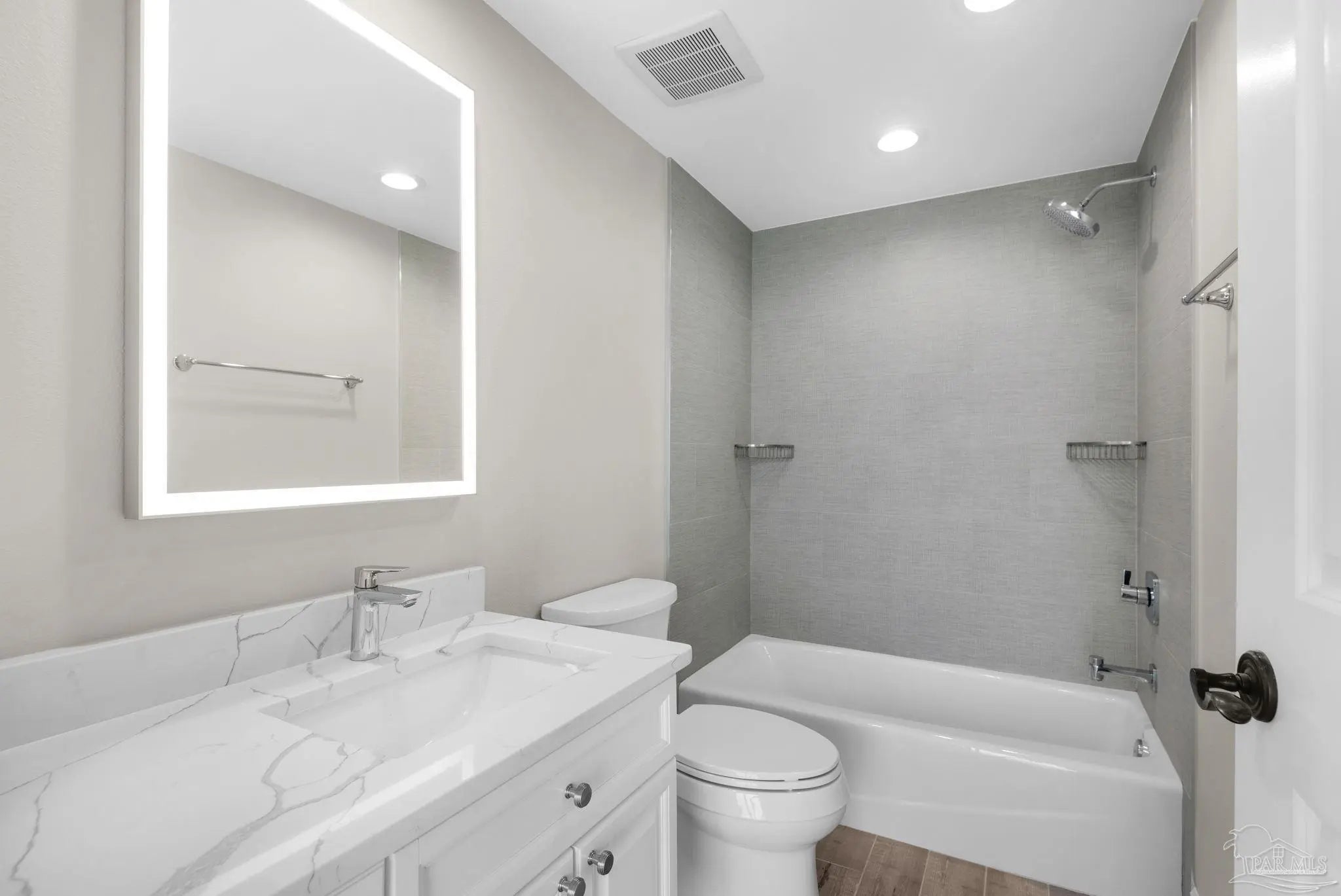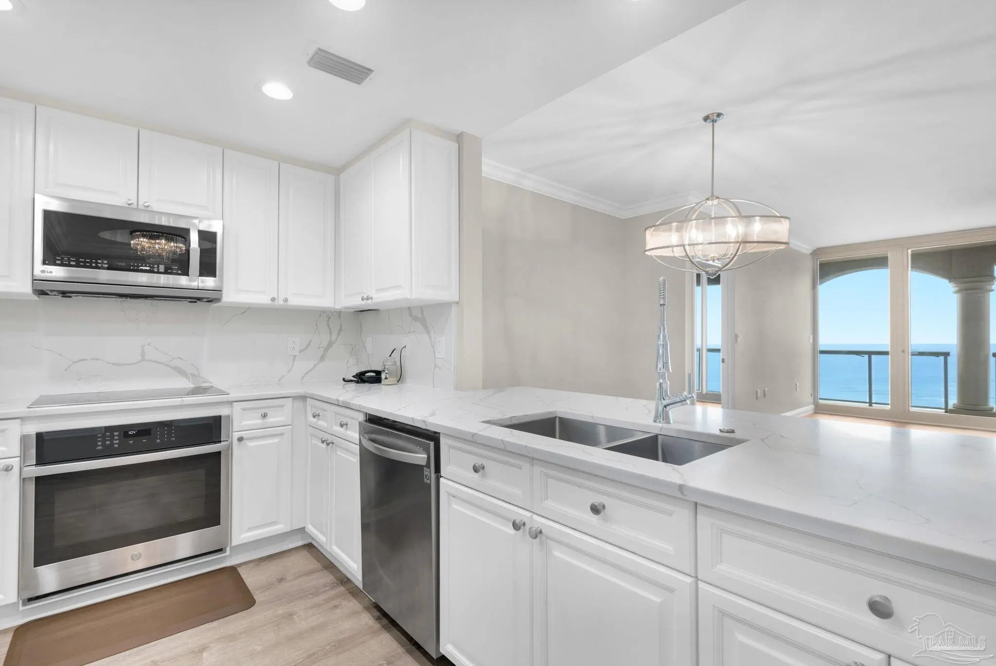 Experience breathtaking west-facing views of the Gulf of Mexico and Santa Rosa Sound from this beautifully upgraded 2-bedroom Portofino condo featuring floor-to-ceiling windows that fill the condo with natural light and showcase stunning sunsets over the water. This was a primary residence and has been thoughtfully renovated with high-end finishes throughout. The kitchen and bathrooms feature elegant quartzite countertops, complemented by all new Kohler and Grohe sinks, faucets, and shower fixtures. The kitchen is fully updated with new appliances including range, microwave, and refrigerator, creating a sleek and functional space for cooking and entertaining. The entire unit has been freshly painted Additional upgrades include luxury laminate vinyl flooring throughout the unit, porcelain tile upgrades in both the primary and guest bathrooms, custom lighting with Lutron dimmers, and custom shades and window treatments that enhance both comfort and style. Enjoy the best of resort living at Portofino with beach access, bay access, multiple pools and hot tubs, a full-service spa, fitness center, tennis courts, on-site restaurants, and beautifully designed air-conditioned lobbies with elevators on every floor. Whether used as a primary residence, second home, or investment property, this beautifully upgraded condo offers luxury coastal living with spectacular sunset views.