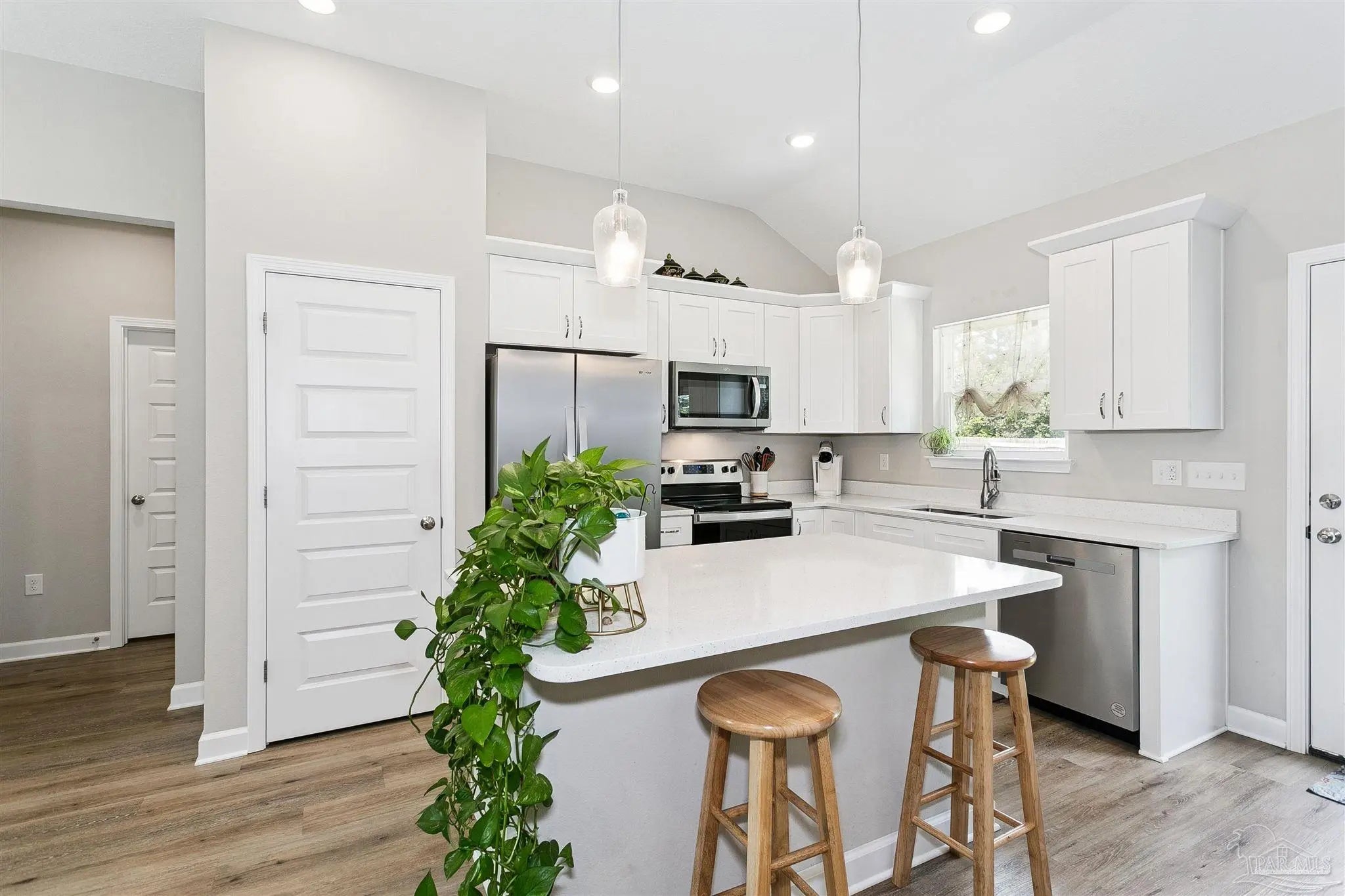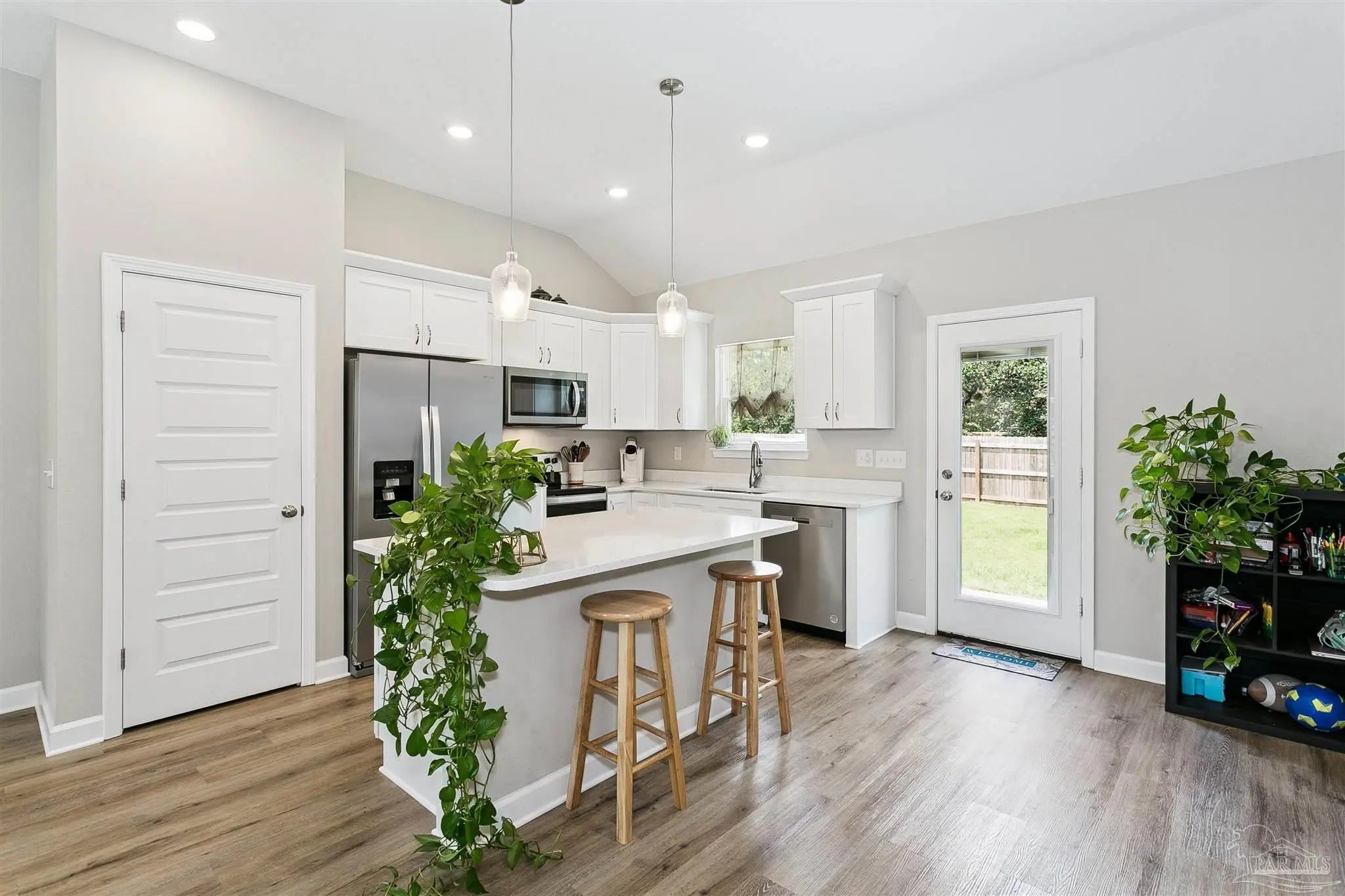Built in 2023. Still has new construction look and smell!!Like new! Super cute ALL brick 3/2 with 2 car garage!! From the moment you walk in you are greeted by an open, airey great room with 9 feet ceilings, luxury vinyl floors and recessed lighting. Kitchen has stainless steel appliances, work island, pantry and white shaker cabinets. Floorplan has split bedrooms. All bedrooms have carpet. Master bedroom is good size with an ensuite that boasts double vanities and large walk in closet. Guest rooms are good sized. Back yard is large and fully fenced with a 6 foot privacy fence. HVAC and fence are still under warranty