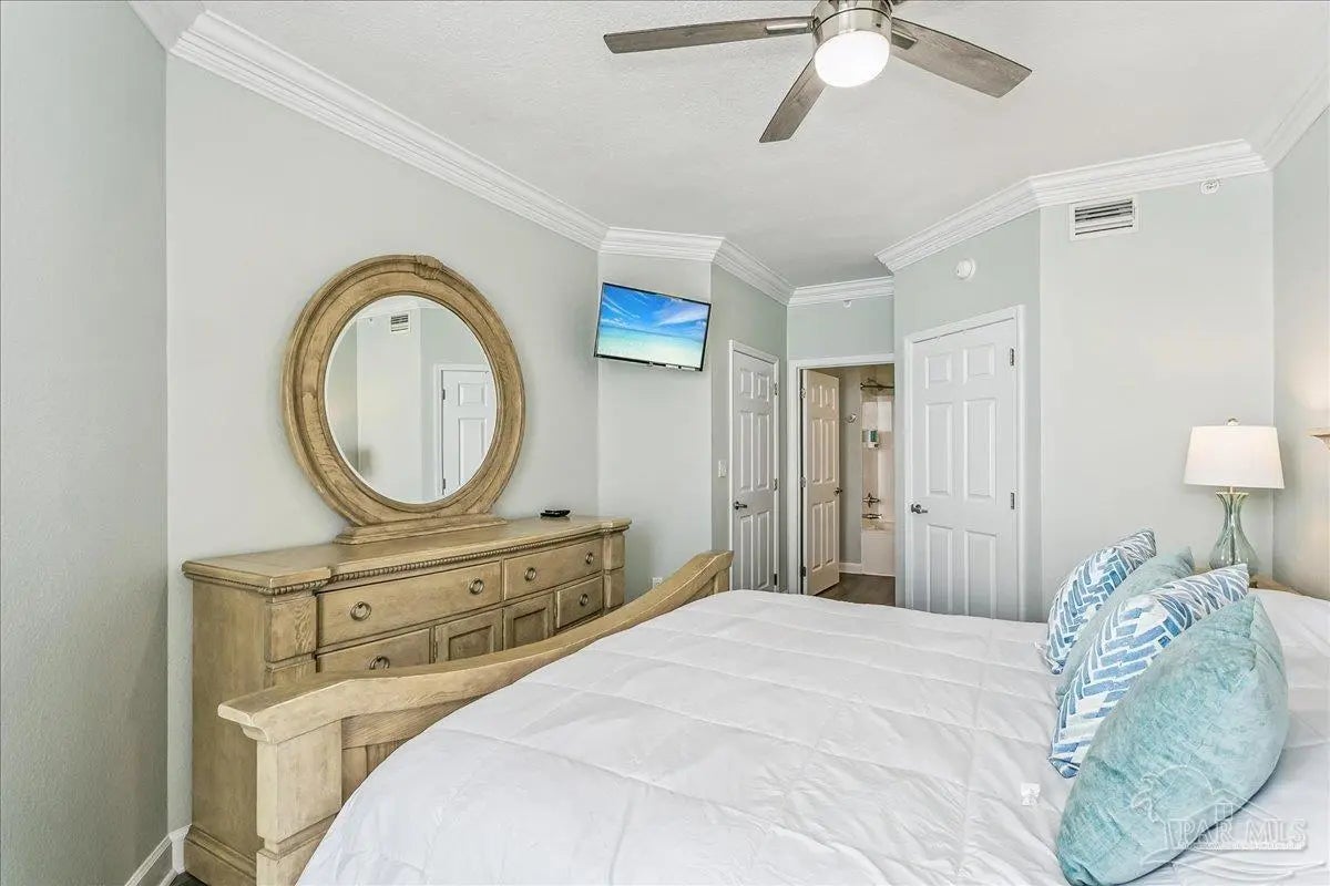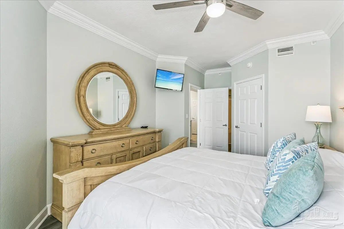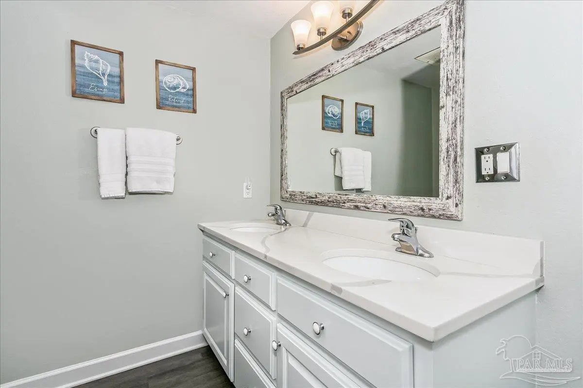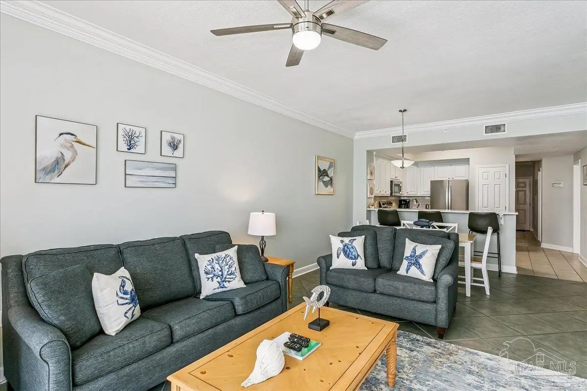 Revive your spirit with the sounds and views of emerald waters and sugar-white sands along the Gulf of America. This fully furnished, updated 8th-floor condominium features 2 bedrooms plus bunk room and 2 bathrooms. Perfectly positioned, it is low enough to feel connected to the Gulf while high enough to provide privacy and breathtaking views. Painted in designer neutrals and enhanced with new ceiling fans, updated lighting fixtures, and 10-ft ceilings with elegant crown molding. The open-concept layout offers a spacious living and dining area with direct access to the Gulf-front balcony—perfect for enjoying coastal sunsets and sea breezes. The kitchen includes a breakfast bar for additional seating, quartz countertops, refinished cabinet doors, a pantry, and stainless-steel appliances—fully equipped and ready for entertaining family and guests. The waterfront primary suite features a walk-in closet and an upgraded double vanity with quartz countertops. Guest bedroom has access to the guest bathroom, while the bunk room is conveniently located down the hall. The guest bathroom has been newly updated with a quartz vanity. Additional conveniences include a laundry area with a full-size washer and dryer and a lock-out storage closet. This move-in-ready property is ideal as primary residence, vacation home, or vacation rental investment. Located within walking distance of the Navarre Pier and local restaurants, the Summerwind complex offers 450 feet of beachfront access and outstanding amenities, including: three Gulf-side pools (one heated in winter), three hot tubs, beach walkover, fitness center, grilling area and on-site security. Enjoy everything the Gulf Coast lifestyle has to offer—fishing from the coast’s longest pier, or snorkeling the nearby reefs. Navarre Beach stretches just four miles and is one of only ten beaches in the nation protected as a National Seashore. Known as “Florida's Most Relaxing Place,” it is conveniently located between Destin & Pensacola.