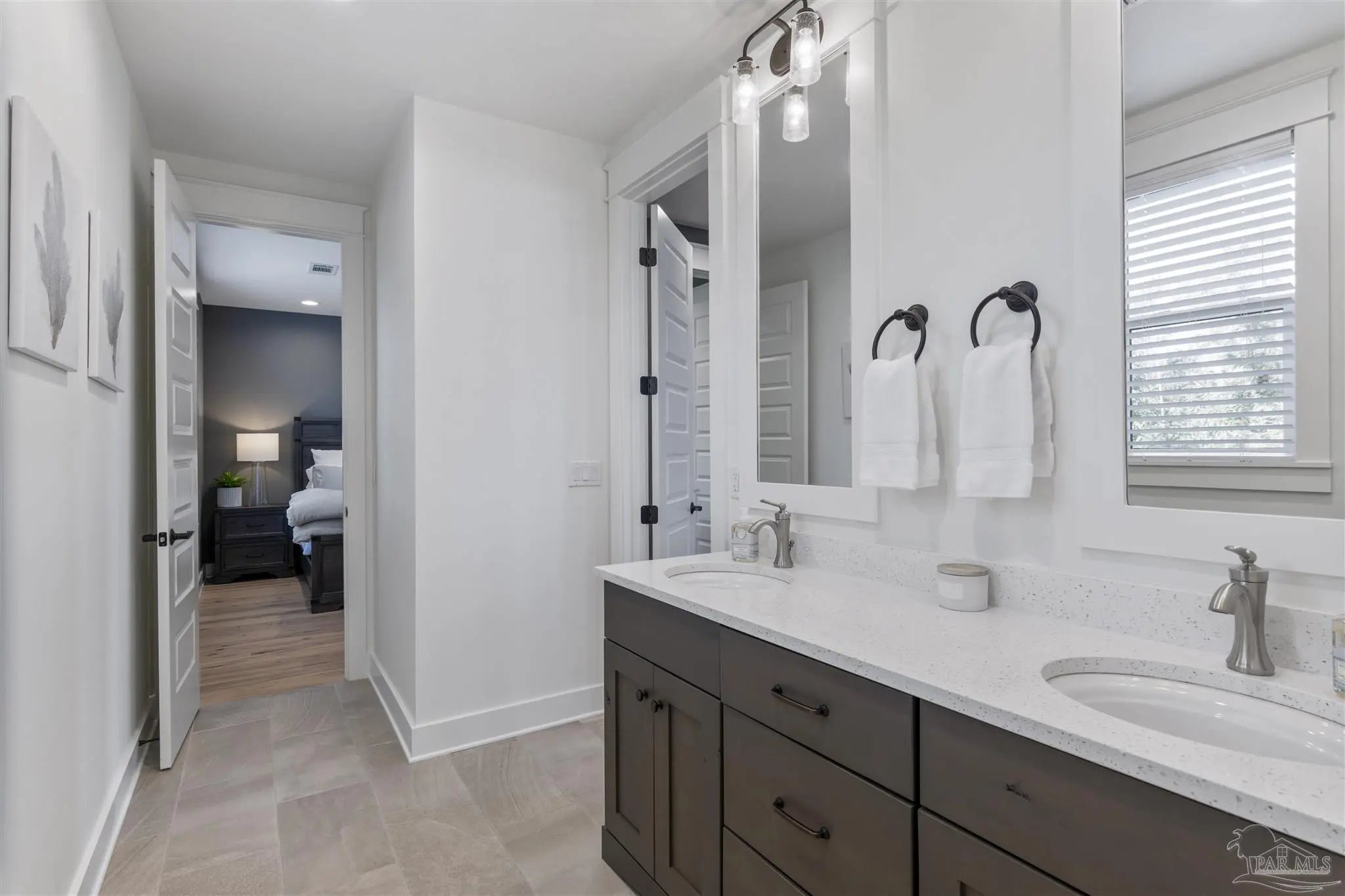 Welcome to refined coastal living in the charming community of RidgeWalk in beautiful Santa Rosa Beach, along Florida’s renowned Scenic Highway 30A. Step inside to find an impeccably designed interior featuring rich hardwood floors that flow seamlessly throughout the open-concept living spaces. The inviting living area is bathed in natural light, creating a warm and sophisticated ambiance ideal for both relaxation and entertaining. Adjacent, the chef’s kitchen is a culinary masterpiece, boasting high-end finishes, generous counter space, and premium appliances—a true haven for those who love to cook or host in style. Each of the three spacious bedrooms features a private en-suite bathroom, ensuring ultimate comfort and privacy. The first-floor primary suite is a luxurious retreat, showcasing a spa-inspired bathroom with a beautifully tiled shower, dual quartz-topped vanities, and an expansive walk-in closet designed for effortless organization. Beyond the home, RidgeWalk offers a setting that feels both timeless and inviting. The community welcomes you through a gated brick-paved entrance and a 7-acre protected habitat create a tranquil environment surrounded by nature. Residents enjoy an exceptional collection of amenities, including a classic yet modern European-style zero-entry pool, stunning water features with an adjoining hot tub, and an open sundeck with shaded trellised lounging areas. The community pavilion serves as a welcoming gathering place with a cozy fireplace, outdoor kitchen, and gas grills, ideal for socializing and relaxing. RidgeWalk is less than a mile from the intersection of County Highway 393 and 30A, offering quick access to the area’s famous sugar-white sand beaches and emerald waters and Gulf Place Town Center. Whether as a primary residence or a second home, this property offers the perfect blend of elegant design, natural beauty, and the coveted 30A lifestyle.