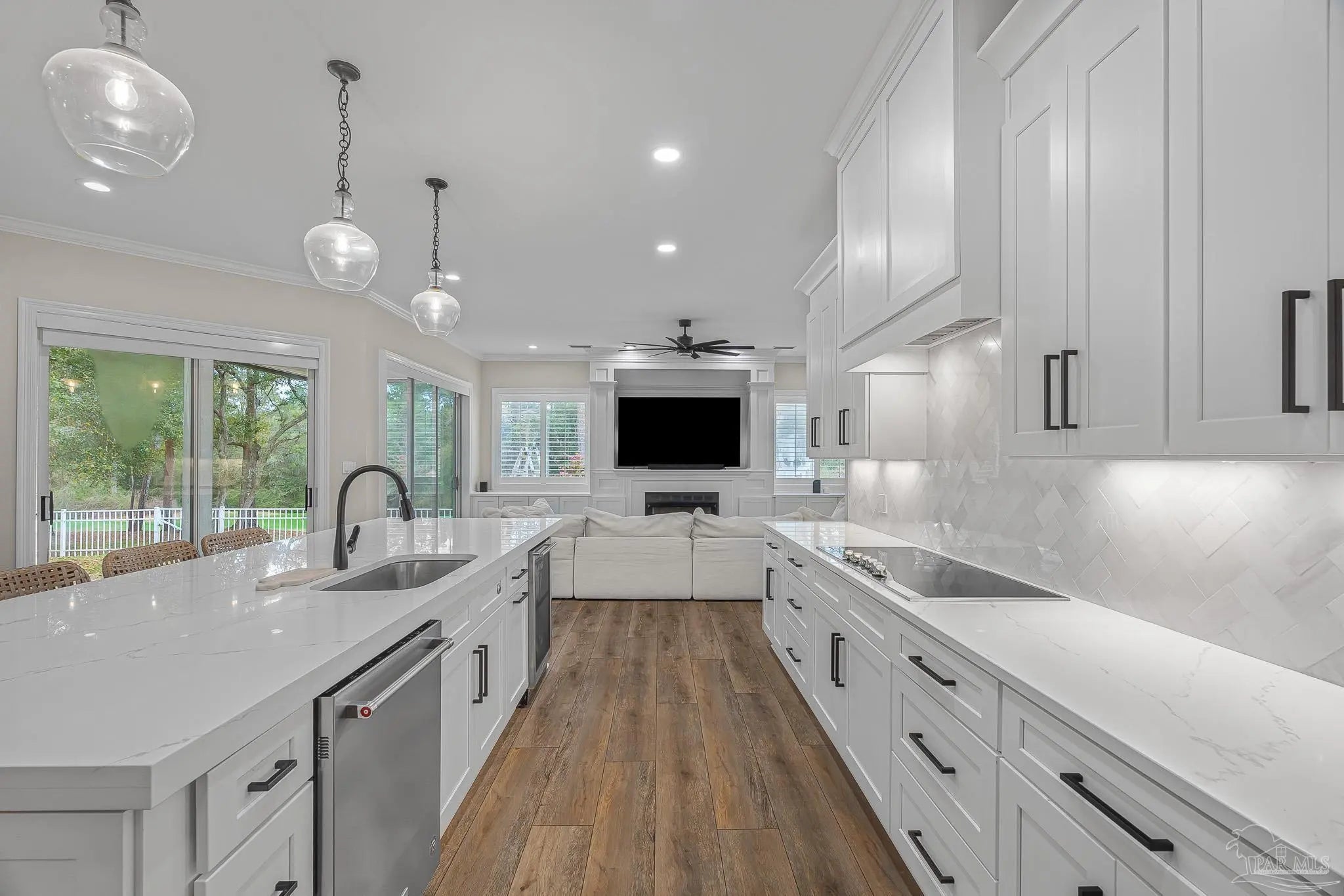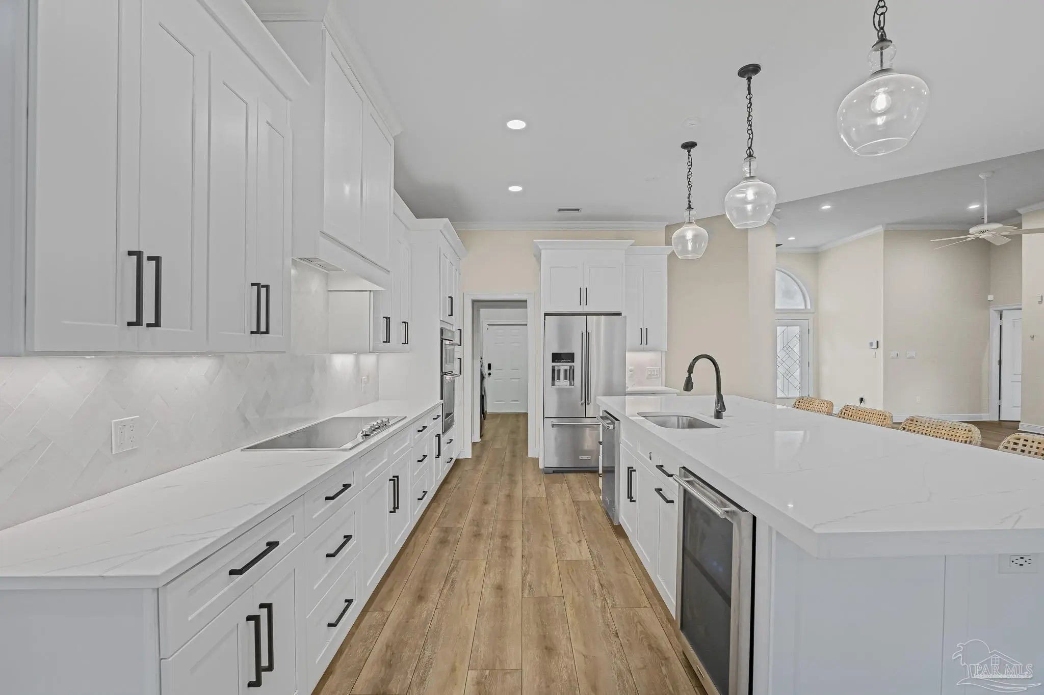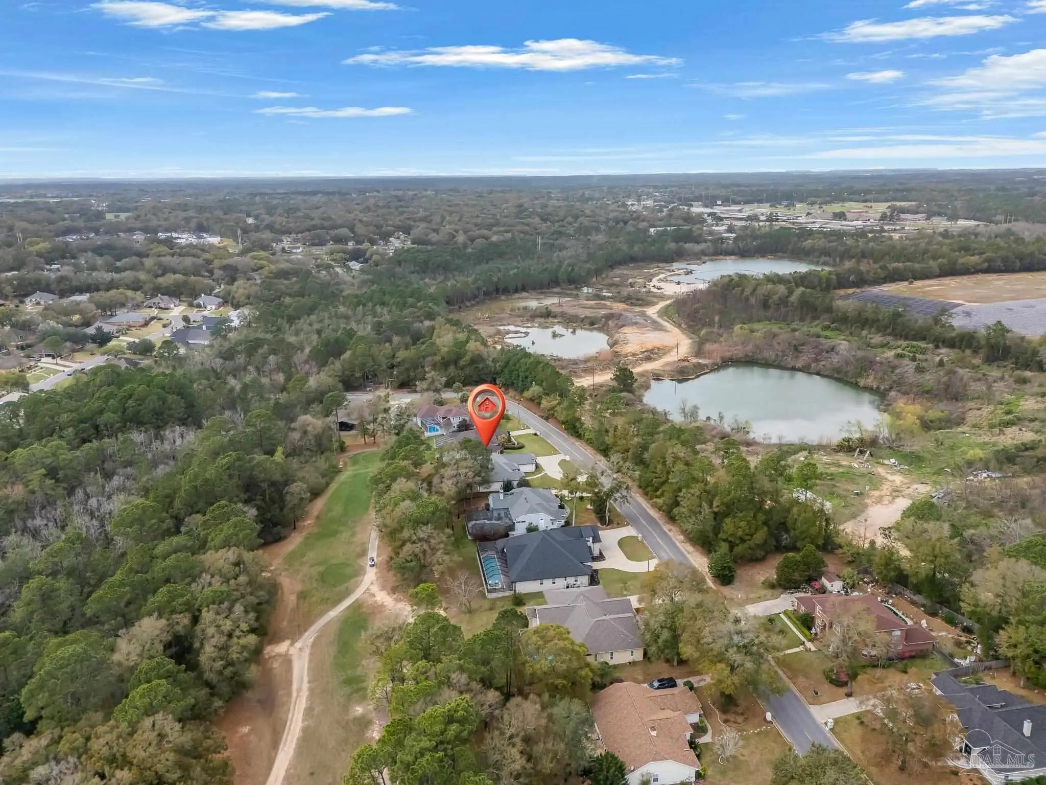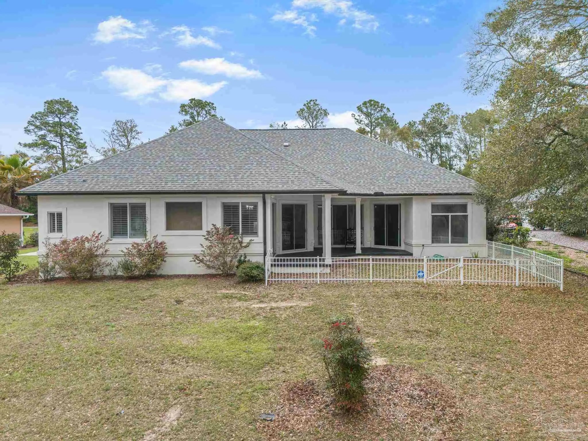 Located in the highly desirable Marcus Pointe Golf Community, this 3-bedroom, 2.5-bath home offers spacious living in one of Pensacola’s well-established neighborhoods. Located next to the fairways of Marcus Pointe Golf Club, the home features an open floor plan ideal for both everyday living and entertaining. The kitchen serves as the heart of the home with a large center island equipped with additional cabinet storage, stainless steel appliances, and a range hood, providing plenty of space for cooking, gathering, and casual dining. The adjoining living area includes built-in shelving and flows seamlessly into the dedicated dining space, creating a comfortable and functional layout. The spacious primary suite offers a private retreat with a walk-in closet and an ensuite bathroom featuring a deep soaking tub and a large tiled walk-in shower with built-in features. Two additional bedrooms and a full bath provide flexible space for family, guests, or a home office, while the convenient half bath adds extra functionality. Step outside to an expansive covered back patio, perfect for outdoor dining, relaxing evenings, or enjoying the peaceful surroundings of the community. With its prime location near golf, shopping, dining, and major roadways, this home offers a wonderful blend of comfort, convenience, and lifestyle in the heart of Pensacola.