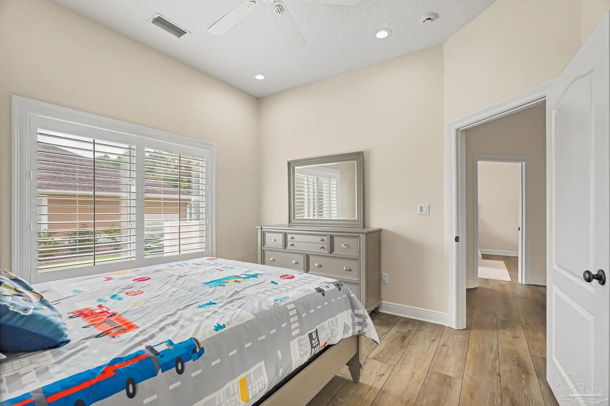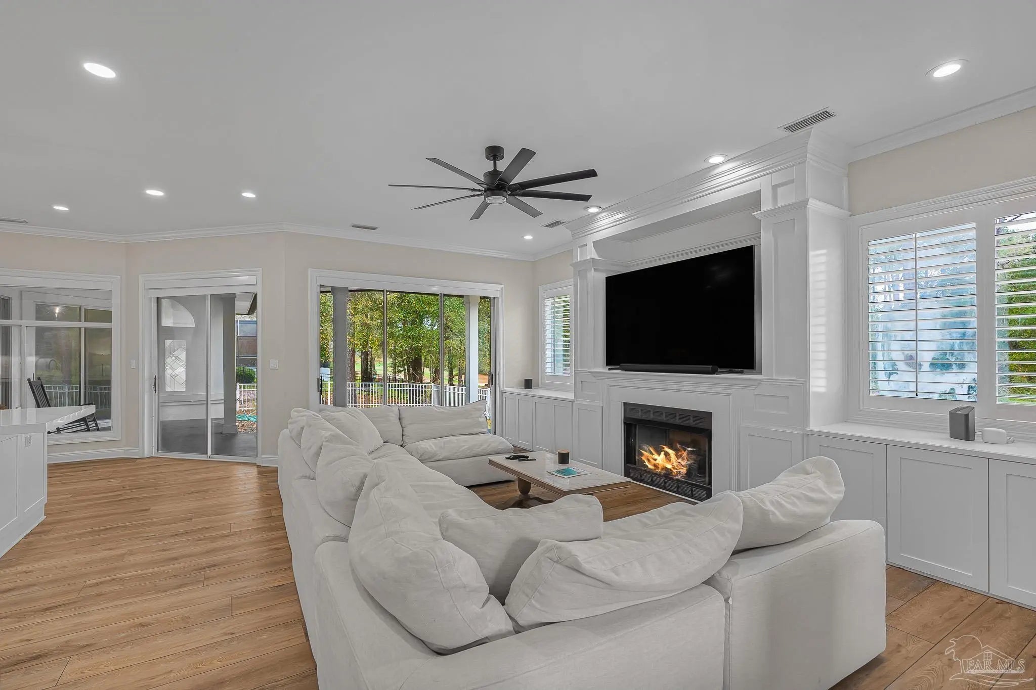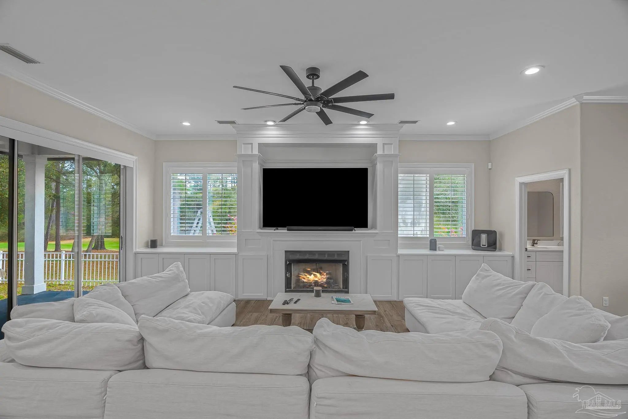 Located in the highly desirable Marcus Pointe Golf Community, this 3-bedroom, 2.5-bath home offers spacious living in one of Pensacola’s well-established neighborhoods. Located next to the fairways of Marcus Pointe Golf Club, the home features an open floor plan ideal for both everyday living and entertaining. The kitchen serves as the heart of the home with a large center island equipped with additional cabinet storage, stainless steel appliances, and a range hood, providing plenty of space for cooking, gathering, and casual dining. The adjoining living area includes built-in shelving and flows seamlessly into the dedicated dining space, creating a comfortable and functional layout. The spacious primary suite offers a private retreat with a walk-in closet and an ensuite bathroom featuring a deep soaking tub and a large tiled walk-in shower with built-in features. Two additional bedrooms and a full bath provide flexible space for family, guests, or a home office, while the convenient half bath adds extra functionality. Step outside to an expansive covered back patio, perfect for outdoor dining, relaxing evenings, or enjoying the peaceful surroundings of the community. With its prime location near golf, shopping, dining, and major roadways, this home offers a wonderful blend of comfort, convenience, and lifestyle in the heart of Pensacola.