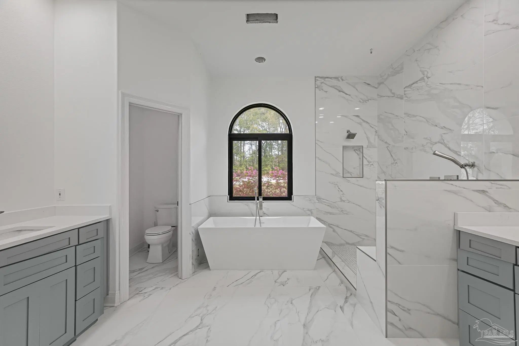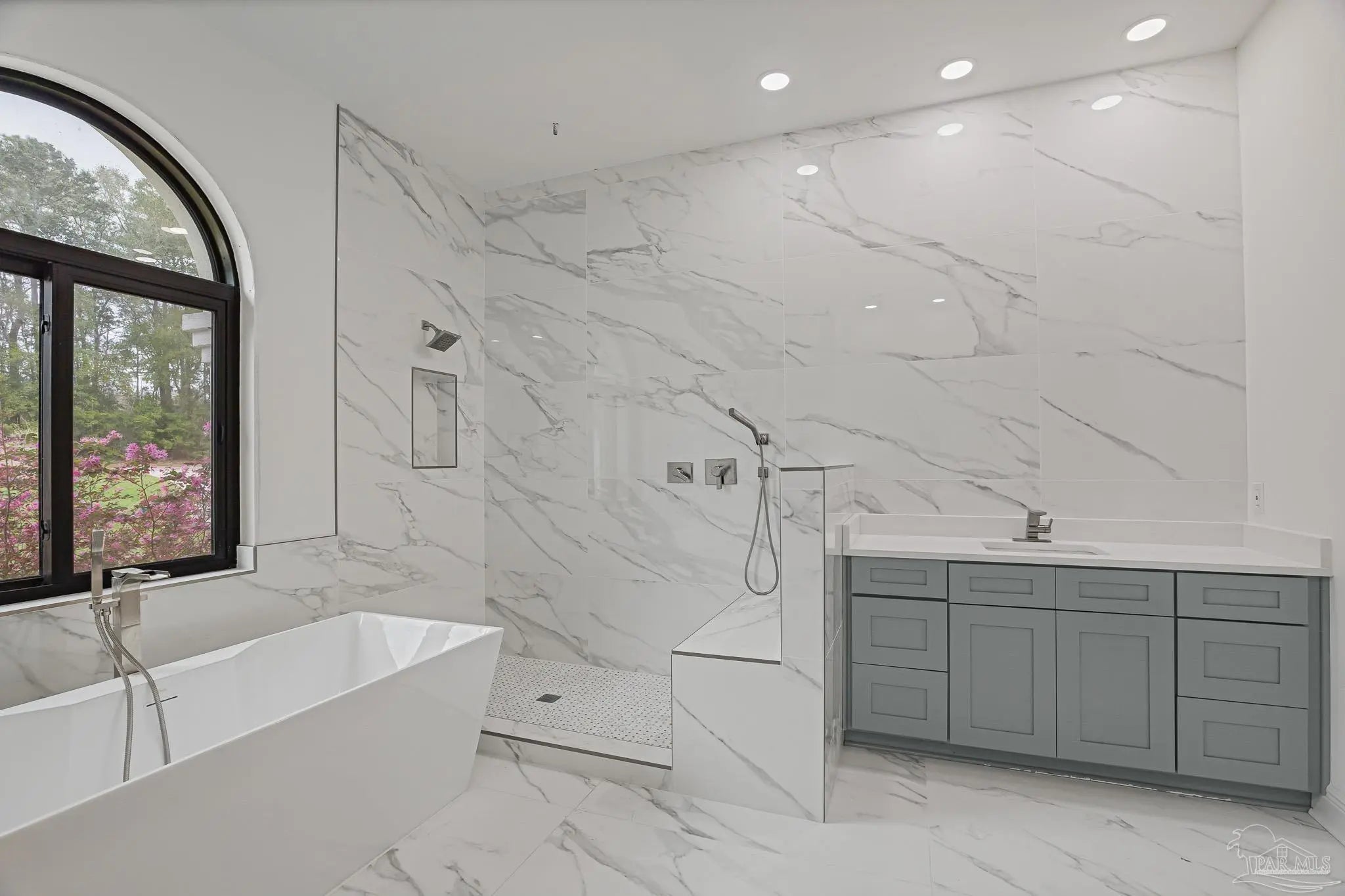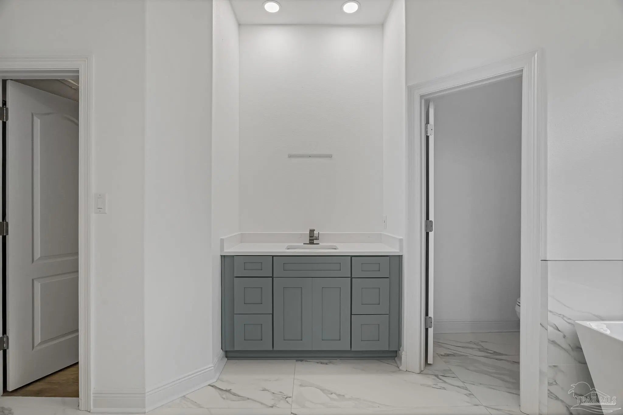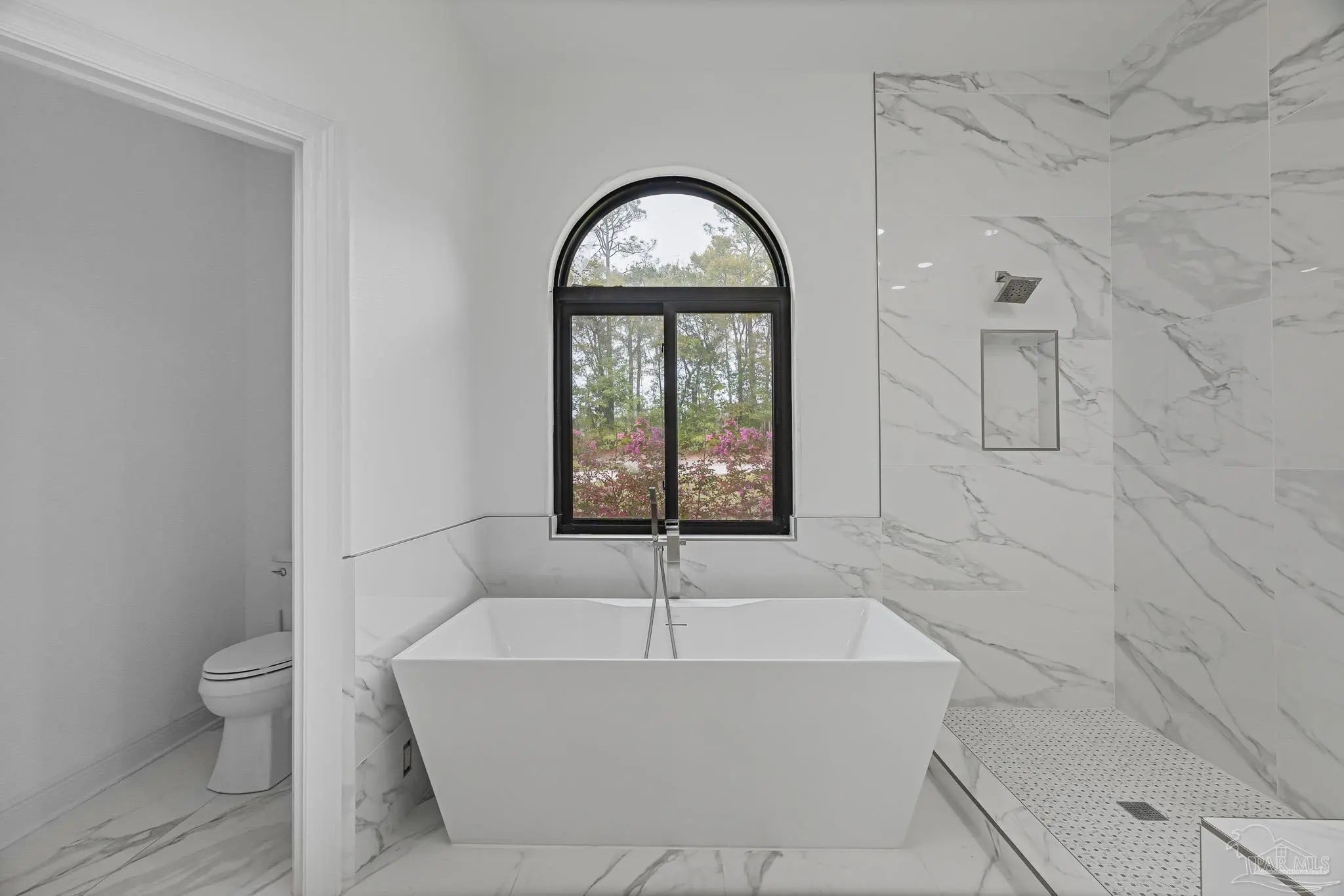 Located in the highly desirable Marcus Pointe Golf Community, this 3-bedroom, 2.5-bath home offers spacious living in one of Pensacola’s well-established neighborhoods. Located next to the fairways of Marcus Pointe Golf Club, the home features an open floor plan ideal for both everyday living and entertaining. The kitchen serves as the heart of the home with a large center island equipped with additional cabinet storage, stainless steel appliances, and a range hood, providing plenty of space for cooking, gathering, and casual dining. The adjoining living area includes built-in shelving and flows seamlessly into the dedicated dining space, creating a comfortable and functional layout. The spacious primary suite offers a private retreat with a walk-in closet and an ensuite bathroom featuring a deep soaking tub and a large tiled walk-in shower with built-in features. Two additional bedrooms and a full bath provide flexible space for family, guests, or a home office, while the convenient half bath adds extra functionality. Step outside to an expansive covered back patio, perfect for outdoor dining, relaxing evenings, or enjoying the peaceful surroundings of the community. With its prime location near golf, shopping, dining, and major roadways, this home offers a wonderful blend of comfort, convenience, and lifestyle in the heart of Pensacola.
