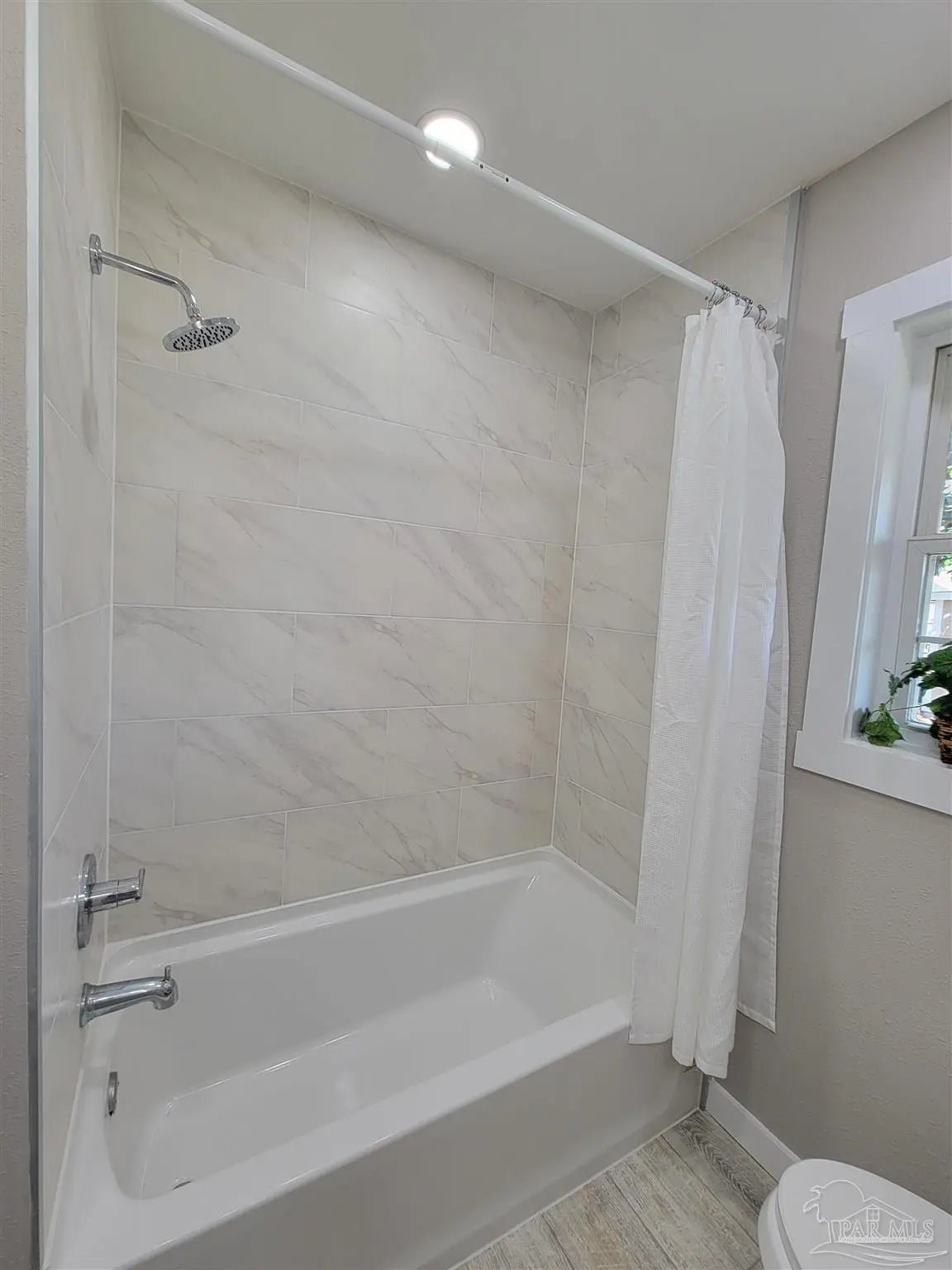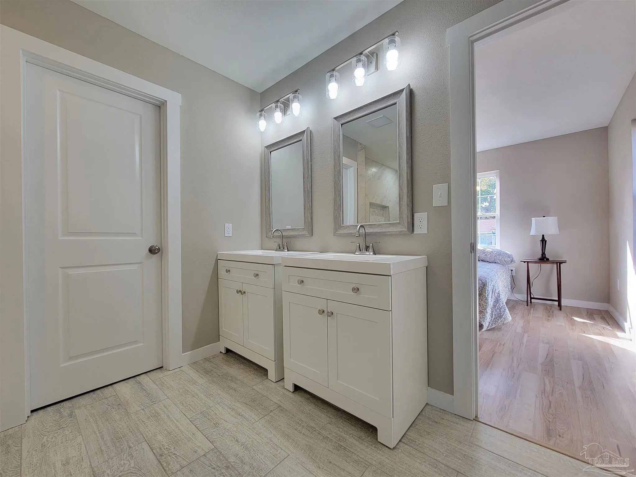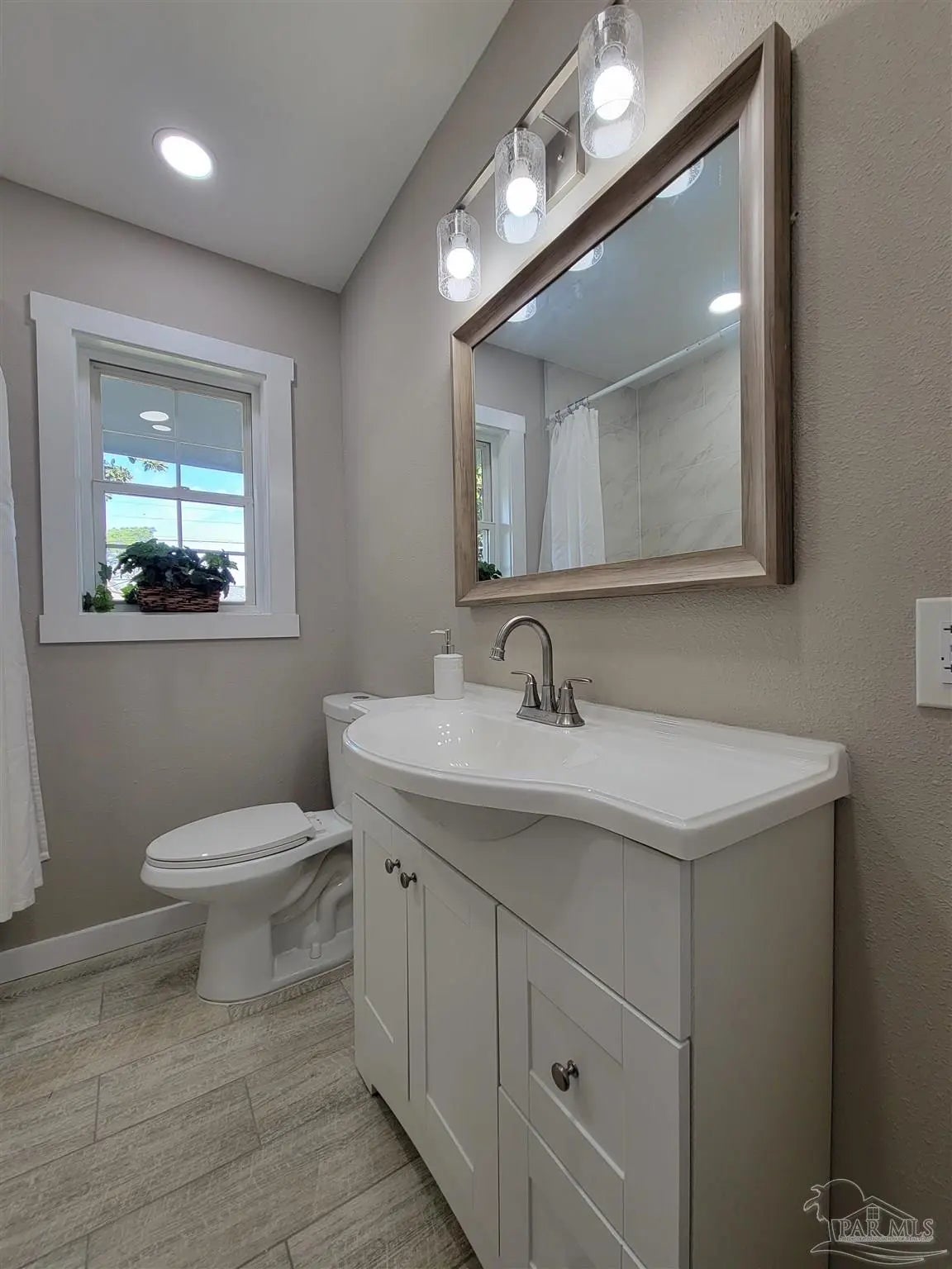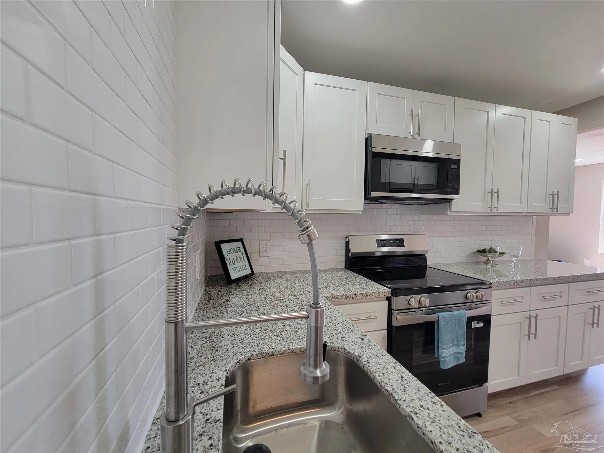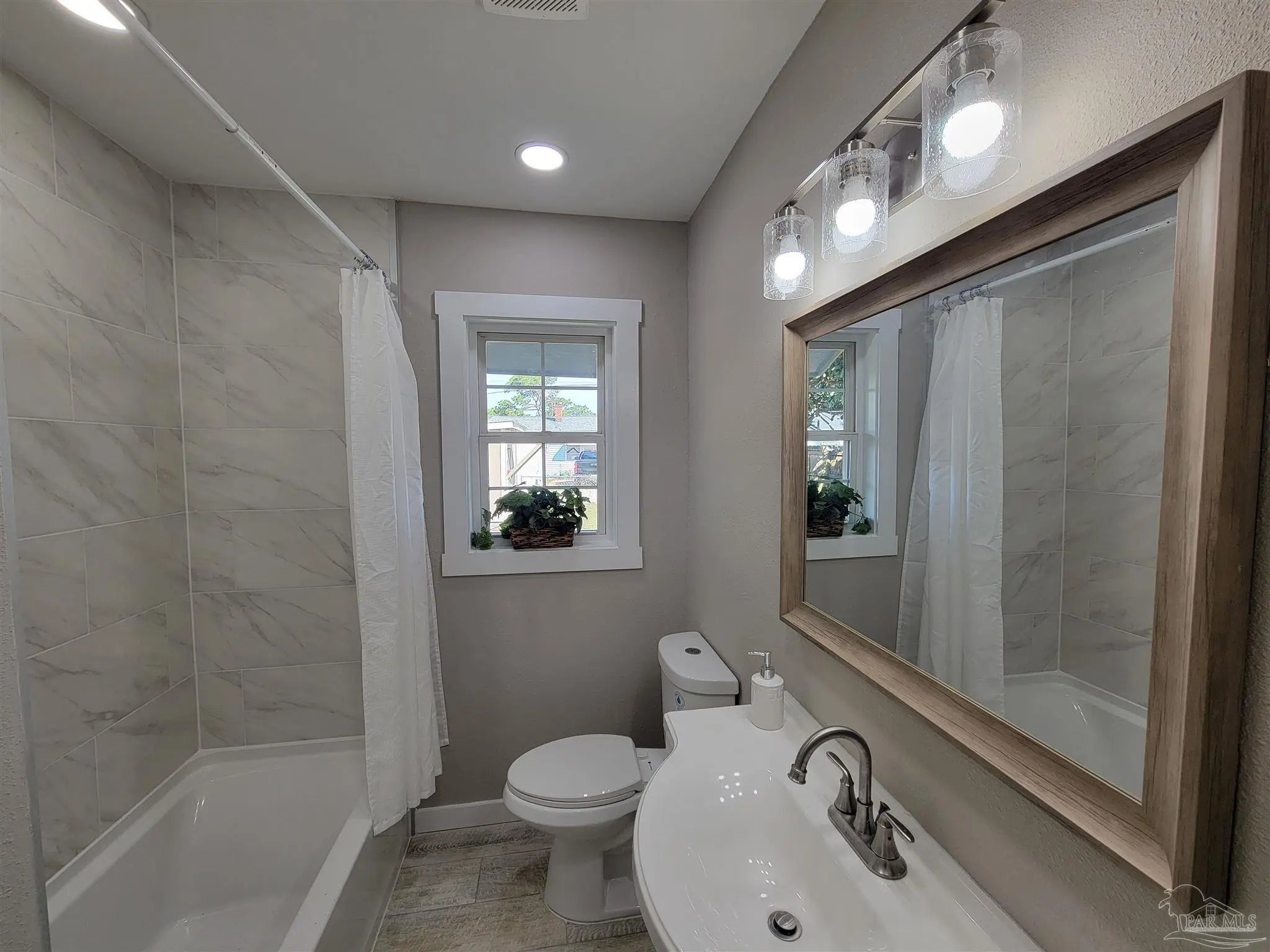 Welcome Home! This 3 bedroom, 2 bathroom Navy Point cottage has been completely remodeled and is waiting for you. As you walk through your new front door, your eyes will catch the beautiful laminate wood floors and the fresh paint on the walls. Onceyou step into the kitchen you will fall in love! The new shaker style cabinets are great to look at and give you plenty of storage. The granite countertops sit against a classic subway tile backsplash and striking stainless steel appliances. Off the livingroom sits twoadditional bedrooms and a fully remodeled bathroom. Down the hallway you will find your master bedroom with its private en suite. It includes a walk-in shower thatwill have the stress of the day melting away. With the double vanities and large closet, sharing this space will not be a problem. The new roof, newplumbing, and new electrical means lower insurance and less worries. As if the features of this home aren’t enough, you also haveall of the wonderful benefits of living in Navy Point. Surrounded by Bayou Grande, Navy Point is wrapped with a walking/bike trailand boasts a boat launch and county maintained playground. There are also multiple beach accessesthroughout the park. Since it is directly across from NAS Pensacola, you can sit comfortably on your patio and watch the BlueAngels perform a private show just for you! Navy Point is a highly coveted neighborhood so be sure to schedule your showingtoday.