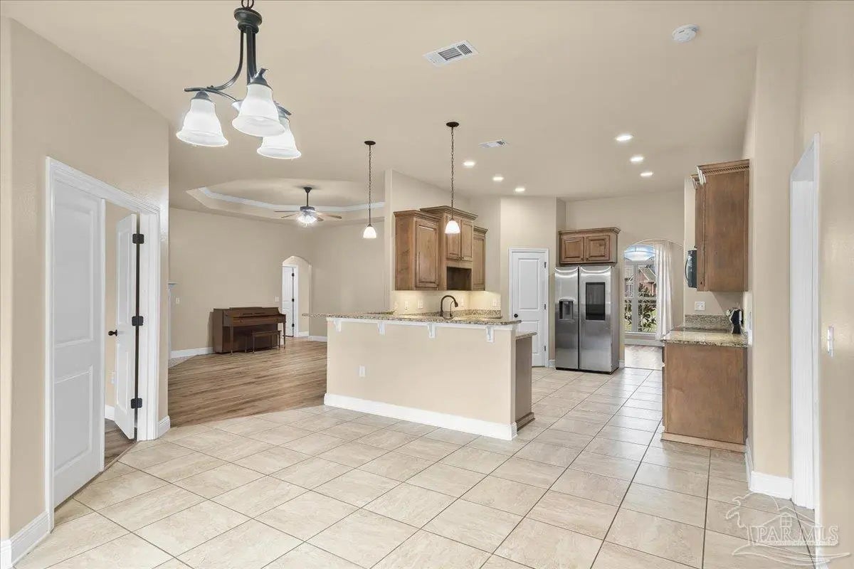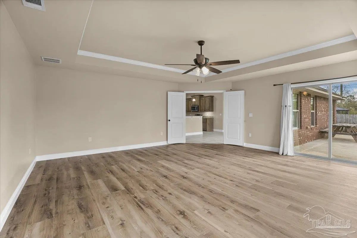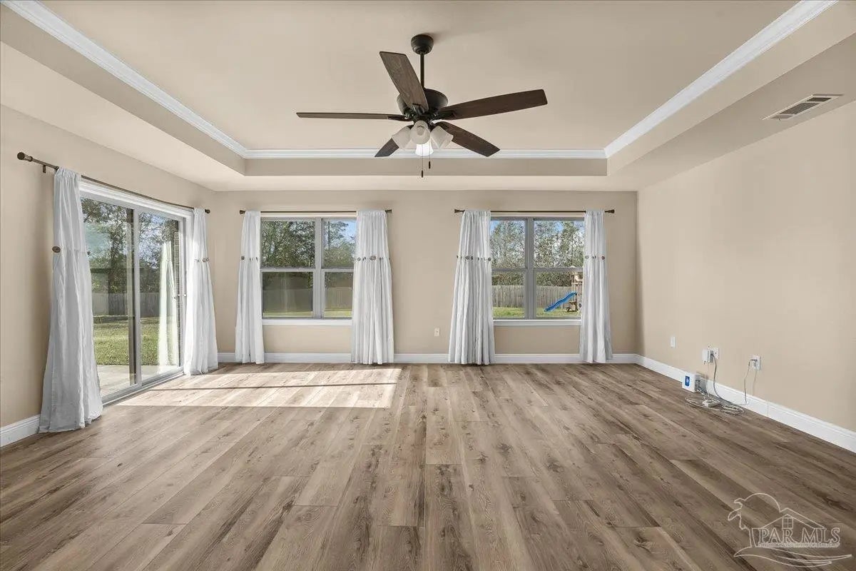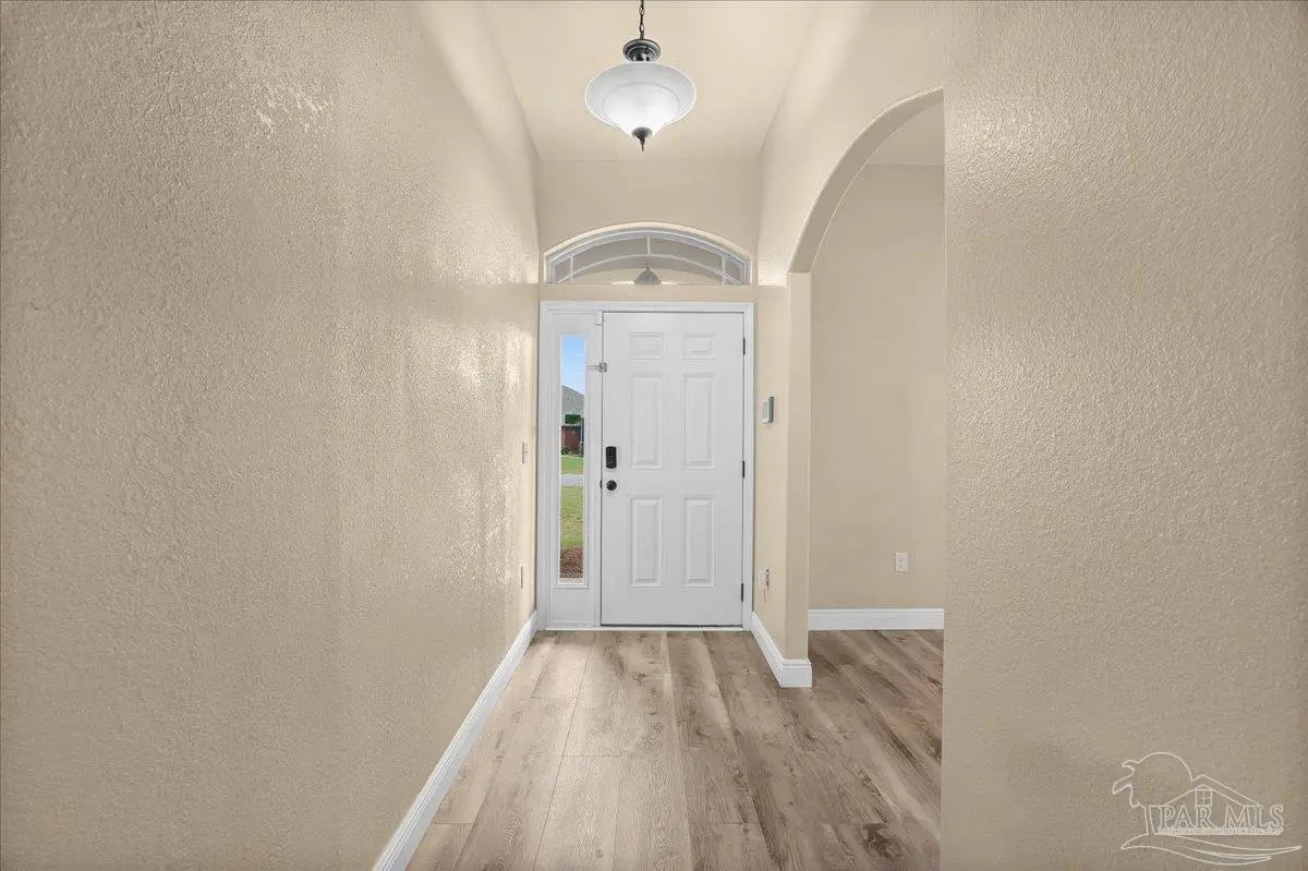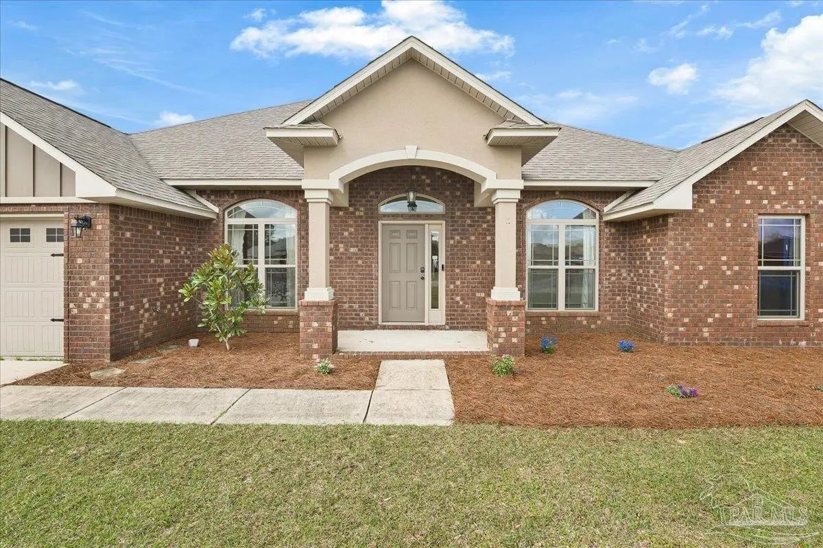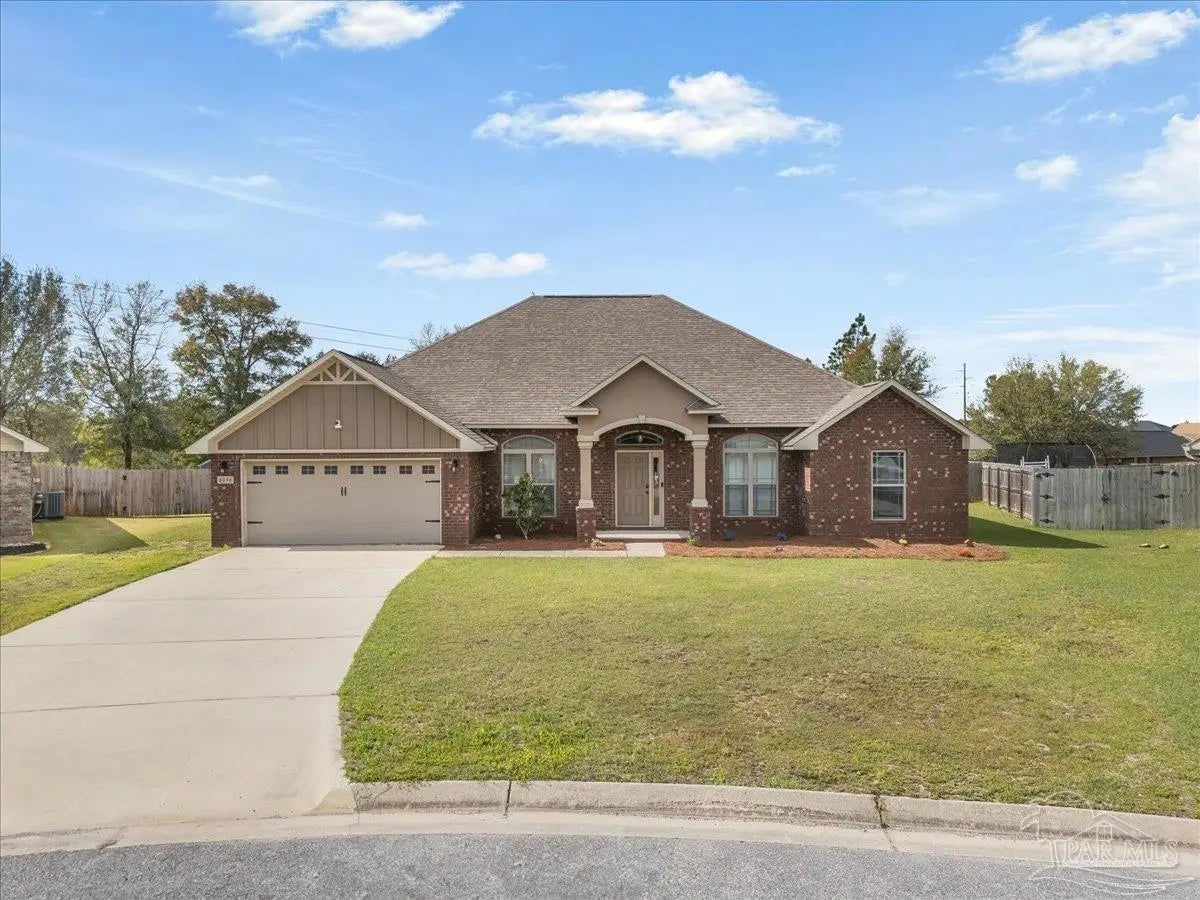 OVER HALF AN ACRE • TRIPLE SPLIT FLOOR PLAN • BONUS ROOM • SMART HOME FEATURES. Welcome to MOVE-IN READY 4-bedroom, 3-bath BRICK HOME located in desirable Holley Cliff Estates in Milton. This property offers space, privacy, and a flexible layout designed for both comfortable living and entertaining. As you enter the home, you’ll immediately notice the 10-FOOT CEILINGS, elegant arched openings, bullnose corners, and textured walls that add character throughout. The spacious family room features high ceilings with molding, RECESSED LIGHTING, and a GAS FIREPLACE with TILE BACKSPLASH, creating a warm and inviting gathering space. The chef’s kitchen offers GRANITE countertops, a WRAP-AROUND BREAKFAST BAR, UNDER-CABINET LIGHTING, and matching SAMSUNG STAINLESS-STEEL appliances, including a 5-BURNER stove and refrigerator. Abundant cabinetry and counter space make it both functional and stylish. This home features a desirable TRIPLE SPLIT FLOOR PLAN. Two bedrooms plus an OFFICE are located on one side of the home, while another bedroom with its own FULL BATH sits privately on the opposite side—perfect for guests or extended family. The PRIMARY SUITE offers TRAY CEILINGS, a spacious layout, and a relaxing bath with SOAKING TUB, SEPARATE SHOWER, and multiple closets. A fully finished BONUS ROOM with FRENCH DOORS provides flexible space for a media room, home theater, gym, or playroom, all under the main roof. Additional highlights include SMART HOME CAMERAS and PANELS, CEILING FANS in every bedroom, RECESSED LIGHTING throughout, and EPOXY FLOORS in the garage. Step outside to enjoy the FULLY FENCED BACKYARD with plenty of room for kids, pets, and entertaining. Beyond the fence you’ll find additional WOODED LAND and privacy, giving the property an even larger feel. The home also features new front landscaping and space to create your ideal outdoor retreat. Call today for your private showing.