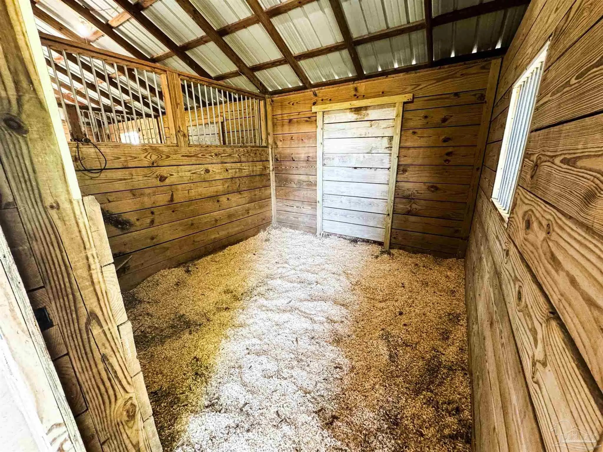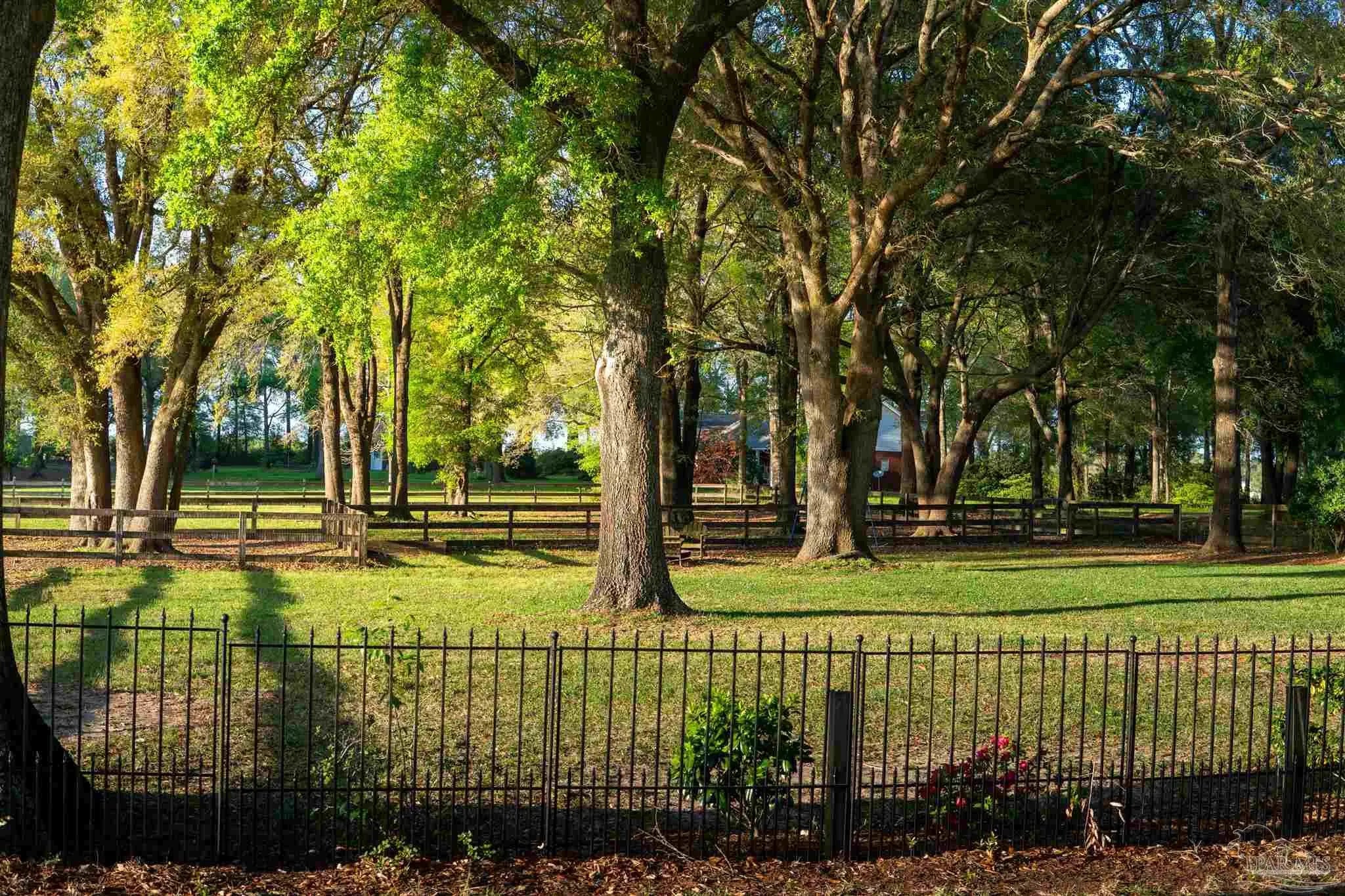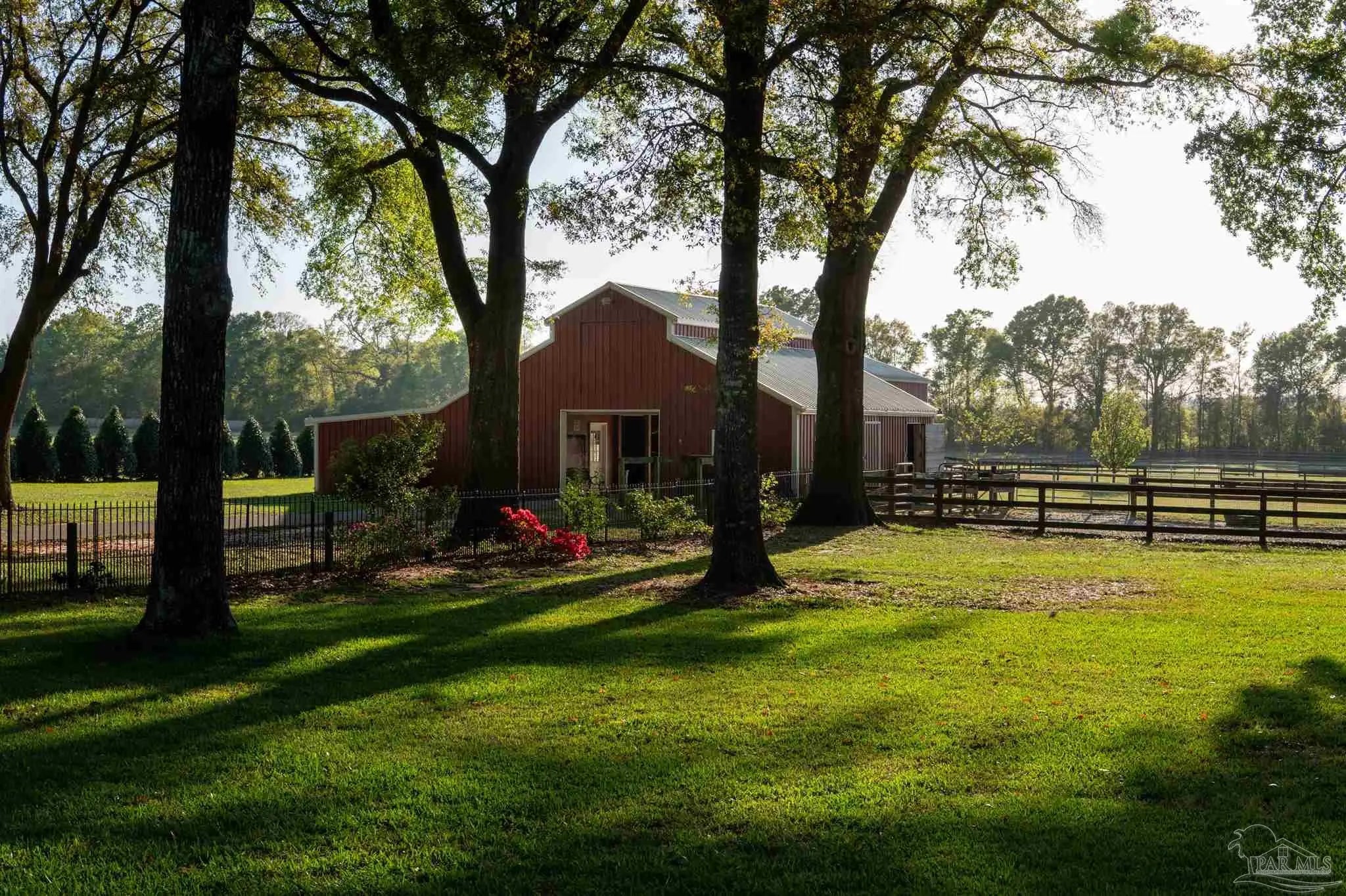 Set beneath a canopy of majestic, mature oaks, this exceptional 10-acre equestrian estate offers a rare blend of natural beauty, thoughtful design and refined functionality. Anchoring the property is a custom 3,309 square foot residence, designed for both everyday living and elegant entertaining. A long paved, gated drive creates a grand sense of arrival. Inside, a private study with French doors sits to the right, while a formal dining room with custom built-ins is to the left. The main living area features a fireplace and flows seamlessly into the eat-in kitchen. A fully enclosed, climate-controlled sunroom extends the living space and overlooks the covered patio with hot tub, offering uninterrupted views of the barn and rolling pastures. The home’s layout prioritizes privacy with a separate bedroom wing behind a hallway door. This wing includes three additional bedrooms, a guest bath and a primary suite with a garden tub overlooking the property. One of the additional rooms connects to the primary bedroom. Additional features include a laundry, oversized garage and utility area with a secondary washer and dryer. Equestrian amenities include a substantial metal barn with concrete floors, oversized dirt stalls with direct paddock access, a climate-controlled tack room, bathroom area with hot water and a large hay loft. A separate equipment building with two oversized garage doors adds versatility. The land is thoughtfully maintained with established, professionally seeded pastures and newly planted Mary Nell Holly trees, enhancing both usability and privacy.