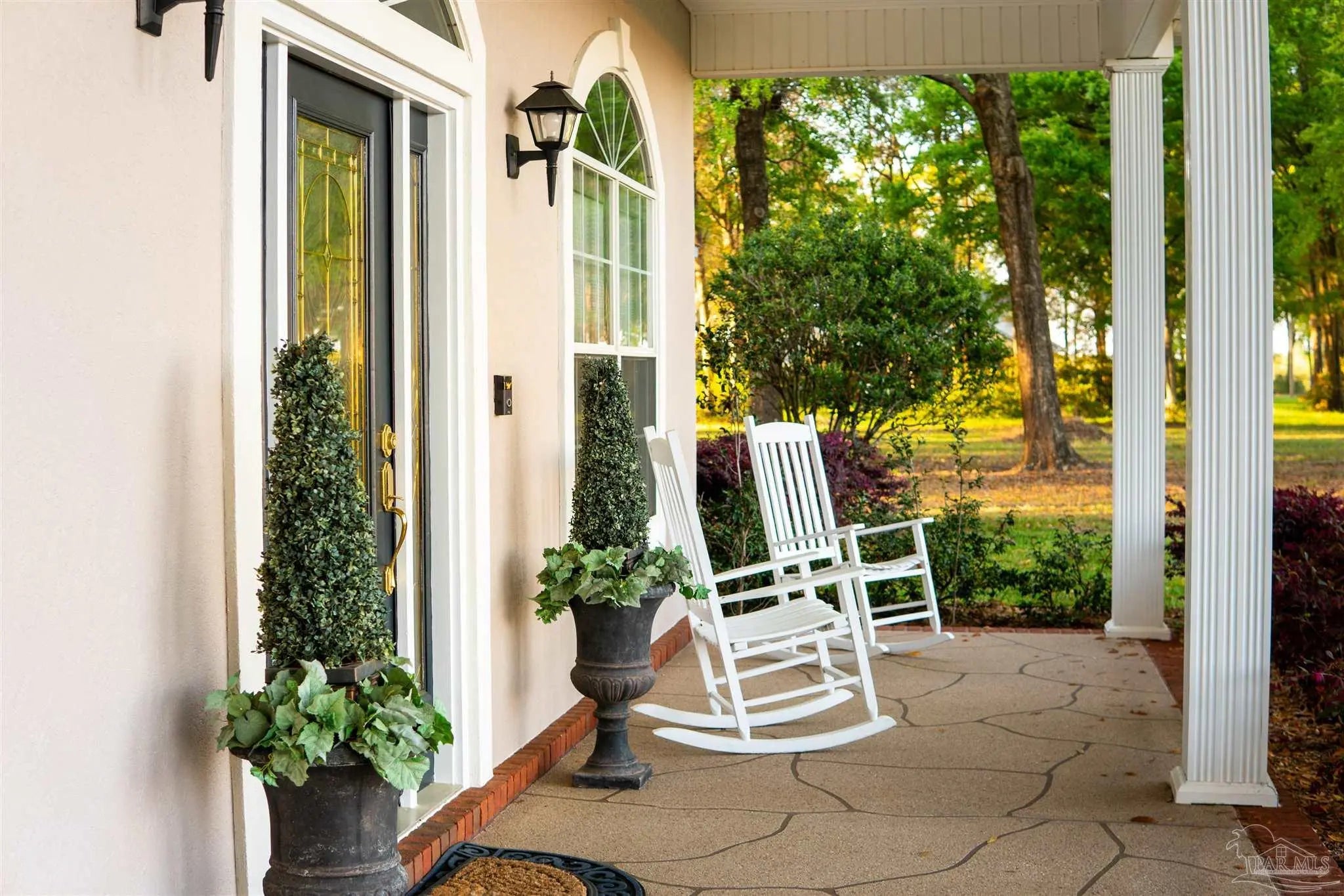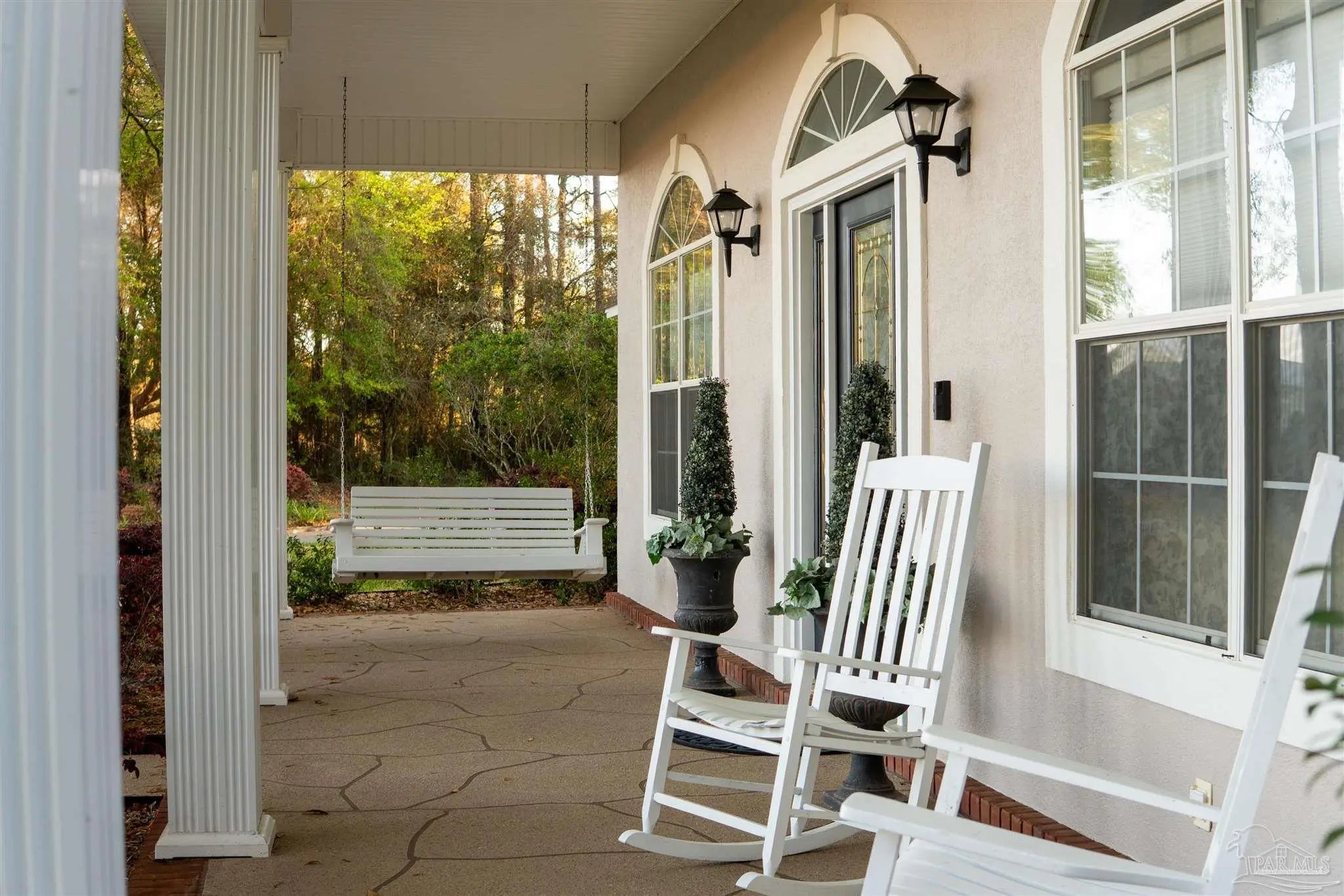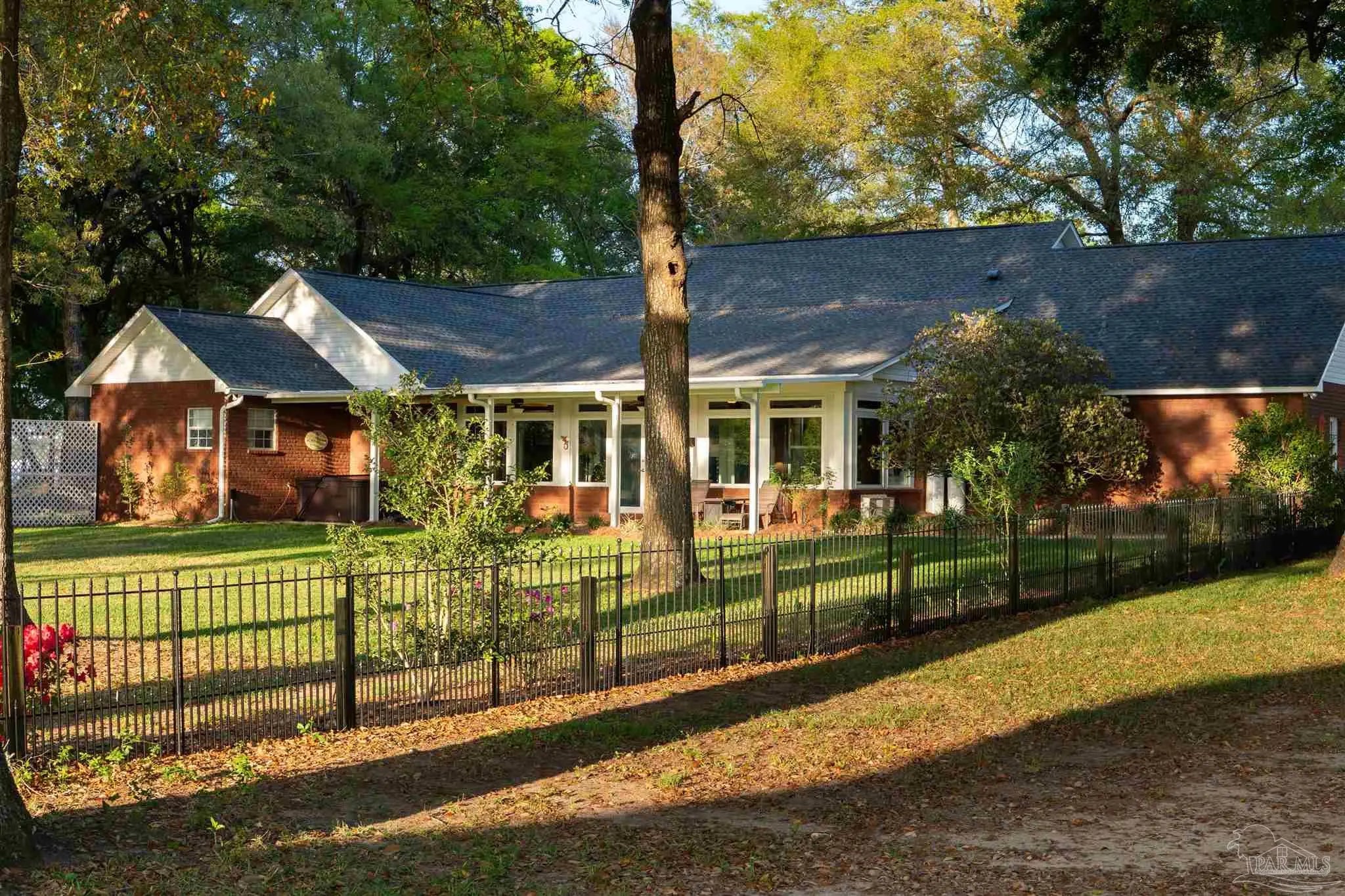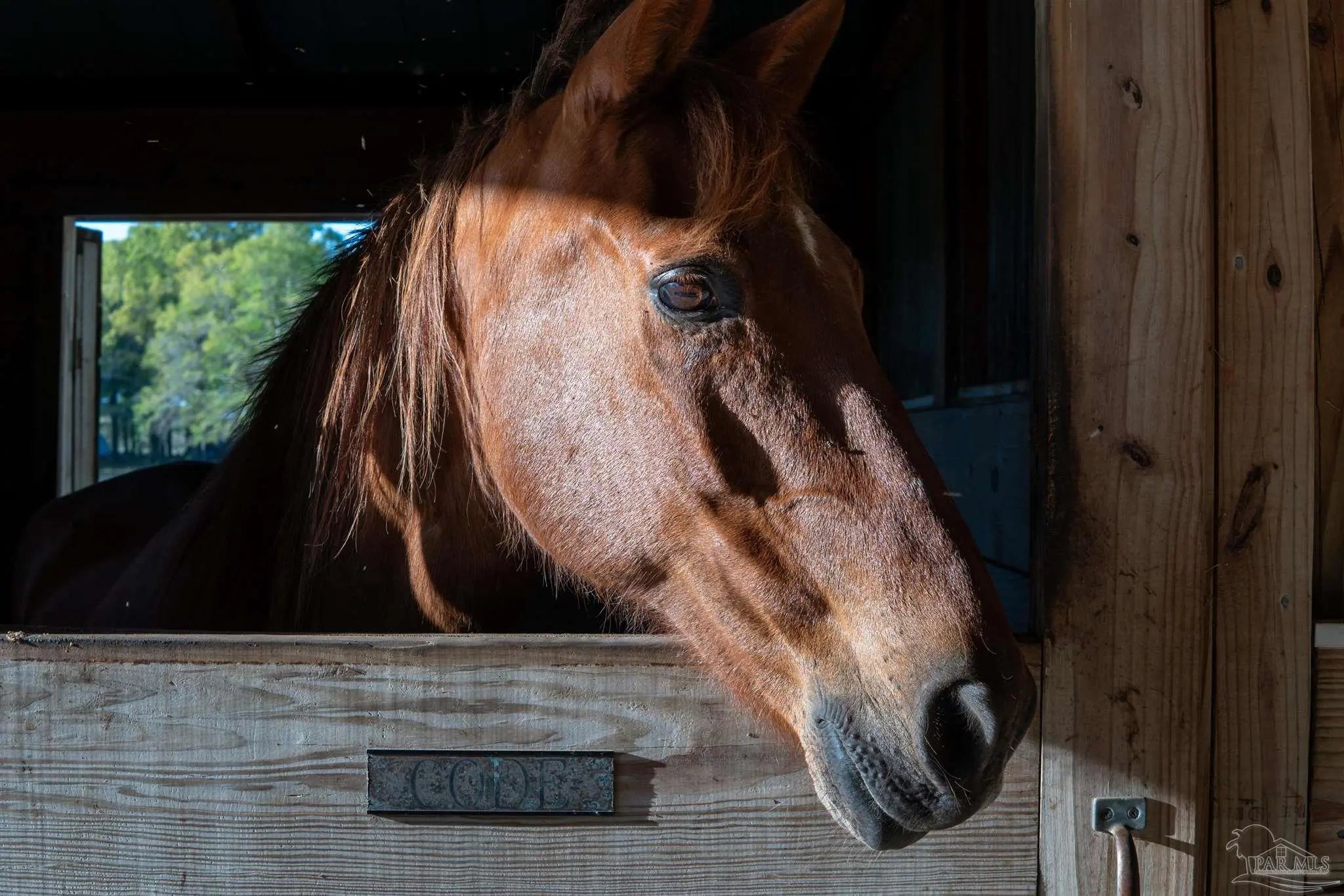 Set beneath a canopy of majestic, mature oaks, this exceptional 10-acre equestrian estate offers a rare blend of natural beauty, thoughtful design and refined functionality. Anchoring the property is a custom 3,309 square foot residence, designed for both everyday living and elegant entertaining. A long paved, gated drive creates a grand sense of arrival. Inside, a private study with French doors sits to the right, while a formal dining room with custom built-ins is to the left. The main living area features a fireplace and flows seamlessly into the eat-in kitchen. A fully enclosed, climate-controlled sunroom extends the living space and overlooks the covered patio with hot tub, offering uninterrupted views of the barn and rolling pastures. The home’s layout prioritizes privacy with a separate bedroom wing behind a hallway door. This wing includes three additional bedrooms, a guest bath and a primary suite with a garden tub overlooking the property. One of the additional rooms connects to the primary bedroom. Additional features include a laundry, oversized garage and utility area with a secondary washer and dryer. Equestrian amenities include a substantial metal barn with concrete floors, oversized dirt stalls with direct paddock access, a climate-controlled tack room, bathroom area with hot water and a large hay loft. A separate equipment building with two oversized garage doors adds versatility. The land is thoughtfully maintained with established, professionally seeded pastures and newly planted Mary Nell Holly trees, enhancing both usability and privacy.