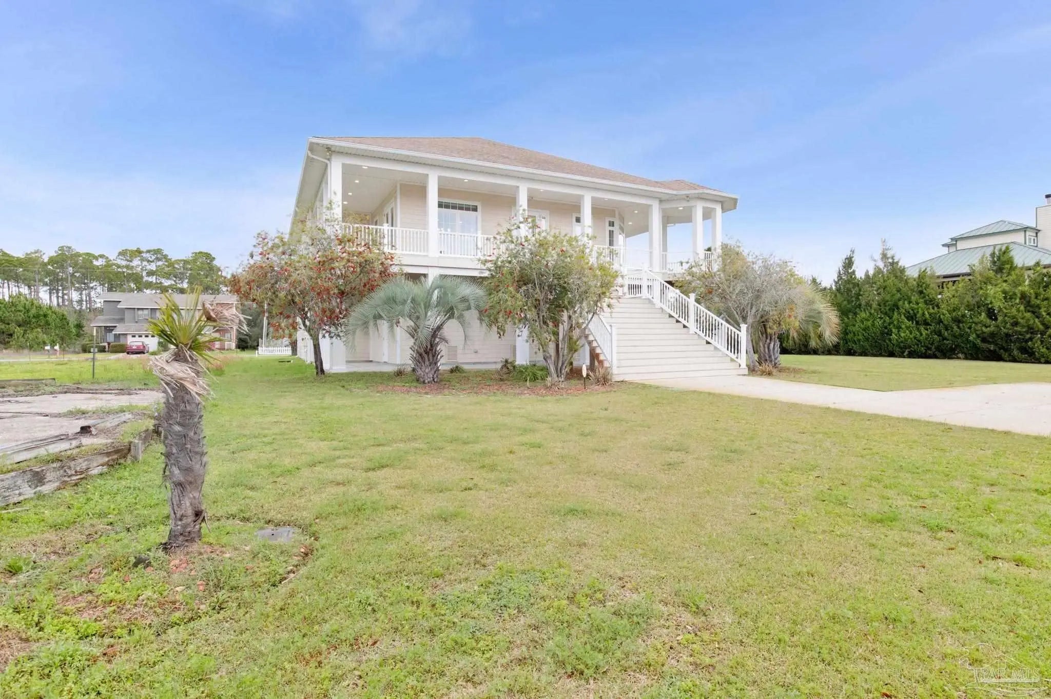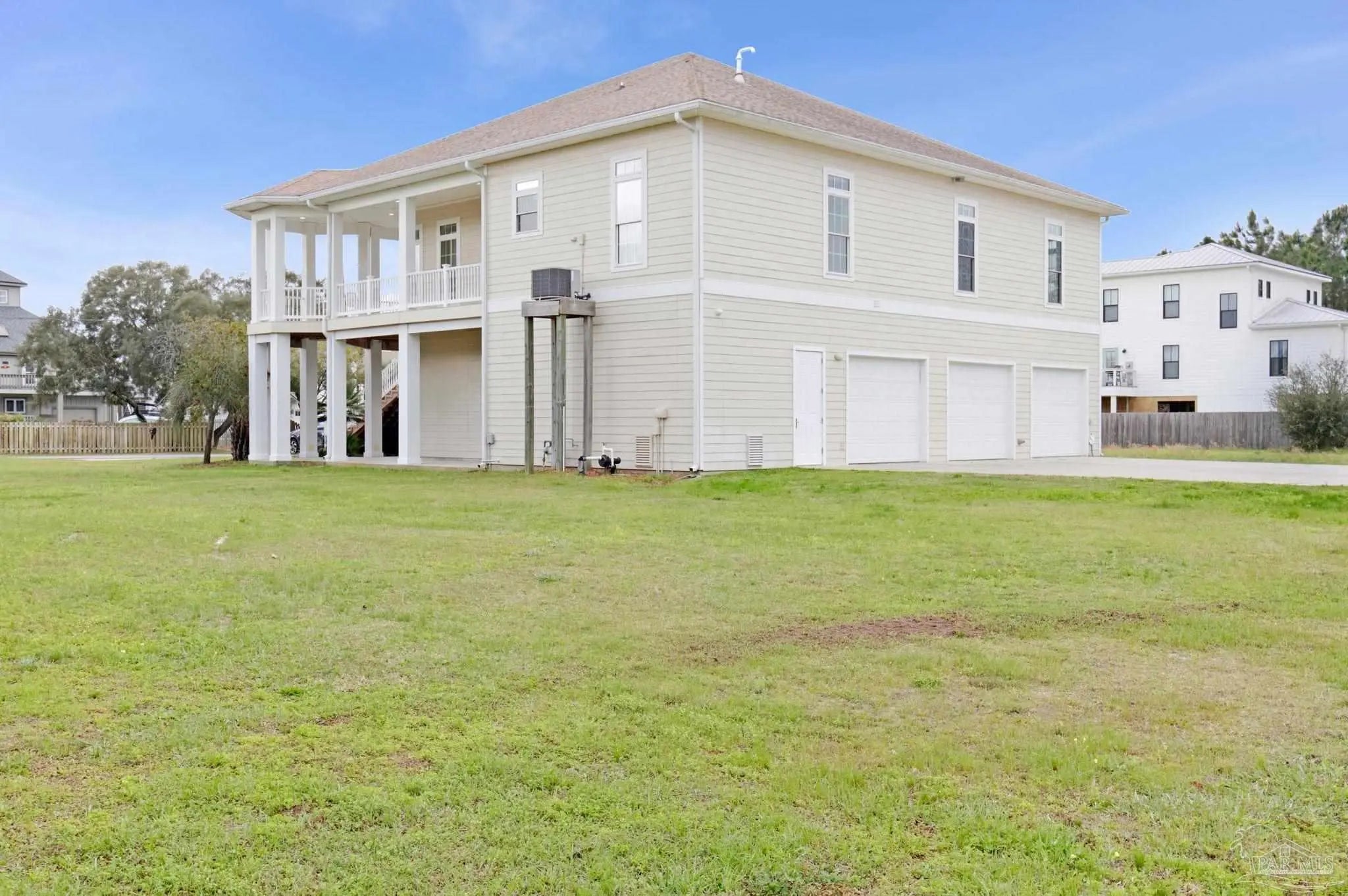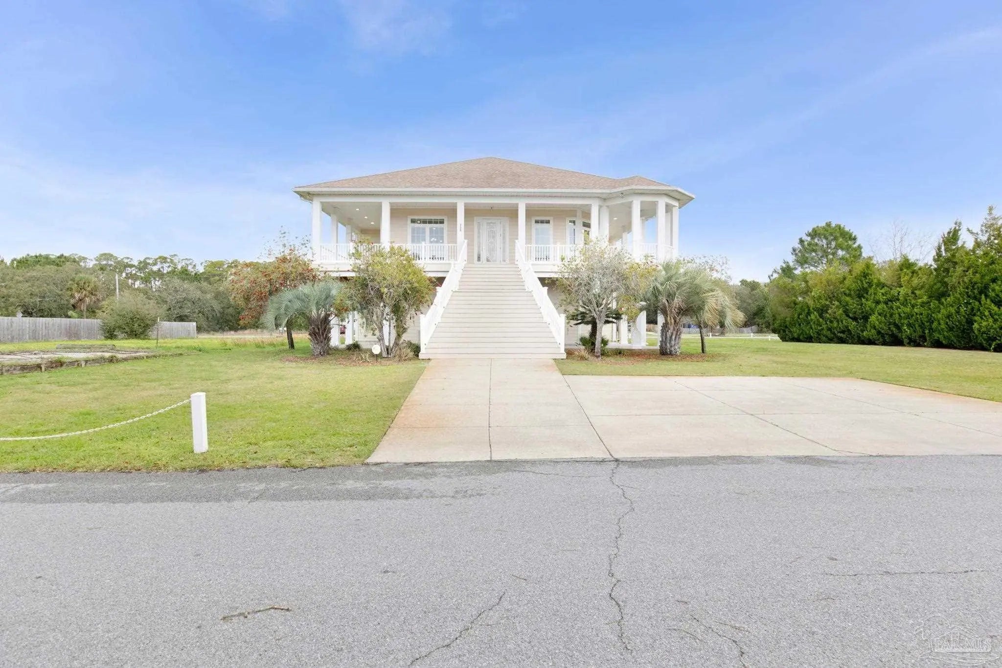 Step back and imagine yourself in this beautiful custom-built piling home by John Williams Custom Homes, built with true 2x6 construction and capturing water views of the Santa Rosa Sound from the inviting front porch. This home has been meticulously maintained and is ready for its next chapter. Walking up the steps, you are greeted by the elevated coastal design's charm and character. The spacious front porch is the perfect place to enjoy morning coffee or unwind in the evening while taking in the Florida breeze and peaceful water views. Inside, the open-concept living area with 10-foot ceilings creates a bright and inviting space ideal for entertaining. The living room features hardwood flooring, while the kitchen and dining areas offer tile flooring. The kitchen offers granite countertops, plentiful cabinetry, white appliances, and a center island that provides additional workspace and seating. Down the hall, the primary suite offers plenty of room for a king-sized bed and includes a spacious, oversized closet. The primary bathroom provides a relaxing retreat with double vanities, wood cabinetry, tile flooring, a jetted soaking tub with granite surround, and a cultured marble walk-in shower with glass door. Two additional generously sized bedrooms share a full bathroom with tile flooring and a tub/shower combination. The laundry room includes a tankless water heater, a secondary water heater for efficiency, and a water softener system, providing comfort and efficiency throughout the home. There is also a large office or flex space, perfect for working from home. Downstairs, the property offers two driveway entrances and an oversized three-car garage with plenty of space for vehicles, boats, and storage. Bring the RV; this property includes a separate 30-amp RV hookup with water and sewer connections located at the rear of the home. Located just minutes from the Oriole Beach boat ramp, this home offers quick access to the water and the best of the Gulf Coast.