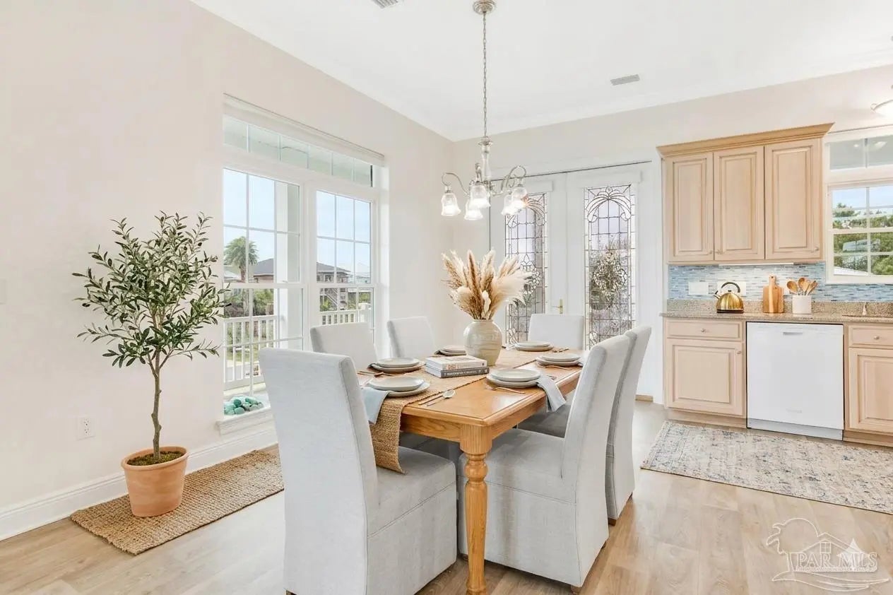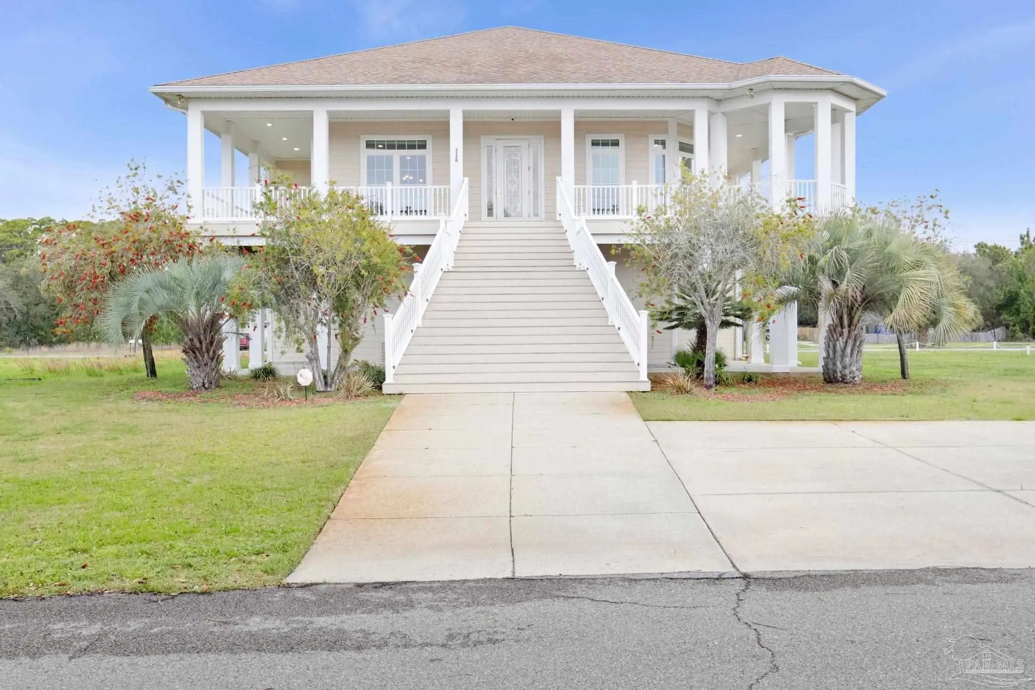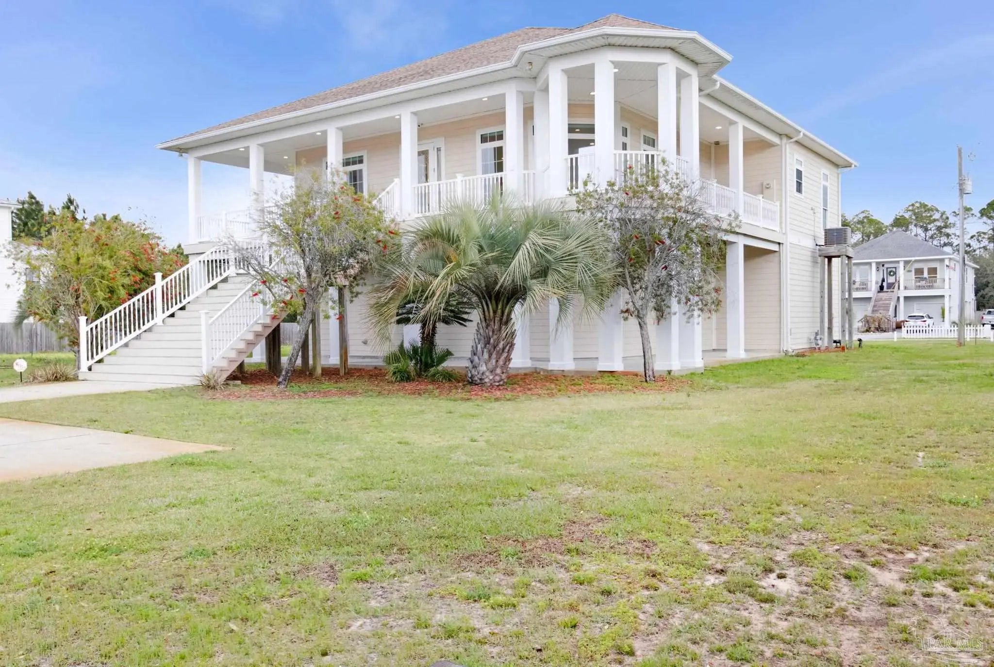 Step back and imagine yourself in this beautiful custom-built piling home by John Williams Custom Homes, built with true 2x6 construction and capturing water views of the Santa Rosa Sound from the inviting front porch. This home has been meticulously maintained and is ready for its next chapter. Walking up the steps, you are greeted by the elevated coastal design's charm and character. The spacious front porch is the perfect place to enjoy morning coffee or unwind in the evening while taking in the Florida breeze and peaceful water views. Inside, the open-concept living area with 10-foot ceilings creates a bright and inviting space ideal for entertaining. The living room features hardwood flooring, while the kitchen and dining areas offer tile flooring. The kitchen offers granite countertops, plentiful cabinetry, white appliances, and a center island that provides additional workspace and seating. Down the hall, the primary suite offers plenty of room for a king-sized bed and includes a spacious, oversized closet. The primary bathroom provides a relaxing retreat with double vanities, wood cabinetry, tile flooring, a jetted soaking tub with granite surround, and a cultured marble walk-in shower with glass door. Two additional generously sized bedrooms share a full bathroom with tile flooring and a tub/shower combination. The laundry room includes a tankless water heater, a secondary water heater for efficiency, and a water softener system, providing comfort and efficiency throughout the home. There is also a large office or flex space, perfect for working from home. Downstairs, the property offers two driveway entrances and an oversized three-car garage with plenty of space for vehicles, boats, and storage. Bring the RV; this property includes a separate 30-amp RV hookup with water and sewer connections located at the rear of the home. Located just minutes from the Oriole Beach boat ramp, this home offers quick access to the water and the best of the Gulf Coast.