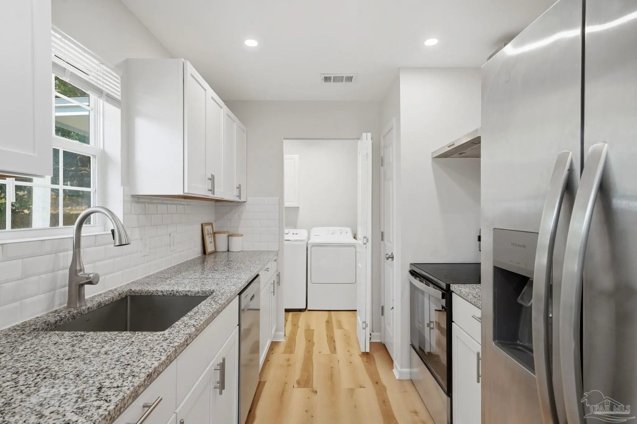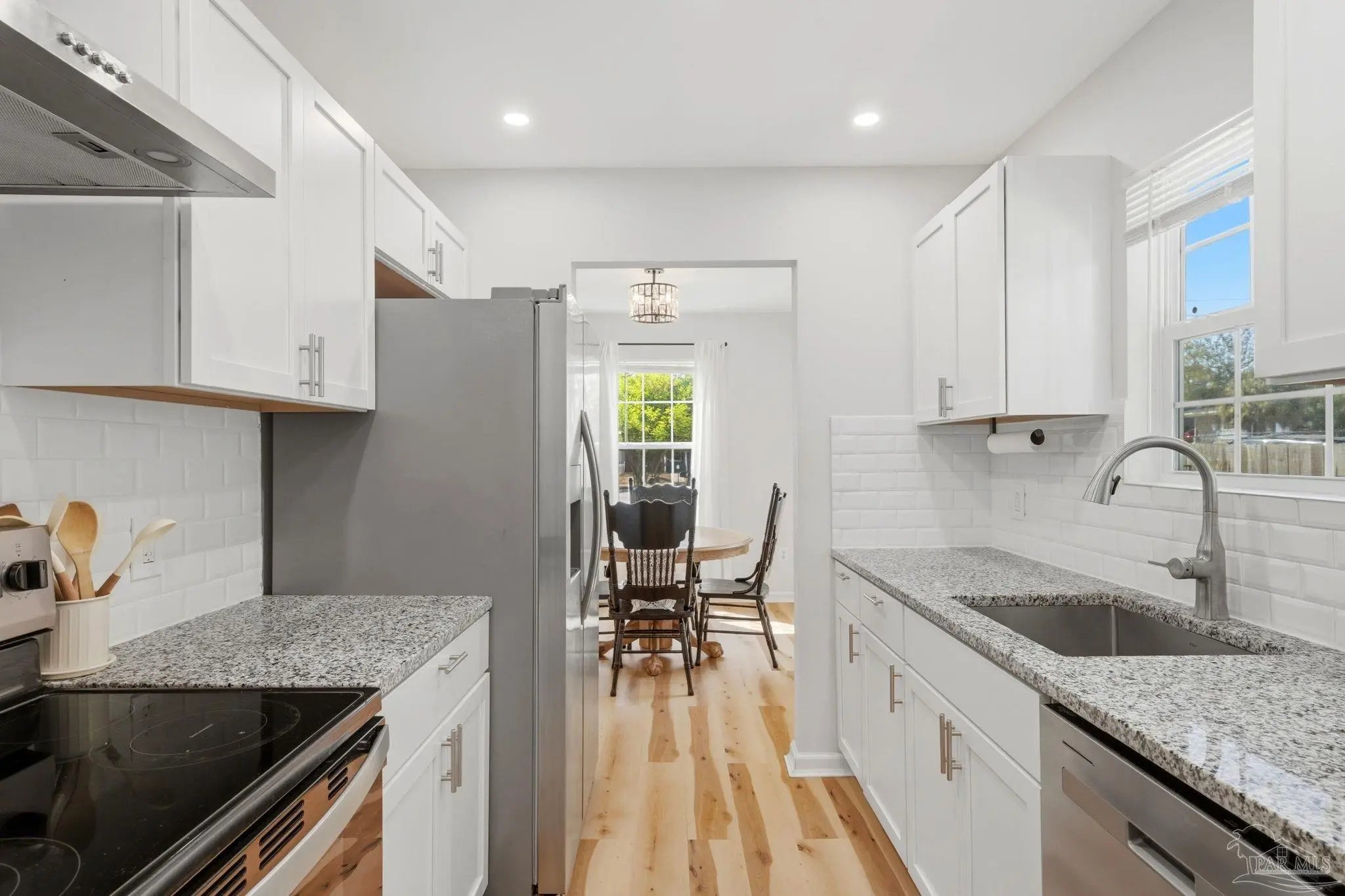 Live minutes from Downtown Pensacola and the water in this beautifully updated, move-in-ready home. Modern kitchen, updated baths, and a spacious lot make this one stand out. Discover this beautifully updated 3-bedroom, 2-bathroom cottage-style home in Pensacola, offering modern finishes and a prime location just minutes from the area’s most popular destinations. This move-in-ready home features a stylish, updated kitchen with white shaker cabinets, granite countertops, and stainless steel appliances—designed for both functionality and visual appeal. The bathrooms have been thoughtfully renovated with updated showers, vanities, lighting, and fixtures, creating clean, modern spaces. Throughout the home, you’ll find contemporary upgrades including recessed lighting, luxury vinyl plank flooring, and fresh interior and exterior paint. Additional improvements such as a new water heater, updated entry doors, and a replaced driveway add to the overall value and convenience. Situated on a spacious lot, the property offers room to enjoy outdoor living, entertain, or personalize to fit your needs. The location provides easy access to some of the area’s most well-known spots, including Sanders Beach (approximately 1.5 miles), Downtown Pensacola (about 2.5 miles), Blue Wahoos Stadium (around 3 miles), Pensacola Beach (roughly 10 miles), and Naval Air Station Pensacola (approximately 6.5 miles). Blending modern updates with classic charm, this property presents a great opportunity for a primary residence or investment. Schedule your showing today.