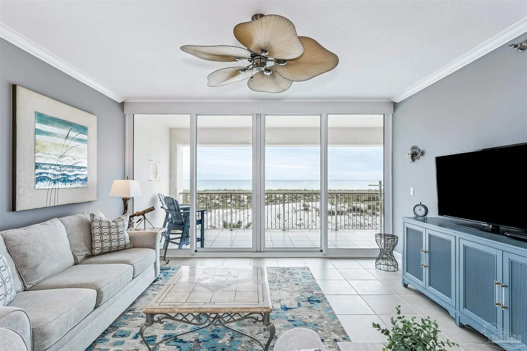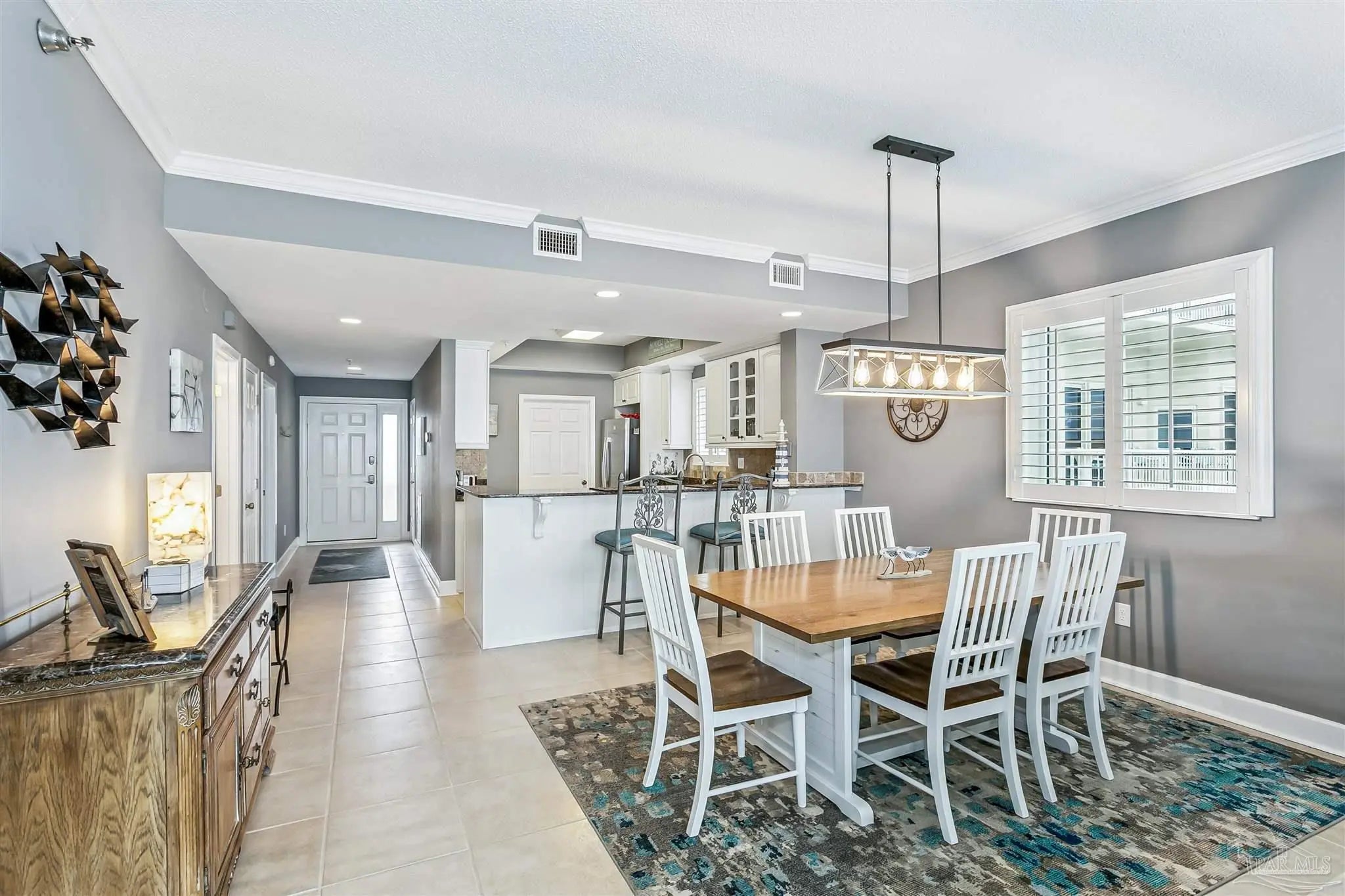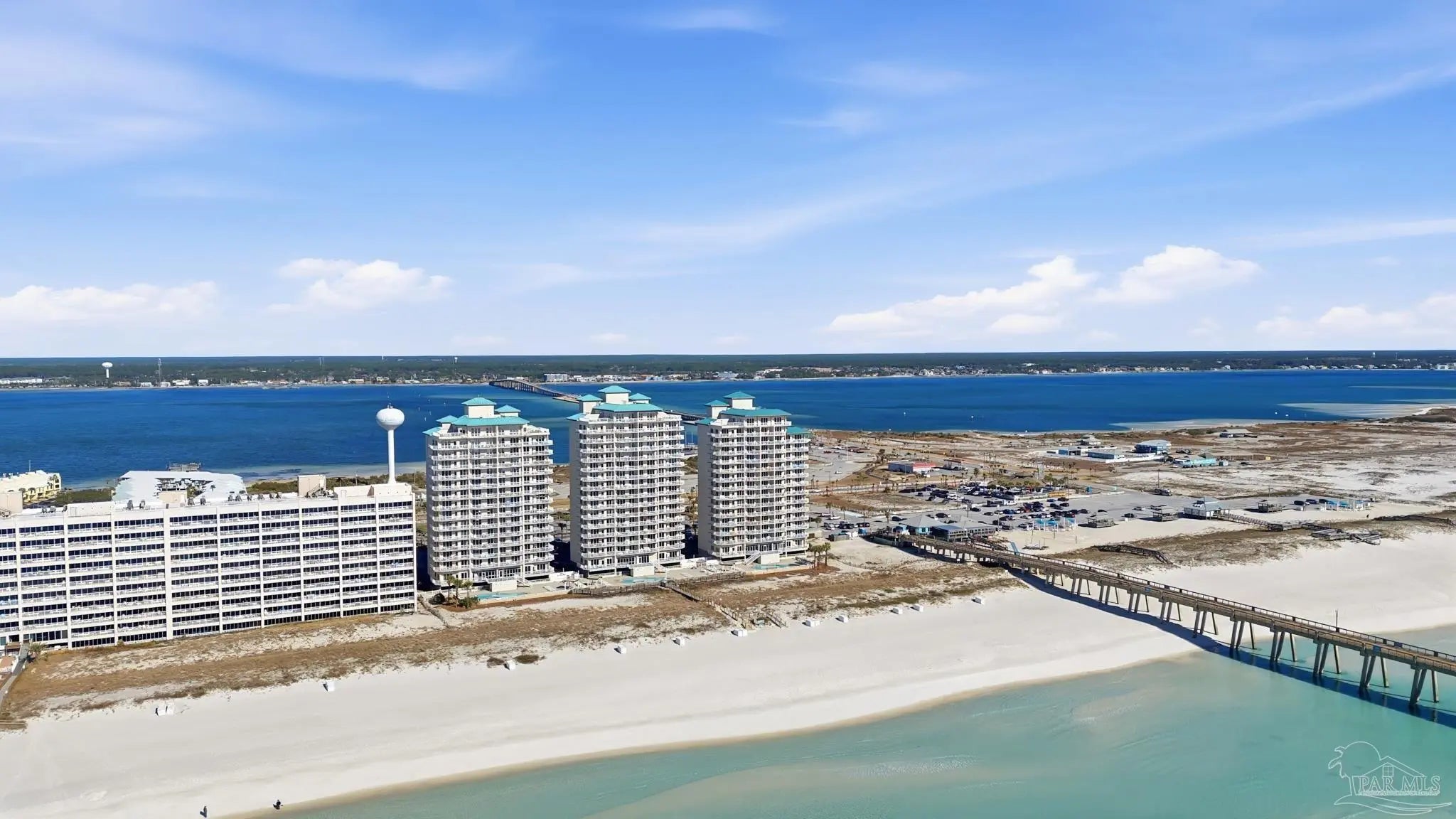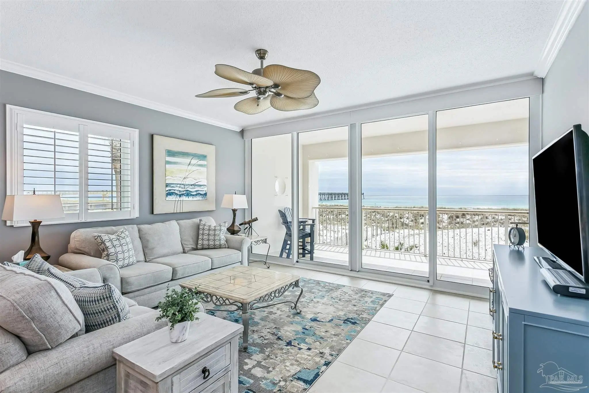 Welcome to Gulf-front living at its finest! This two bedroom, two bathroom, end unit at Navarre Beach Regency Condominiums is located on the East end of the building and boasts the most amazing, unobstructed views of the dunes, Gulf, and the iconic Navarre Beach Pier. This 1st floor residence also comes with its own covered parking space. Inside, you'll discover over 1,500 SqFt of meticulously designed living space with an open concept Main living area and tons of updated finishes - including 9ft ceilings with elegant crown molding, LVP and tiled flooring throughout, newly replaced slider doors and floor to ceiling windows that showcase the expansive private balcony overlooking the dunes and the sparkling Emerald waters that Navarre Beach is known for, plantation shutters, new appliances in the gourmet kitchen, custom cabinetry, granite countertops, built-in wine fridge, completely remodeled bathrooms, updated light fixtures, 2025 HVAC system, and more! The primary suite features its own access to the balcony, floor to ceiling windows with motorized shade to reveal breathtaking waterviews from the comfort of your own bed, as well as an en-suite bathroom with a gorgeous tiled walk-in shower. Beyond the unit itself, the Navarre Beach Regency features a heated, gulf-front swimming pool, private beach access, a fitness center, a community room, BBQ grills, and more!