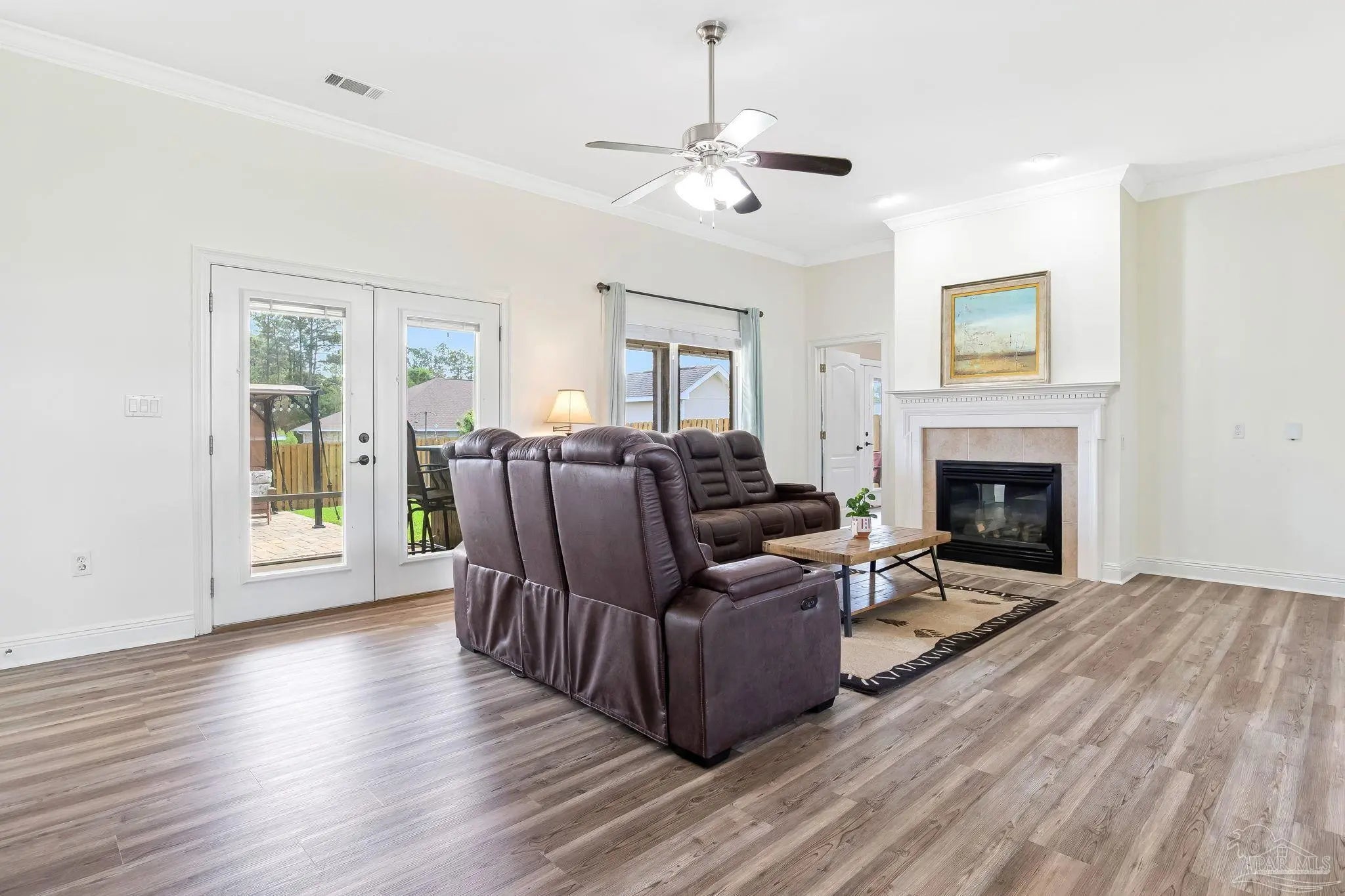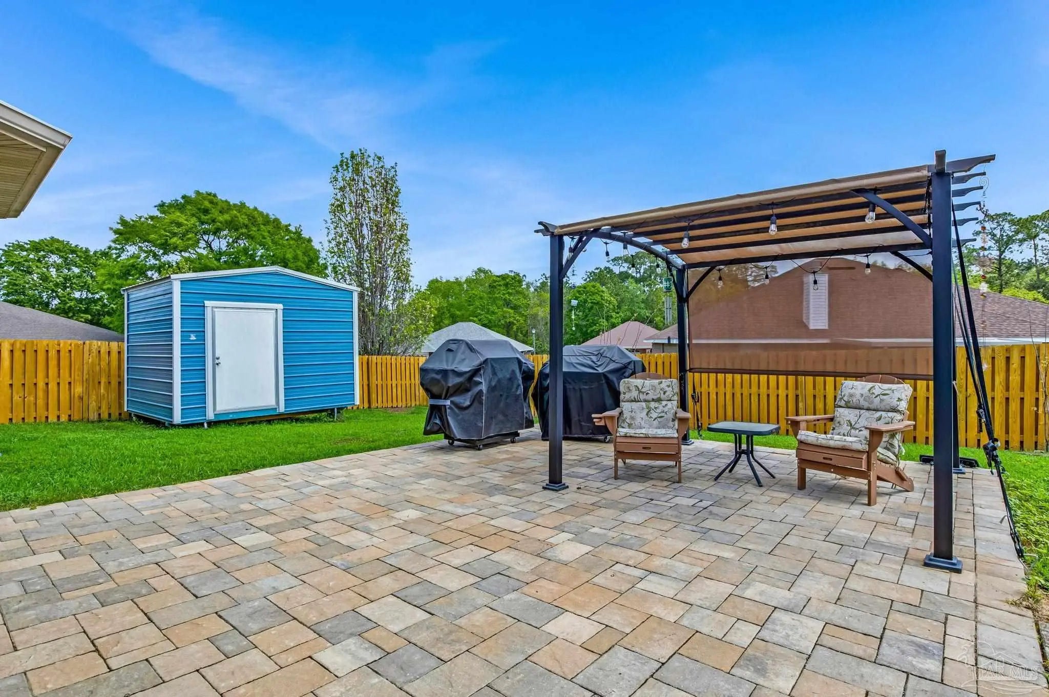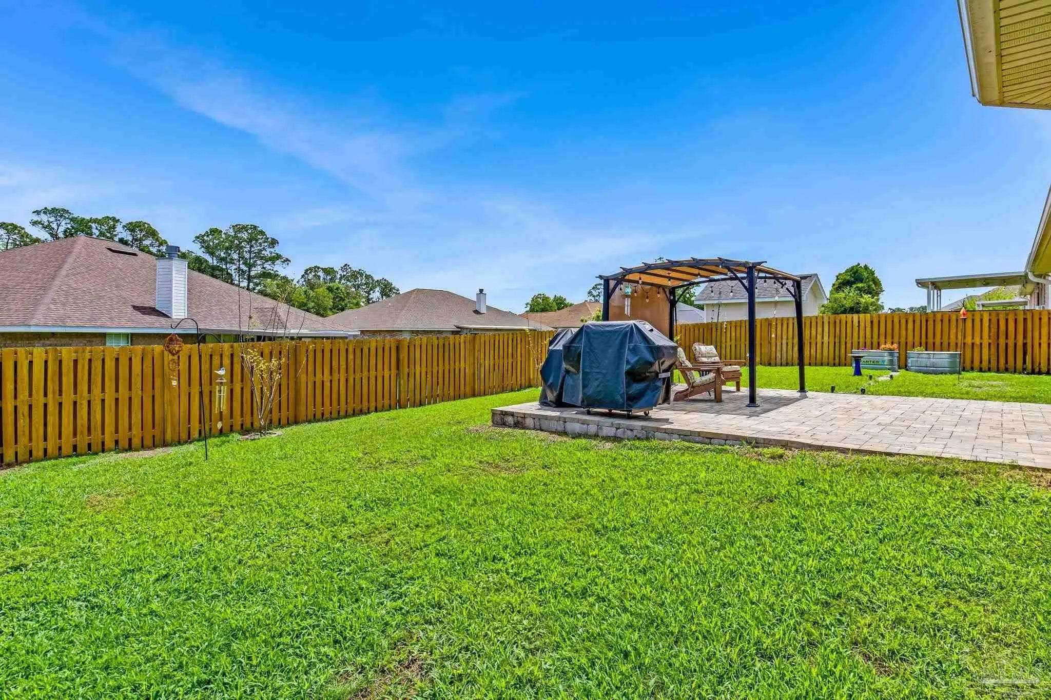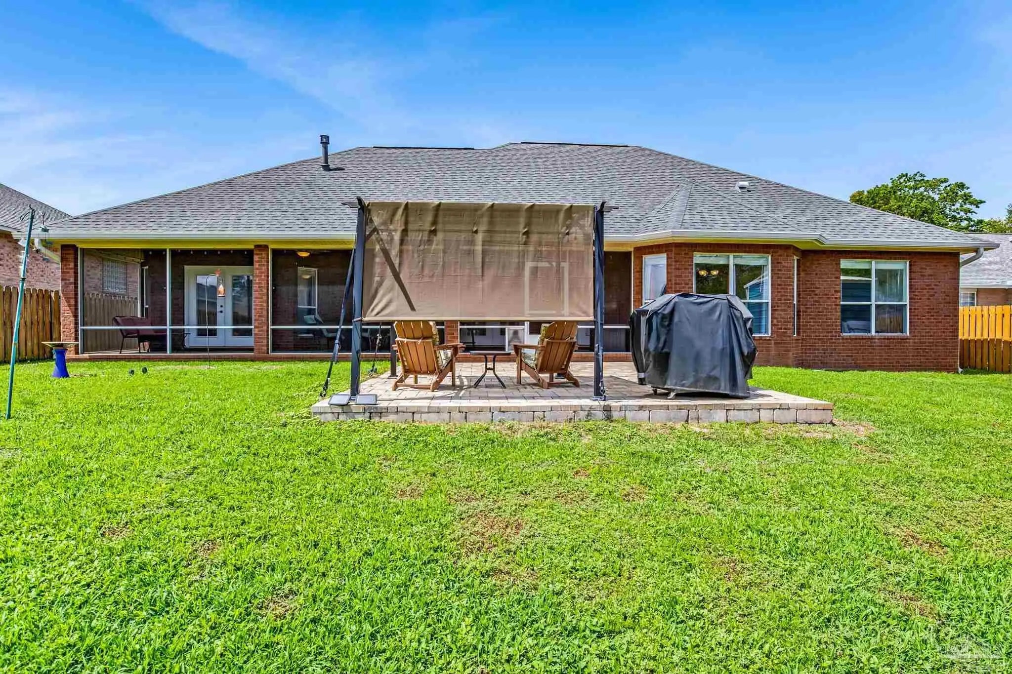 Opportunities like this don’t come around often—especially with this level of care, upgrades, and move-in readiness. This beautifully maintained all-brick home quietly delivers more than meets the eye, tucked inside one of Cantonment’s most established and desirable neighborhoods. From the manicured landscaping and arched windows to the stately front entrance, the curb appeal sets the tone—and what’s inside only gets better. Step into an open, inviting living space featuring rich flooring (no carpet!), crown molding, and a cozy fireplace—designed for both everyday comfort and effortless entertaining. The kitchen flows seamlessly from the main living area and showcases granite countertops, custom cabinetry, and newer stainless appliances including a gas stove. A raised breakfast bar and sunlit dining nook overlook the private backyard, creating a natural gathering space. The primary suite offers a true retreat with dual walk-in closets and a spacious ensuite bath featuring double vanities, soaking tub, separate shower, and private water closet. Out back, a thoughtfully designed paver patio with pergola creates the perfect setting for relaxing evenings or hosting under string lights. The fully fenced yard provides privacy and room to enjoy. What truly sets this home apart: a newer roof (2022) and nearly $34,000 in upgrades since 2023, including a whole-home Generac generator, new kitchen appliances (refrigerator, microwave, stove), new gas line, updated bathrooms, interior paint throughout, new gutters, HVAC air return, brick paver patio, shed, front screen door, and more. Additional features include a split-bedroom floor plan, indoor laundry, and two-car garage. Homes with this level of updates, condition, and location—just minutes to Navy Federal, shopping, and schools—are rare. Schedule your showing before someone else sees the value you just did.