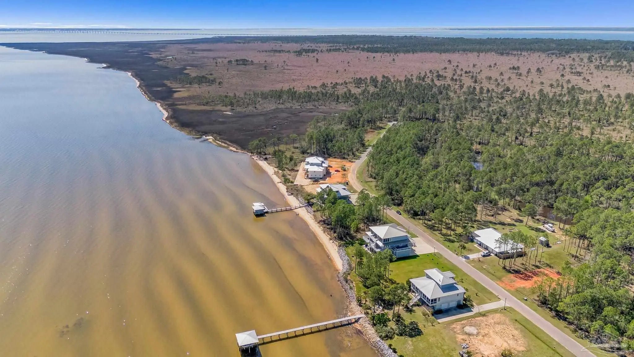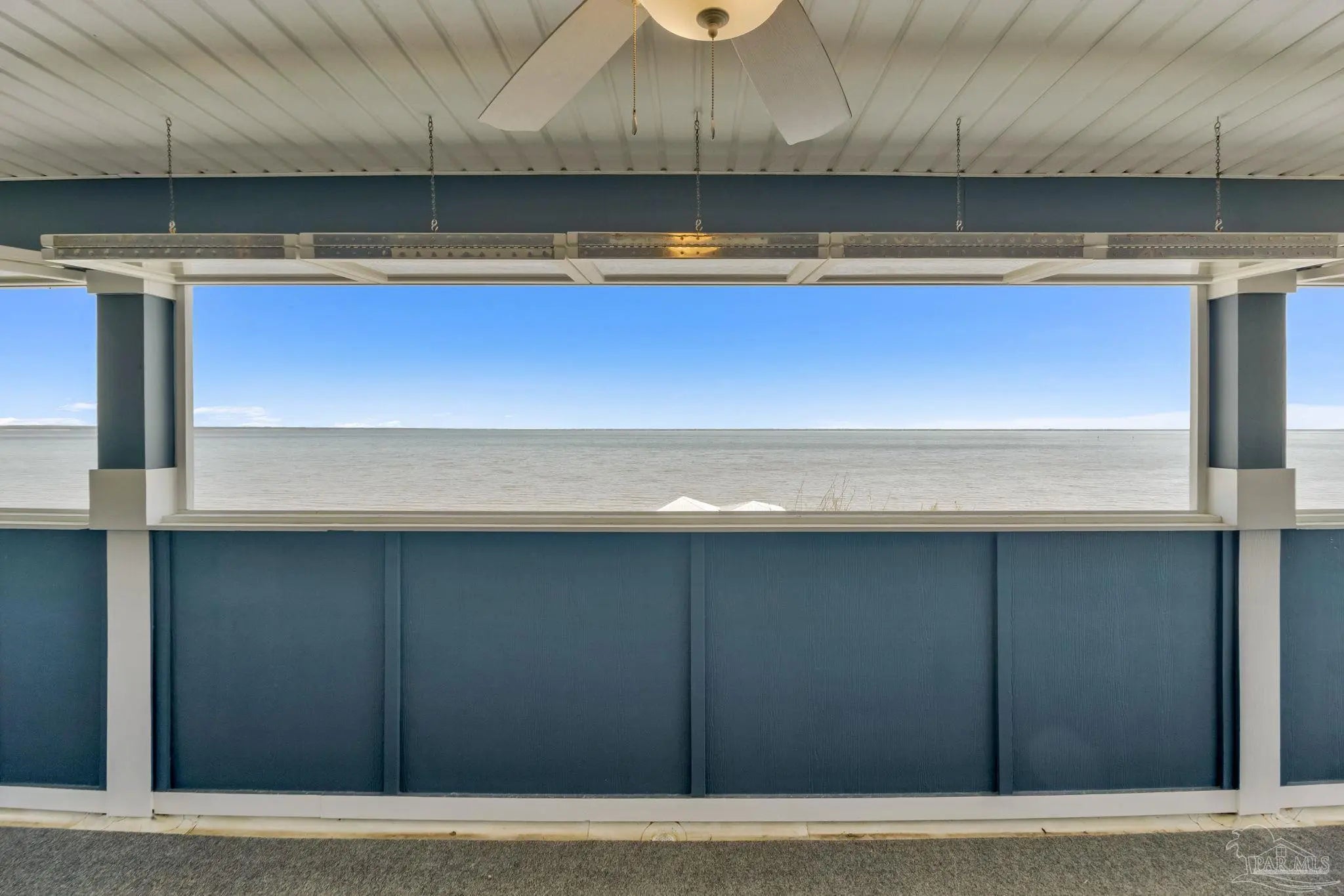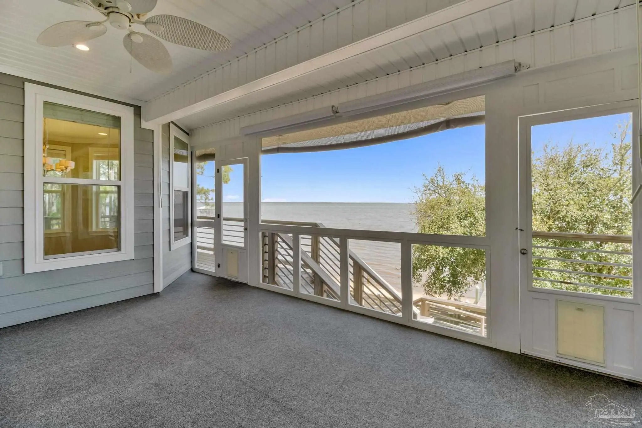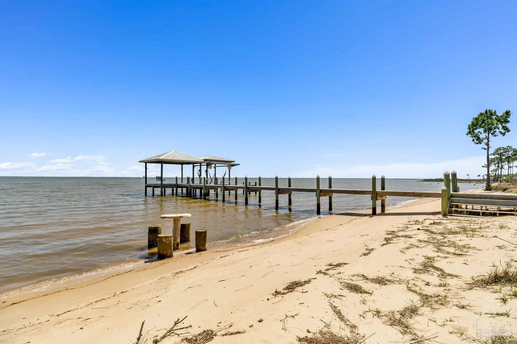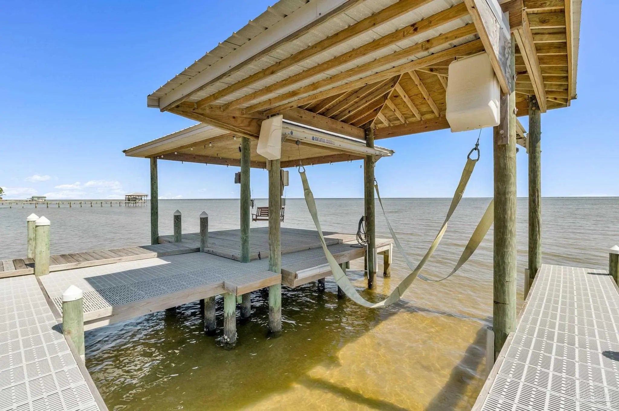 Sunrise to Sunset, the incredible waterfront views. On a clear day you are able to see all the way to Navarre and Midway. Custom built in 2016 this 3 bed 2.5 bath home is a gem you can spend great time with friends and family. Located in the gated community of Sea Pines. You walk in to a grand view of the living room with a kitchen that is meant to host and still feel included. The living room has built in bookshelves along with an electric fireplace. The kitchen has custom cabinetry along with quartz countertops, a large island with cabinets on both sides, a kitchen bar with an under counter ice maker, a second larger island with a sink. The larger island is counter height in the kitchen and bar stool height facing the living room. The main bedroom has a large walk-in closet along with a massive attached bathroom. Large luxury step in shower. Double sink vanity with another walk-in closet. Upstairs are two large bedrooms with an attached bathroom and wet-bar. Both have walk-in closets. The home was built with decking that wraps around the entire home so you do not miss a view. Main deck is screened in with sunshades. Upper deck is screened in and has a built in perch along with storm shutters to close it up. Large boat dock with boat lift. Built in swing on the covered boat dock lets you rest and enjoy the views. There is an elevator that runs from the garage up to the top floor making it easy to bring luggage, or heavy items up and down the home. Large two stall double sided garage with built in shop space and or office space. Must truly see to enjoy.