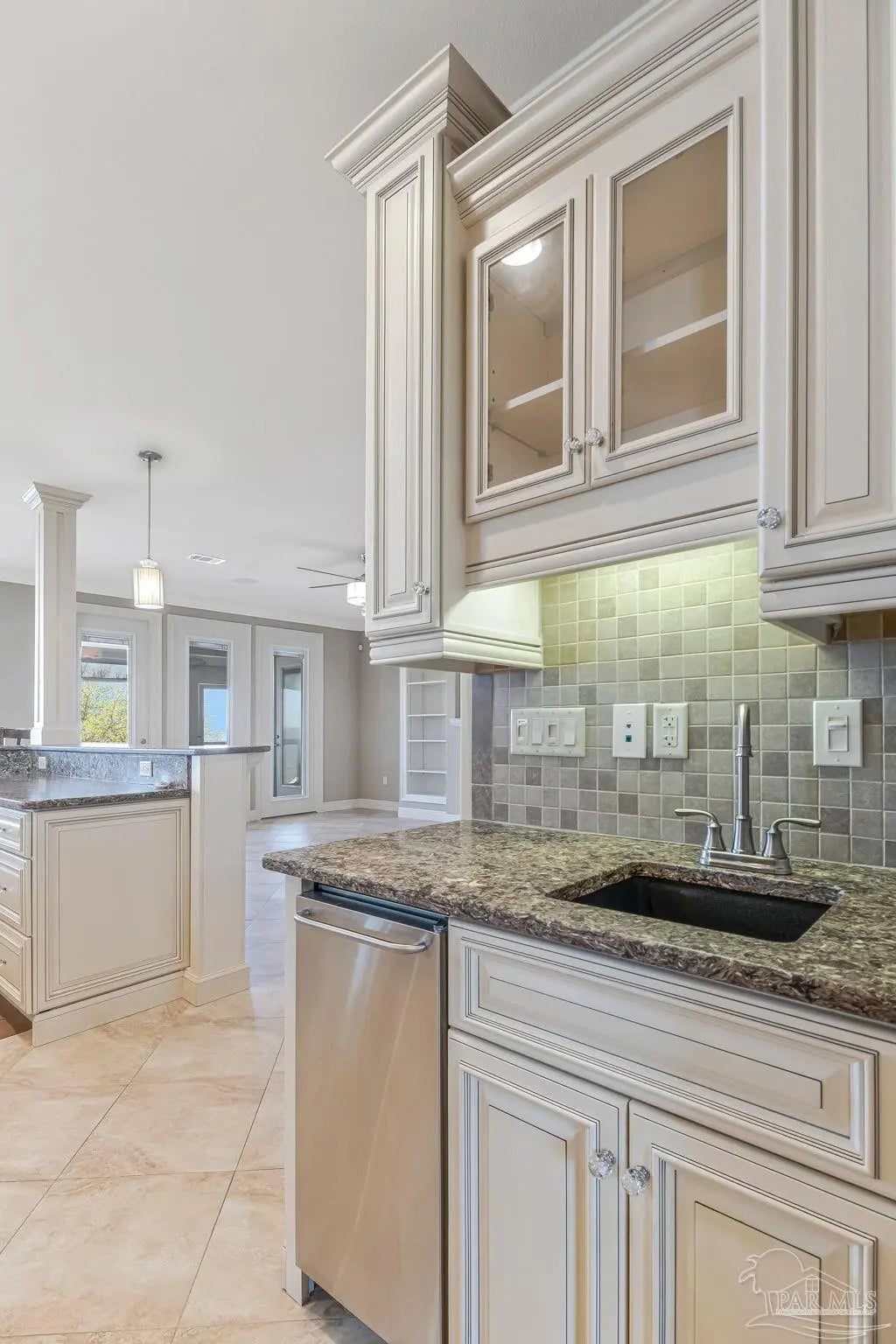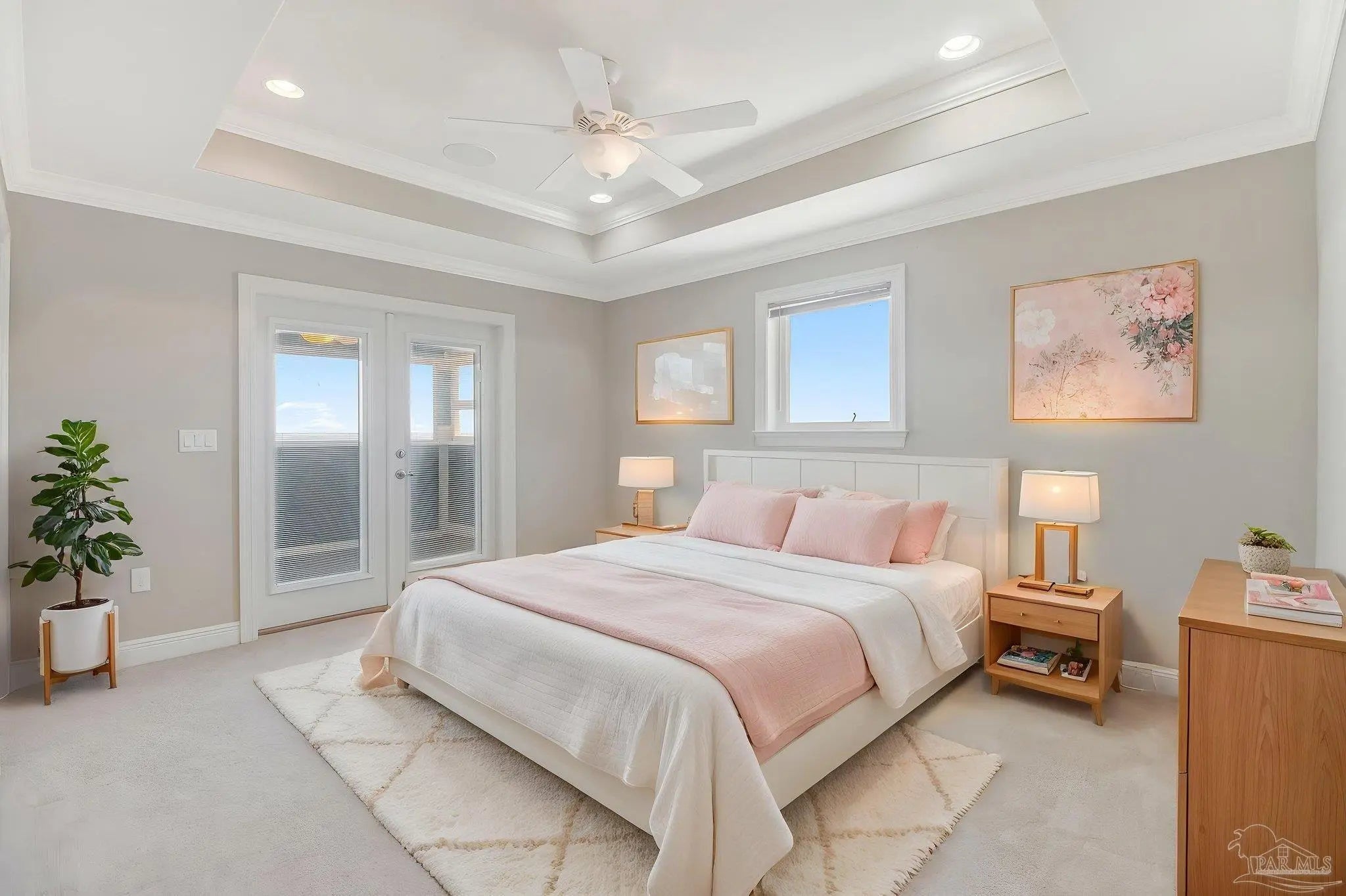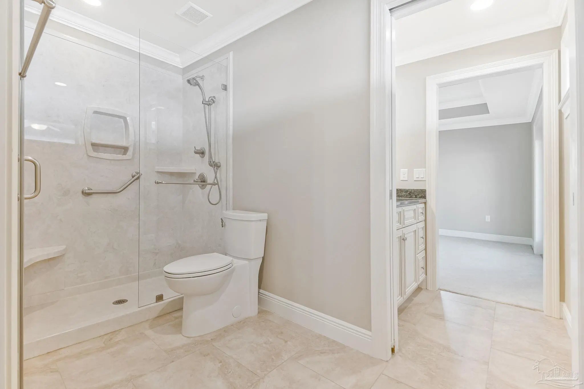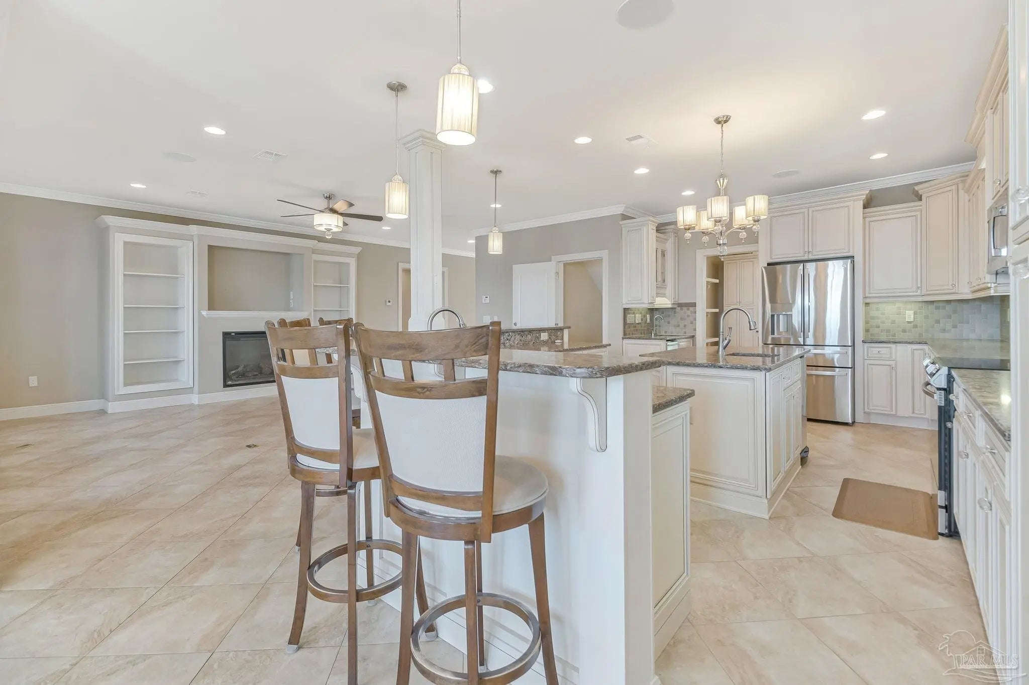 Sunrise to Sunset, the incredible waterfront views. On a clear day you are able to see all the way to Navarre and Midway. Custom built in 2016 this 3 bed 2.5 bath home is a gem you can spend great time with friends and family. Located in the gated community of Sea Pines. You walk in to a grand view of the living room with a kitchen that is meant to host and still feel included. The living room has built in bookshelves along with an electric fireplace. The kitchen has custom cabinetry along with quartz countertops, a large island with cabinets on both sides, a kitchen bar with an under counter ice maker, a second larger island with a sink. The larger island is counter height in the kitchen and bar stool height facing the living room. The main bedroom has a large walk-in closet along with a massive attached bathroom. Large luxury step in shower. Double sink vanity with another walk-in closet. Upstairs are two large bedrooms with an attached bathroom and wet-bar. Both have walk-in closets. The home was built with decking that wraps around the entire home so you do not miss a view. Main deck is screened in with sunshades. Upper deck is screened in and has a built in perch along with storm shutters to close it up. Large boat dock with boat lift. Built in swing on the covered boat dock lets you rest and enjoy the views. There is an elevator that runs from the garage up to the top floor making it easy to bring luggage, or heavy items up and down the home. Large two stall double sided garage with built in shop space and or office space. Must truly see to enjoy.