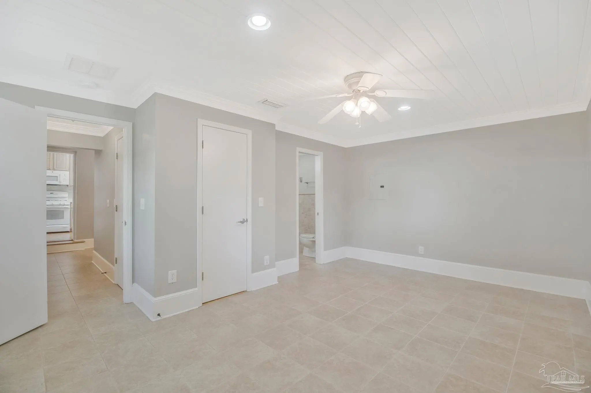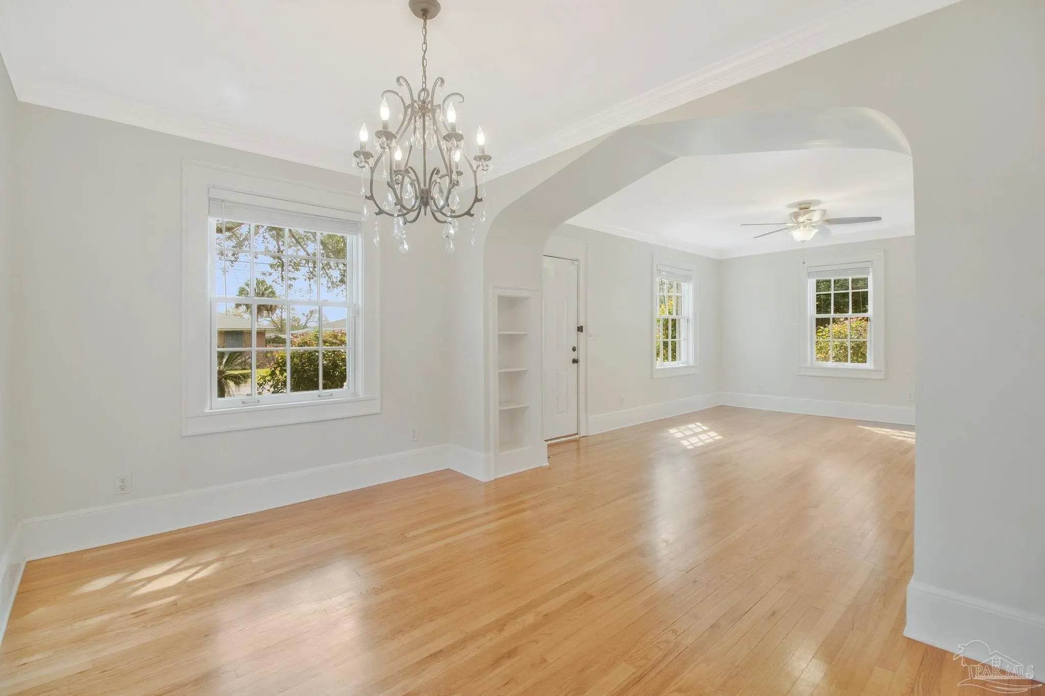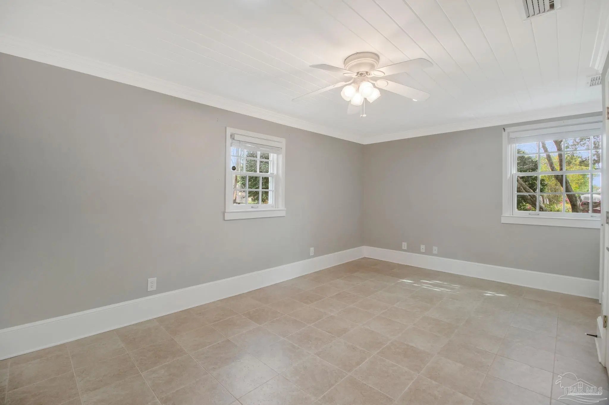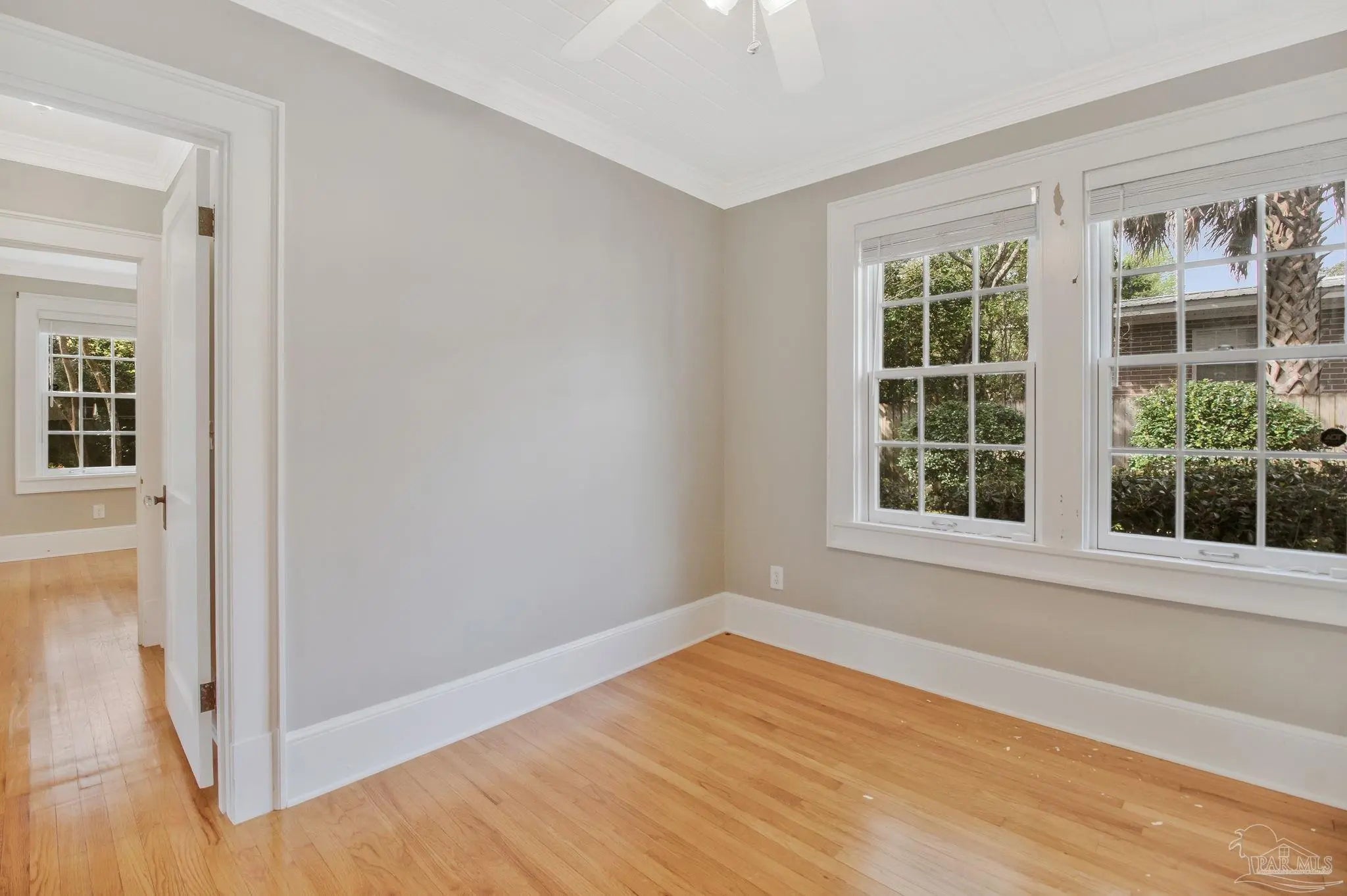 Located in the Lakeview subdivision of Pensacola’s East Hill area, this 3-bedroom, 2-bath home offers a combination of classic architectural details and functional living spaces, complemented by mature landscaping and inviting outdoor areas. Inside, natural light fills the main living and dining areas, highlighting oak flooring, crown molding, and an arched opening that adds architectural interest while maintaining an open flow. Built-in shelving and well-proportioned rooms contribute to both functionality and character. The kitchen features wood cabinetry, solid surface countertops, tile backsplash, and a gas range, with convenient access to the dining space. The split-bedroom layout provides separation between the primary suite and additional bedrooms. The primary suite includes tile flooring, tongue-and-groove ceiling detail, and an updated bathroom with a tiled walk-in shower. The secondary bathroom features tile finishes and a tub/shower combination. Outdoor spaces are designed for everyday use and flexibility, with a paver driveway, walkway, and patio area connecting the home to a detached storage building that can be utilized for storage, workspace, or hobbies. The fenced backyard is surrounded by established trees and landscaping, creating a private outdoor setting. A covered carport provides additional parking. Positioned on a corner lot, the property offers convenient access to nearby streets while maintaining a residential setting. Located approximately 11 minutes to downtown Pensacola, 17 minutes to Pensacola Beach, and 25 minutes to NAS Pensacola, providing access to shopping, dining, and recreational amenities.