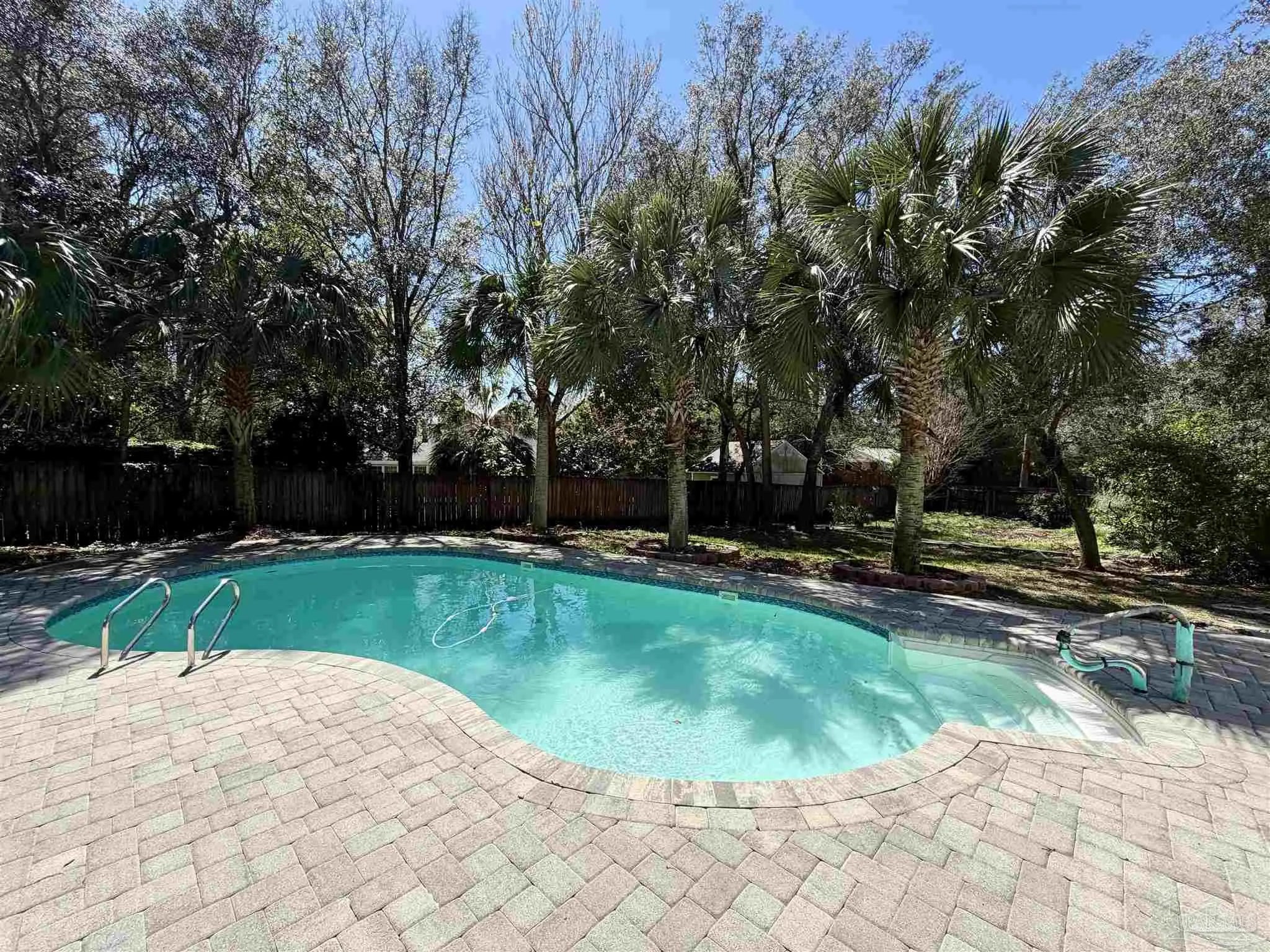 Come enjoy this lovely private pool and create your backyard oasis just in time for Summer! This large, brick Gulf Breeze home home sits on an oversized cul-de-sac lot in the quiet Bay Woods community. Enjoy the shade of the beautiful oak trees in the front yard will the kids safely ride bikes and scooters. Or head to back yard where the pool and brand new paver surround will provide a plethora of area for lounging, fire pit hangouts, yard games, and more. Oh and the large 10'x20' building provides a blank canvas for storage, fun, crafts, or more. The benefit of nearly half an acre .. all of that's less than half of the back yard. Create what you want with the rest! A pet haven, putting green, garden, etc. Now inside the home - 4 bedrooms, 3 full bathrooms across 2300 sqft. The kitchen has been fully remodeled with new cabinetry, counters, and appliances. The great room offers plenty of room for living area and dining. The beauty of homes from this era, they also had dens! Great bonus space. Oh, and LOTS of closet space. So much storage. The first bedroom sits adjacent to the front communal bathroom (would make an excellent office). The second and third bathroom share a private jack and jill bathroom. The master suite sits across the home and offers plenty of size, a double vanity, and large walk in closet. The home also offers a rear screen porch, large two car garage, had a new HVAC in 2018, a new pool liner in 2020, a new roof in 2021, and a new pool and patio paver install in 2024. The asking price also includes a credit for a full interior repainting, allowing you to have your choice of color. Come take full advantage of all that this home has to offer!