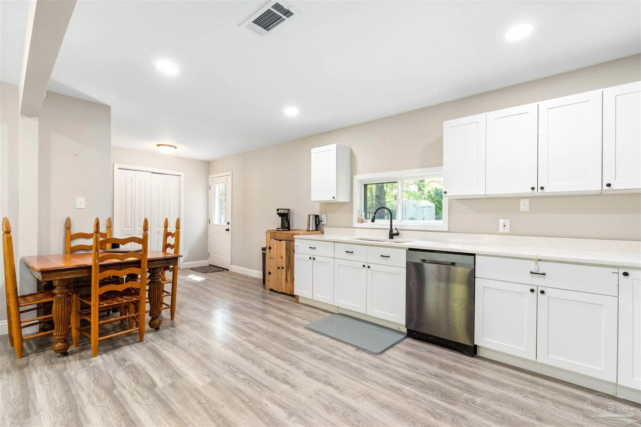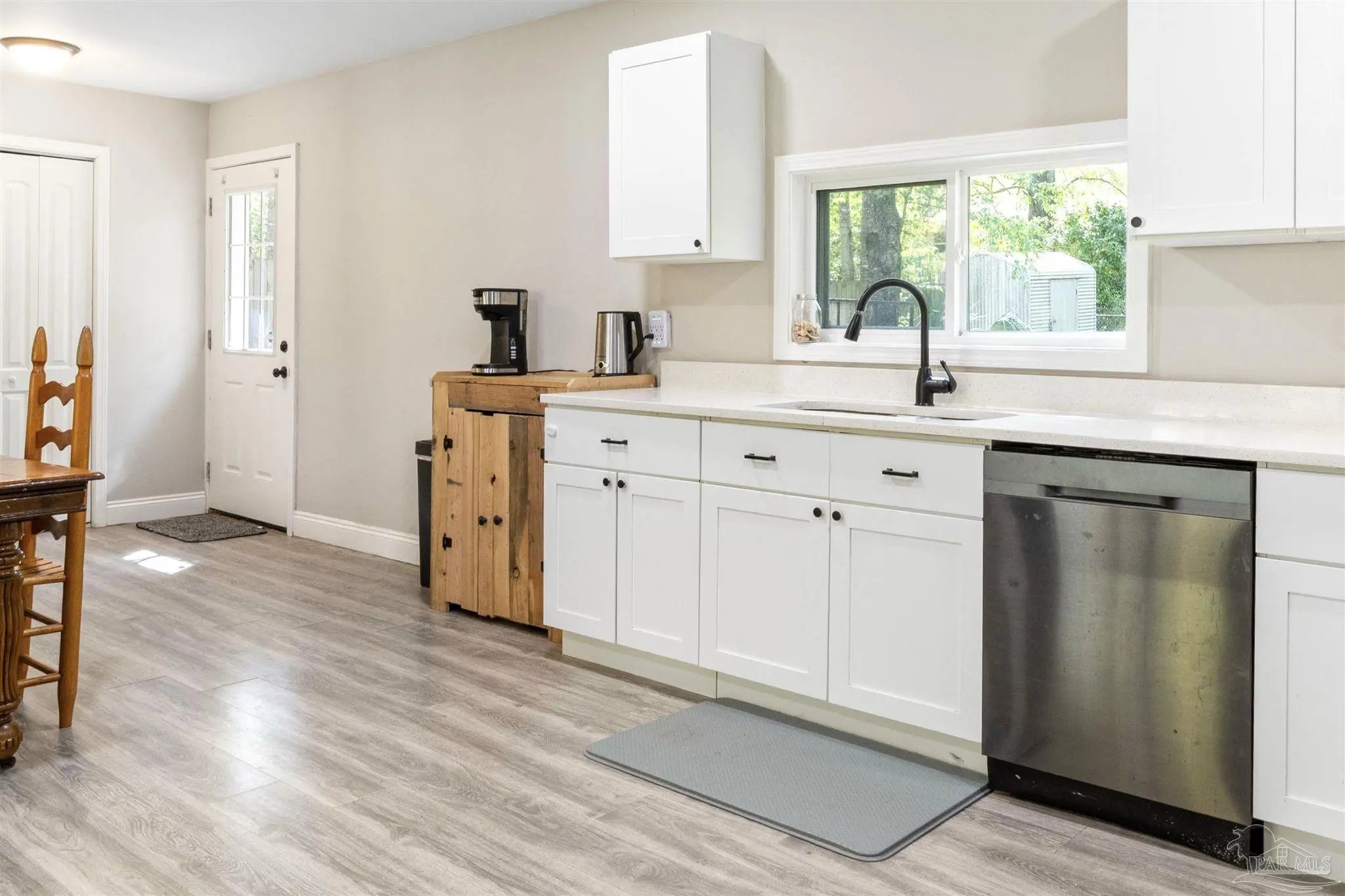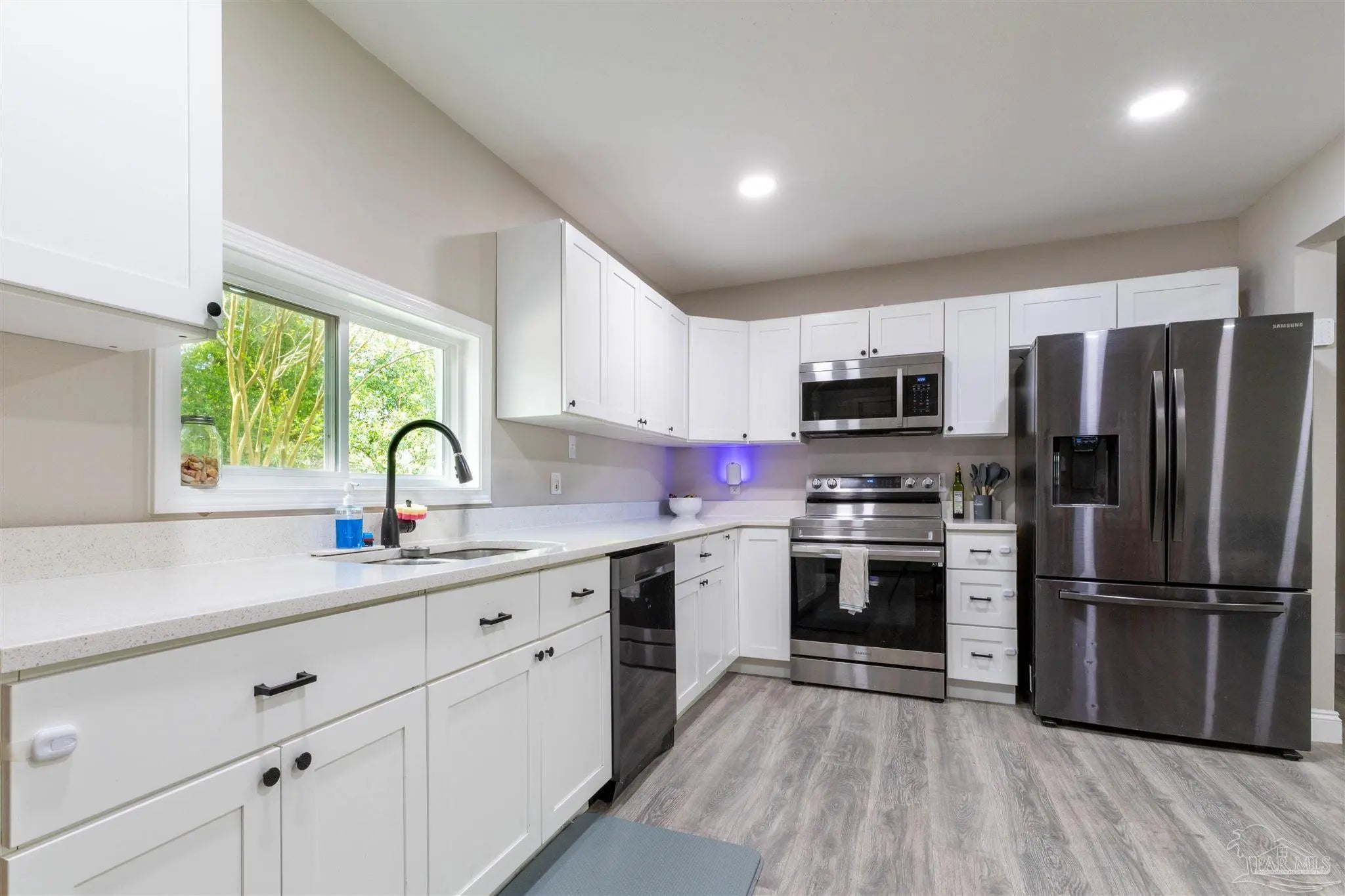This beautifully updated 4-bedroom, 1.5-bath home offers the perfect combination of modern upgrades, functional space, and a convenient location. Situated just minutes from I-10, local colleges, NAS Pensacola, Corry Station, and Naval Hospital, this home provides quick access to work, shopping, and dining. From the moment you arrive, the home stands out with its inviting curb appeal and paved walkway leading to the front entrance. Step inside and you’re welcomed by a large living room featuring recessed lighting and plenty of space for entertaining or relaxing. The open floor plan flows seamlessly into the fully updated kitchen, designed with both style and functionality in mind. The kitchen features quartz countertops, brand-new cabinets, modern fixtures, and updated appliances, along with plenty of space for a dining area and even the option to add an island. One of the home’s largest bedrooms (approximately 171 sq ft) offers flexibility and could easily serve as a second living area, family room, home office, or oversized bedroom. This home has been extensively upgraded, including new flooring, new windows, new cabinetry, a new roof, HVAC system, and more, giving buyers peace of mind for years to come. The primary bedroom features double closets and a beautifully remodeled half bath, providing both comfort and convenience. The spacious laundry room makes everyday living easy while serving the additional large bedrooms. Step outside and enjoy the large backyard with two mature fruit trees already producing fruit, perfect for relaxing, gardening, or entertaining. Homes with this many upgrades, space, and location advantages don’t last long. Schedule your showing today and see this gem for yourself! ??????