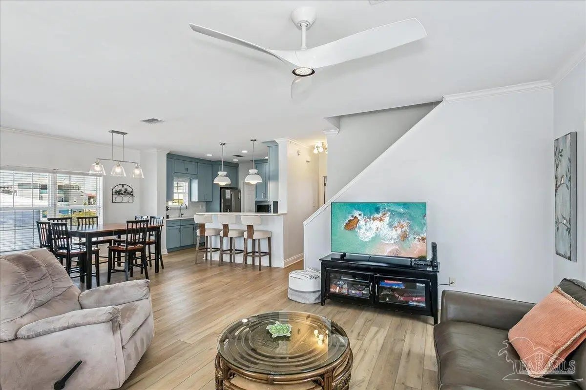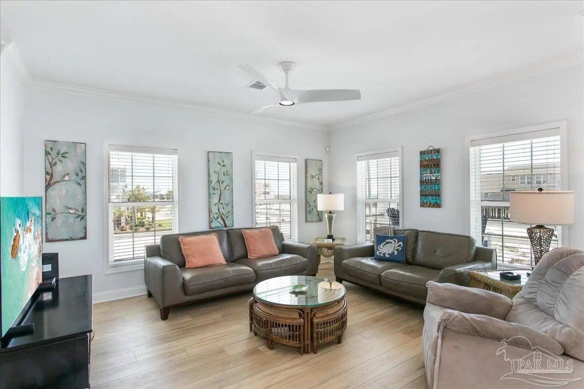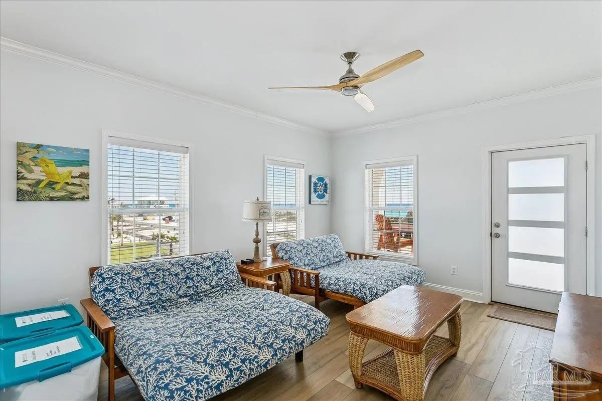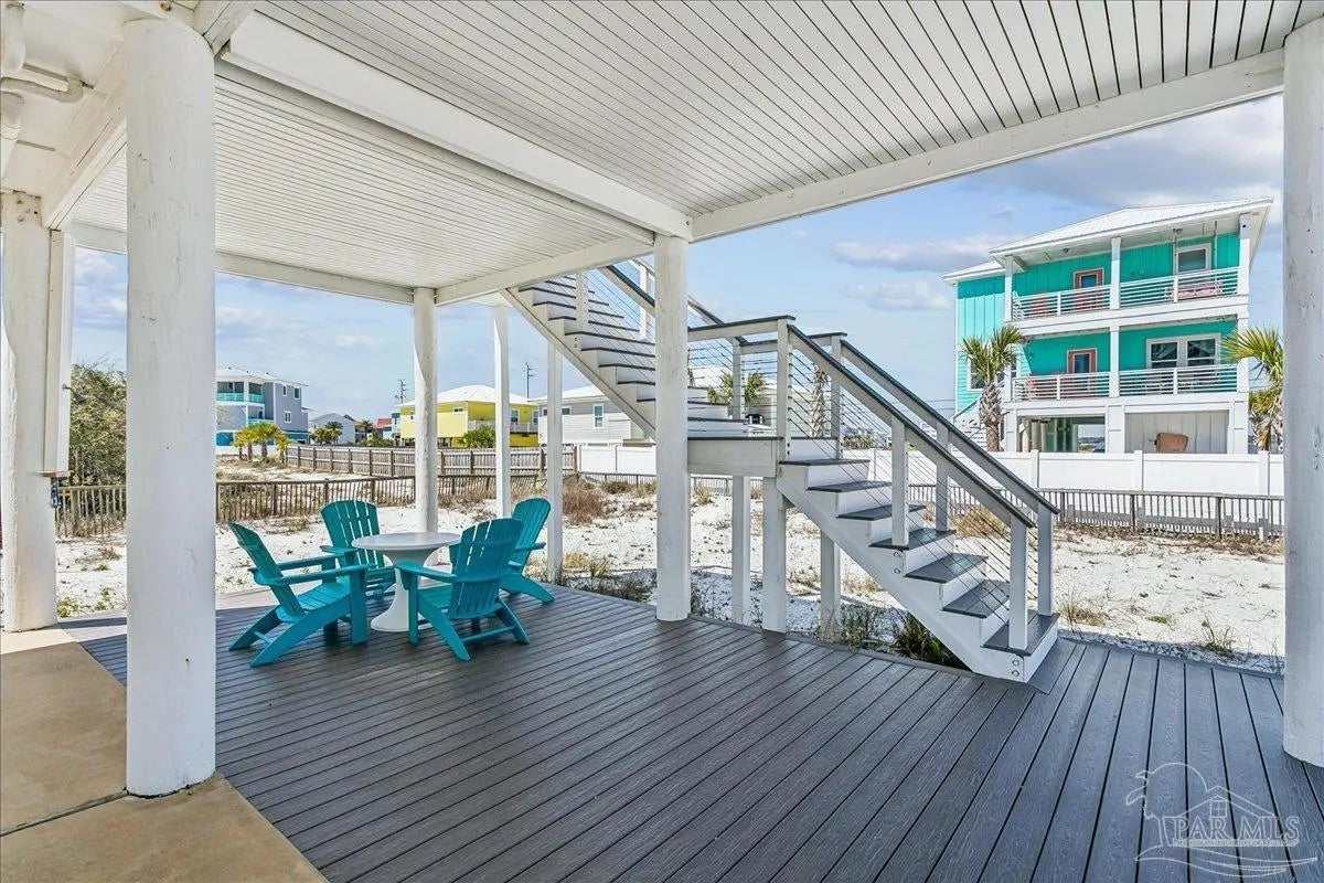 Outstanding Beach Destination! Start your mornings with breathtaking sunrises and unwind in the evenings with stunning sunsets from one of three balconies overlooking the Gulf of America. Sand Dollar Cottage has been renovated inside and out and comes fully furnished—perfect as a primary residence, vacation home, or income-producing rental. This thoughtfully updated home features open floor plan with a spacious living and dining area, 9-foot ceilings, luxury vinyl plank flooring, updated lighting, fresh interior paint, and a conveniently located powder room. The private ensuite primary suite offers a bath with a tiled shower & quartz double vanity. The fully equipped kitchen designed to impress with tall Shaker-style soft-close cabinetry, tiled backsplash, quartz countertops, a breakfast bar, gas range with custom hood, and high-end KitchenAid stainless steel appliances. Just off the kitchen, the laundry area leads to a large deck overlooking the Santa Rosa Sound—perfect for grilling and gathering with family and friends. The third floor includes three additional bedrooms, two fully renovated bathrooms (featuring quartz countertops, one tiled shower, and one tub/shower combo), and a cozy family room that opens to balcony. Exterior upgrades include new siding, Trex decking, a covered first-level deck, and a newly installed rear staircase. Additional highlights include parking for up to 8 vehicles, a metal roof, Impact glass, new doors and a 2026 water heater. Located just a short walk to walk over to the beach. The sidewalk in front of the house is ideal for walking and biking. Enjoy everything Navarre Beach has to offer—from fishing off the longest pier on the Gulf, snorkeling, and deep-sea fishing to shell collecting or simply relaxing with a good book by the water. Navarre Beach, often called “Florida’s Most Relaxing Place,” is a rare gem—just four miles long and one of only a handful of beaches in the nation protected as a National Seashore.