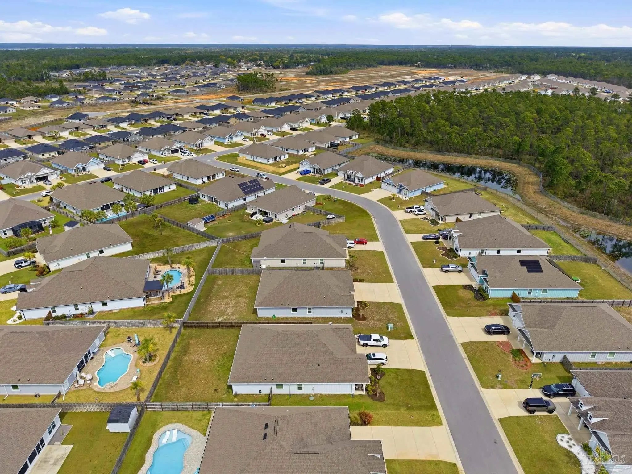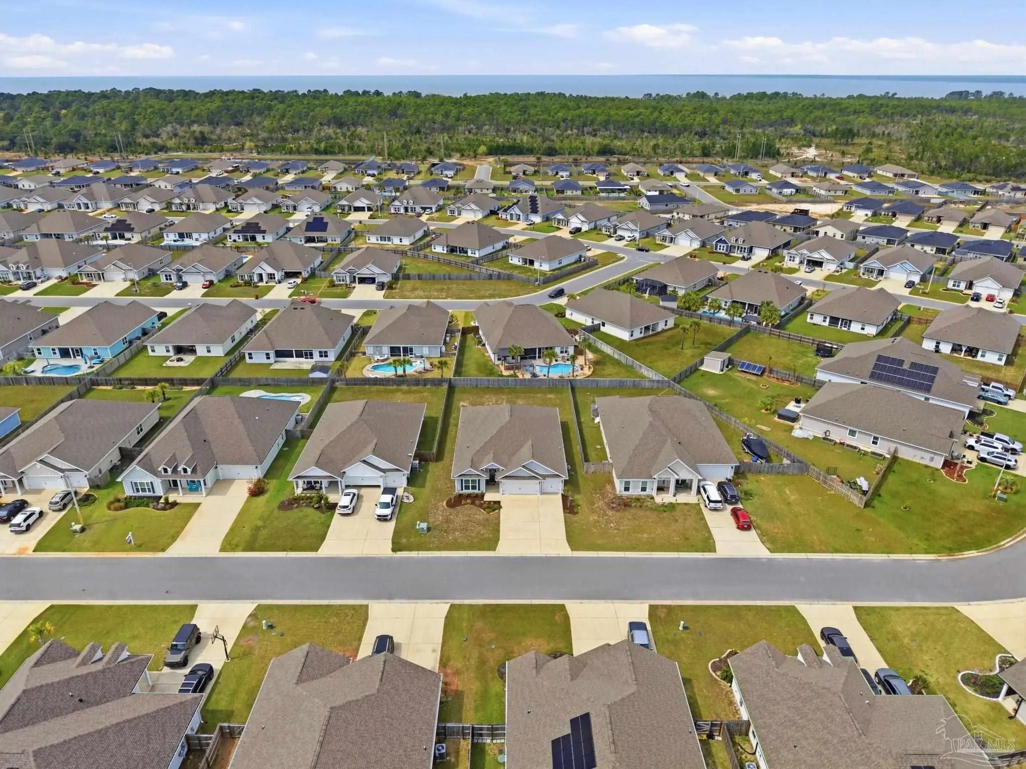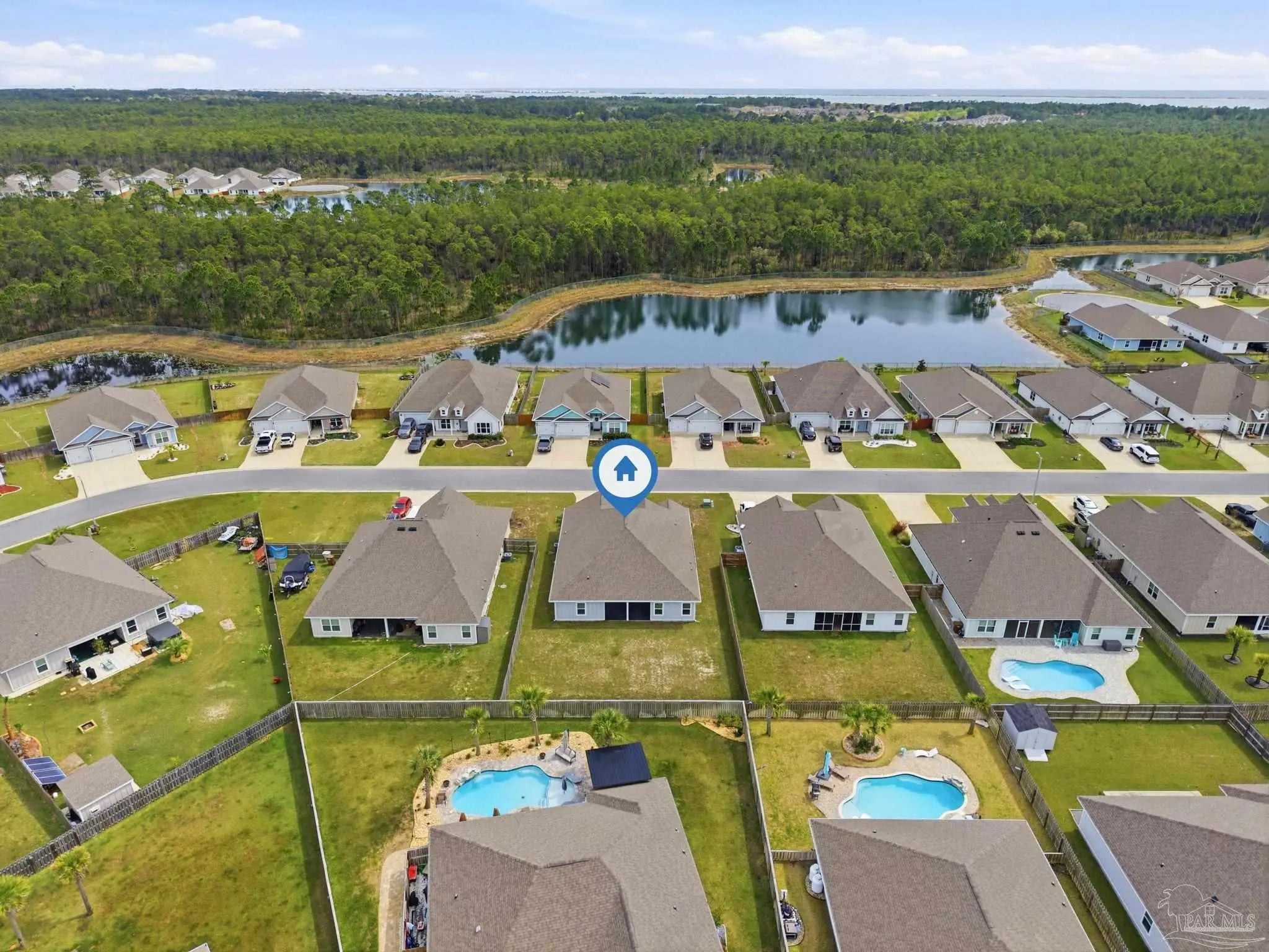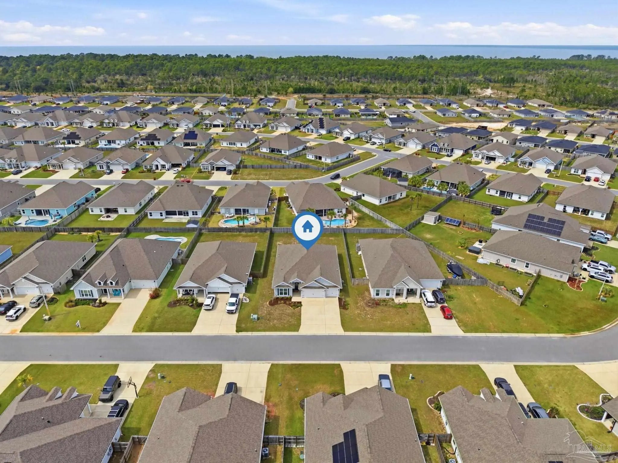 Welcome to the kind of home buyers are searching for—bright, open, & thoughtfully designed for the way people actually live, w/added opportunity of a low-interest-rate VA assumable loan for qualified buyers. This 4-bedroom, 3-bath, 3-car garage home offers over 2,300 square feet of well-planned space, including a private guest suite tucked away in its own corner—ideal for visitors, multigenerational living, or a quiet home office. Inside, you’ll find beautiful high-end LVP flooring throughout the main living areas, soaring tray ceilings, & an expansive open-concept layout. The living room flows seamlessly into a well-designed kitchen featuring a large island w/ample seating, abundant cabinetry, updated hardware, & a layout perfect for everyday living & entertaining. A generously sized pantry with solid wood shelving (no wire) adds durability and storage. Thoughtful upgrades throughout—including added trim detail and stylish accent walls—bring character & a custom feel. A versatile flex space just off the kitchen works well as an office, playroom, or additional dining area. The primary suite, split for privacy, offers generous space, natural light, & a well-appointed en-suite bath w/dual vanities, a walk-in shower, a soaking tub, water closet, & a spacious closet w/upgraded built-in organizers. The laundry room includes built-in storage cabinets and an added shelf for organization. Step outside to a screened, covered porch overlooking a spacious backyard that stands out among others in the neighborhood, offering a larger footprint, existing privacy fencing, & room to add a pool or create your ideal outdoor space. Gutters have been added for functionality & peace of mind. Located in Forest Bay Estates w/access to a community pool, clubhouse, & gathering spaces. Ideally positioned between Gulf Breeze and Navarre w/easy access to Navarre Beach, Pensacola Beach, Hurlburt Field, Eglin AFB, plus convenient access to both Pensacola and Destin-Fort Walton airports.