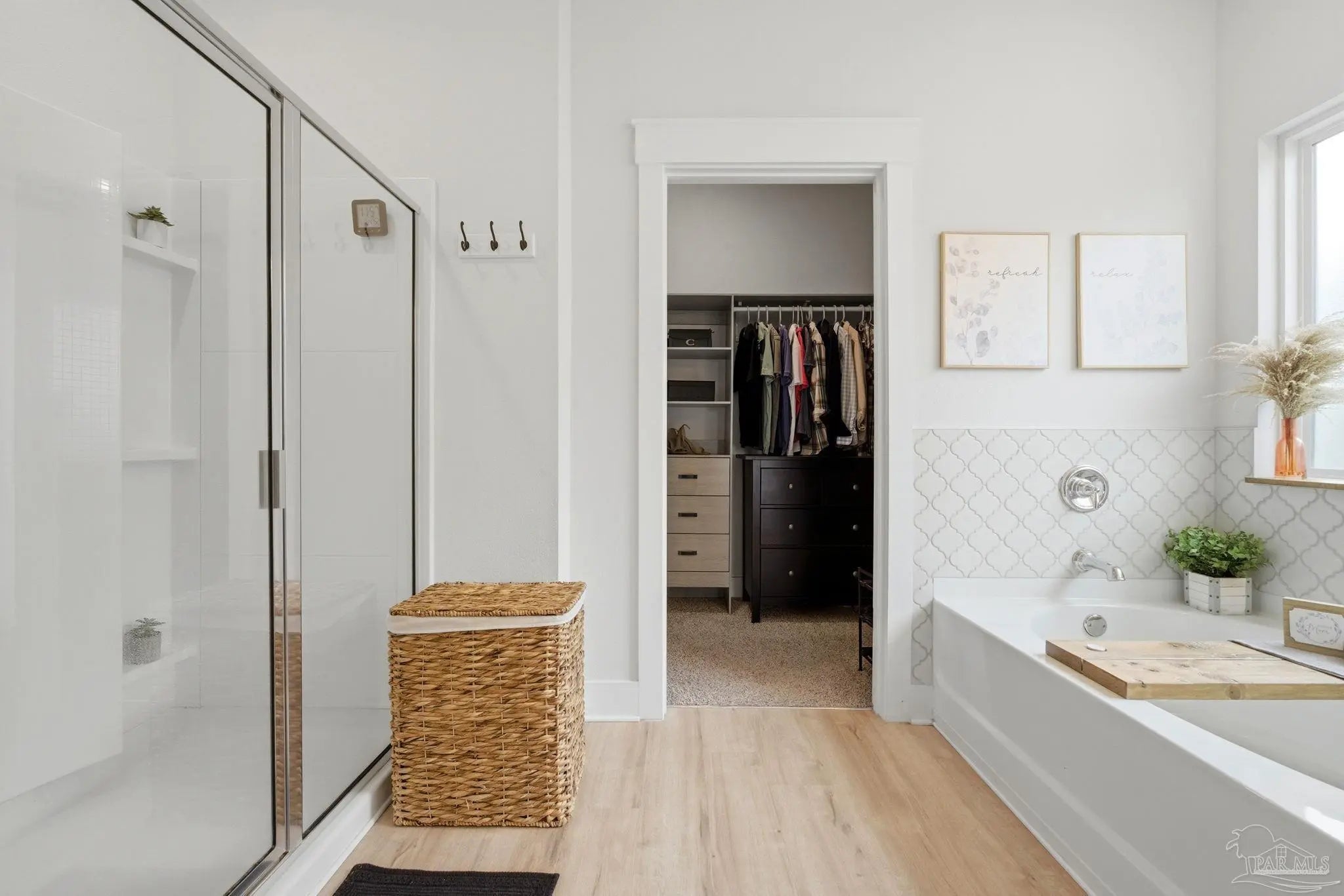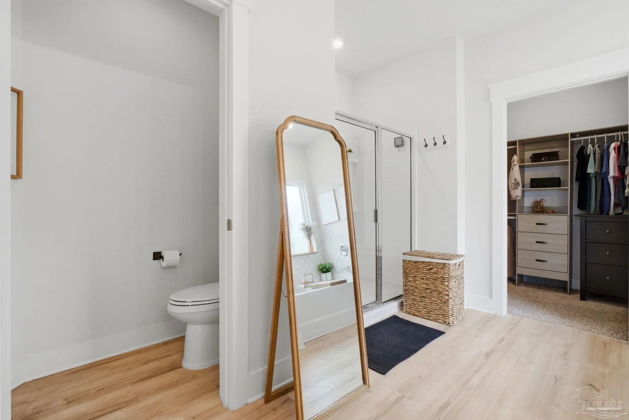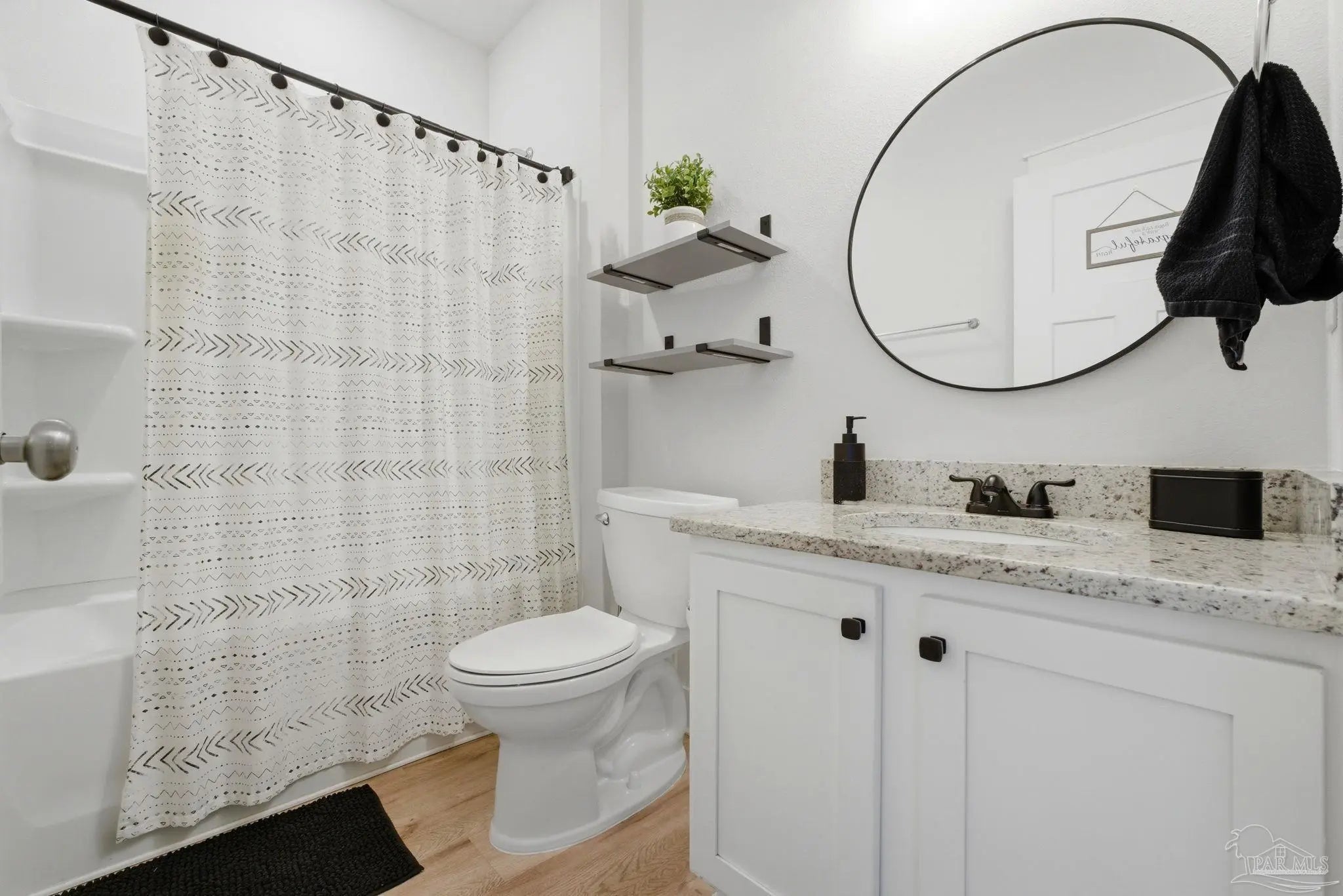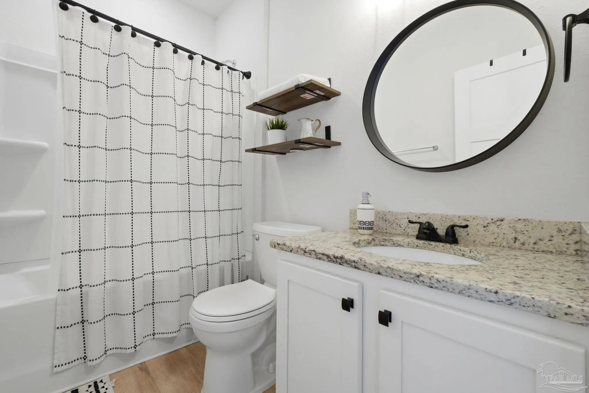 Welcome to the kind of home buyers are searching for—bright, open, & thoughtfully designed for the way people actually live, w/added opportunity of a low-interest-rate VA assumable loan for qualified buyers. This 4-bedroom, 3-bath, 3-car garage home offers over 2,300 square feet of well-planned space, including a private guest suite tucked away in its own corner—ideal for visitors, multigenerational living, or a quiet home office. Inside, you’ll find beautiful high-end LVP flooring throughout the main living areas, soaring tray ceilings, & an expansive open-concept layout. The living room flows seamlessly into a well-designed kitchen featuring a large island w/ample seating, abundant cabinetry, updated hardware, & a layout perfect for everyday living & entertaining. A generously sized pantry with solid wood shelving (no wire) adds durability and storage. Thoughtful upgrades throughout—including added trim detail and stylish accent walls—bring character & a custom feel. A versatile flex space just off the kitchen works well as an office, playroom, or additional dining area. The primary suite, split for privacy, offers generous space, natural light, & a well-appointed en-suite bath w/dual vanities, a walk-in shower, a soaking tub, water closet, & a spacious closet w/upgraded built-in organizers. The laundry room includes built-in storage cabinets and an added shelf for organization. Step outside to a screened, covered porch overlooking a spacious backyard that stands out among others in the neighborhood, offering a larger footprint, existing privacy fencing, & room to add a pool or create your ideal outdoor space. Gutters have been added for functionality & peace of mind. Located in Forest Bay Estates w/access to a community pool, clubhouse, & gathering spaces. Ideally positioned between Gulf Breeze and Navarre w/easy access to Navarre Beach, Pensacola Beach, Hurlburt Field, Eglin AFB, plus convenient access to both Pensacola and Destin-Fort Walton airports.